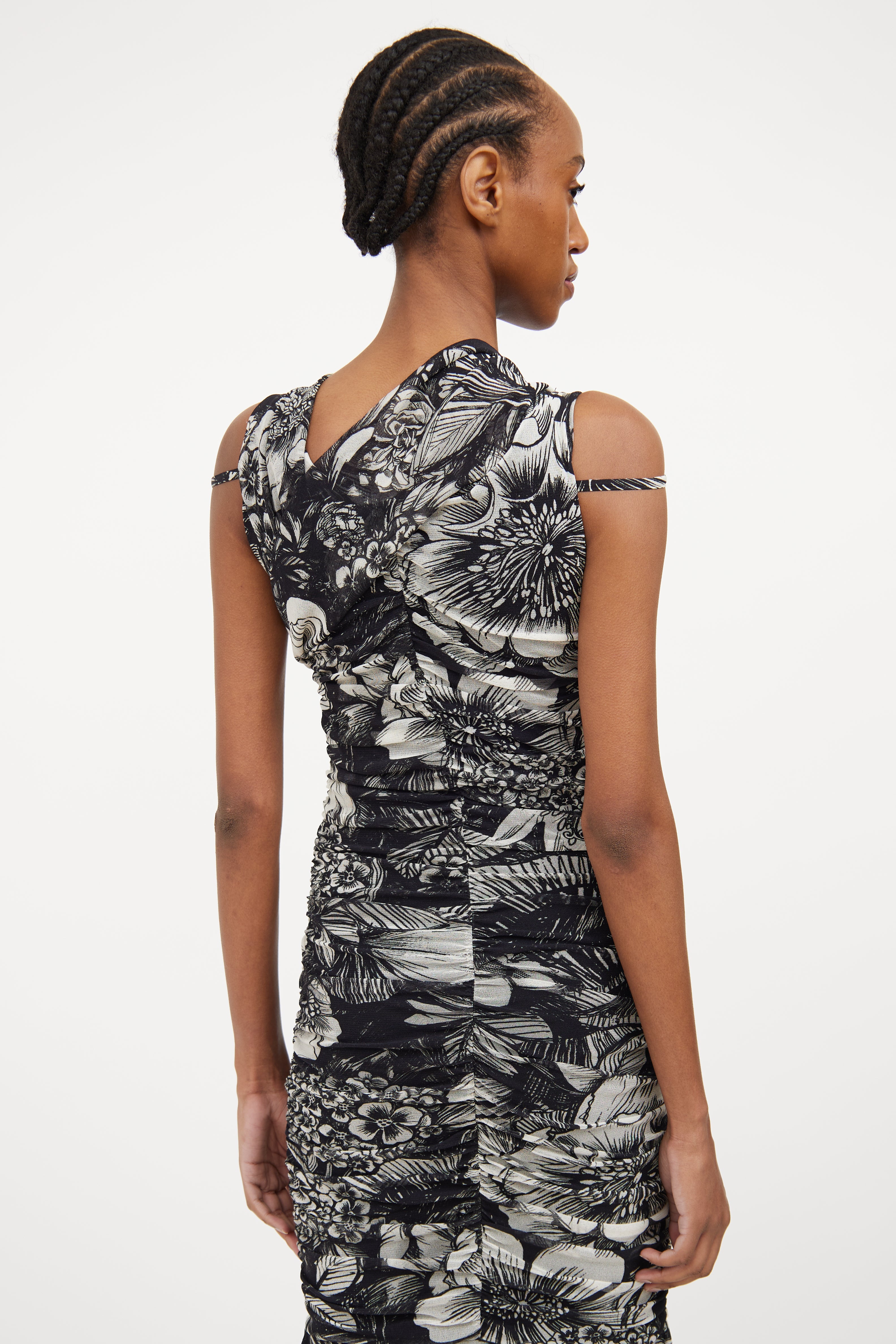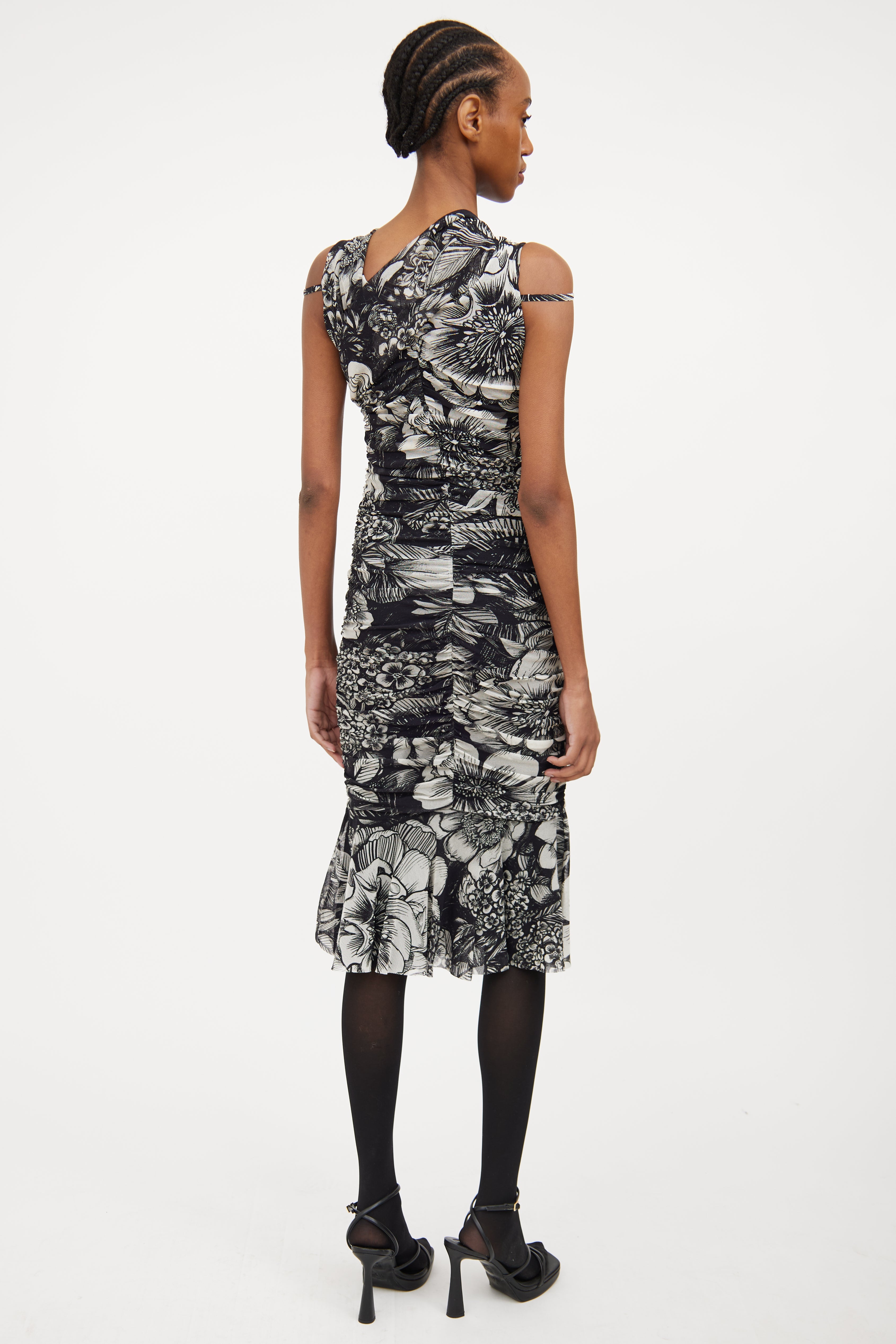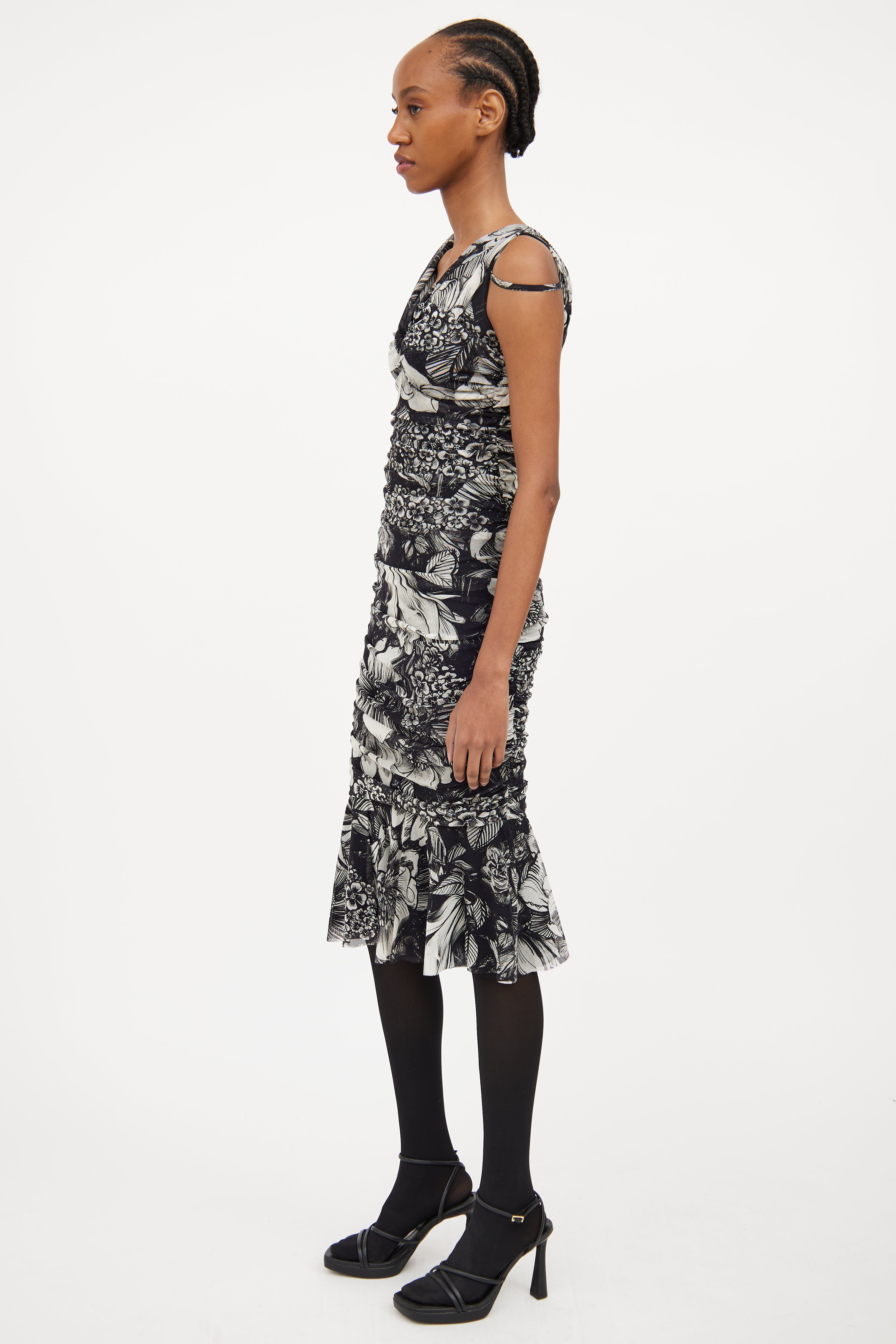 Black & White Mesh Floral Ruched Dress Small Size Guide