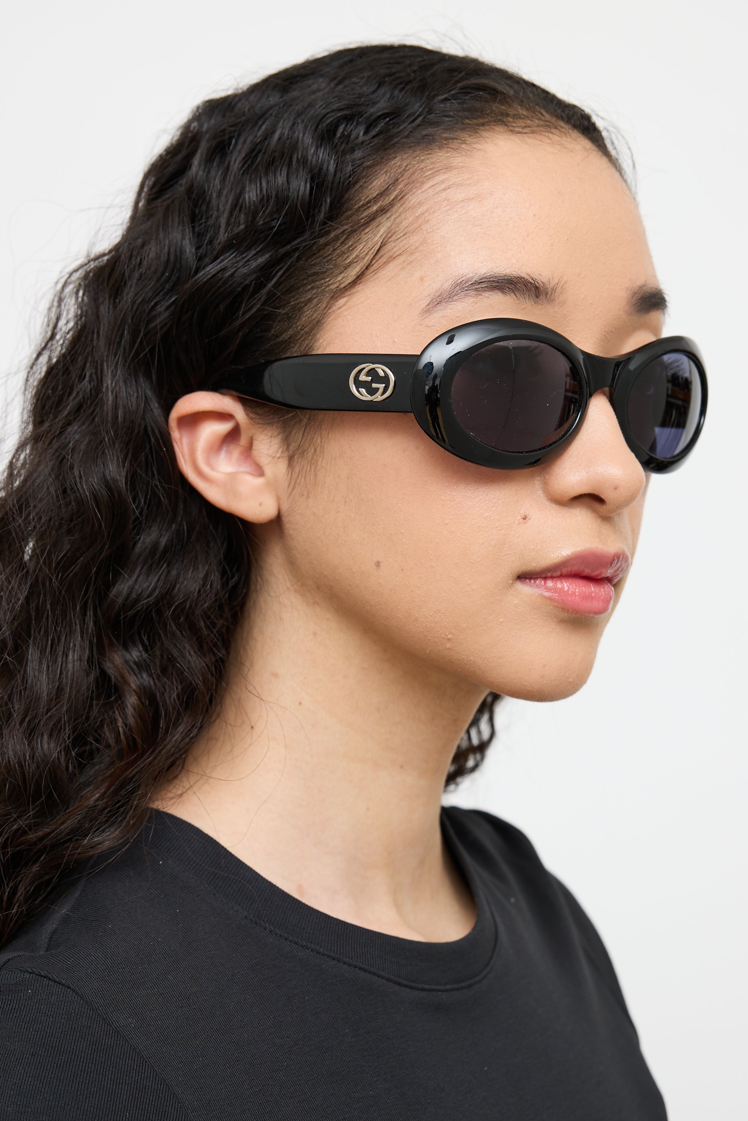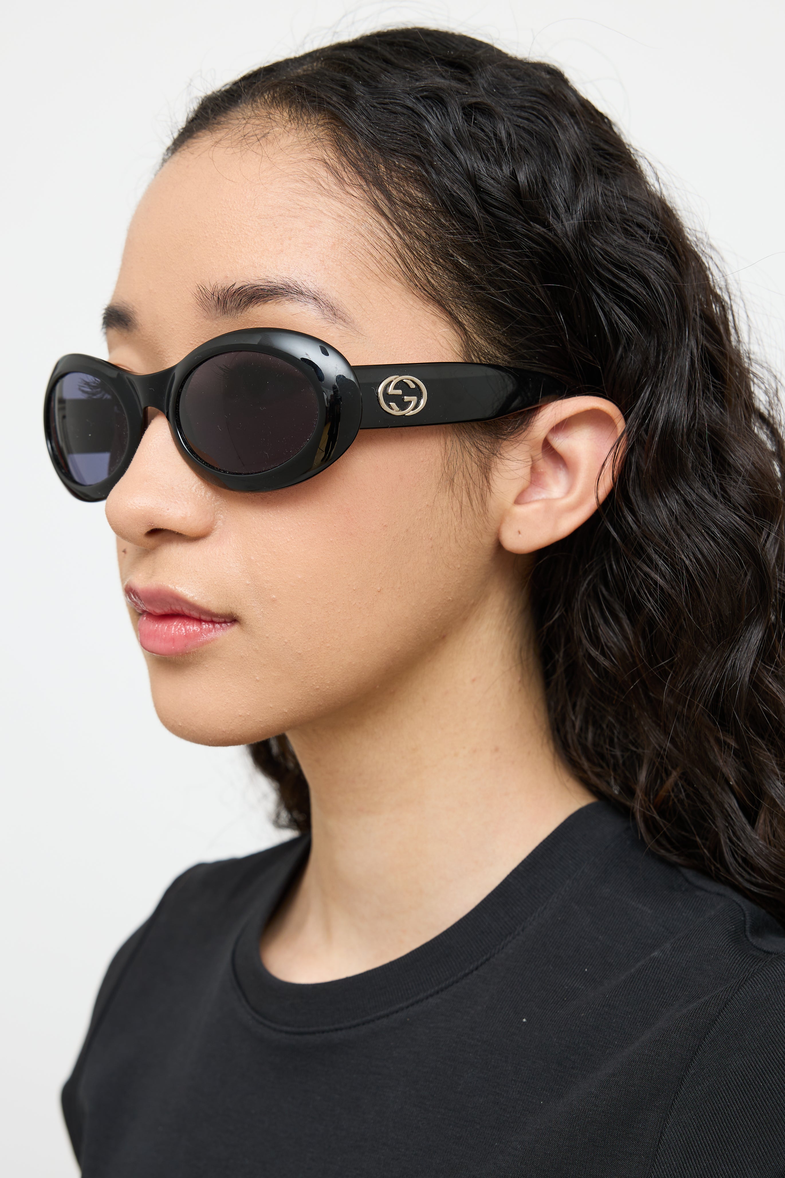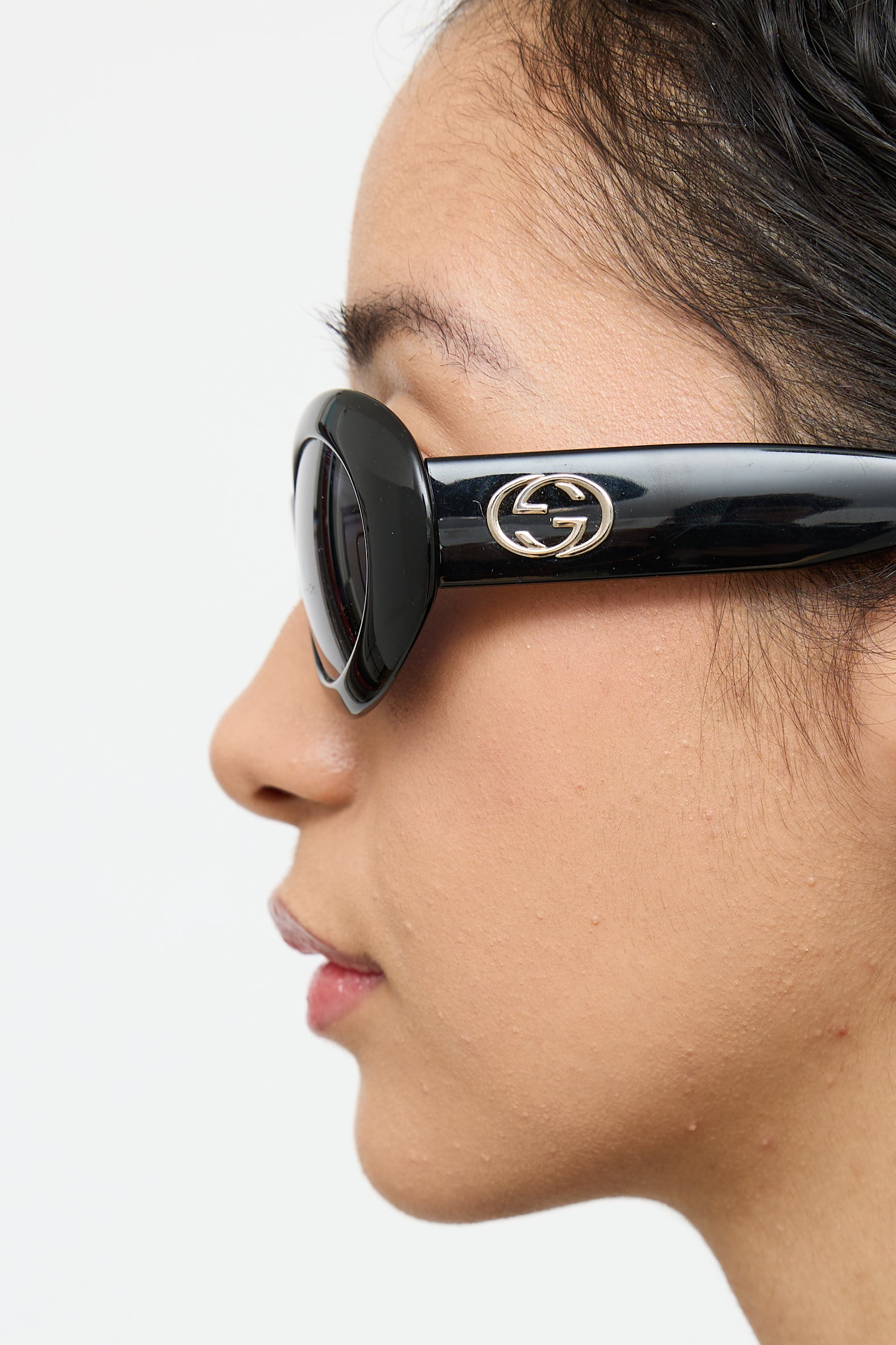 Pre-owned Gucci black GG 2400/N/S sunglasses featuring oval lens, silver tone hardware and GG logo on arm.