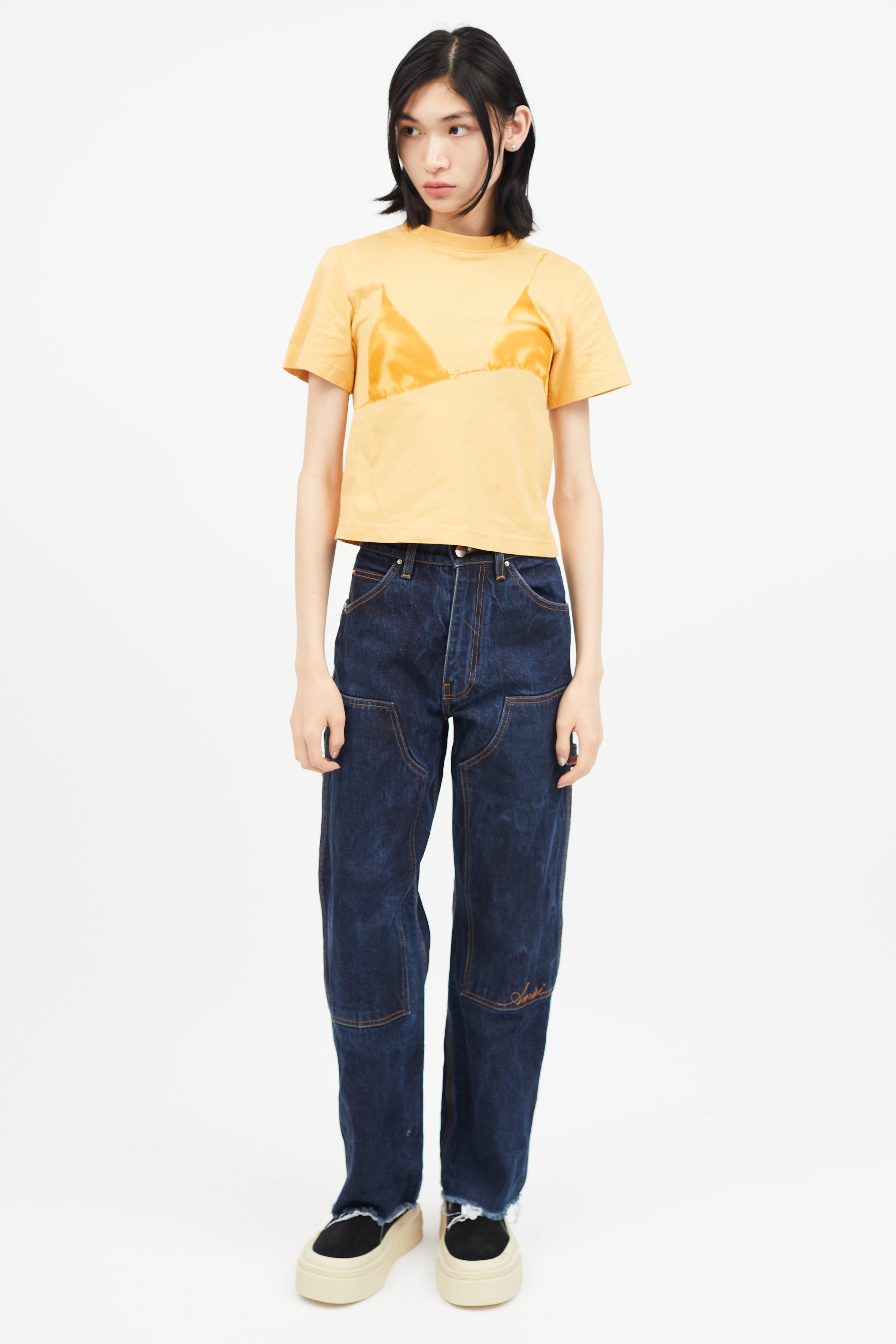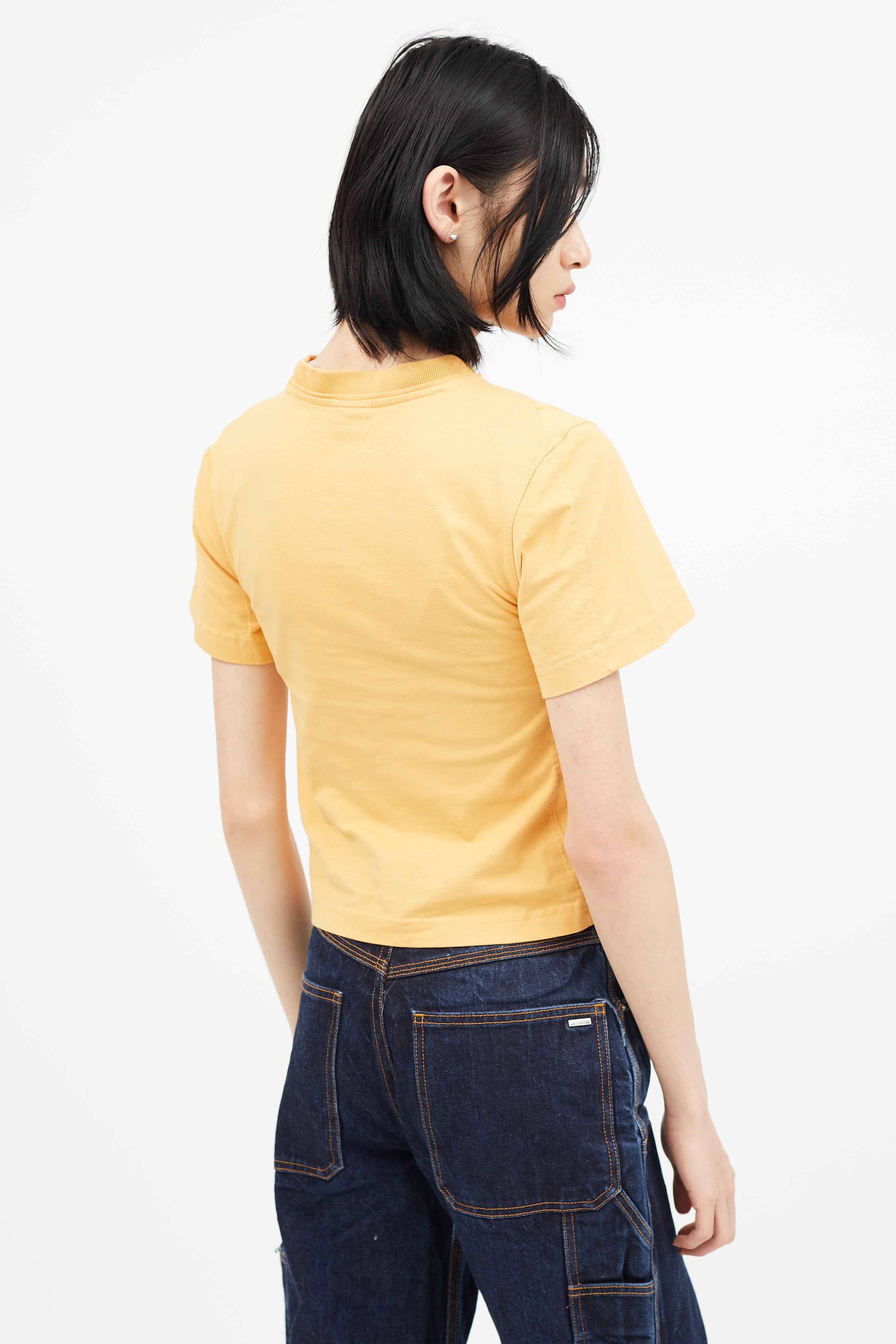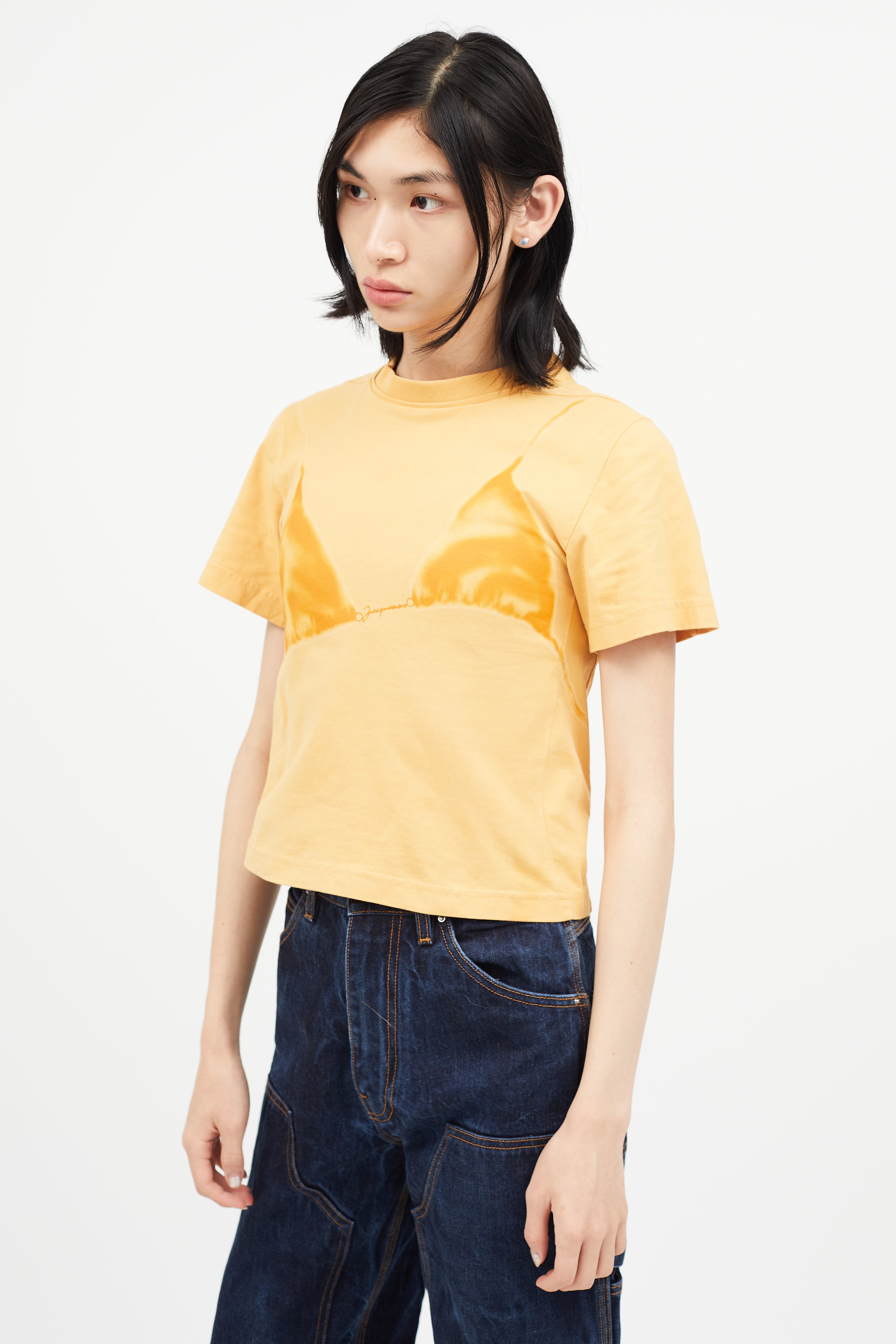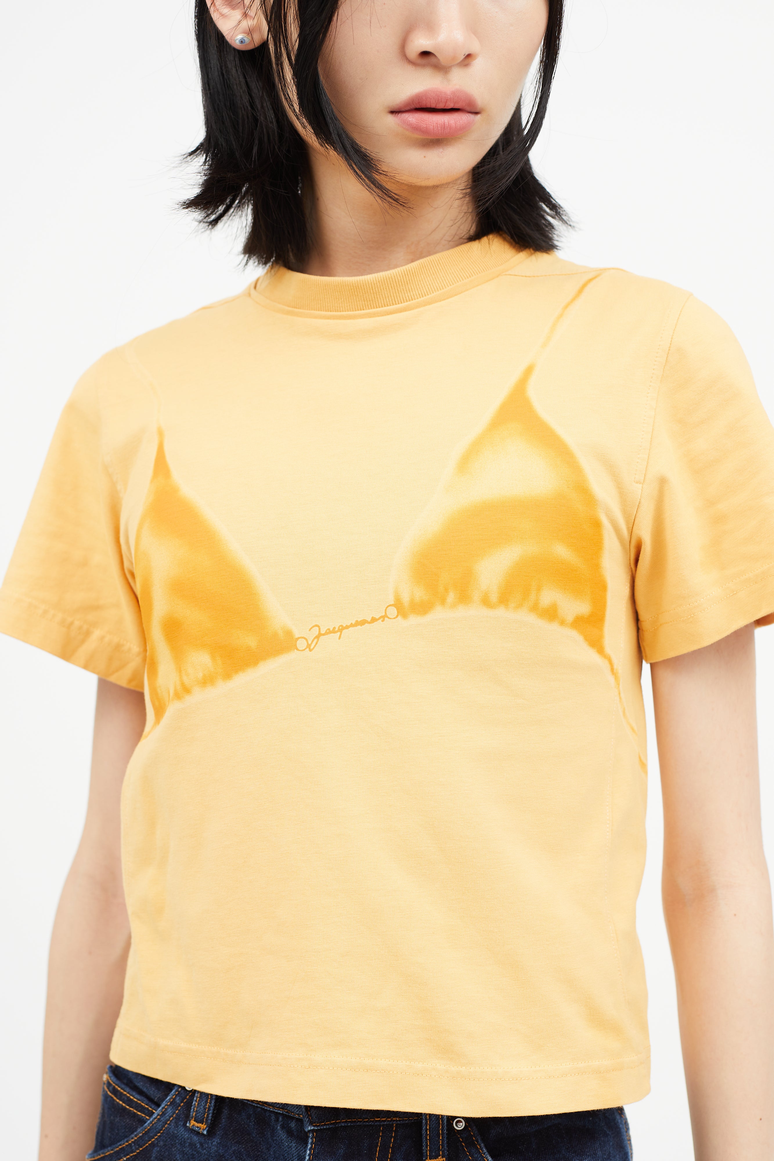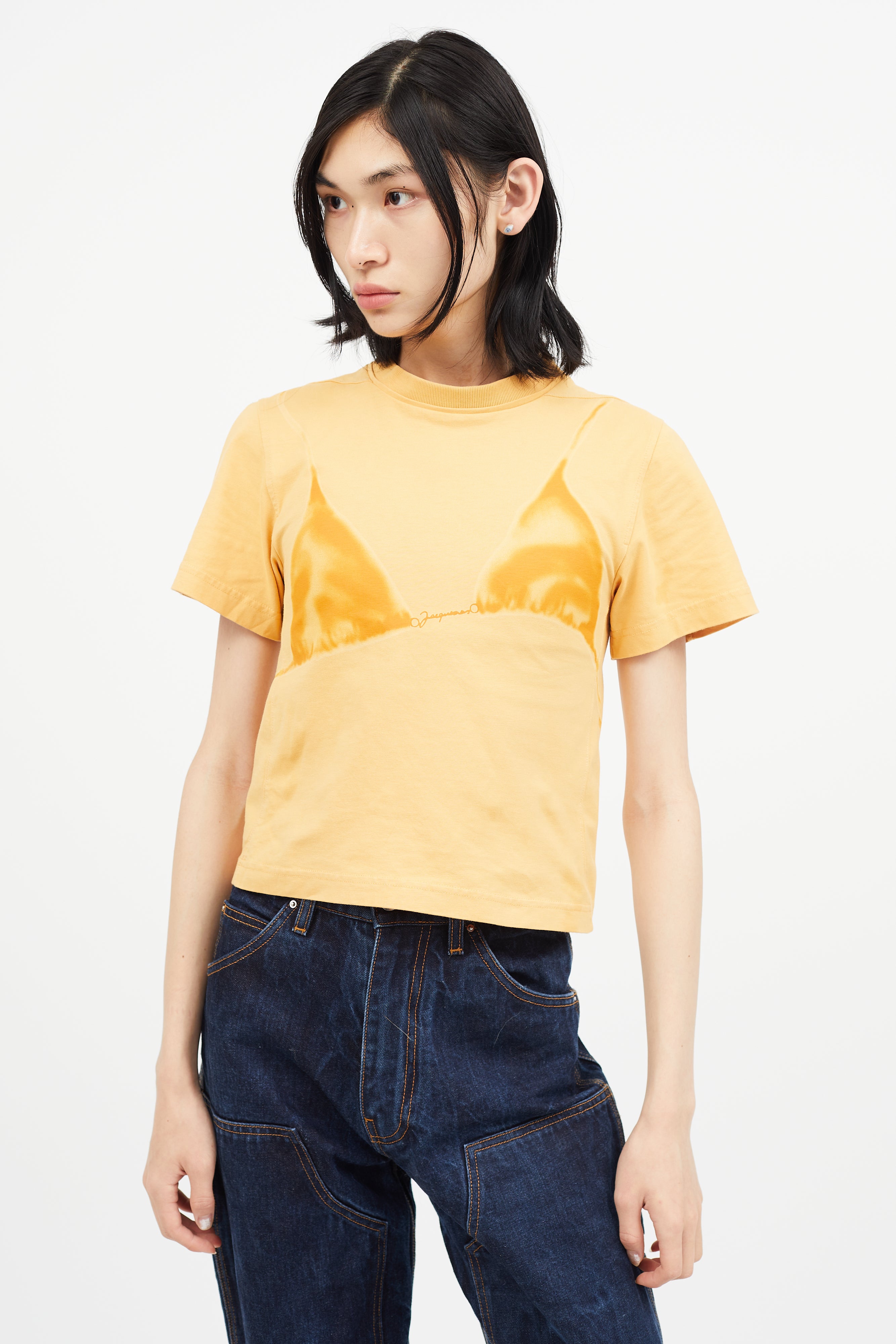 Pre-owned Jacquemus yellow tshirt featuring a tonal bikini logo print at chest, and short sleeves.