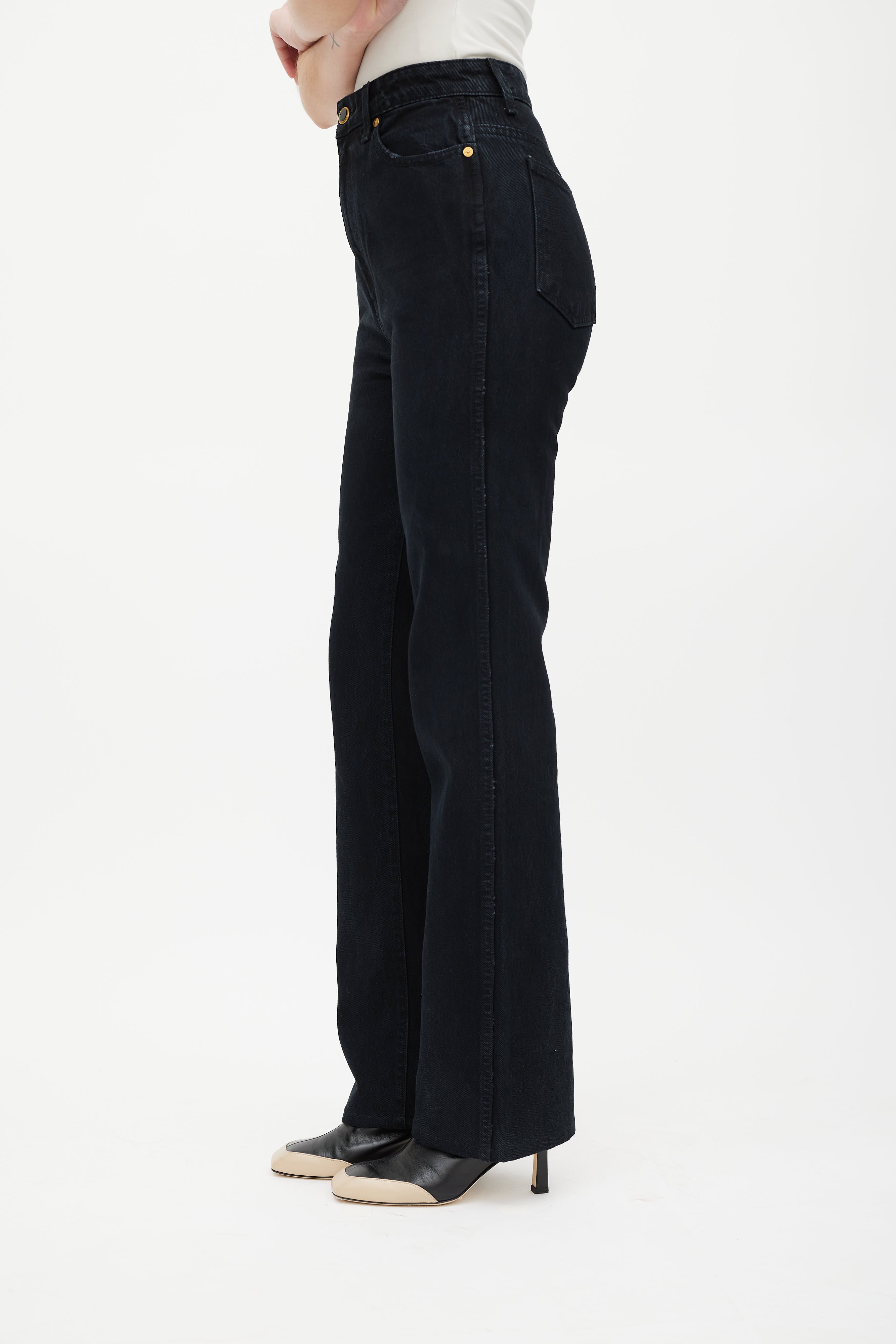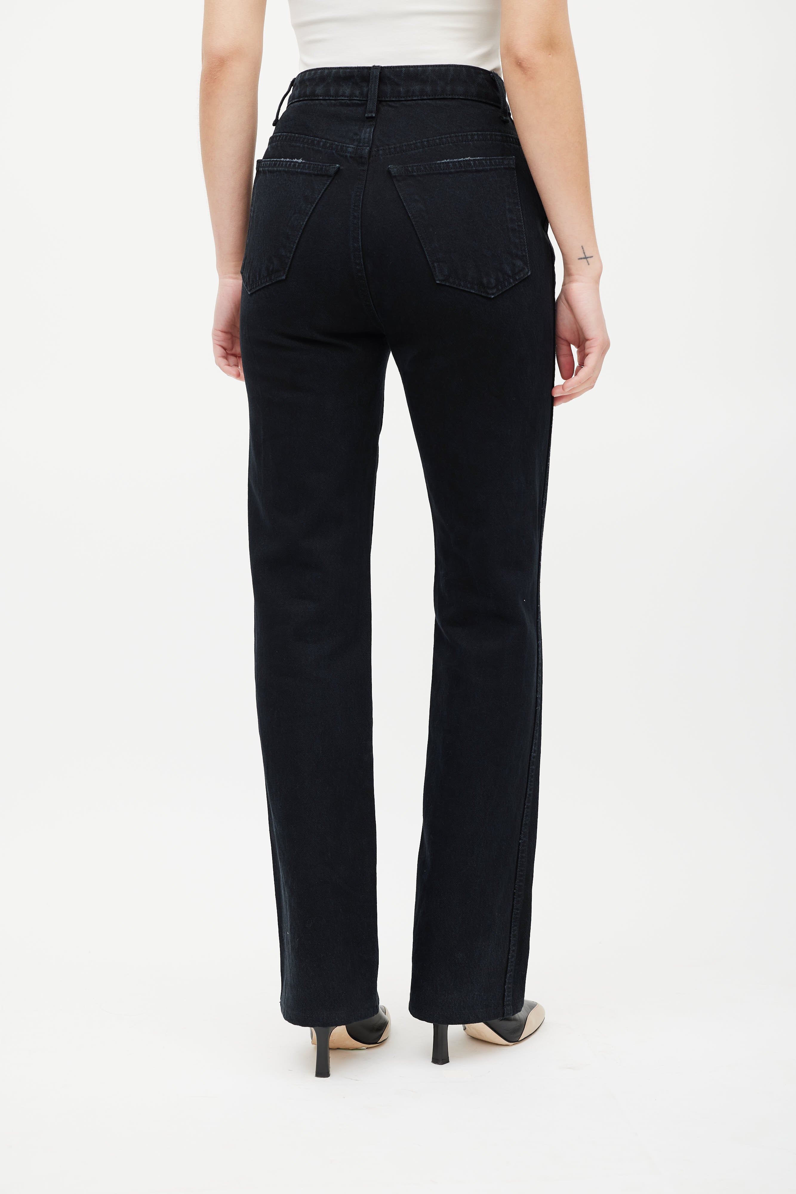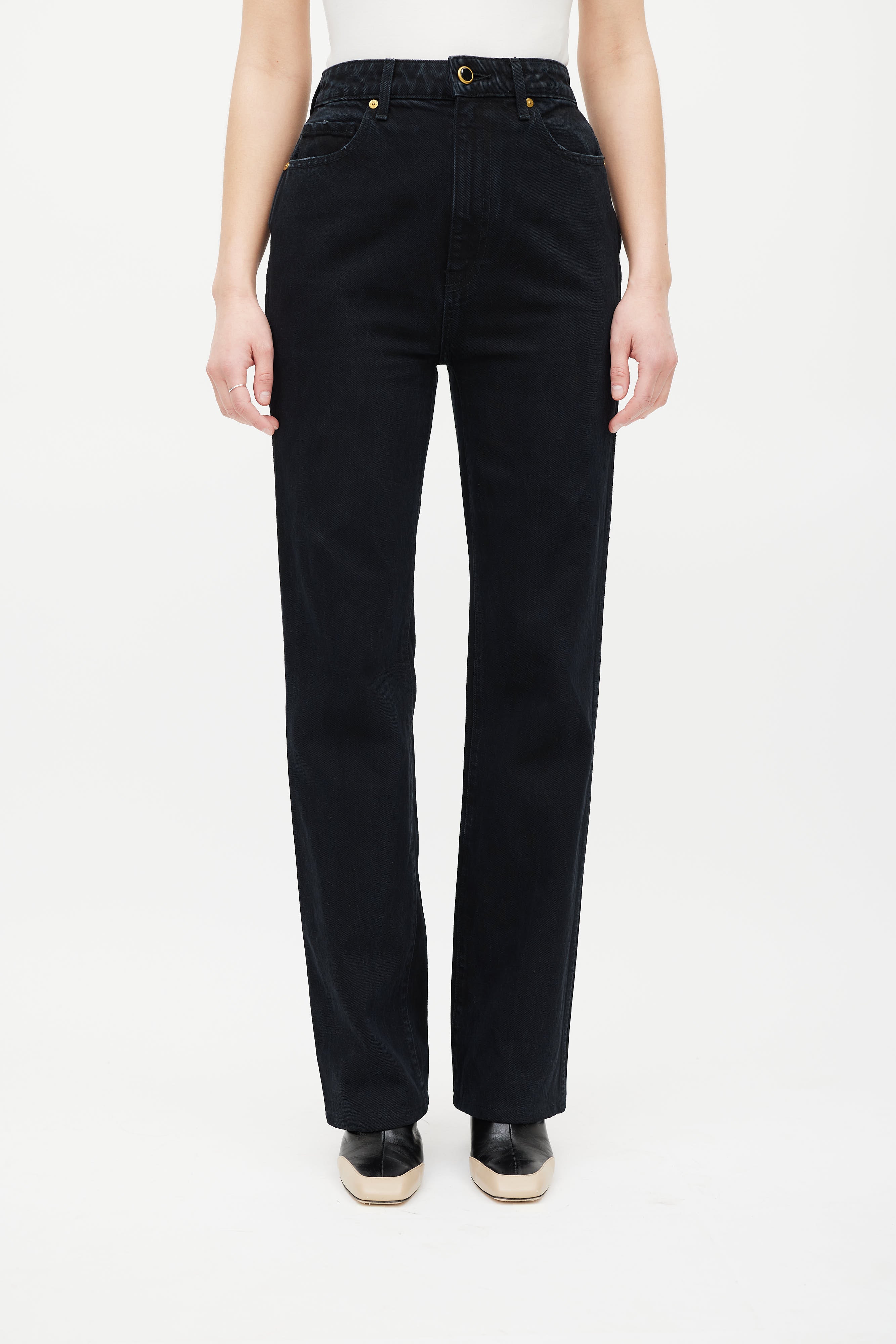 Pre-owned Khaite black Danielle jeans featuring belt loops, five pocket styling, zip fly, high rise, and straight legs.