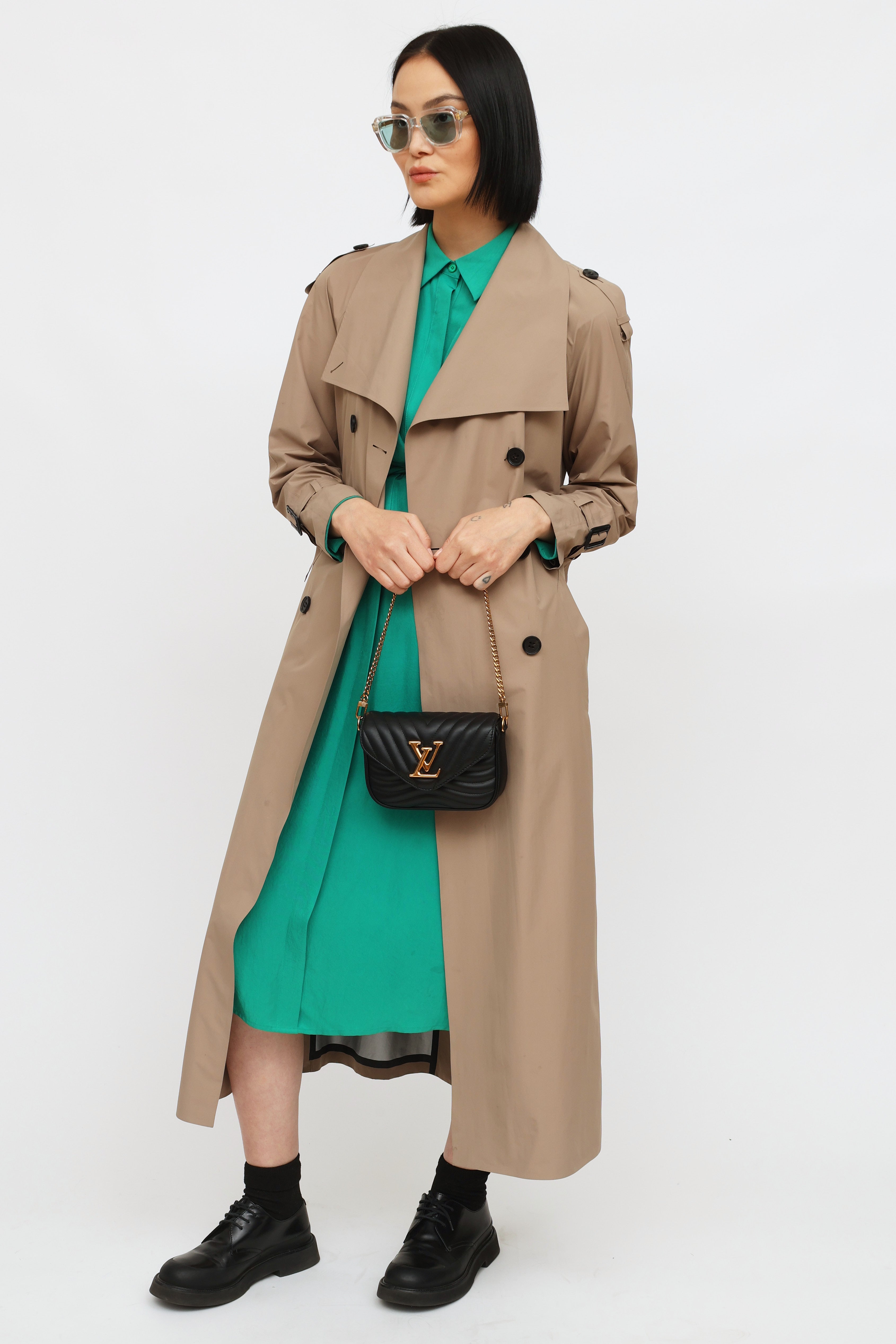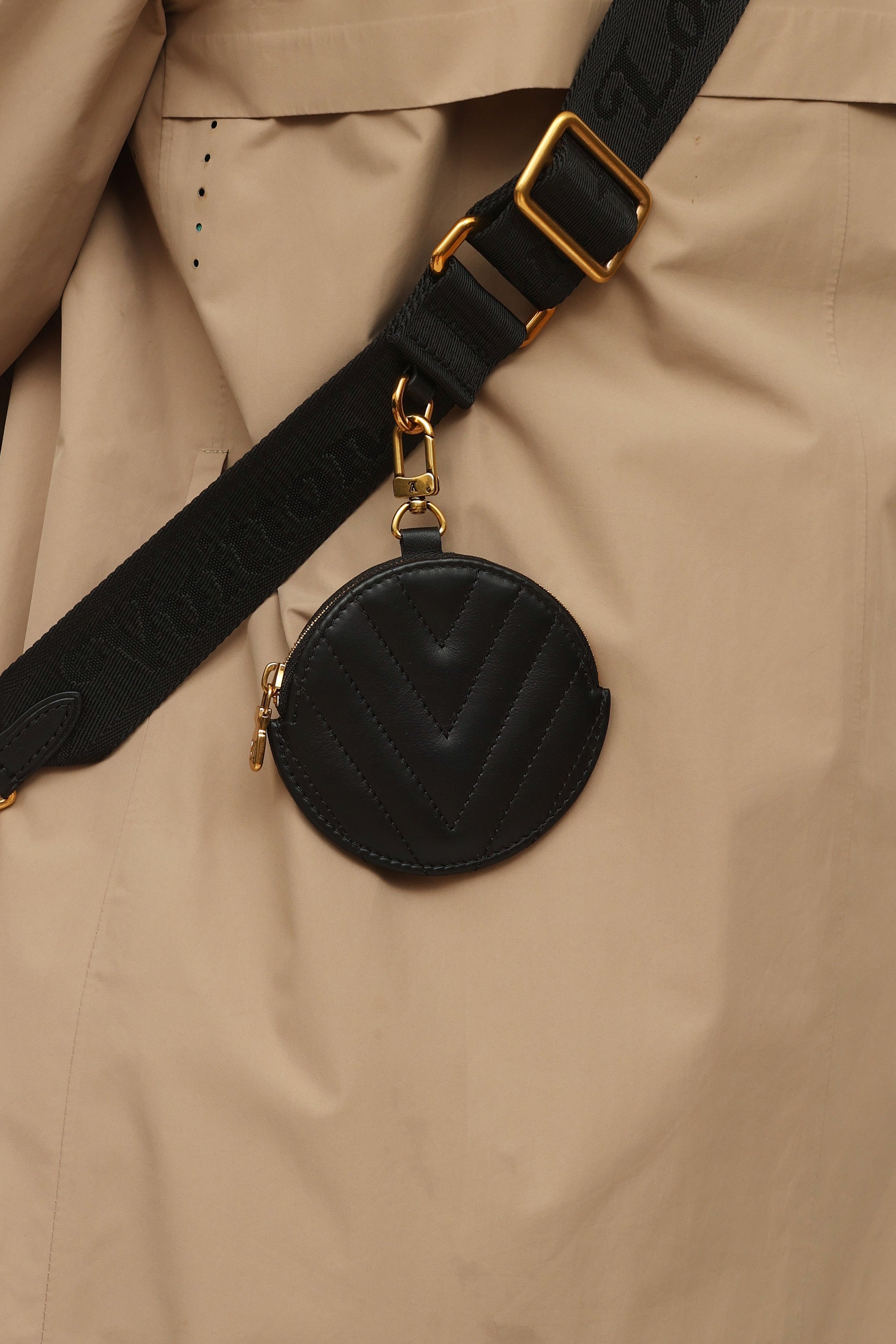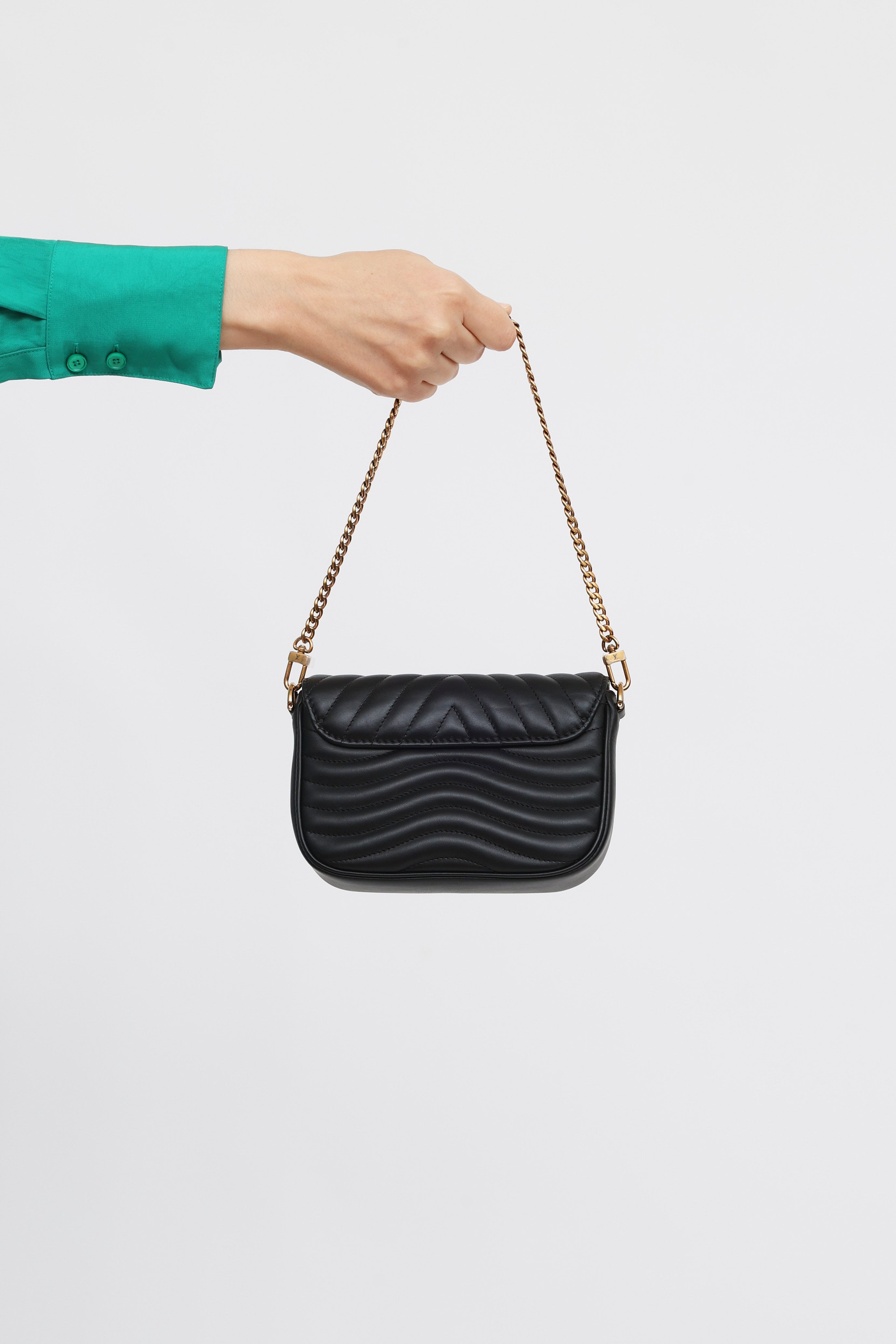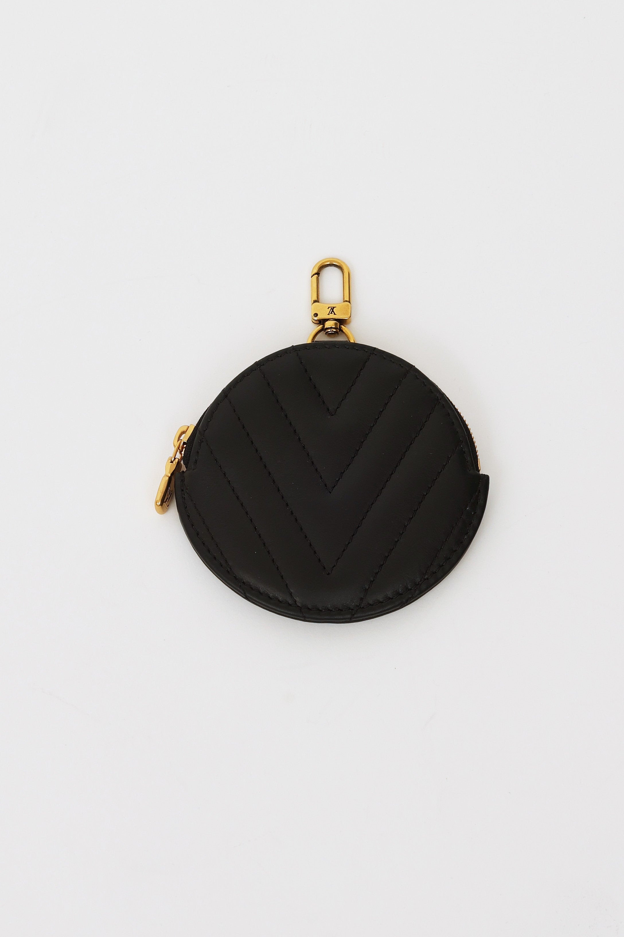 Pre-owned Louis Vuitton black New Wave Multi Pochette crossbody bag featuring quilted cowhide leather, fold over flap with magnetic closure, LV gold-tone logo hardware with detachable chain shoulder strap. Includes adjustable/detachable fabric strap featuring embroidered text logo and detachable quilted leather round coin purse. Microfiber lining. Microchipped.