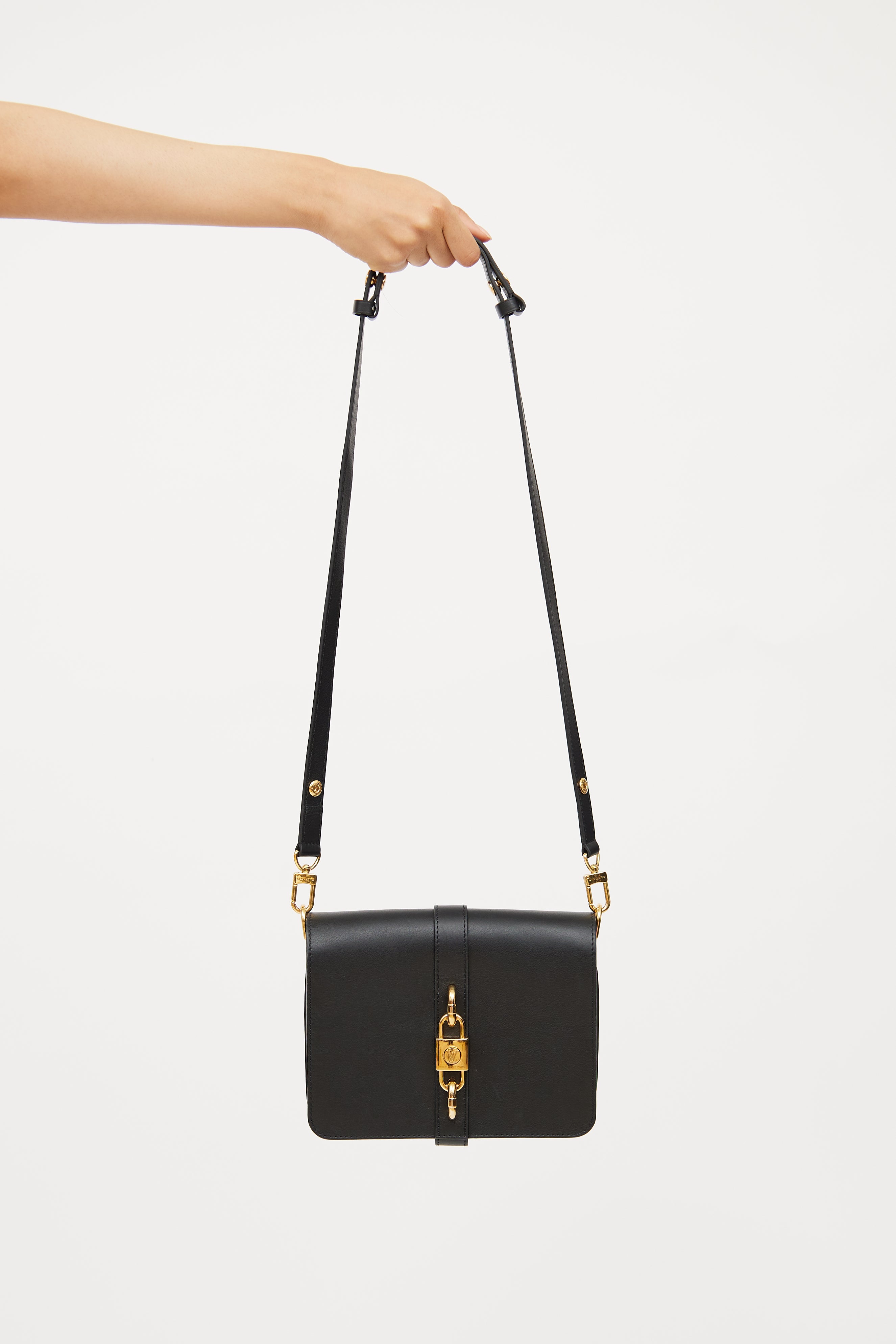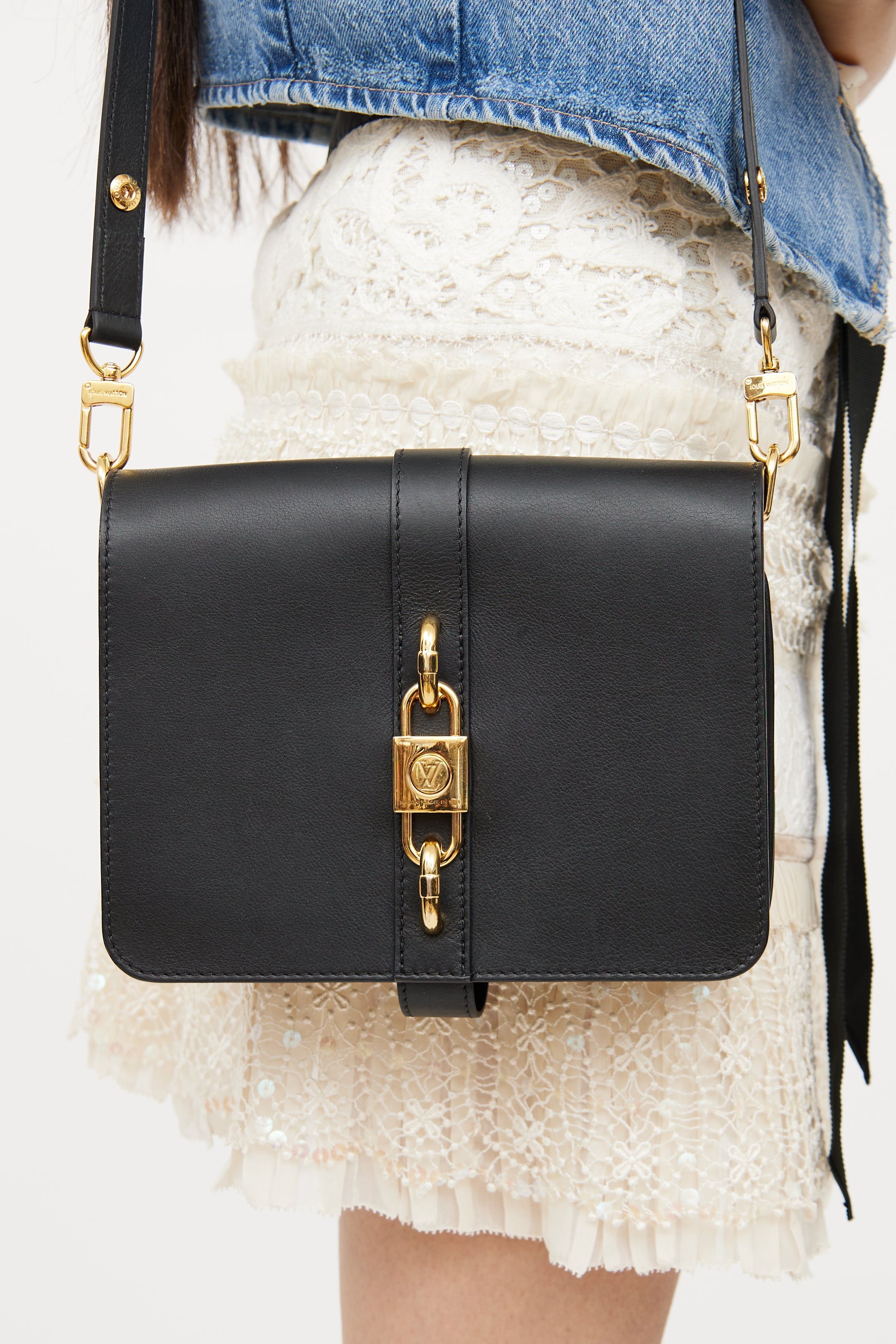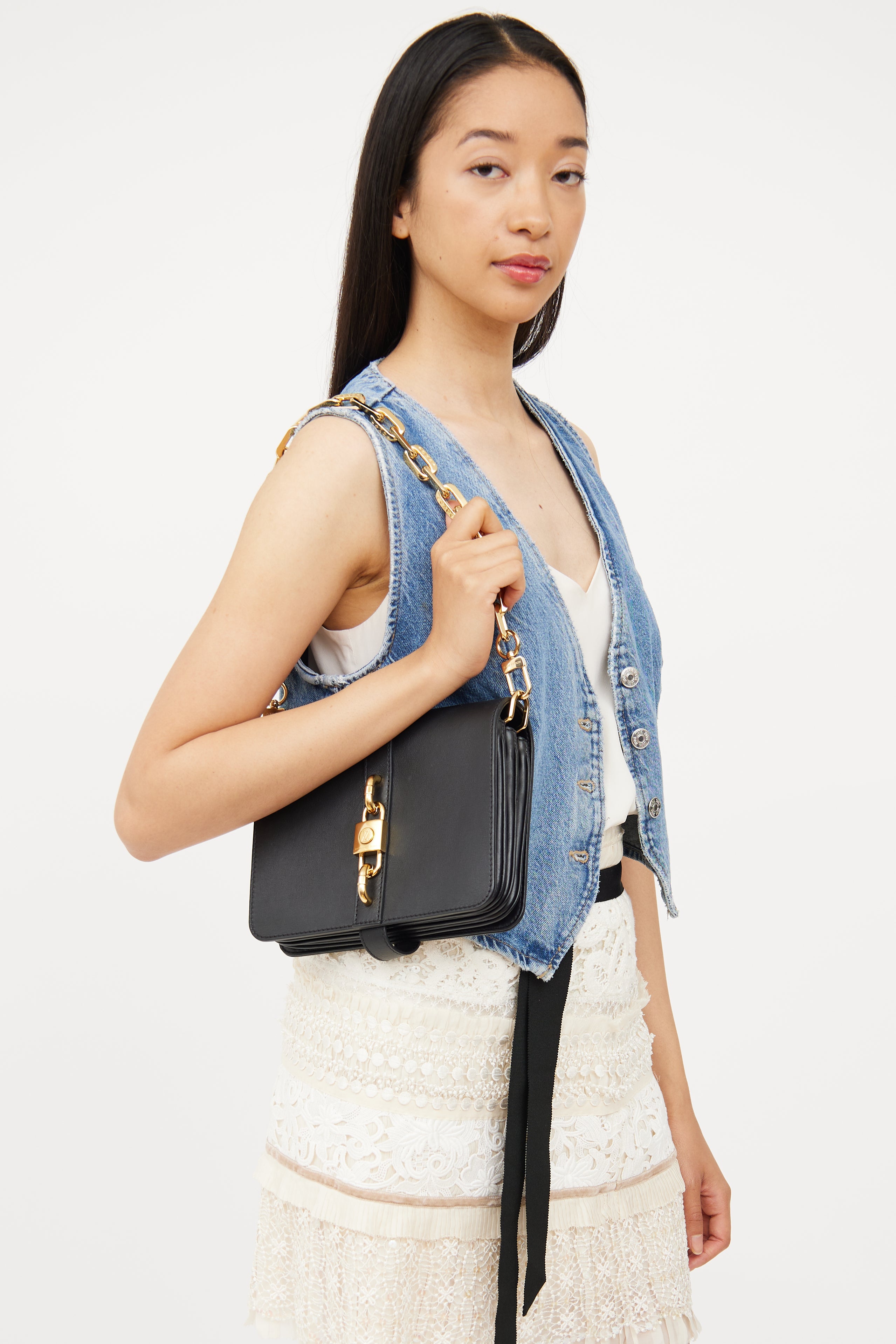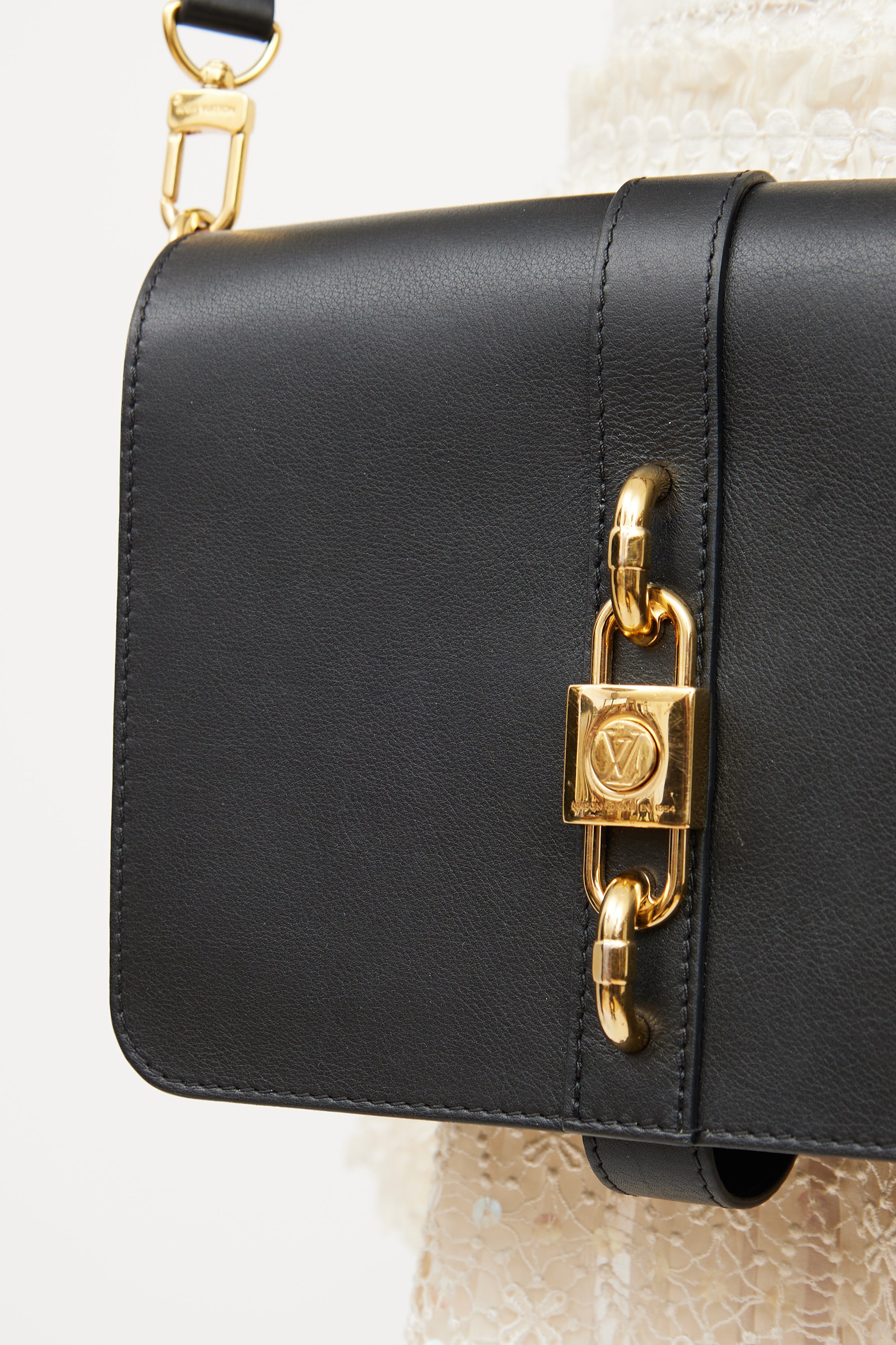 Pre-owned Louis Vuitton black Rendez-Vous Bag featuring removable flat shoulder strap, gold tone hardware, strap detail on top flap with logo lock and chain hardware, adjustable snap button strap on back, collapsible sides and magnetic closure top flap. Monogram canvas dual main compartments and single zip pocket.
