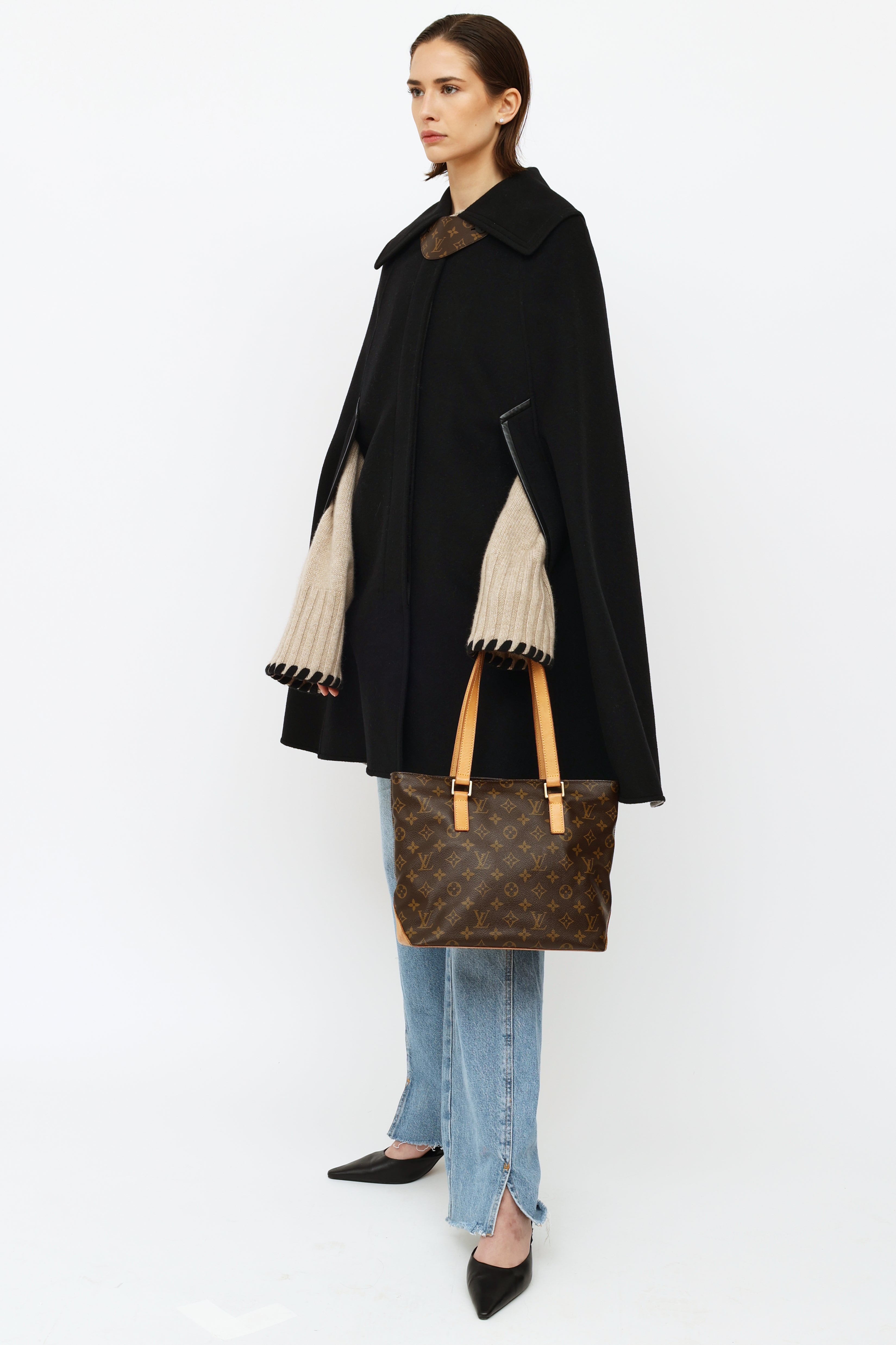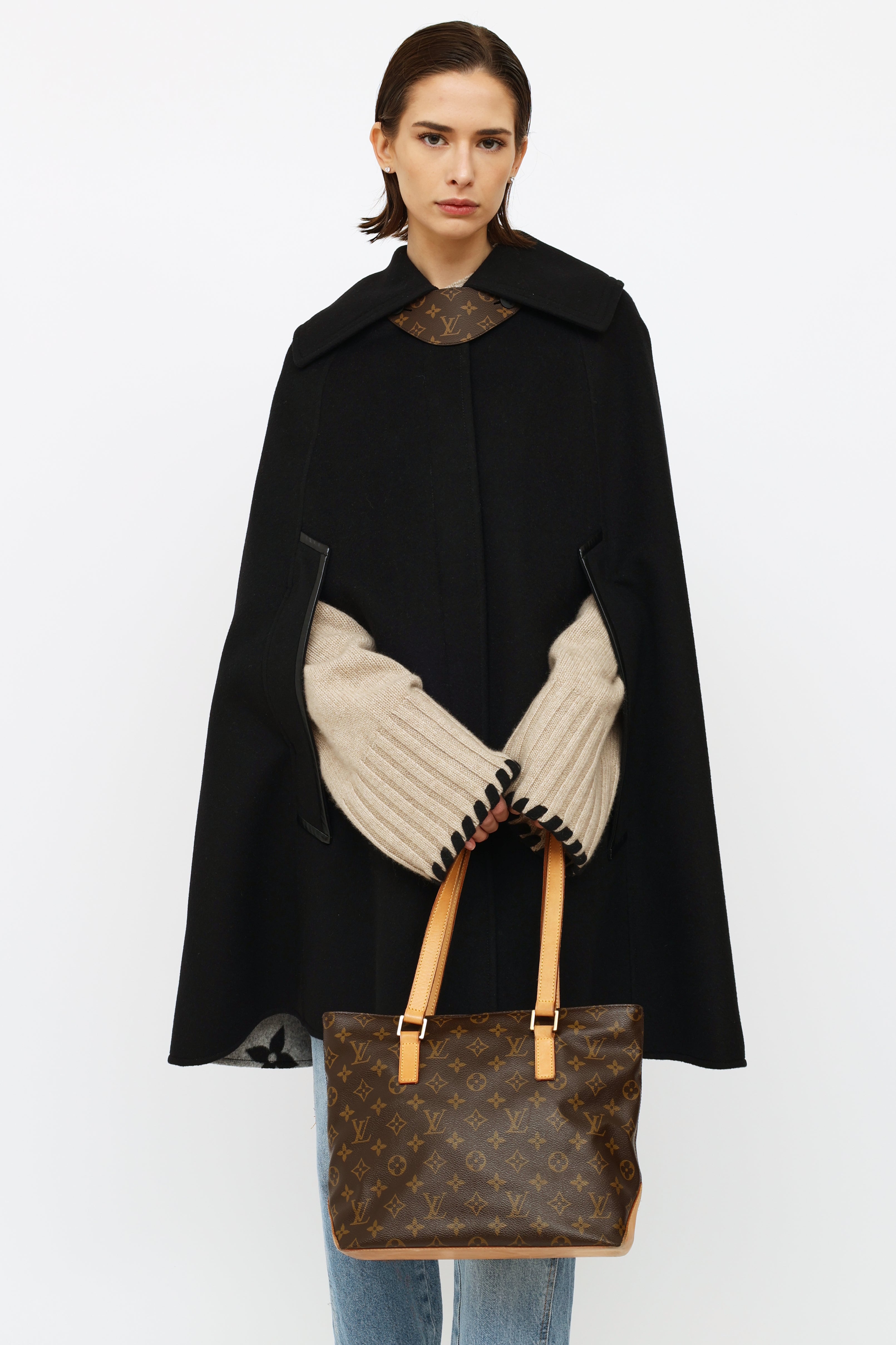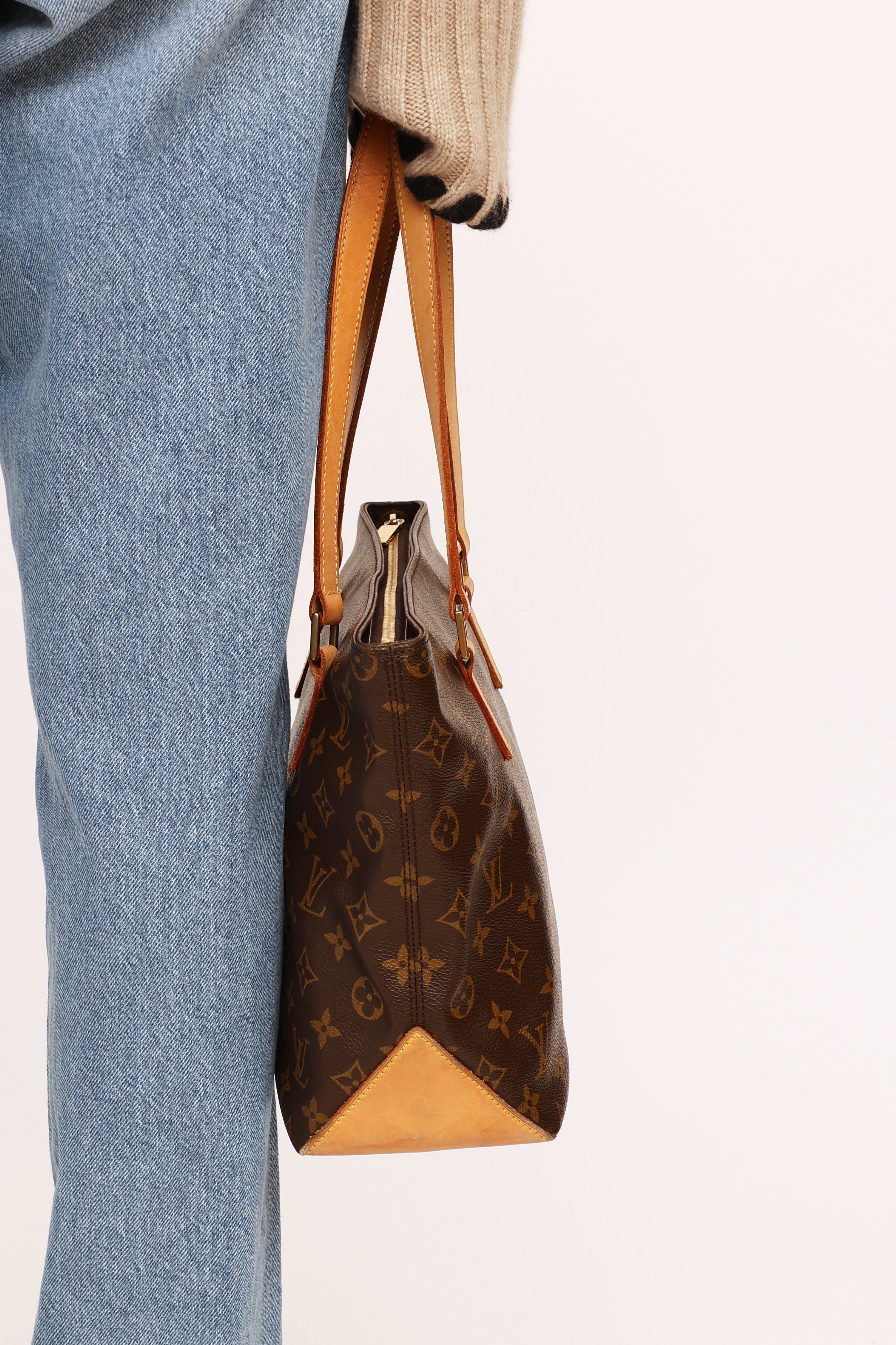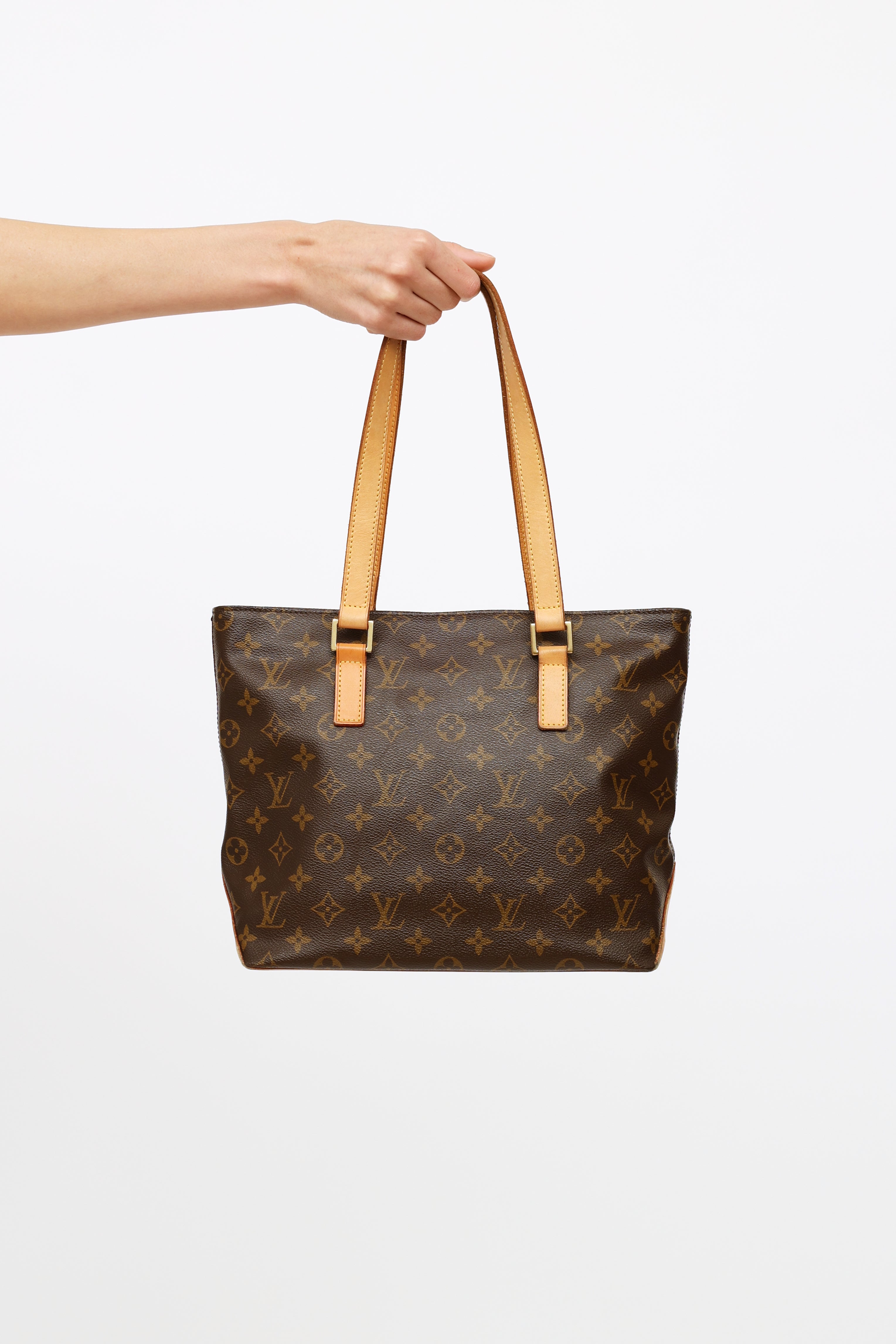 Pre-owned Louis Vuitton Cabas Piano bag in monogram coated canvas featuring Vachetta leather flat straps, gold-tone hardware, beige leather base, top zip closure, brown canvas lined interior, one zip pocket, one flat pocket, and D ring.