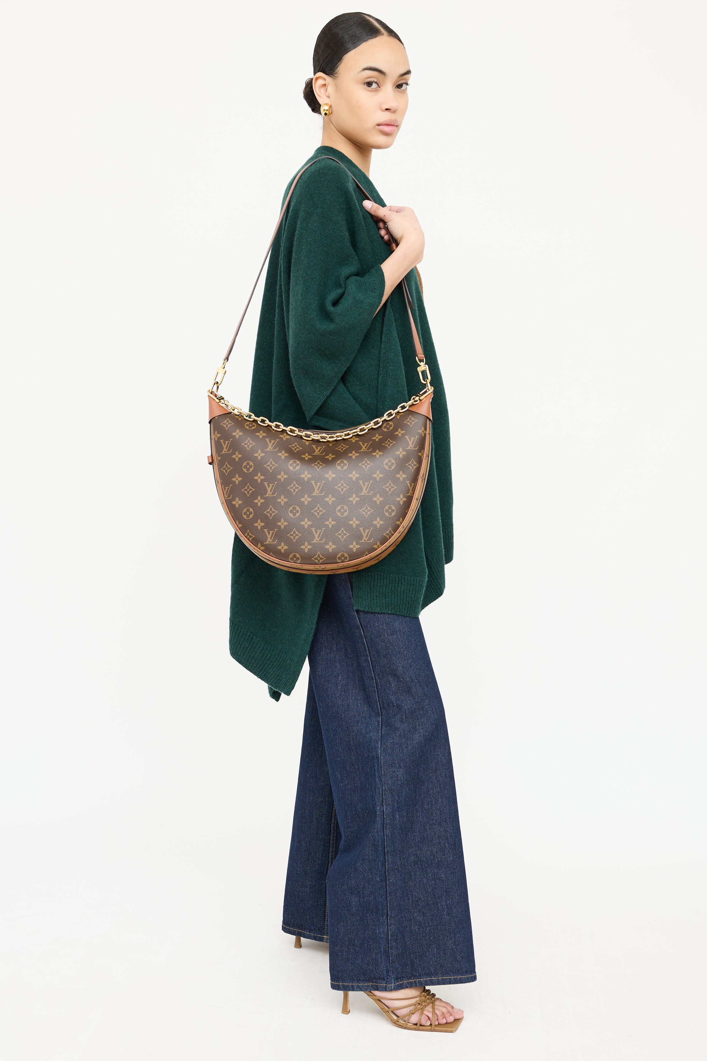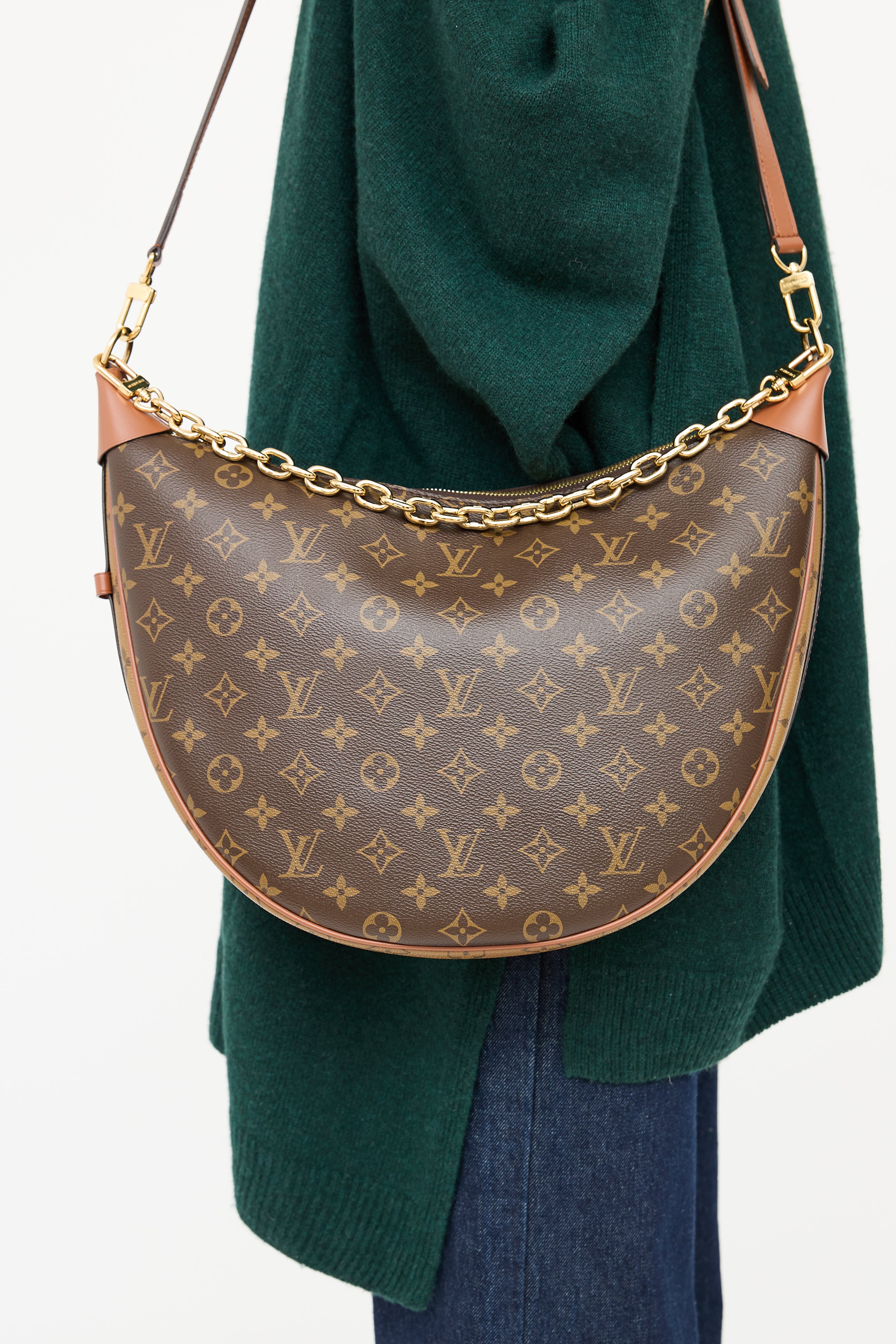 Pre-owned Louis Vuitton loop shoulder bag featuring contrasting classic brown LV monogram, coated canvas, leather trim on sides, interlocking chain strap with gold-tone hardware, central compartment with dual leather tab zip closures. Interior features black textile lining with detachable mini brown monogram pouch in coated canvas featuring one central compartment with zip closure, one slot pocket and gold-tone hardware.