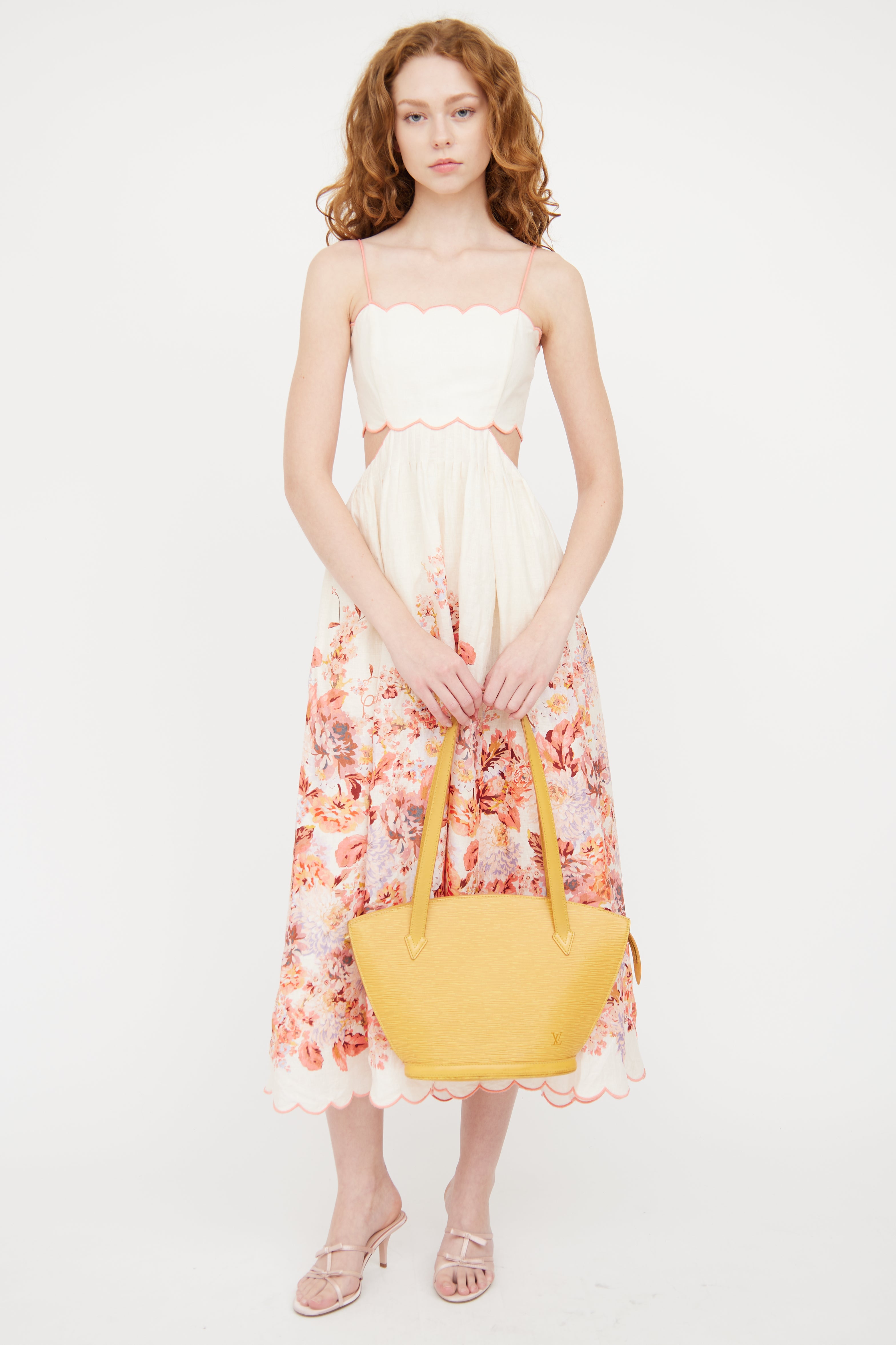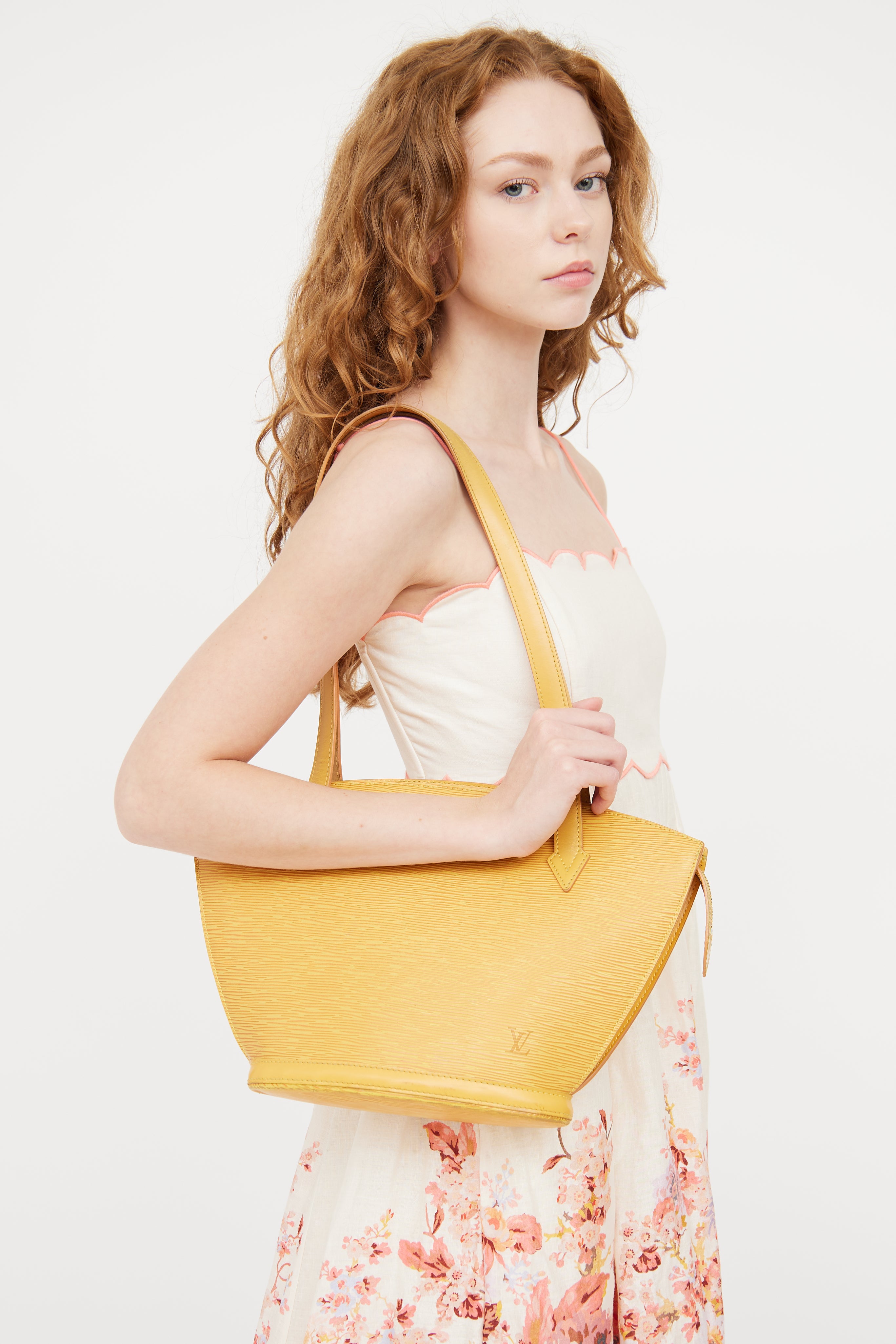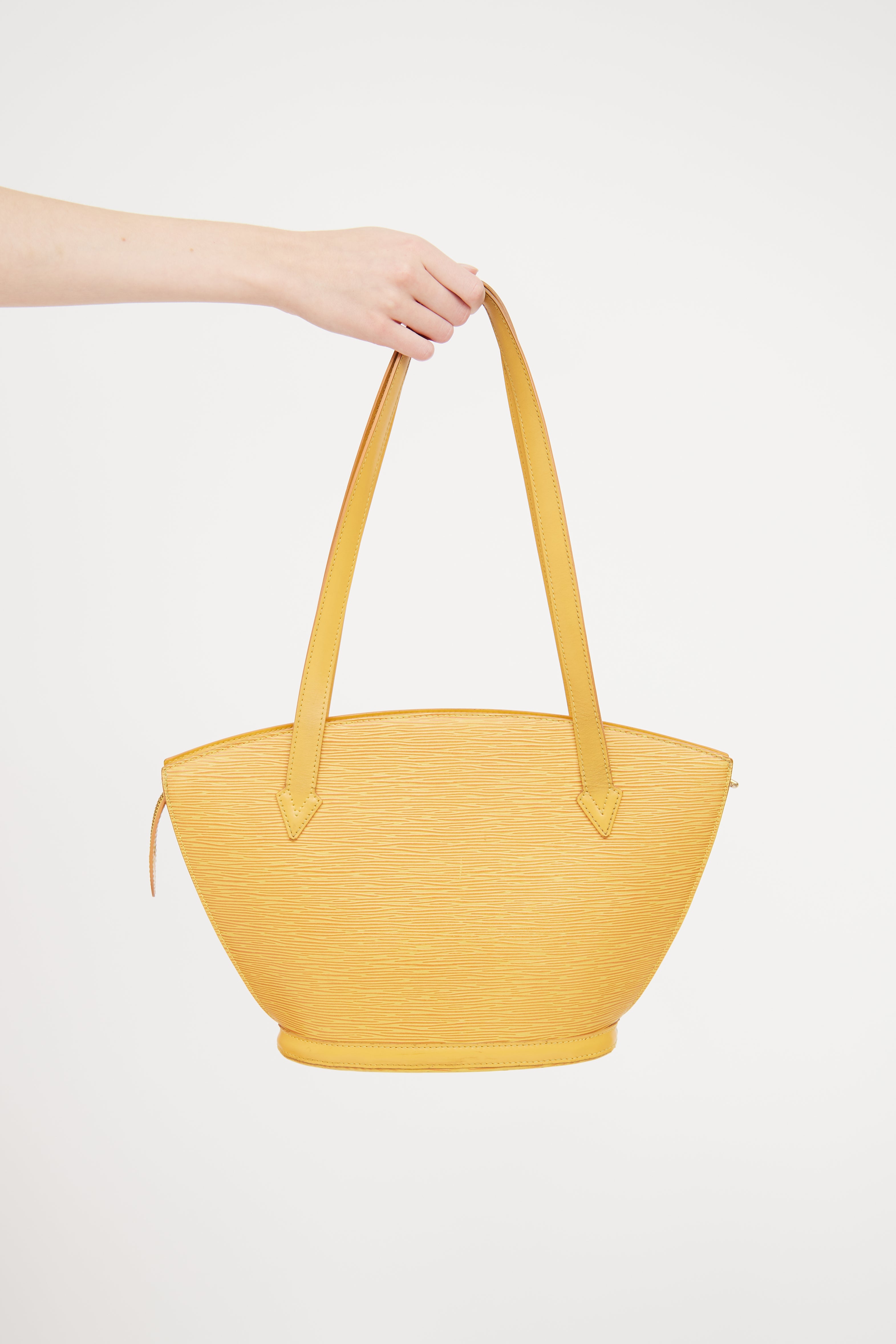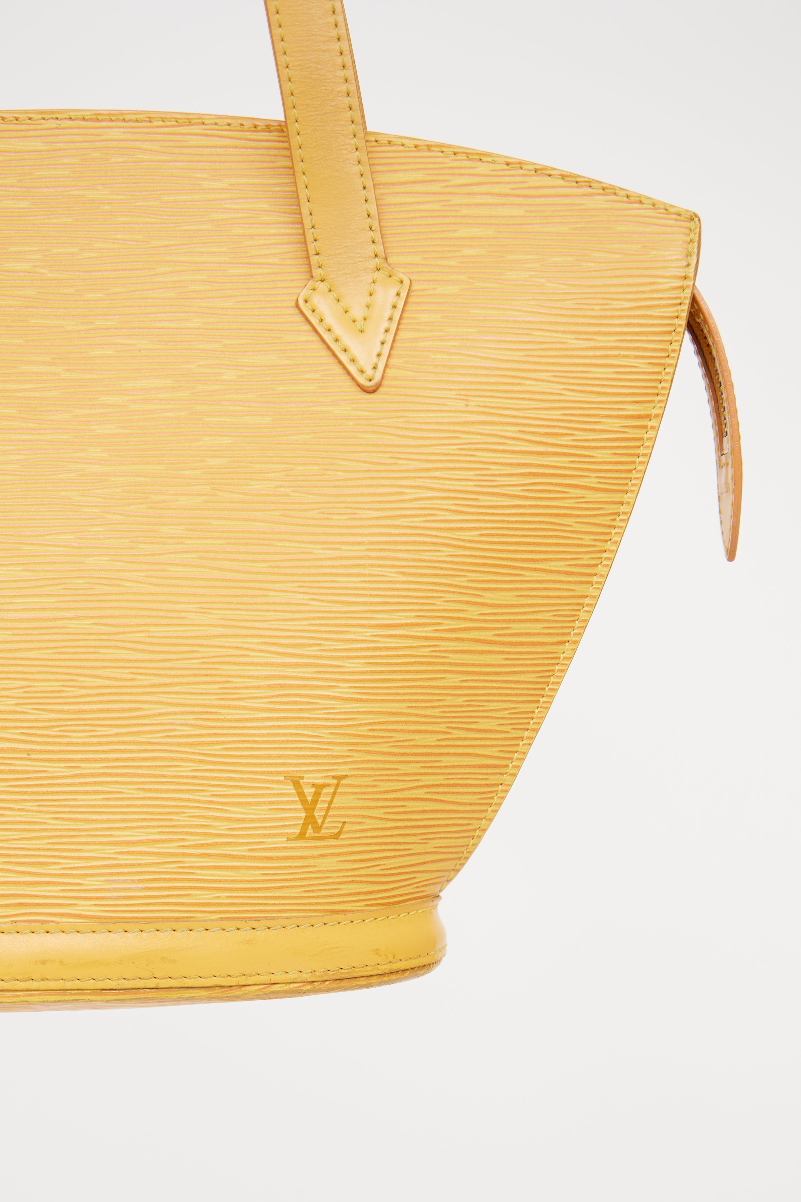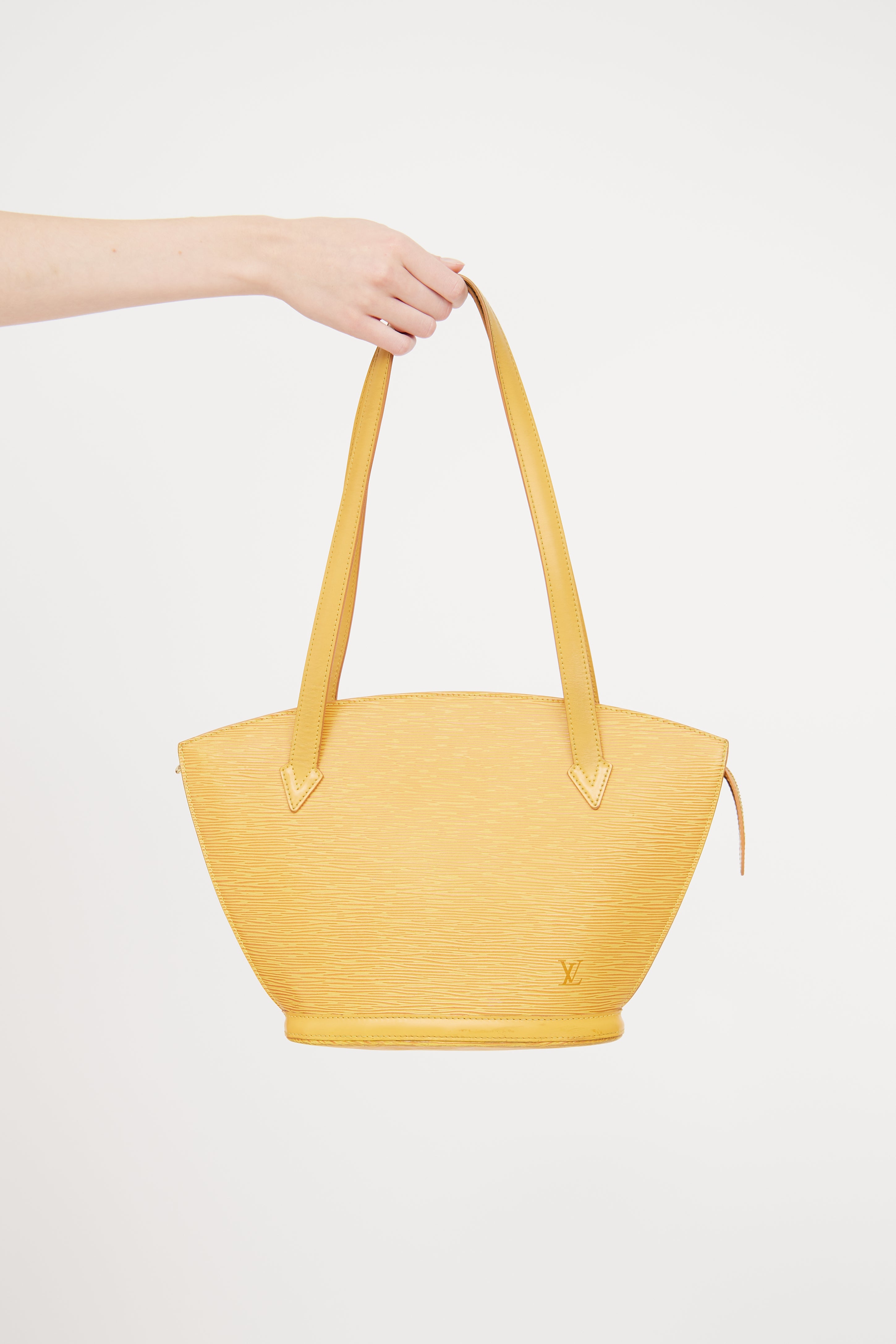 Pre-owned Louis Vuitton yellow Saint Jacques bag in textured Epi leather featuring dual flat top handles, debossed logo at corner, one main compartment with one slip pocket, and top zip closure.