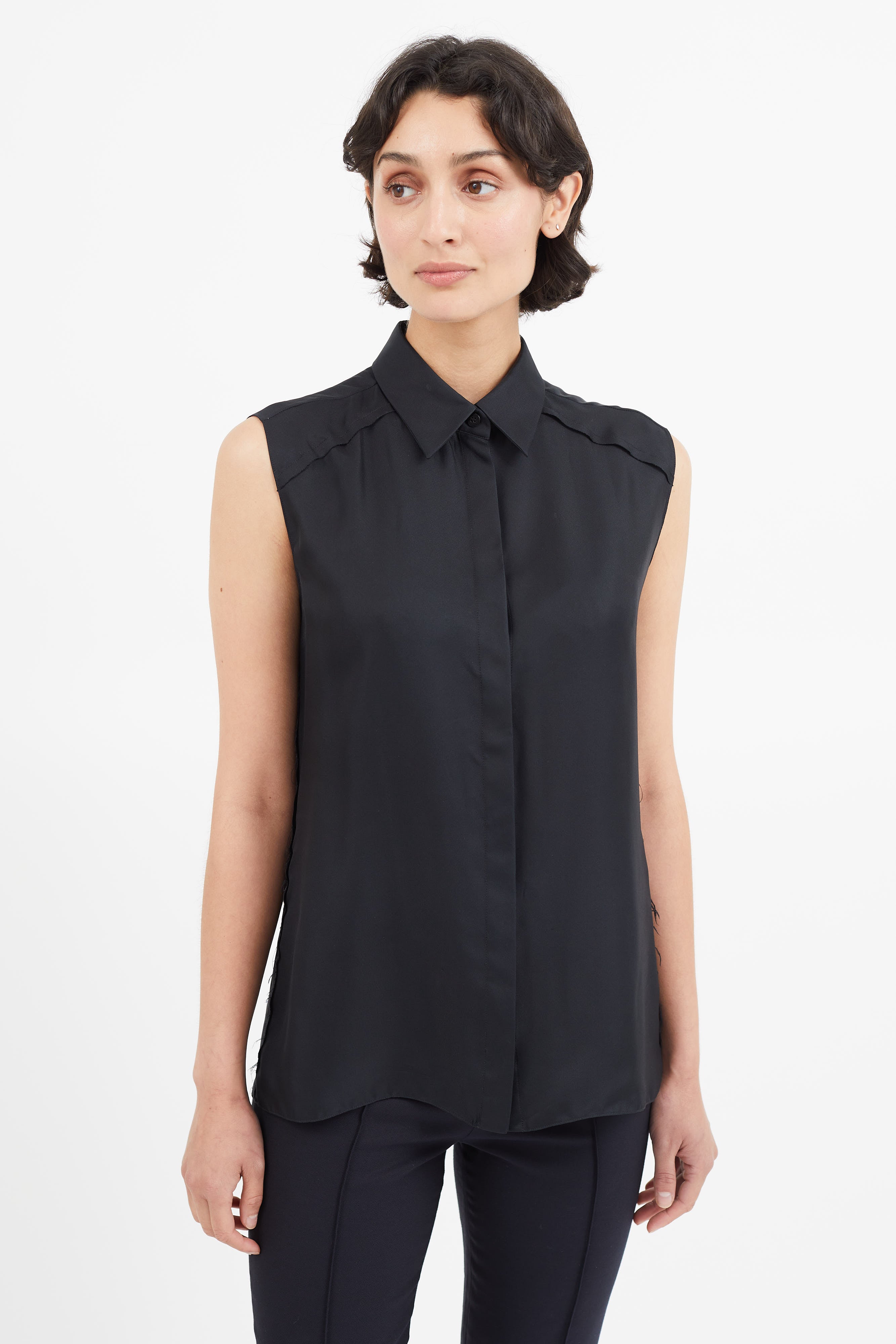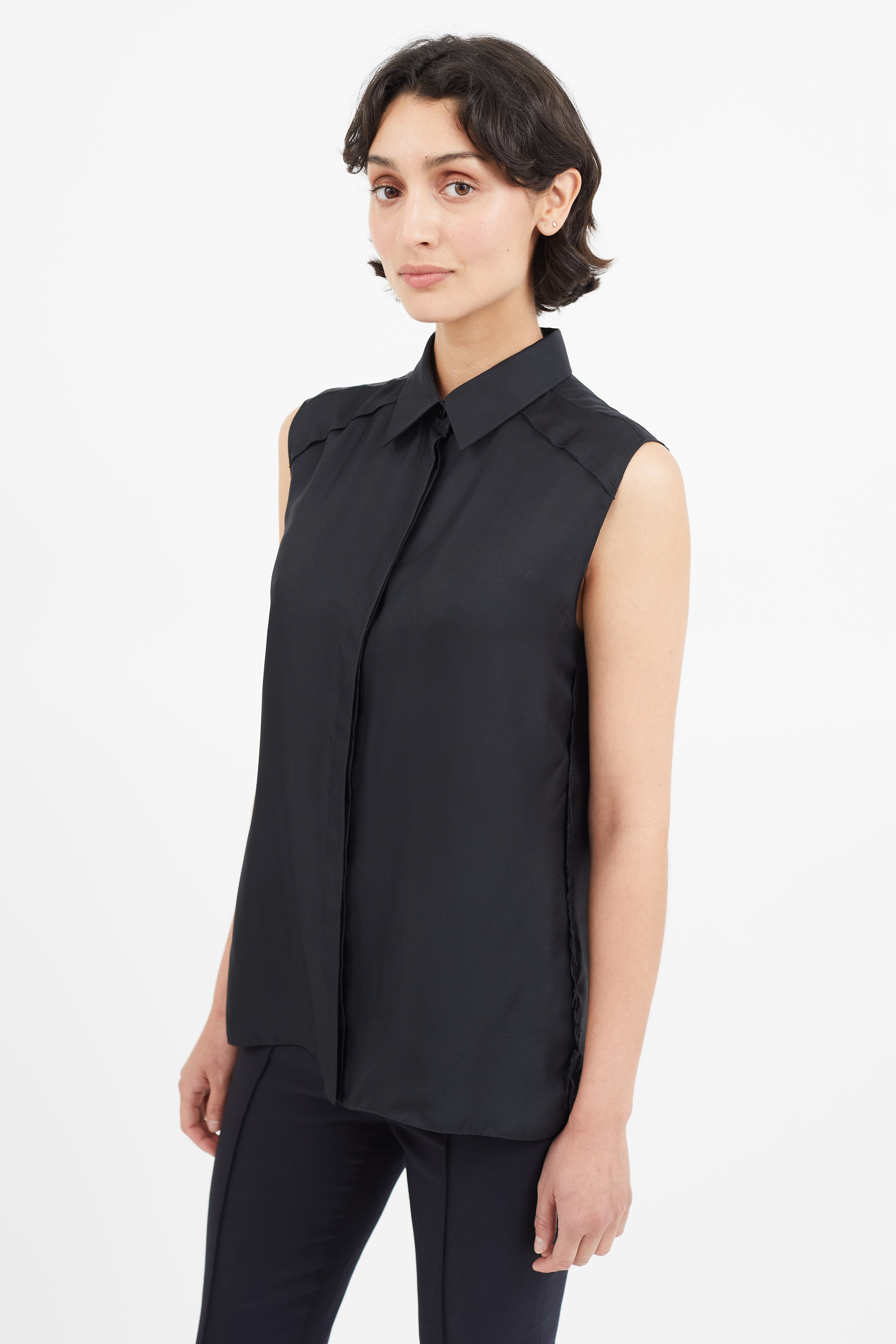 Black Sleeveless Silk Distressed Shirt IT 42 Size Guide