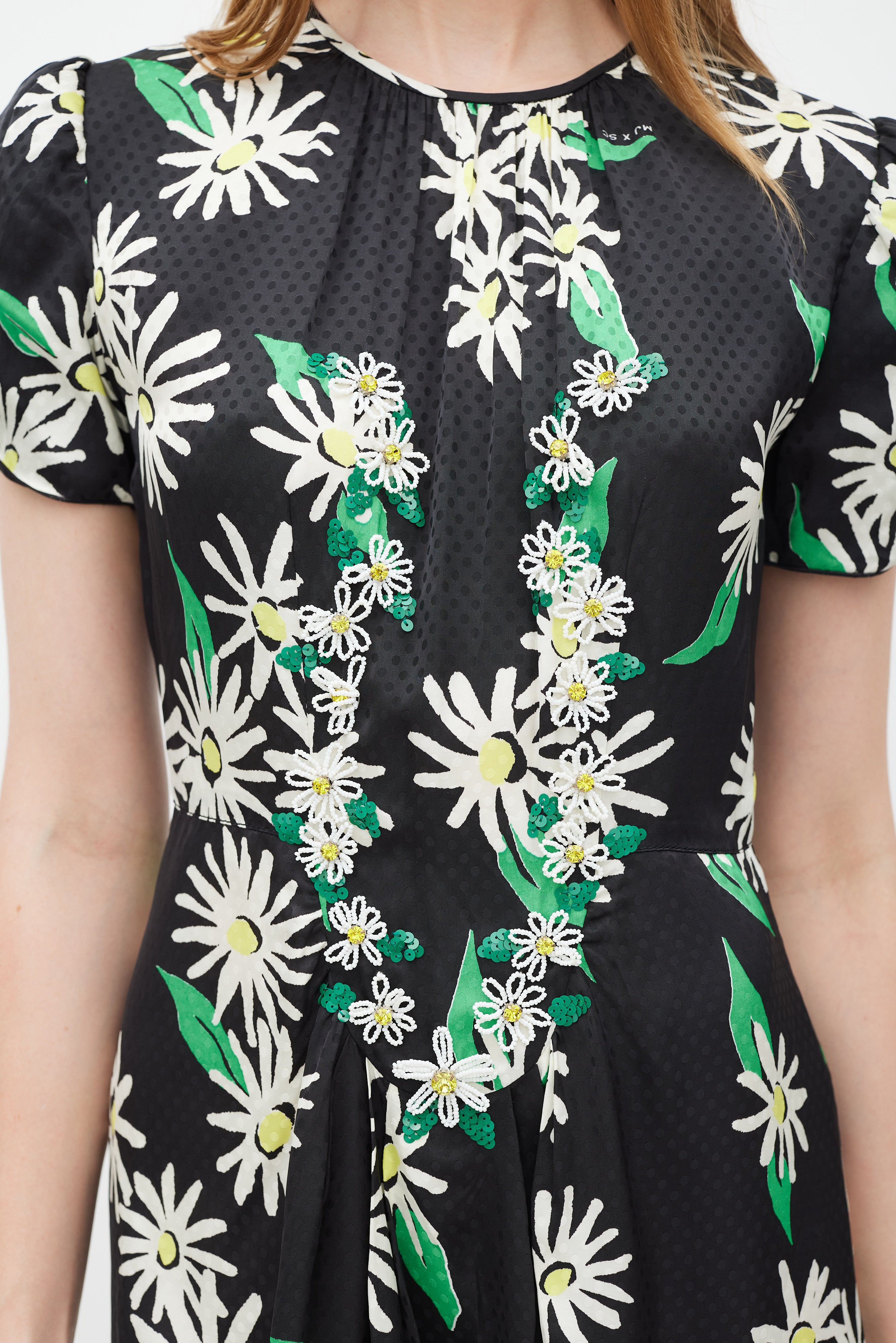 Pre-owned Marc Jacobs x Sofia Coppola black The 40's dress featuring a multicolour floral pattern throughout, round neckline, short puffed sleeves with bow detail, beaded floral detailing at front, pleated skirt, and zip at back with hook and eye closure. Lined.