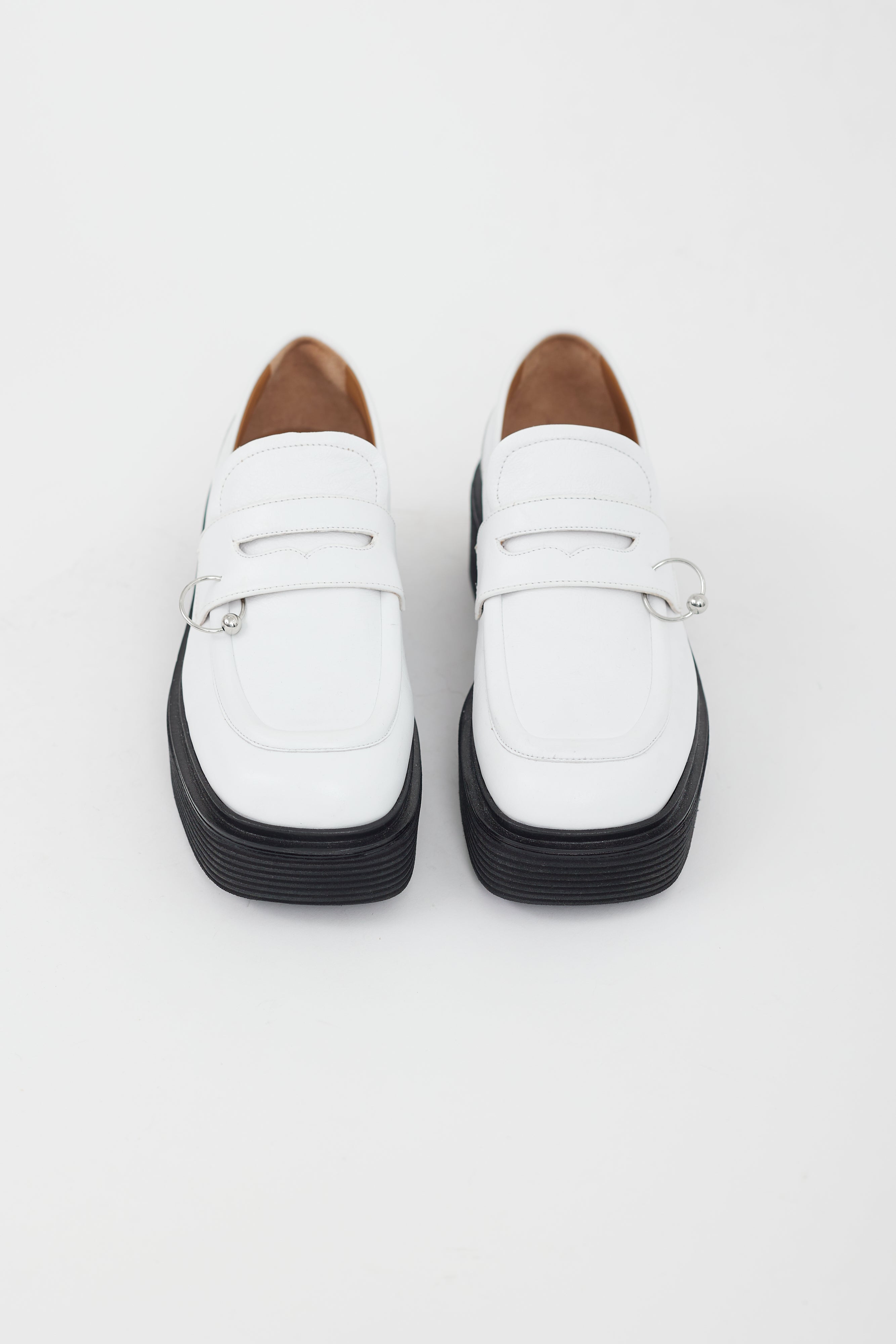 White Leather Pierced Platform Loafer IT 37.5 Size Guide