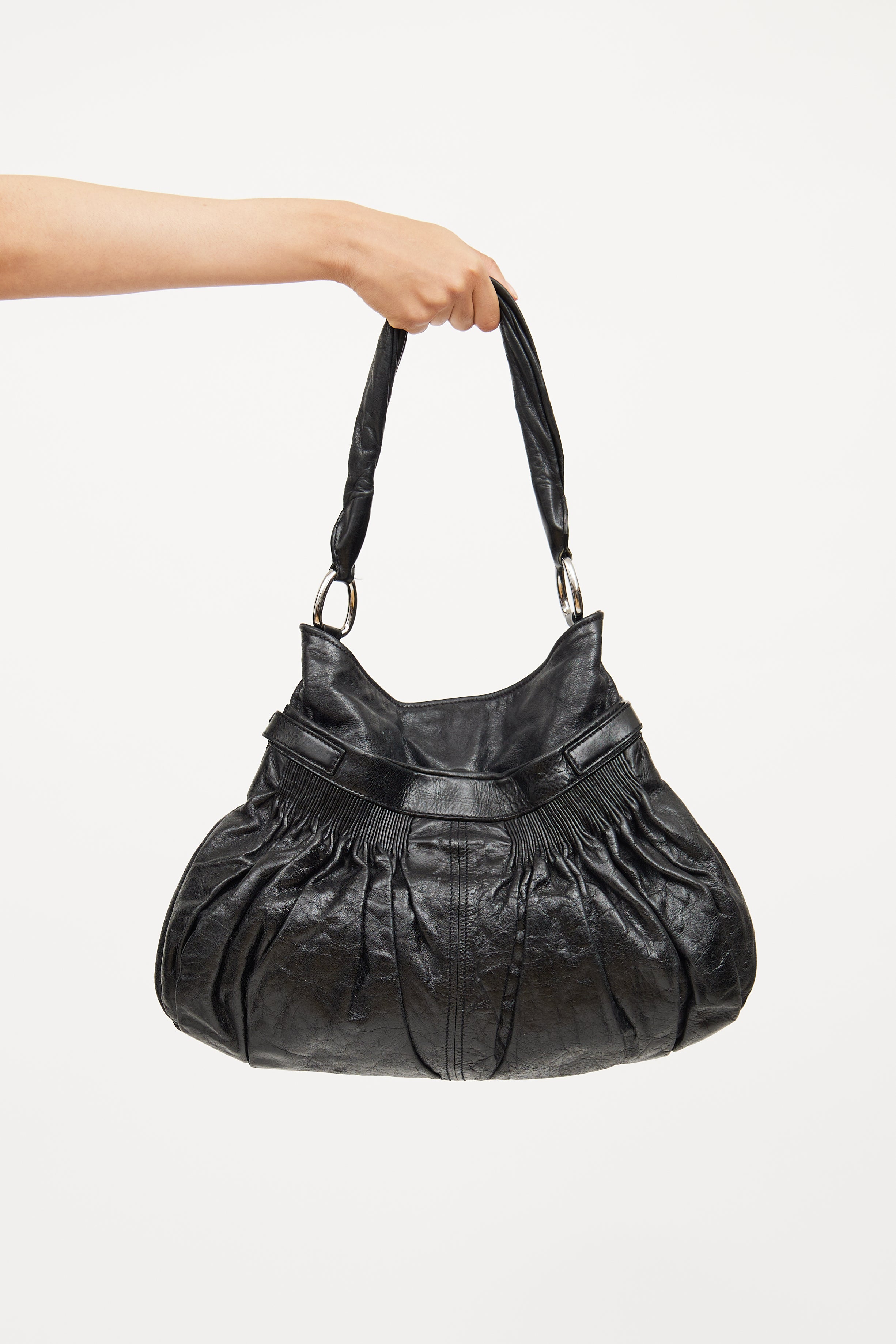 Black Ruched Shoulder Bag