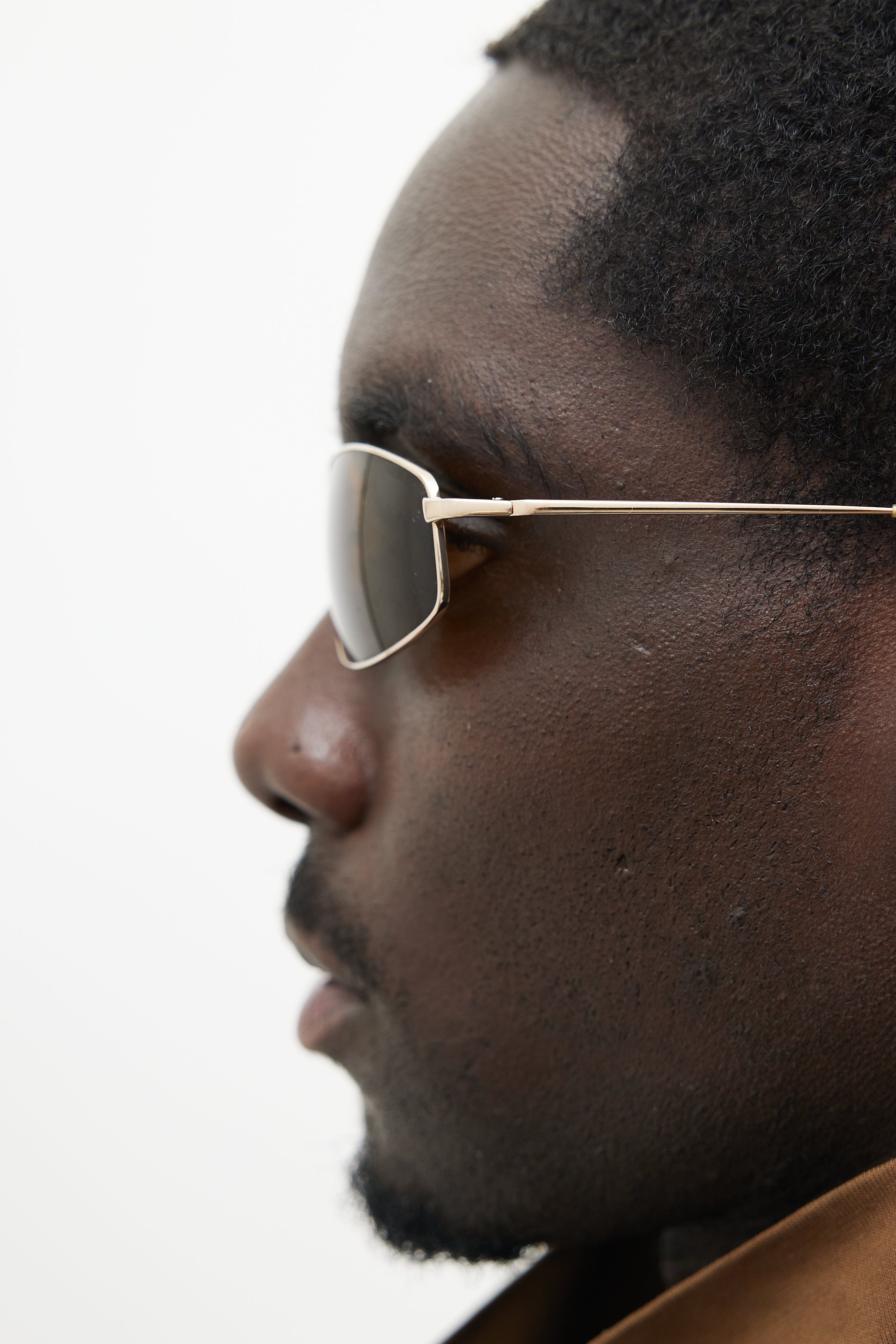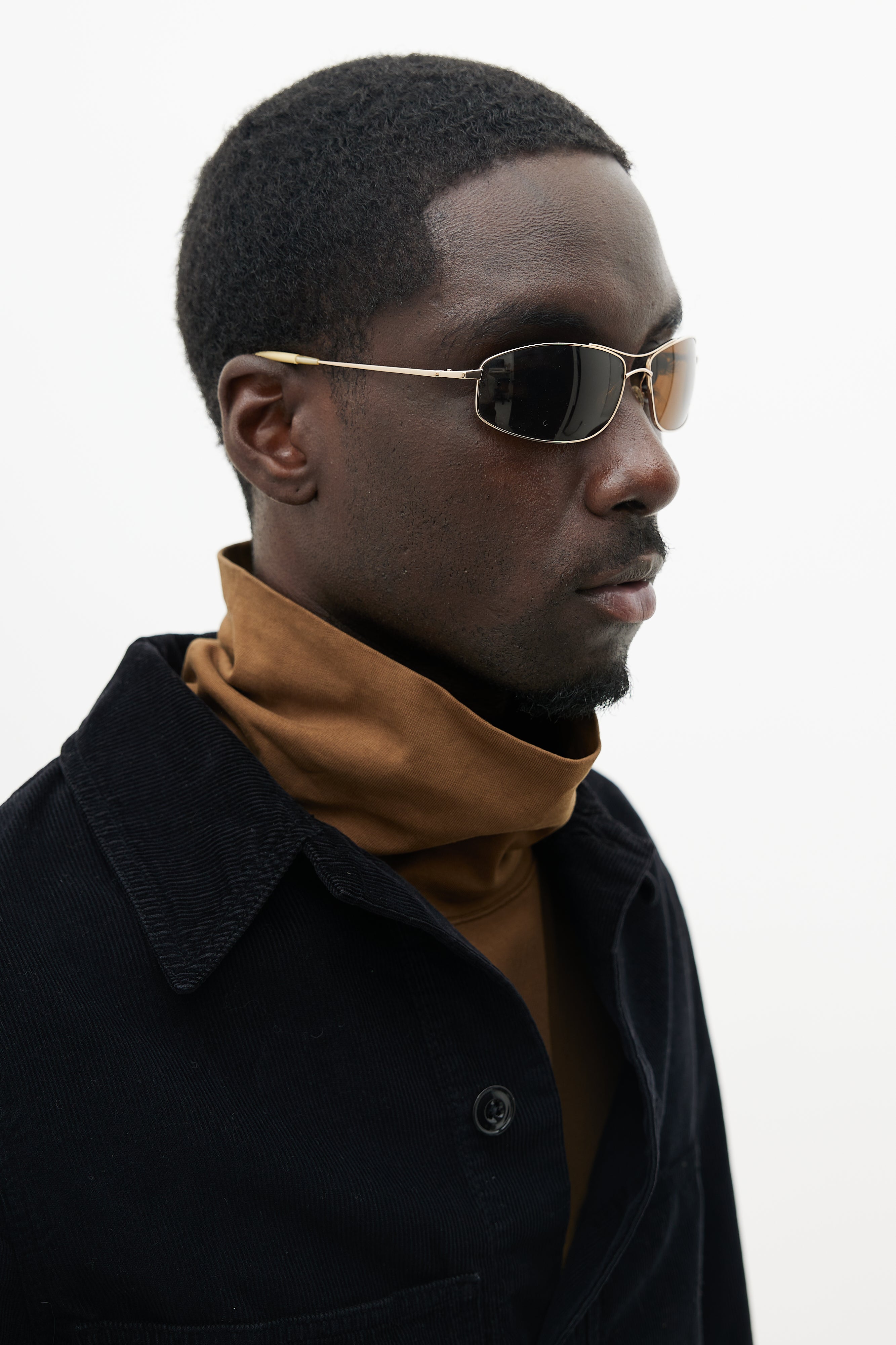 Pre-owned Oliver Peoples Nitro 61 sunglasses featuring brown tinted lenses, silver tone frame, nose pads, and double nose bridge.