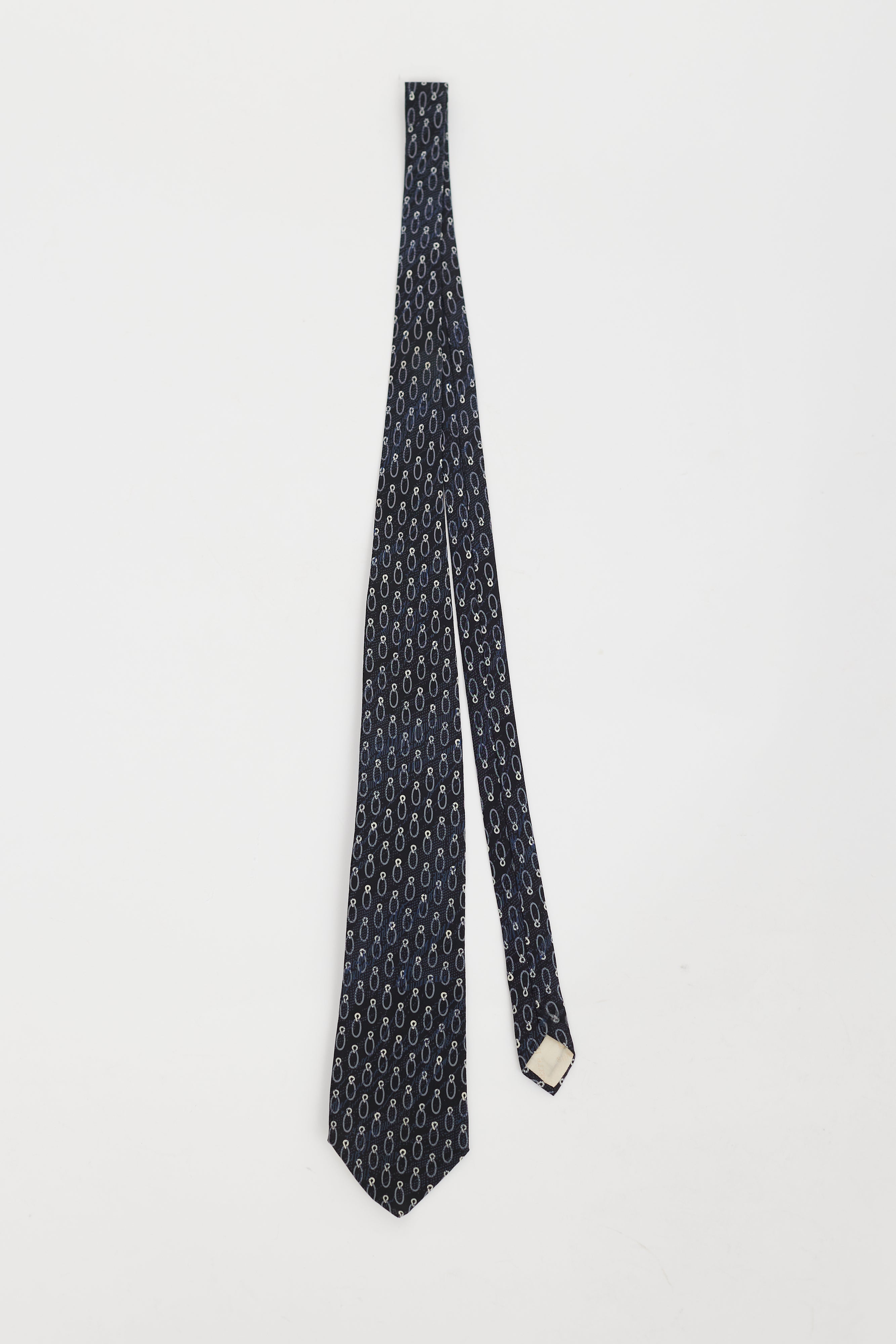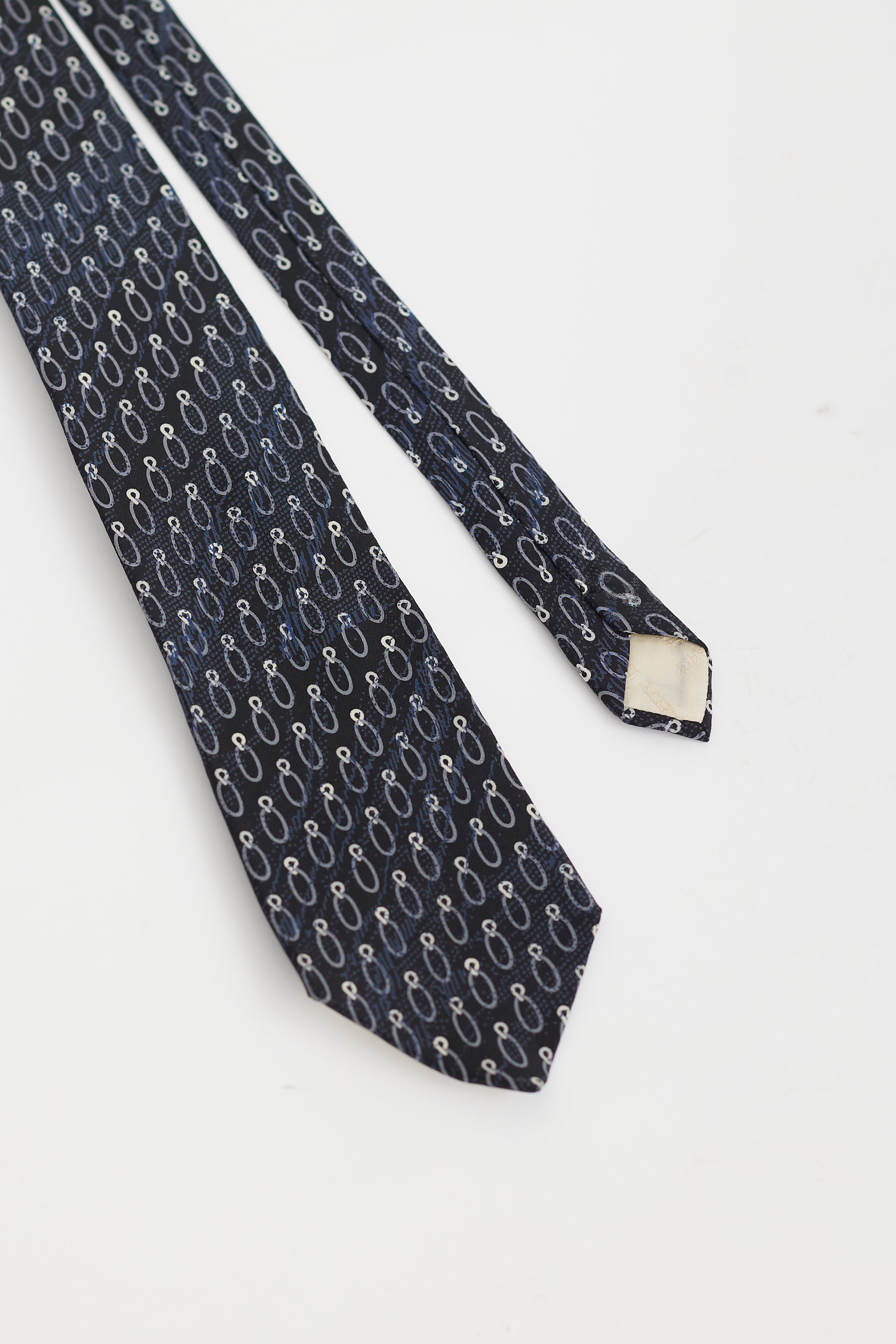 Pre-owned Vintage Pierre Balmain blue pattern silk tie featuring interlocking circle pattern throughout and logo tab at reversed.