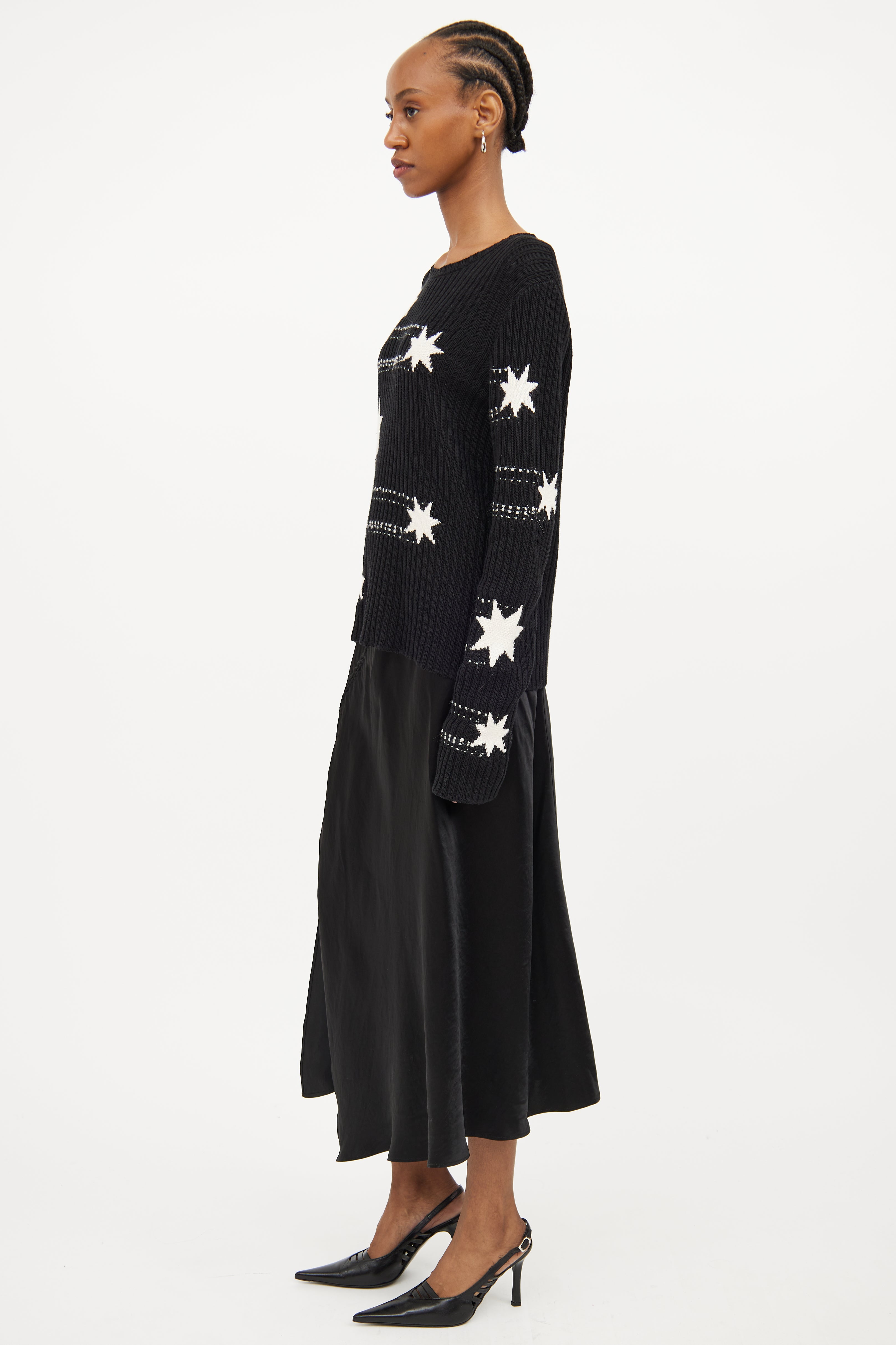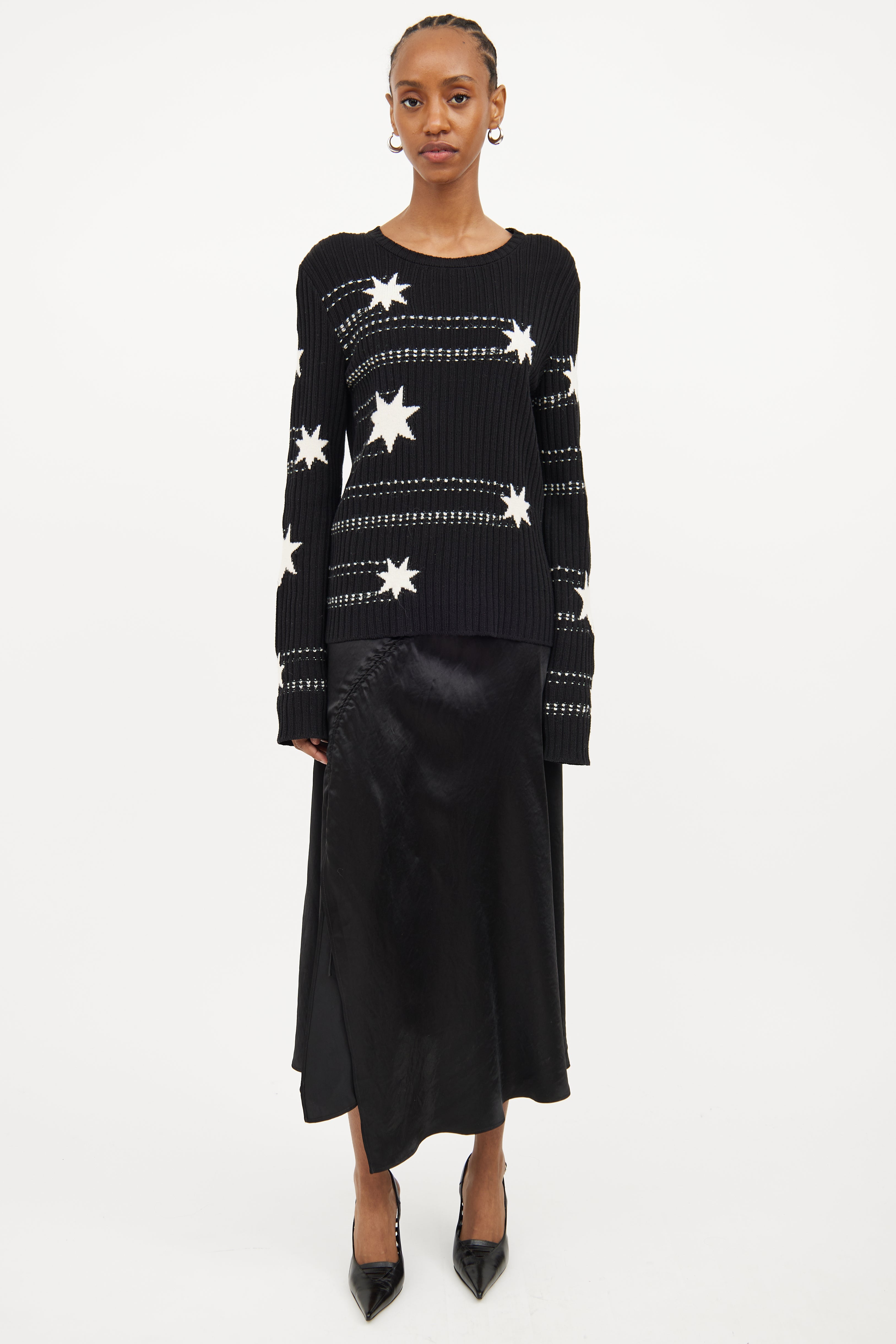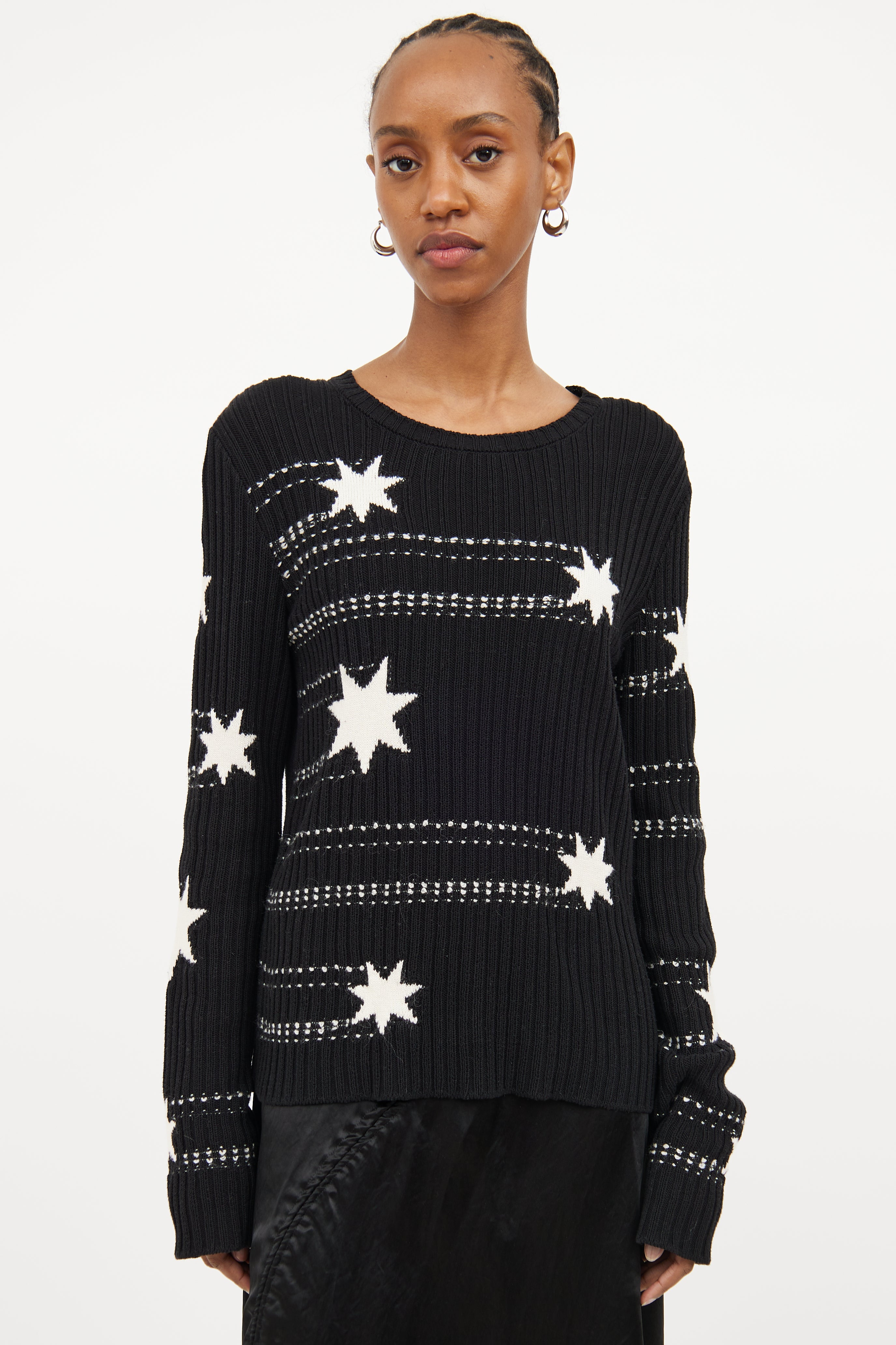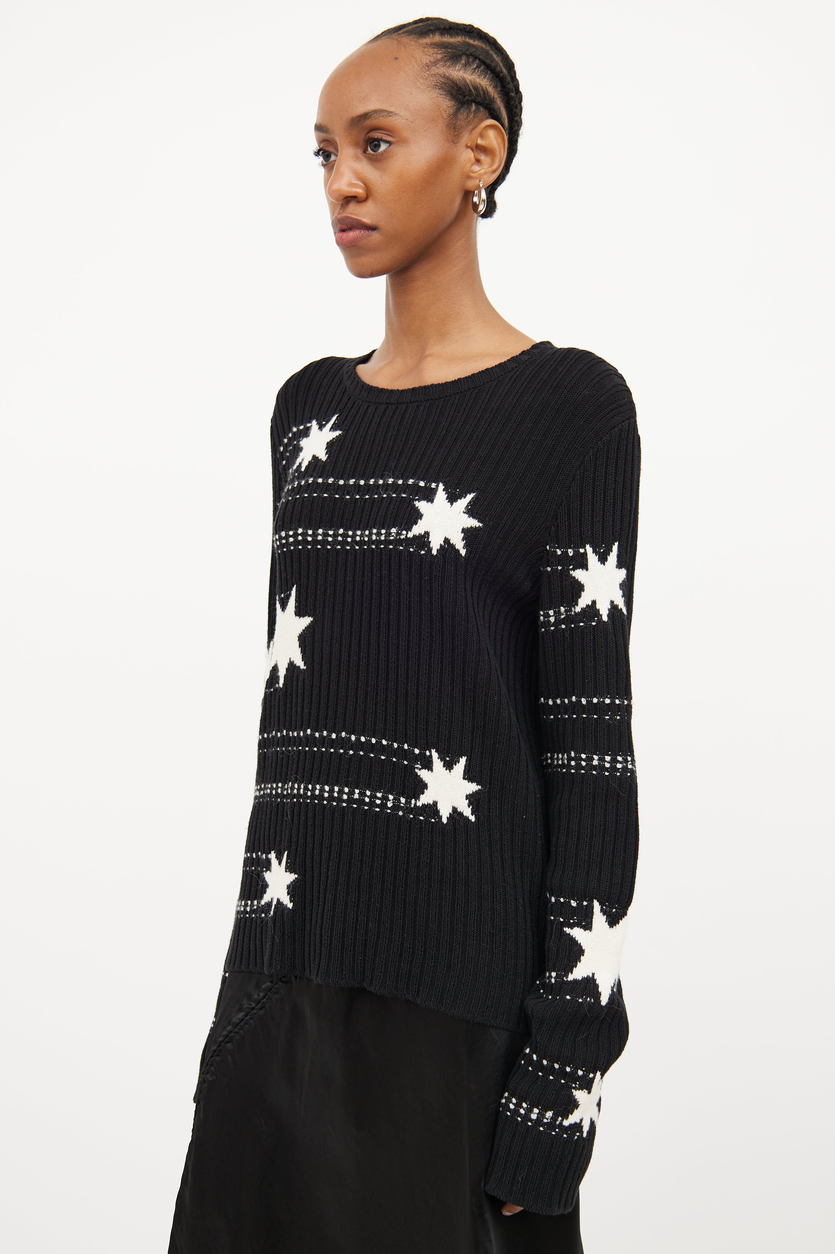 Black & White Star Knit Sweater Large Size Guide
