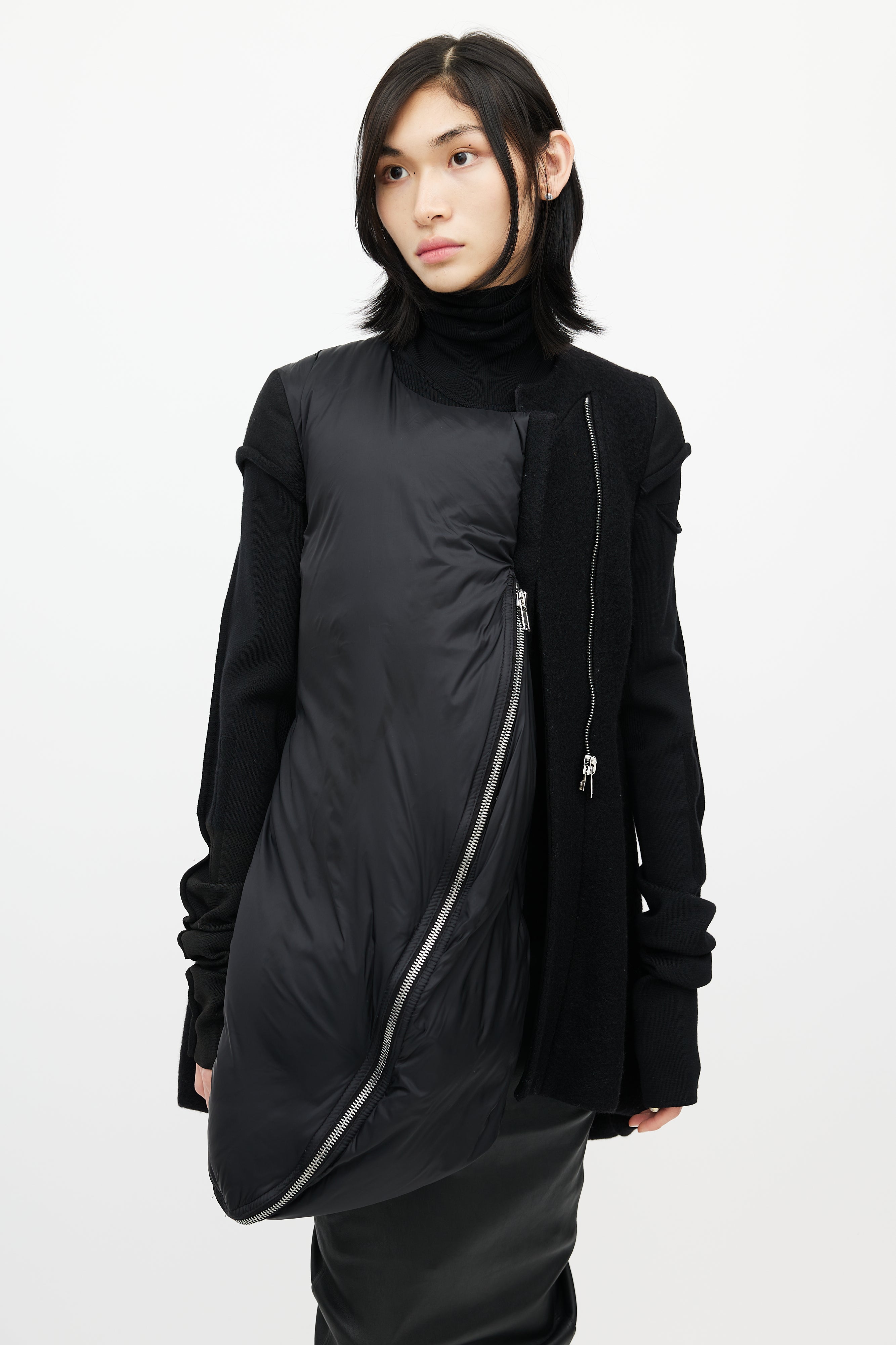 Black Asymmetrical Wool Down Jacket US 2 Size Guide