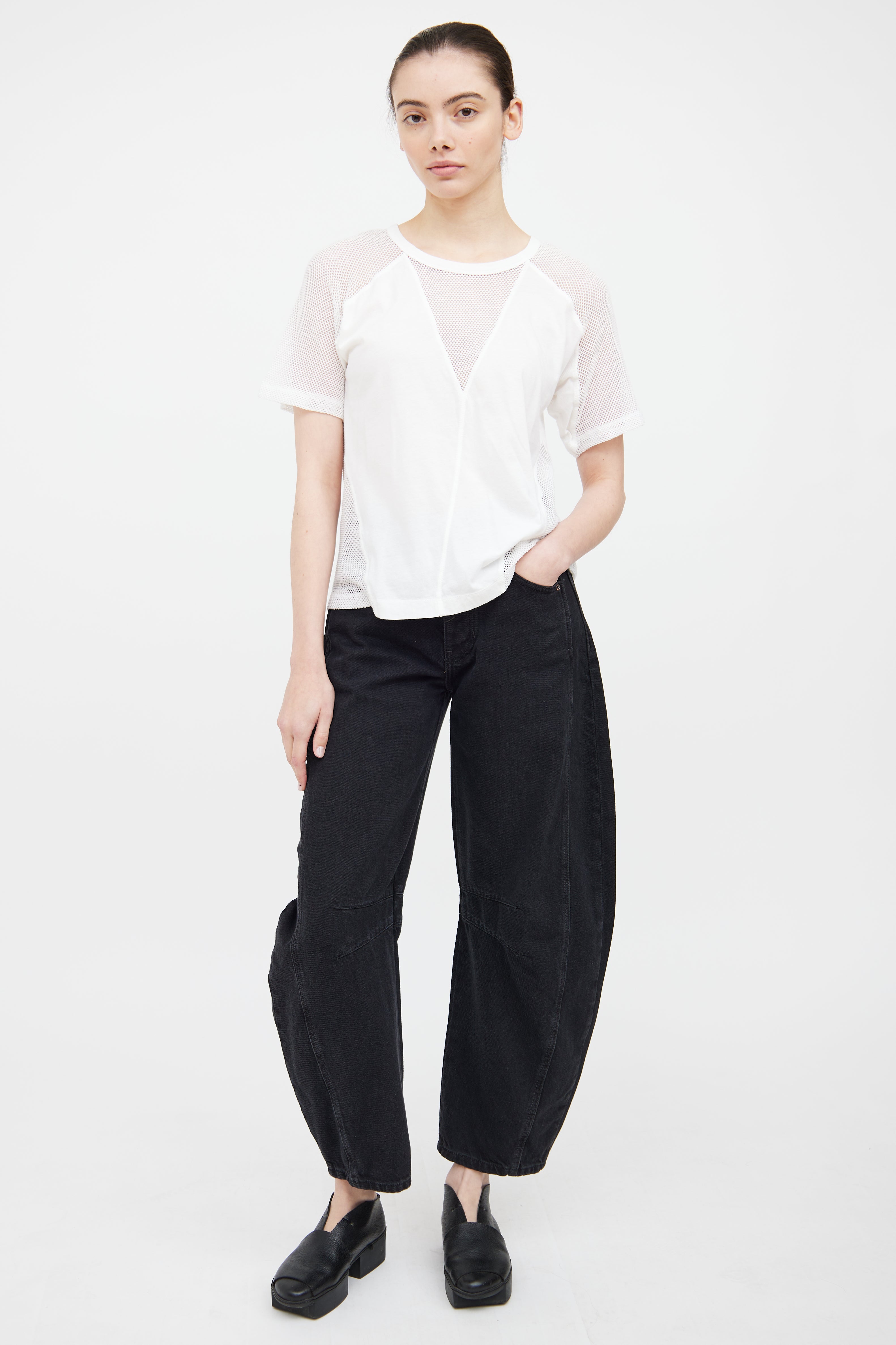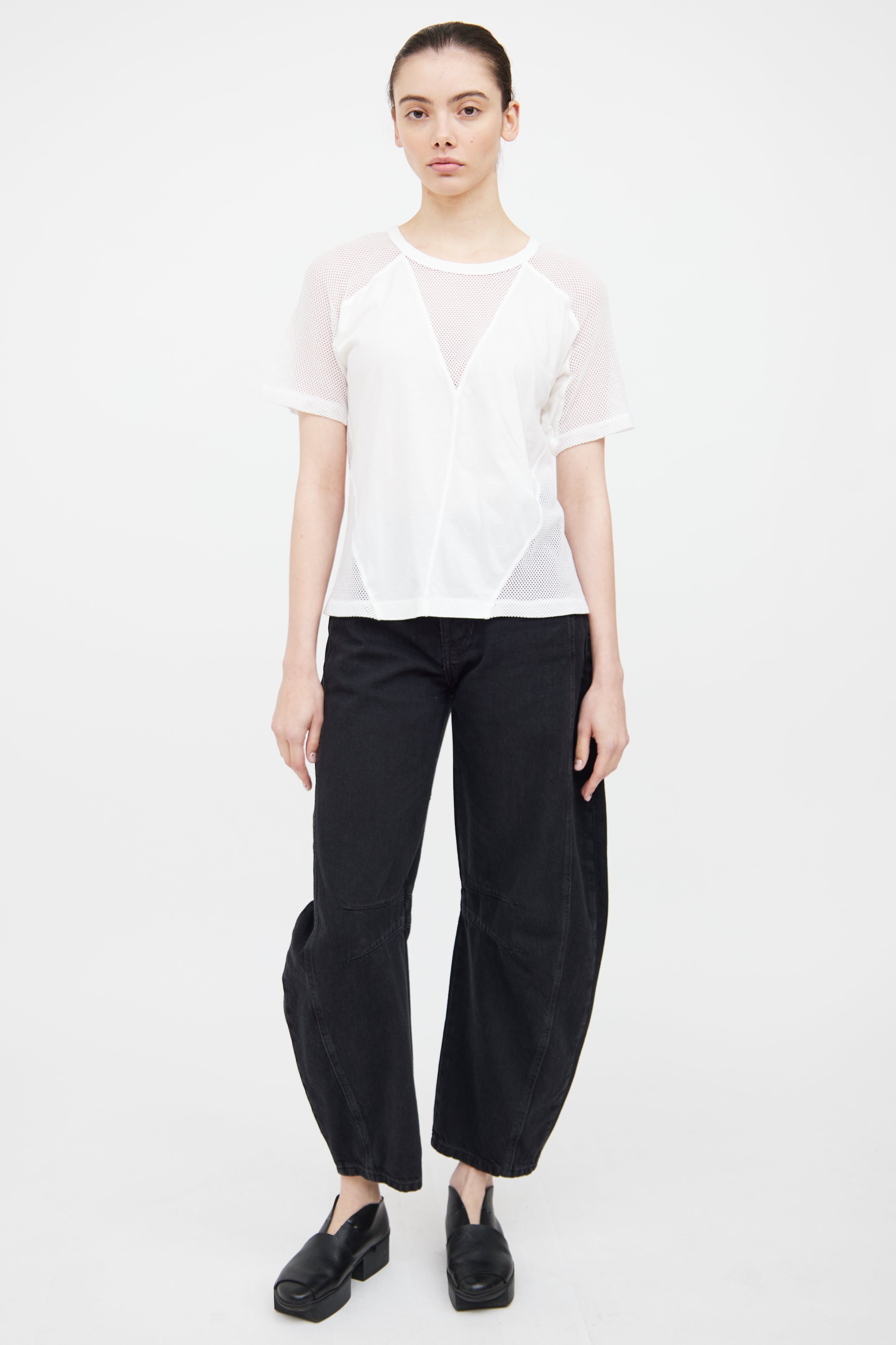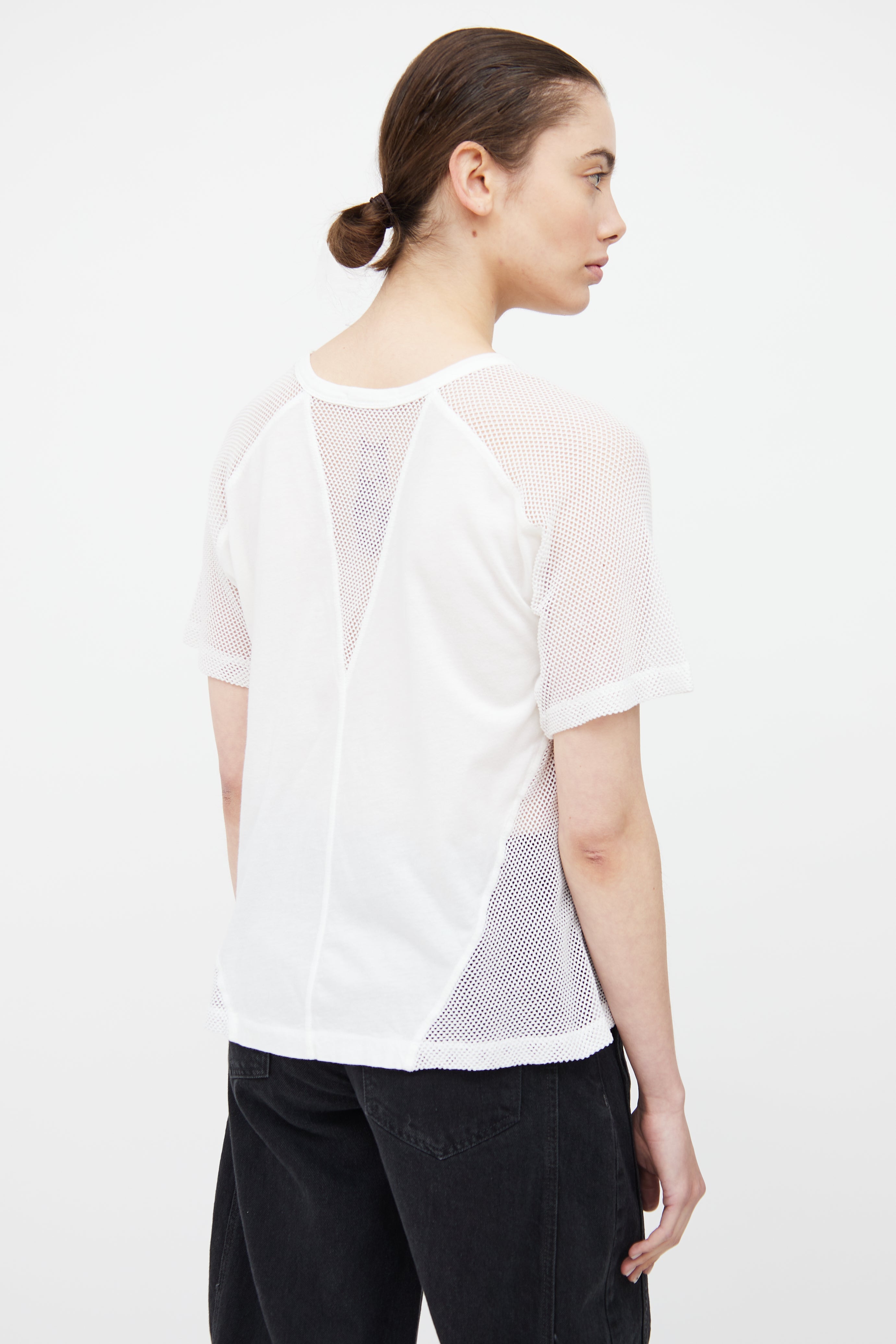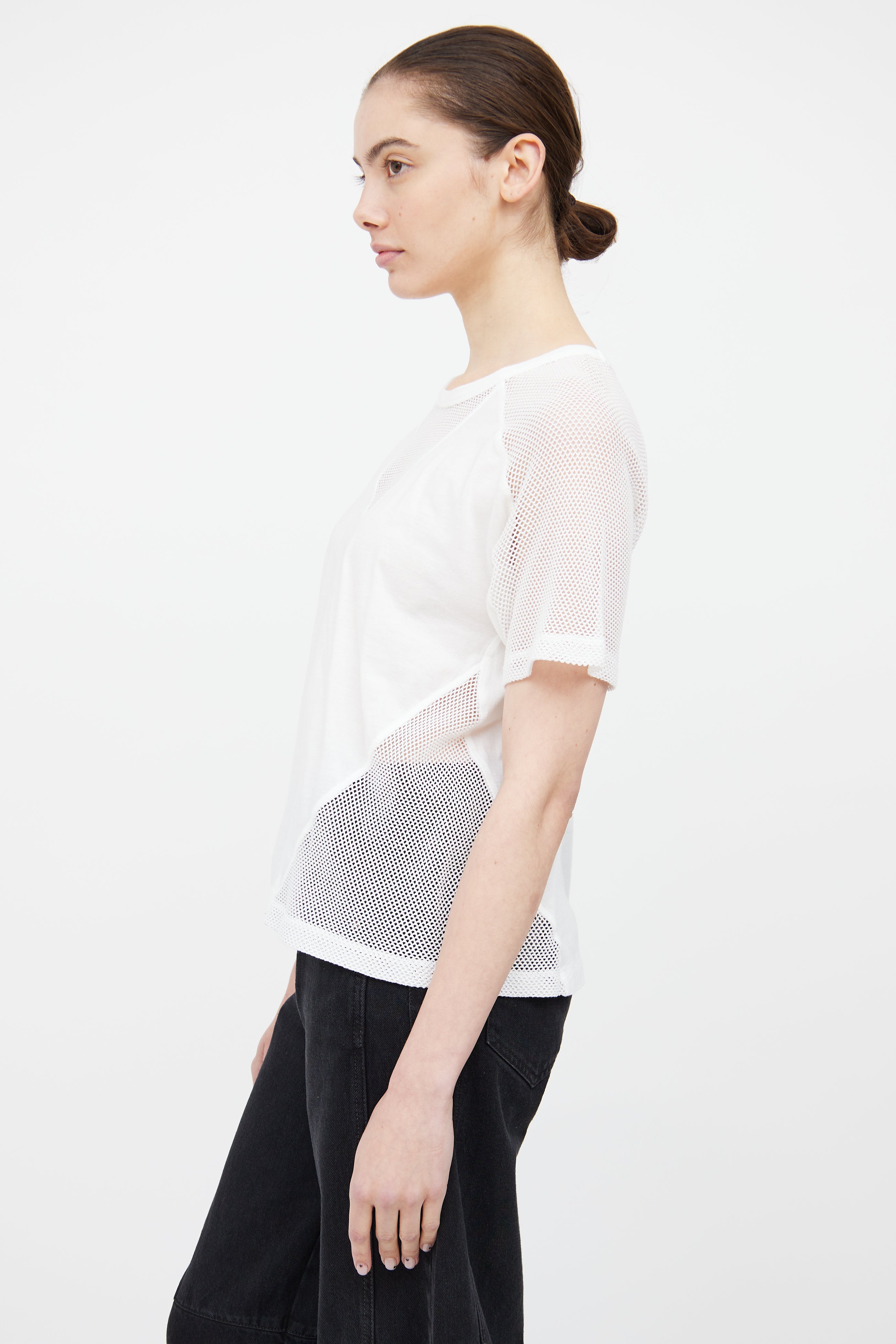 Pre-owned T by Alexander Wang white cotton mesh panel top featuring round neck, short sleeves and white mesh paneling.