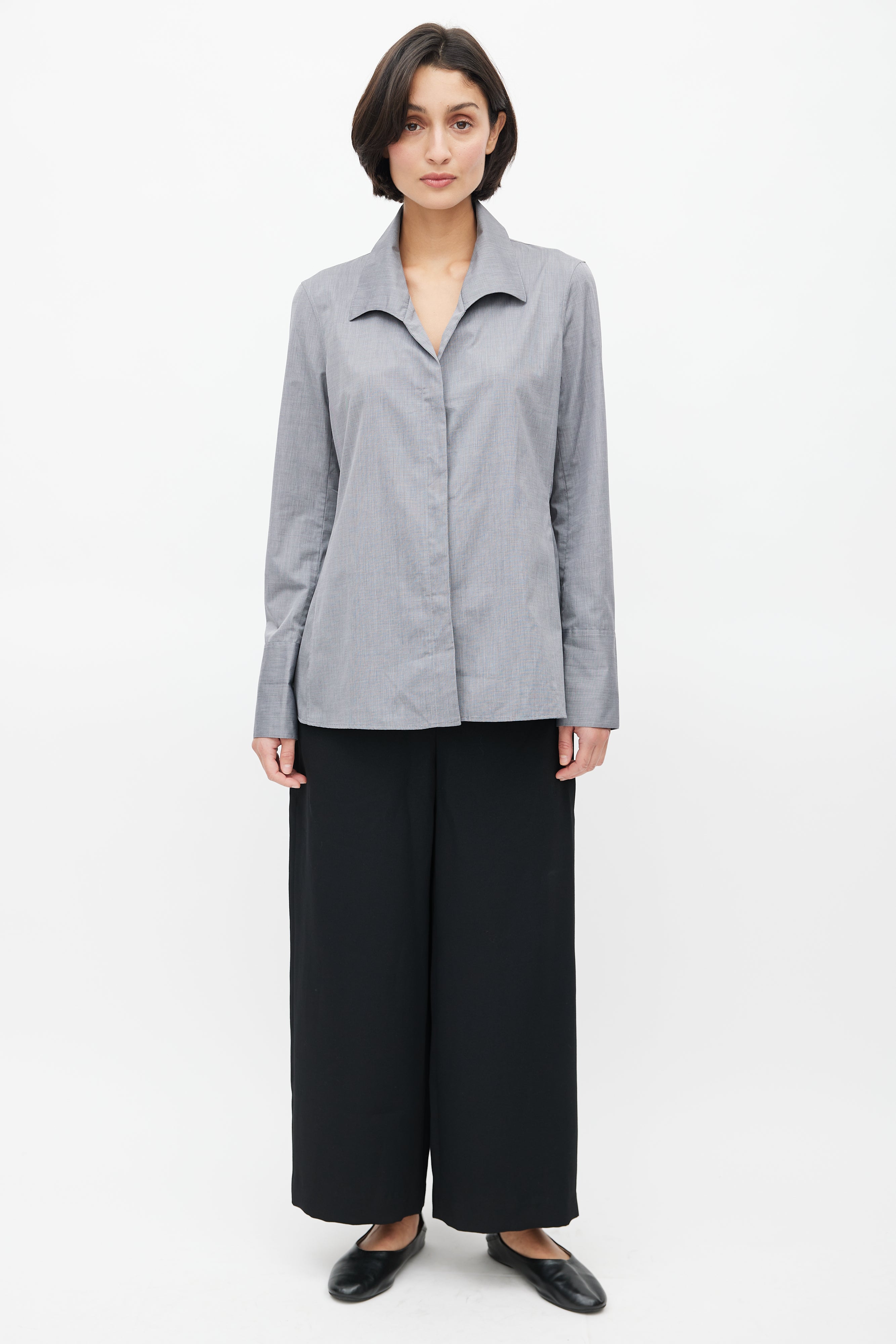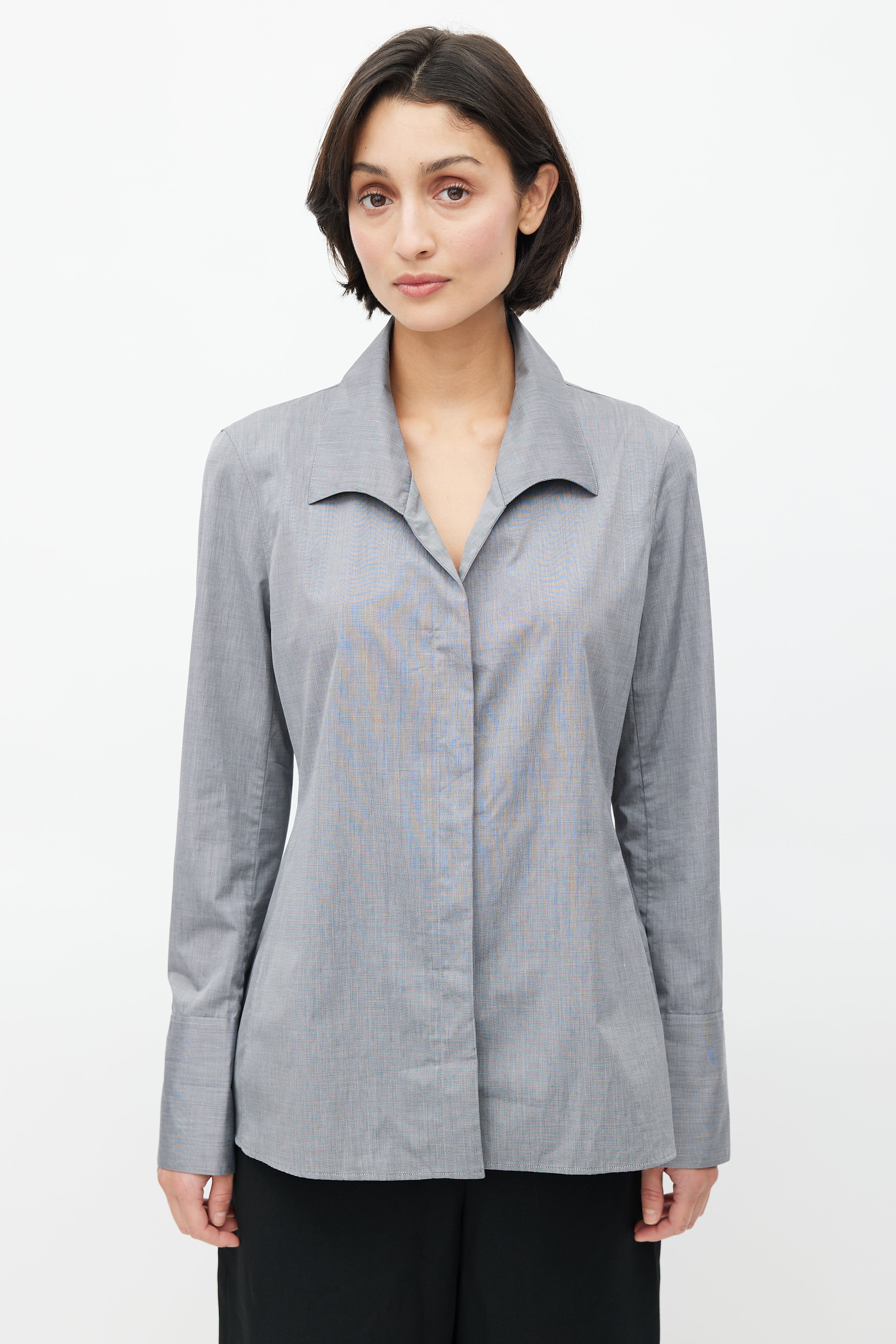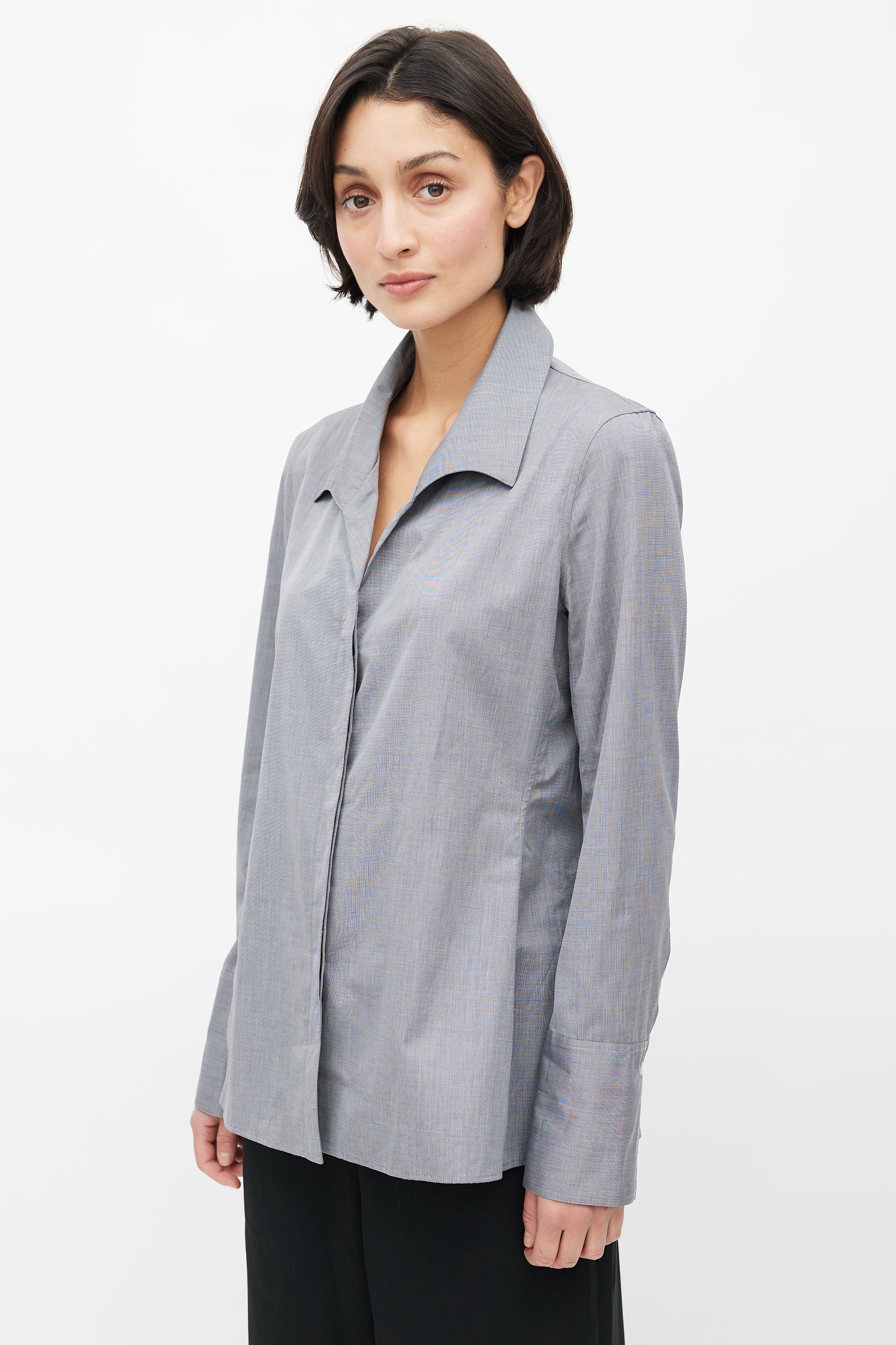 Pre-owned The Row grey shirt featuring a pointed spread collar, long sleeves with french cuffs, and concealed button up front.