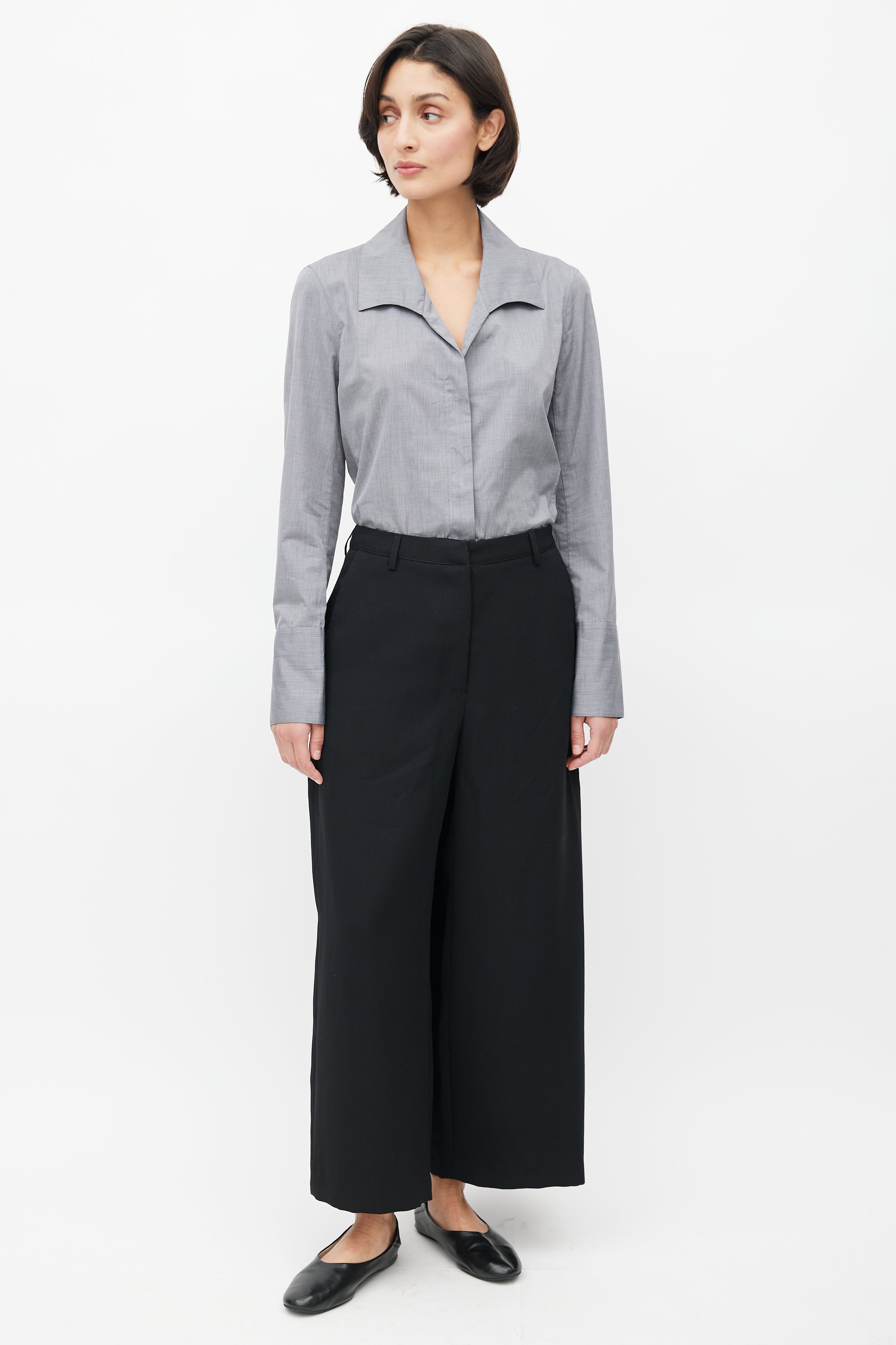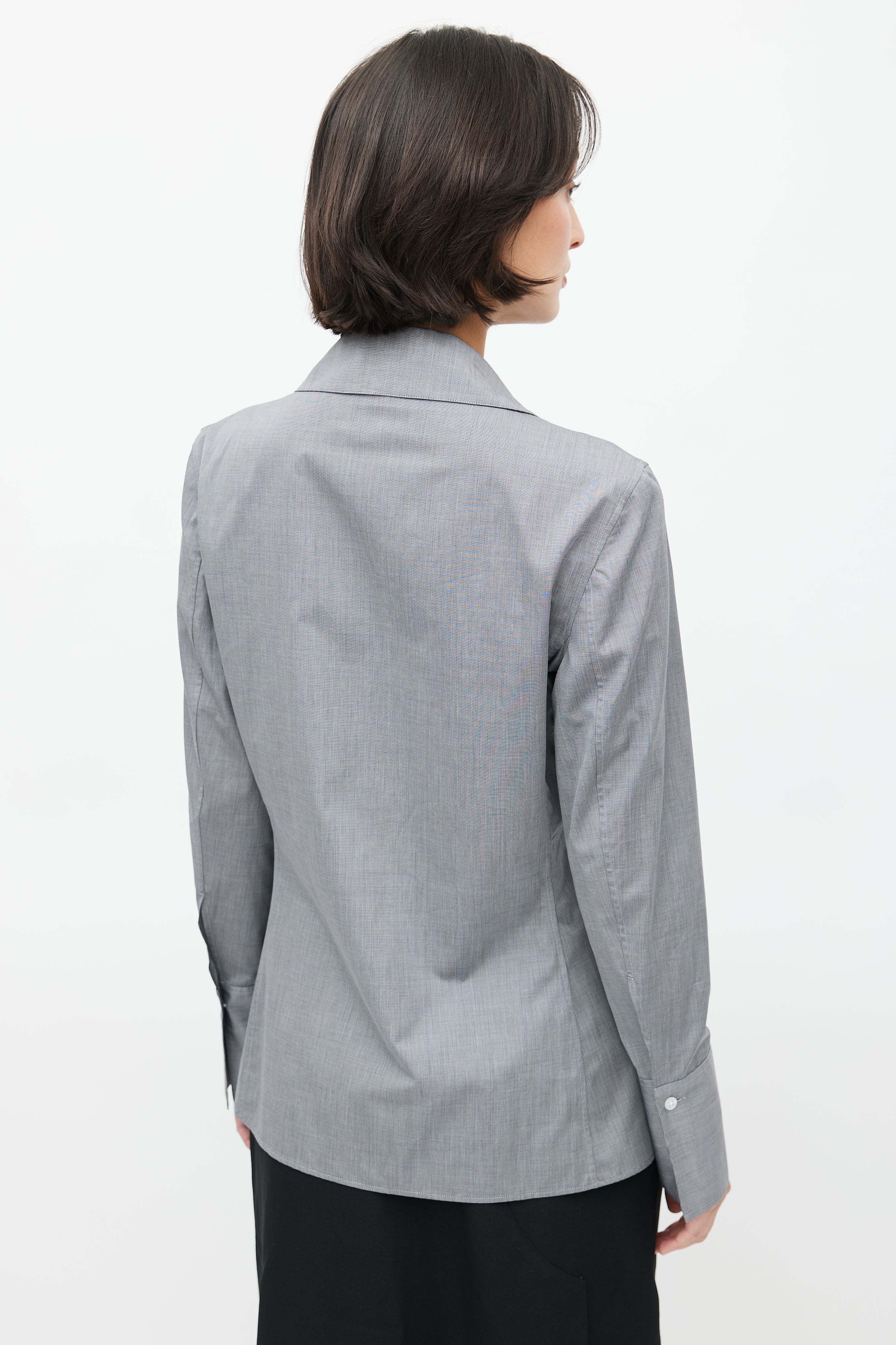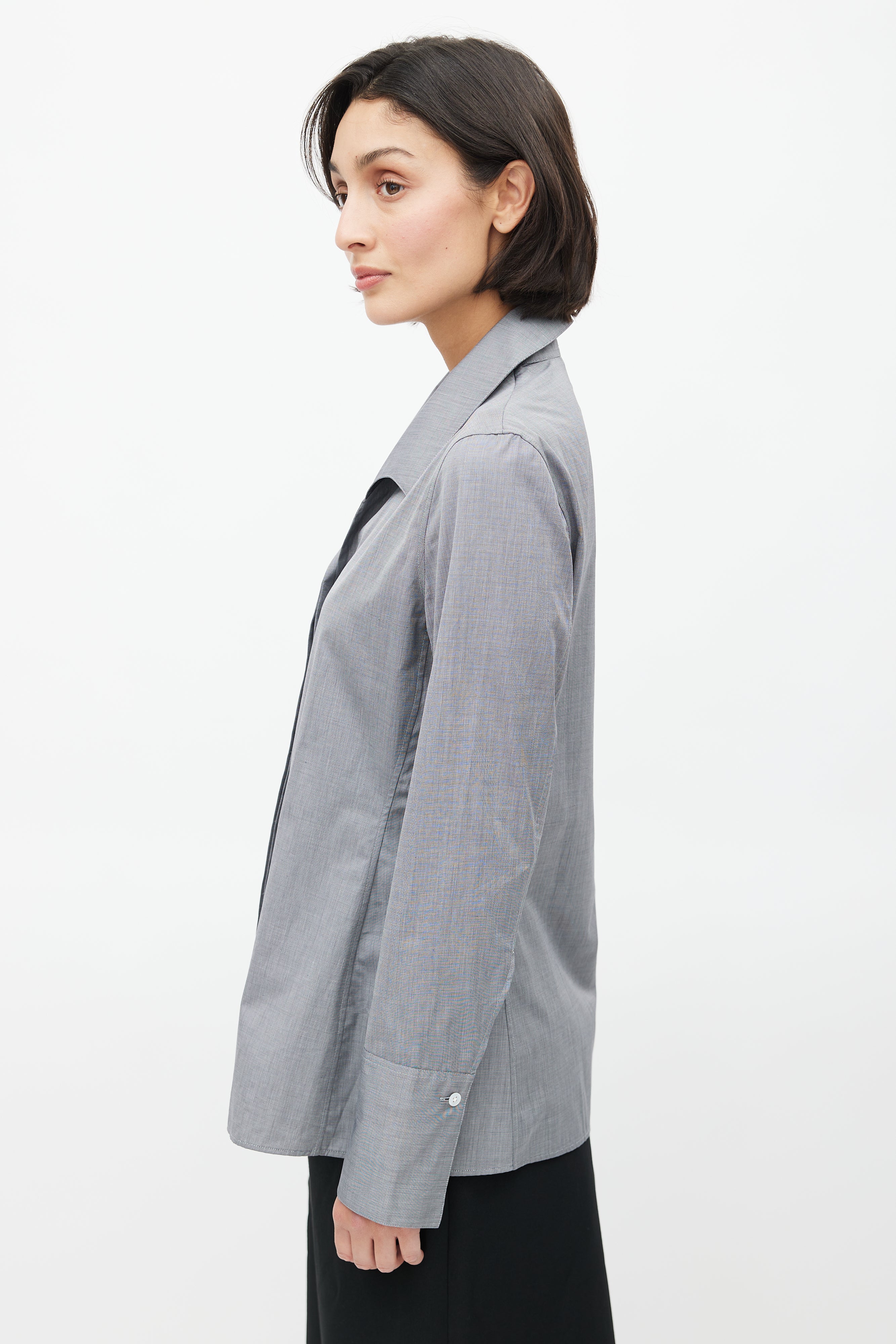 Pre-owned The Row grey shirt featuring a pointed spread collar, long sleeves with french cuffs, and concealed button up front.