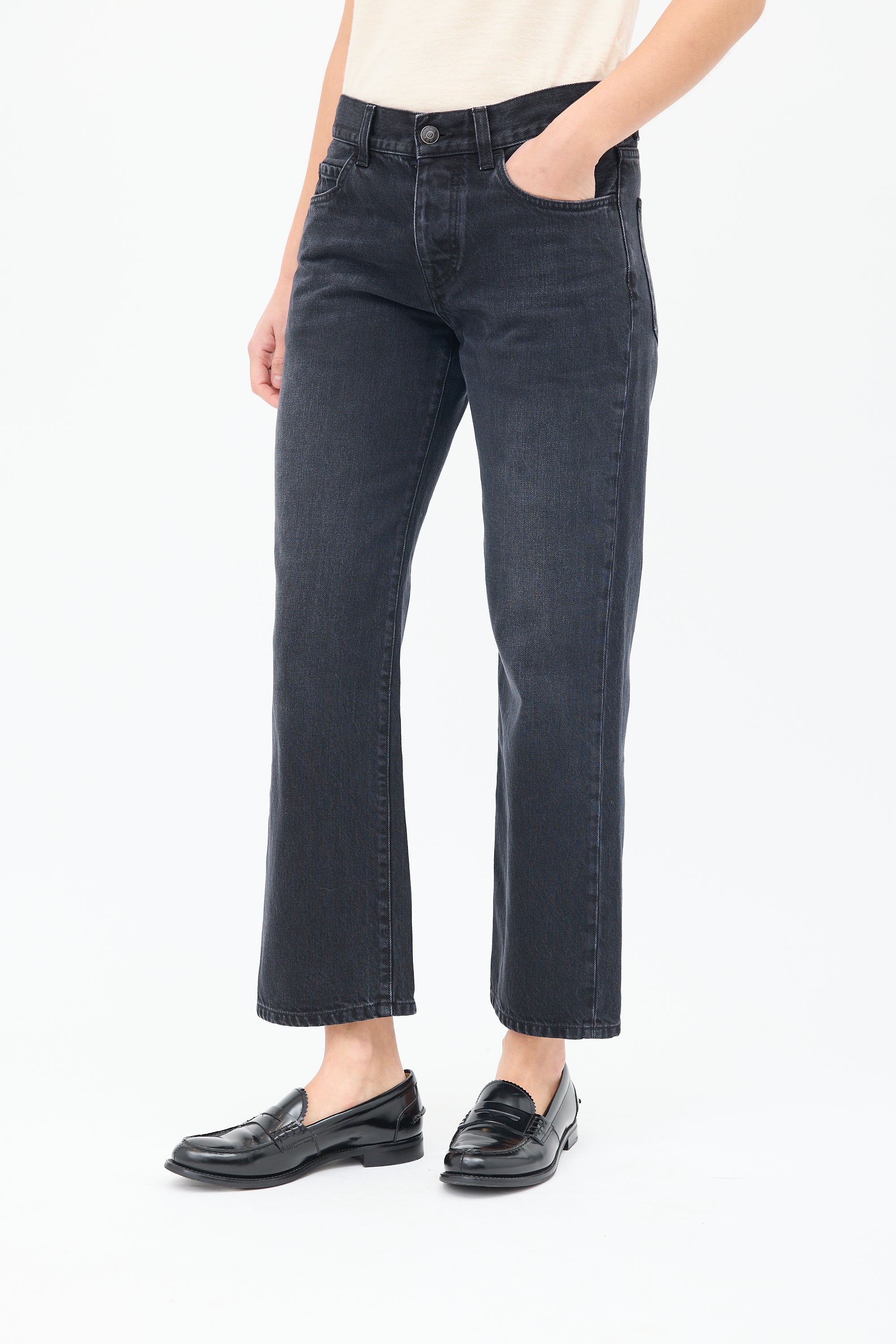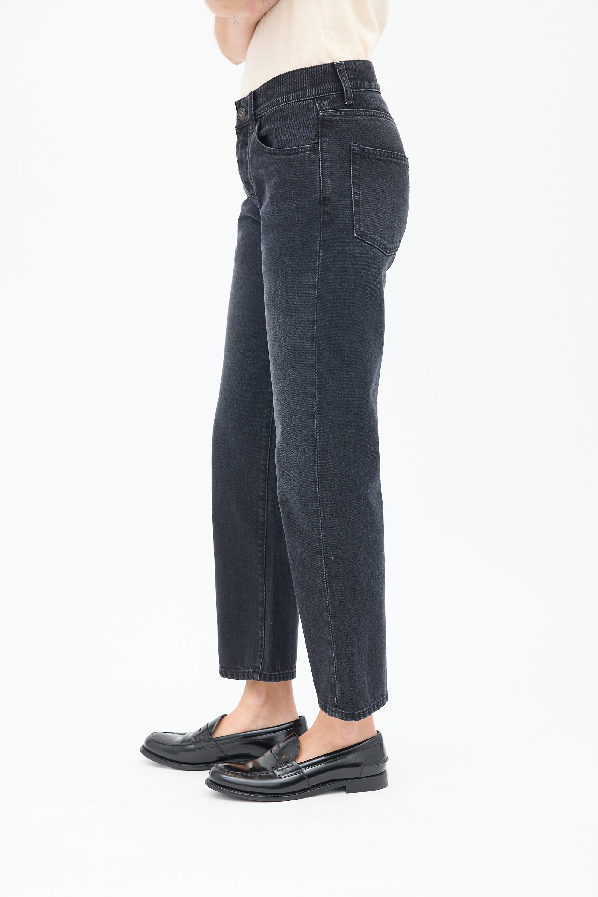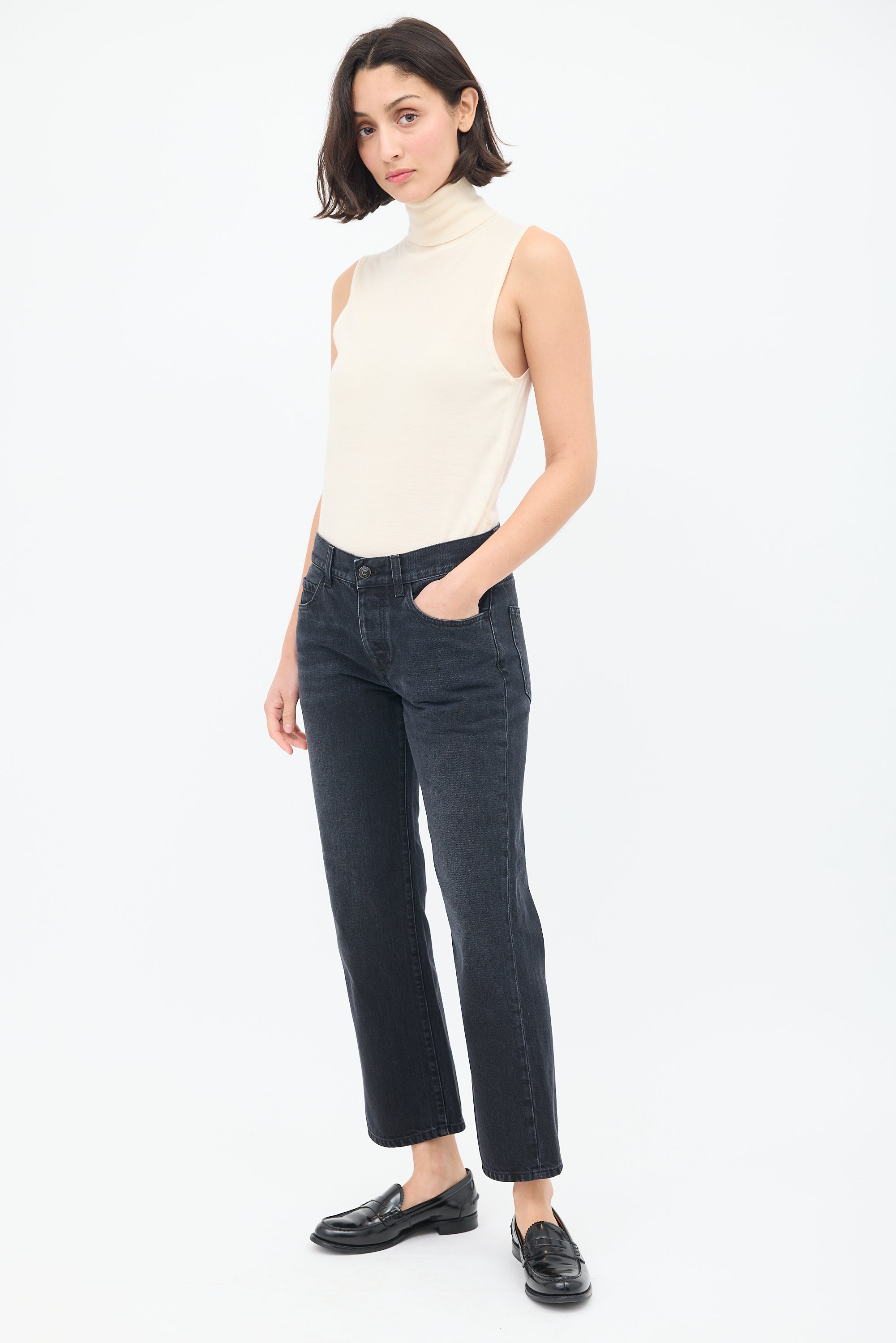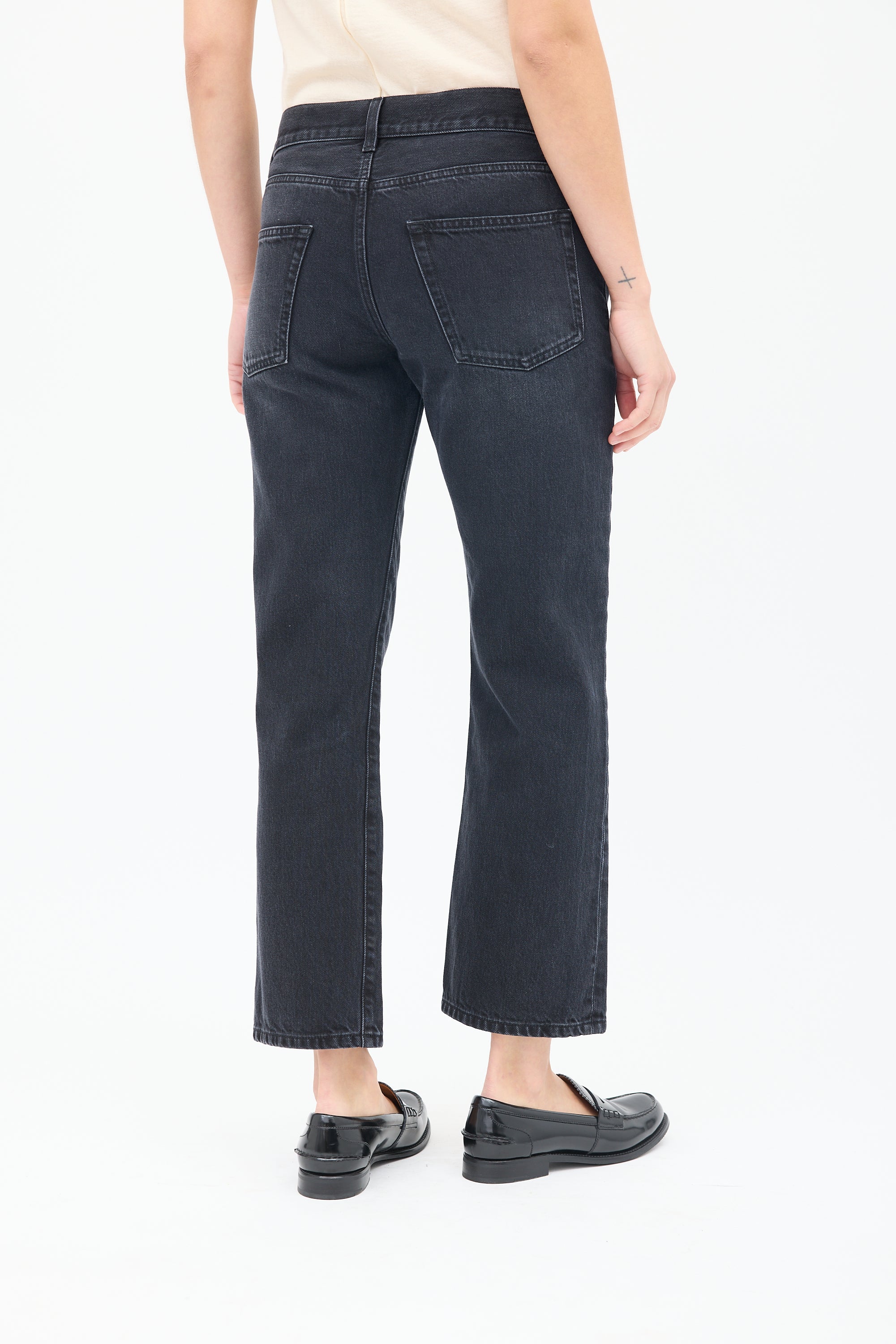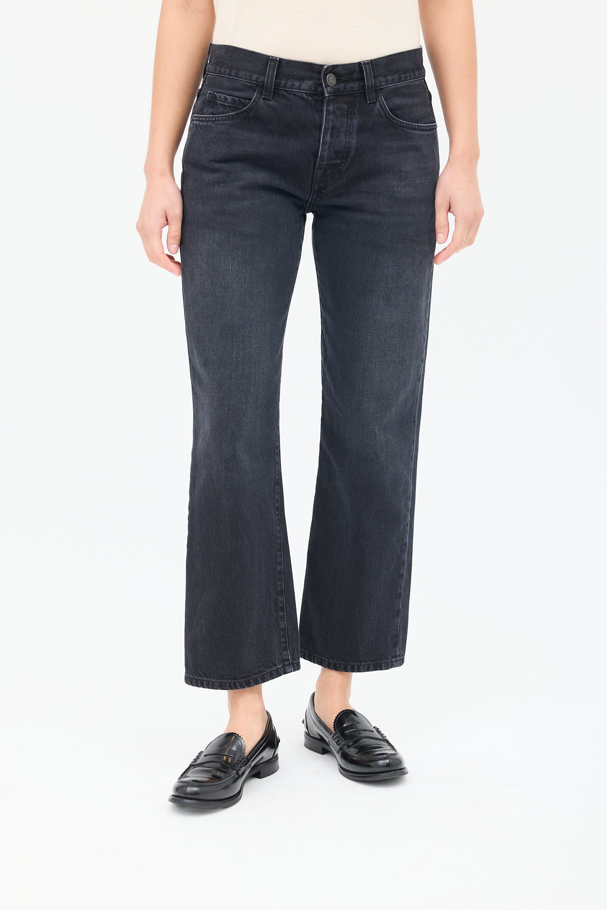 Pre-owned The Row washed black jeans featuring a regular waist, straight leg, five pocket styling, and button fly.