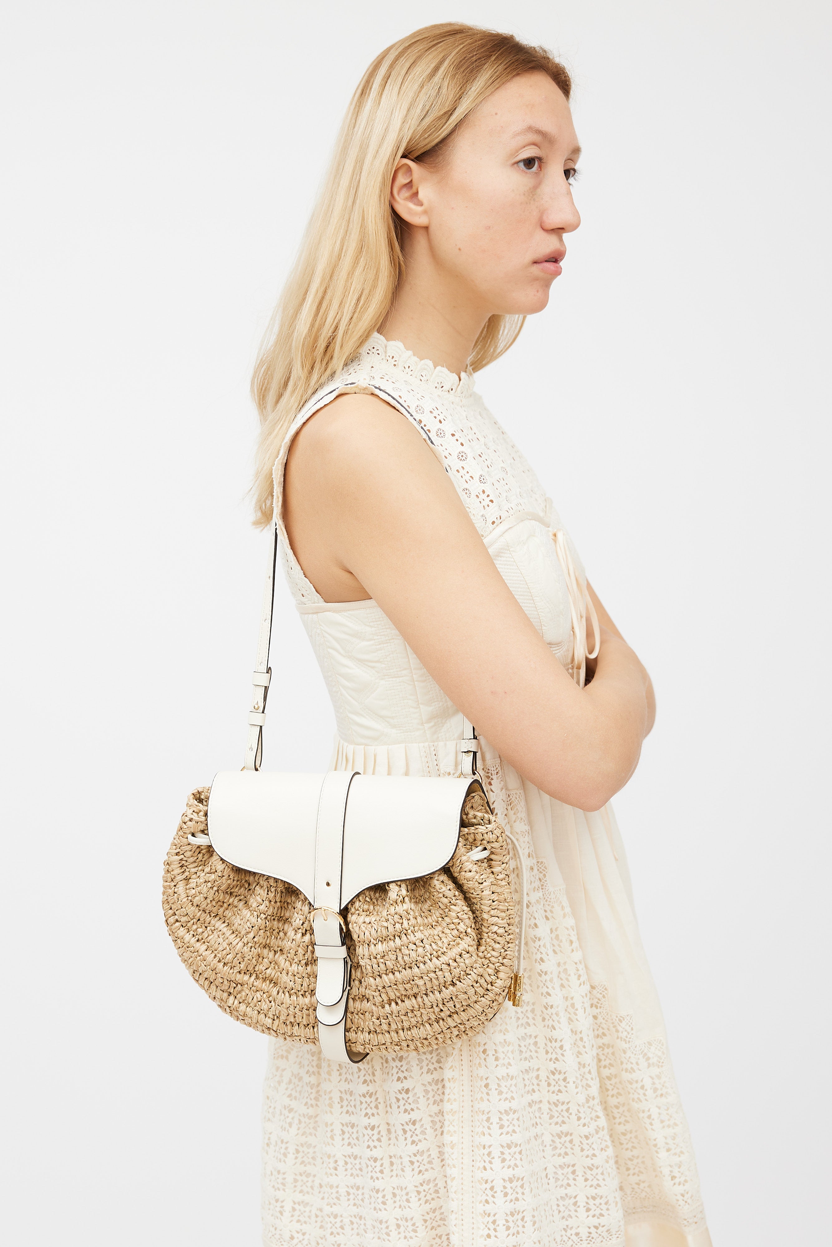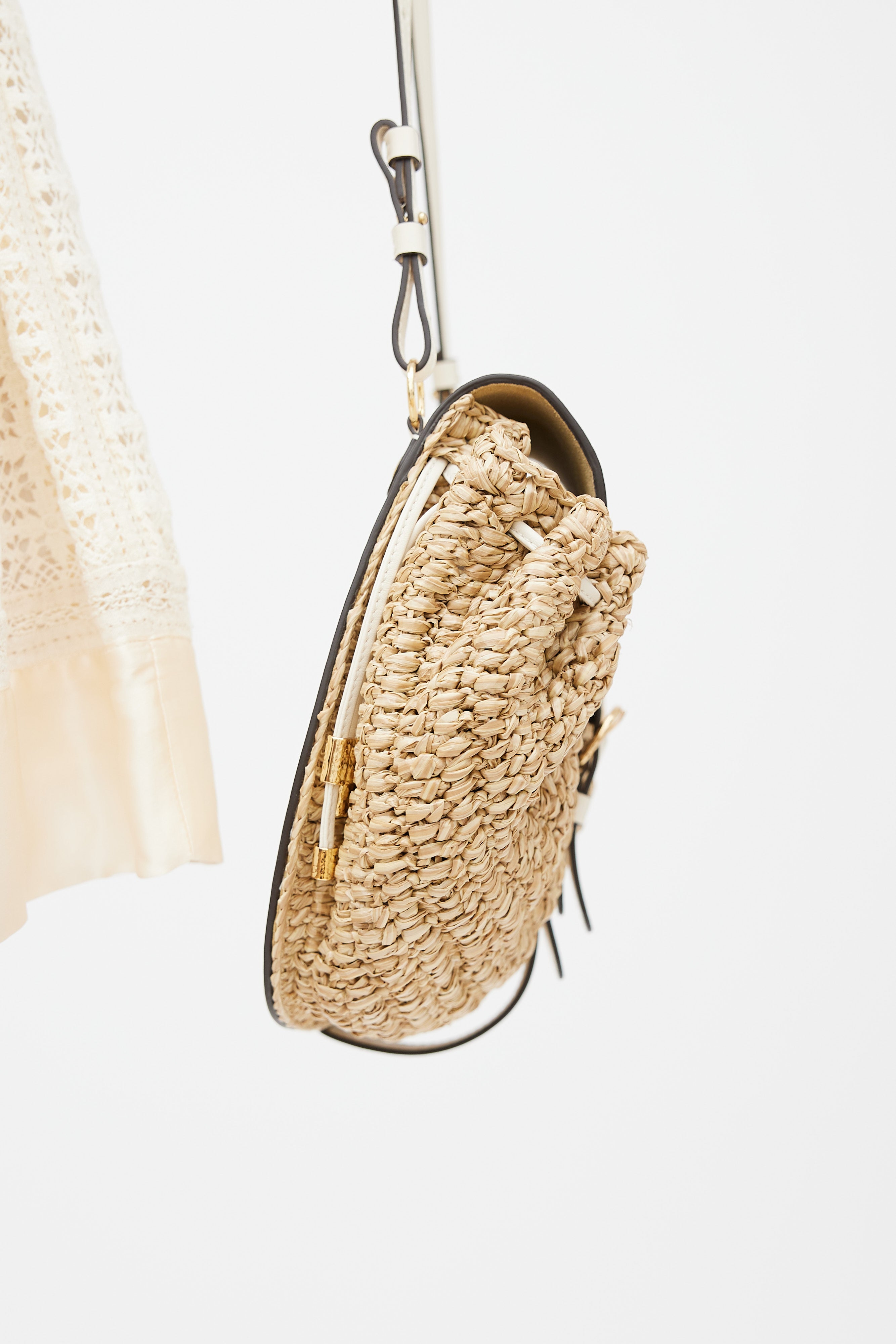 Beige & Cream Raffia Paloma Ruched Bag