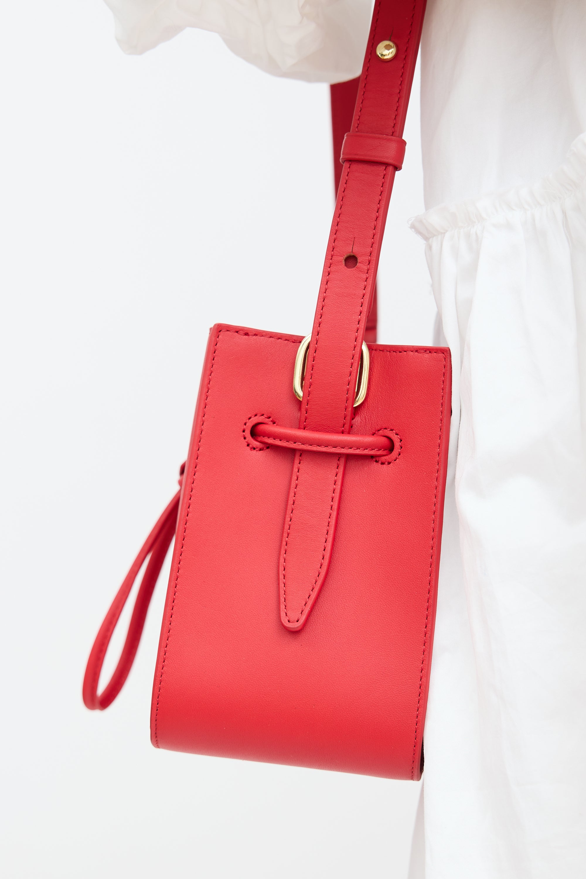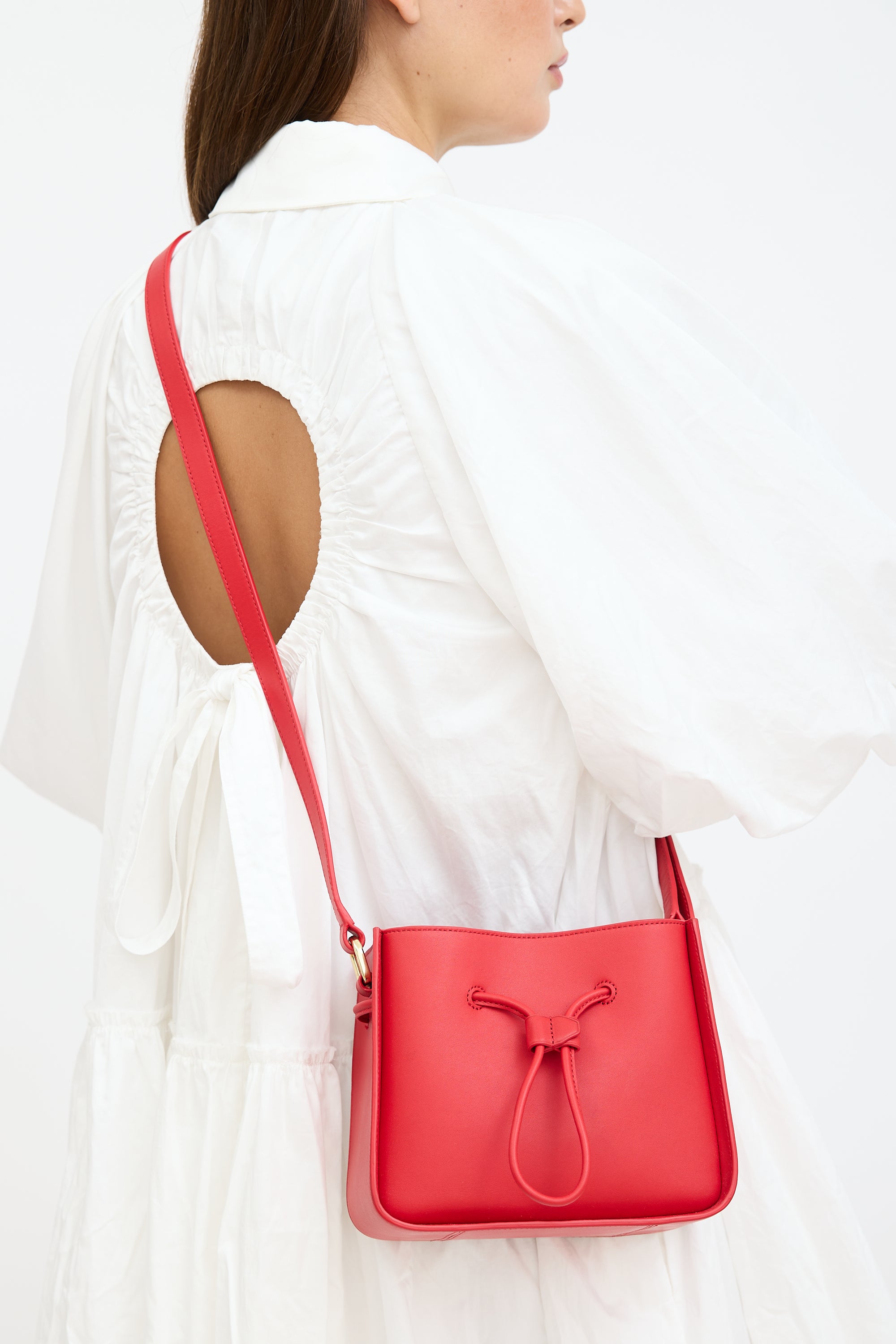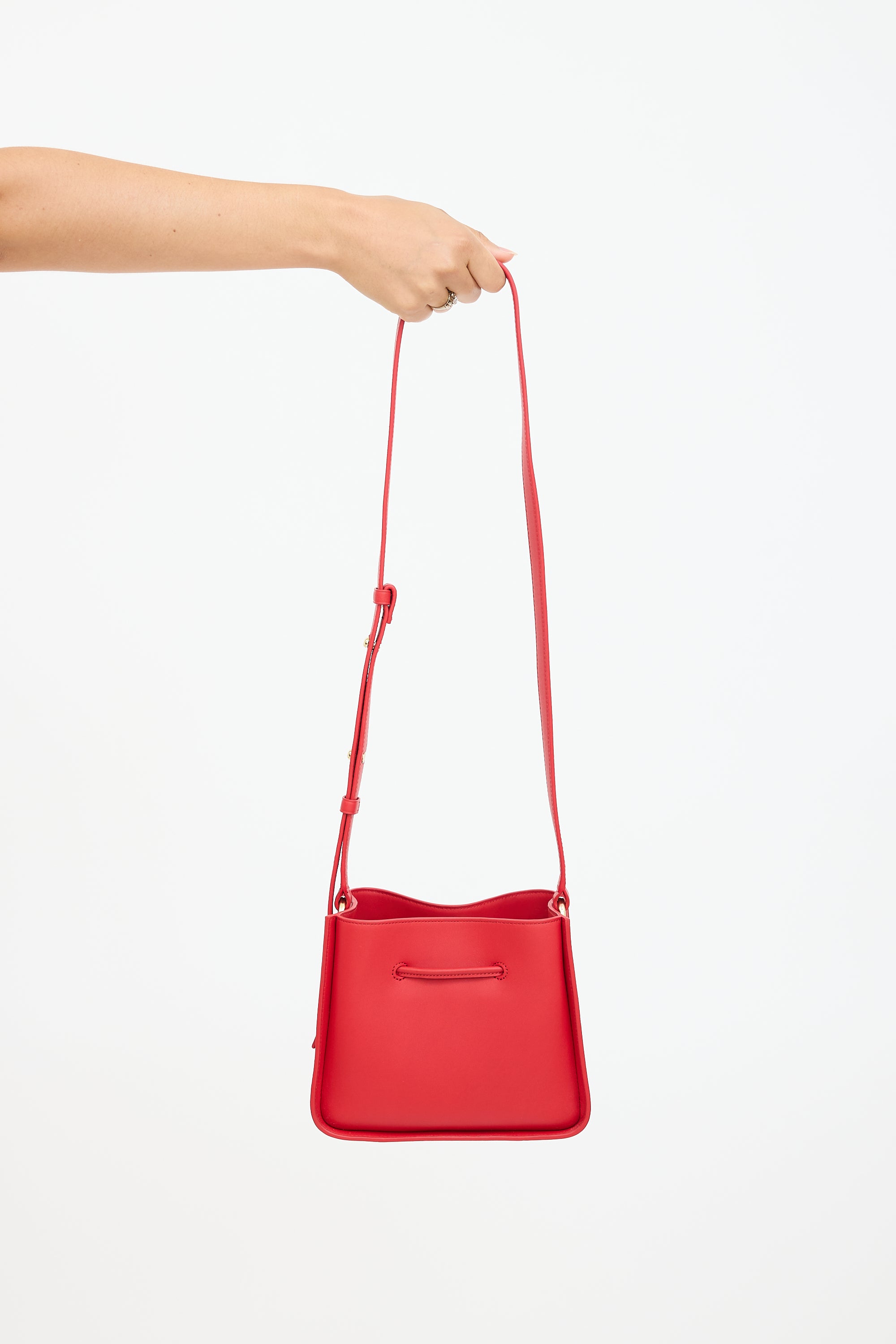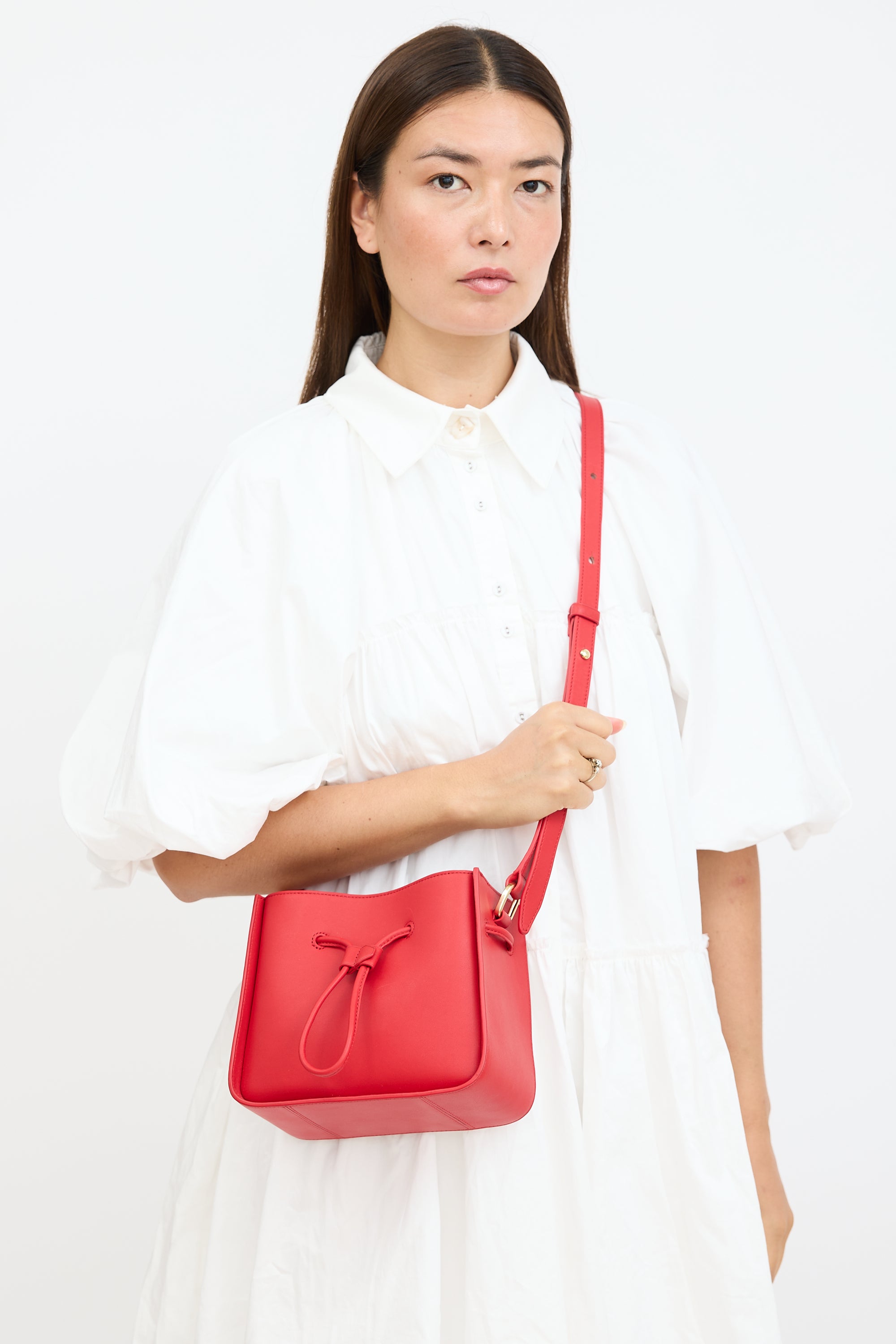 Red Leather Soleil Mini Bucket Crossbody Bag