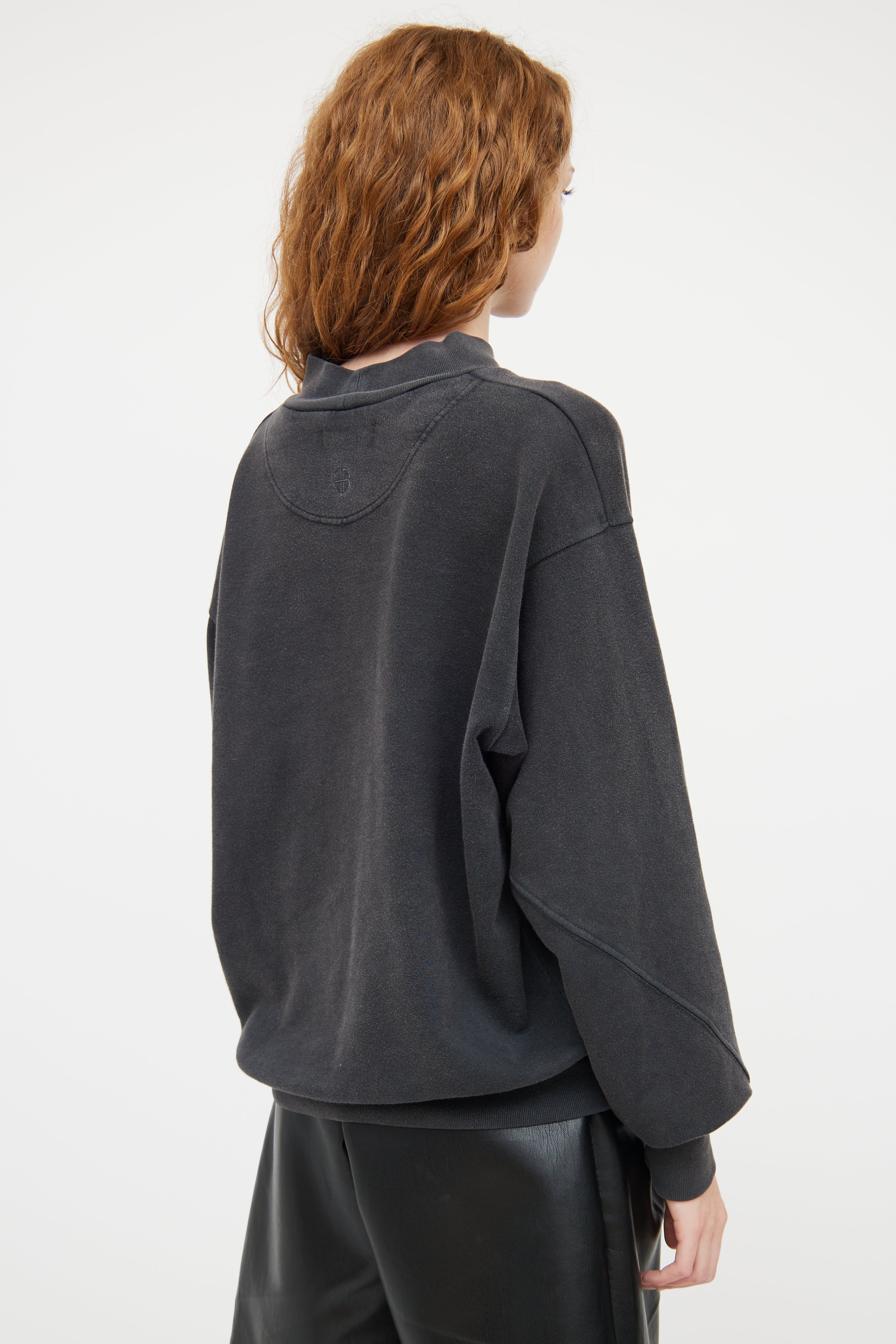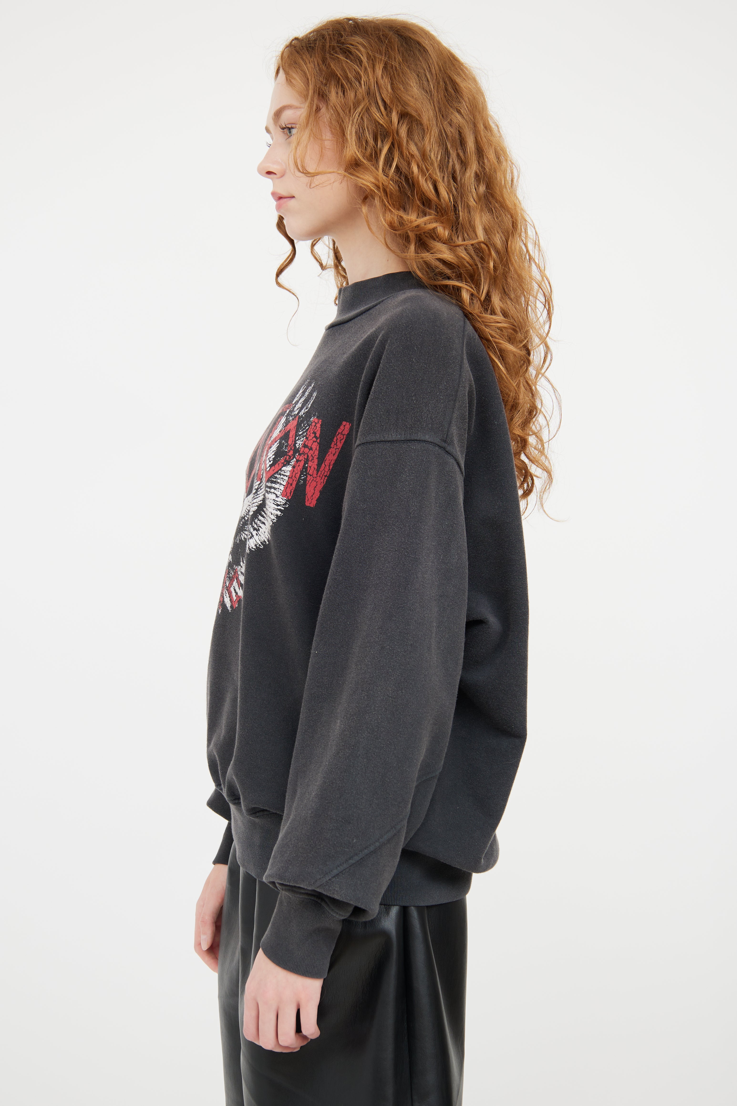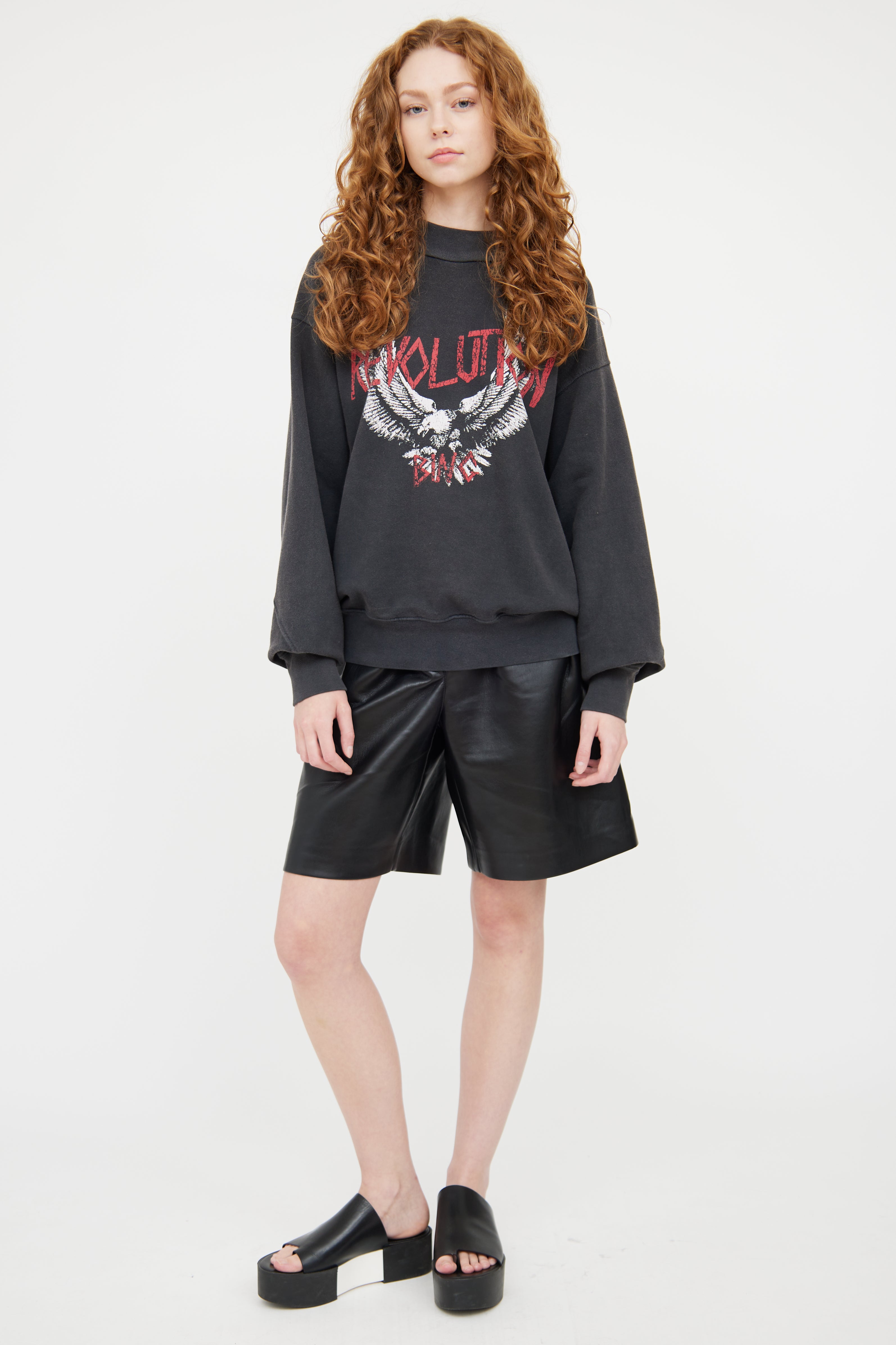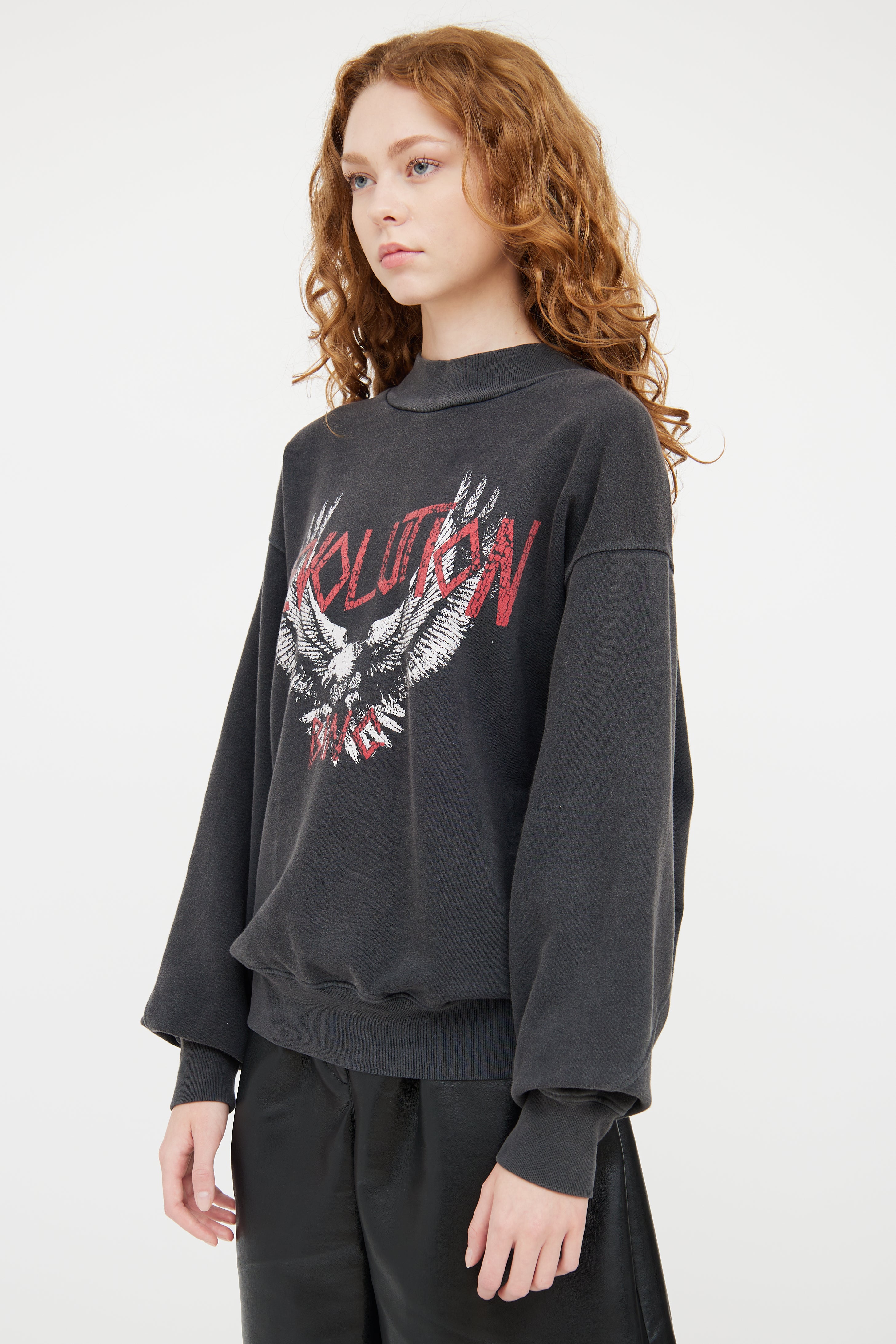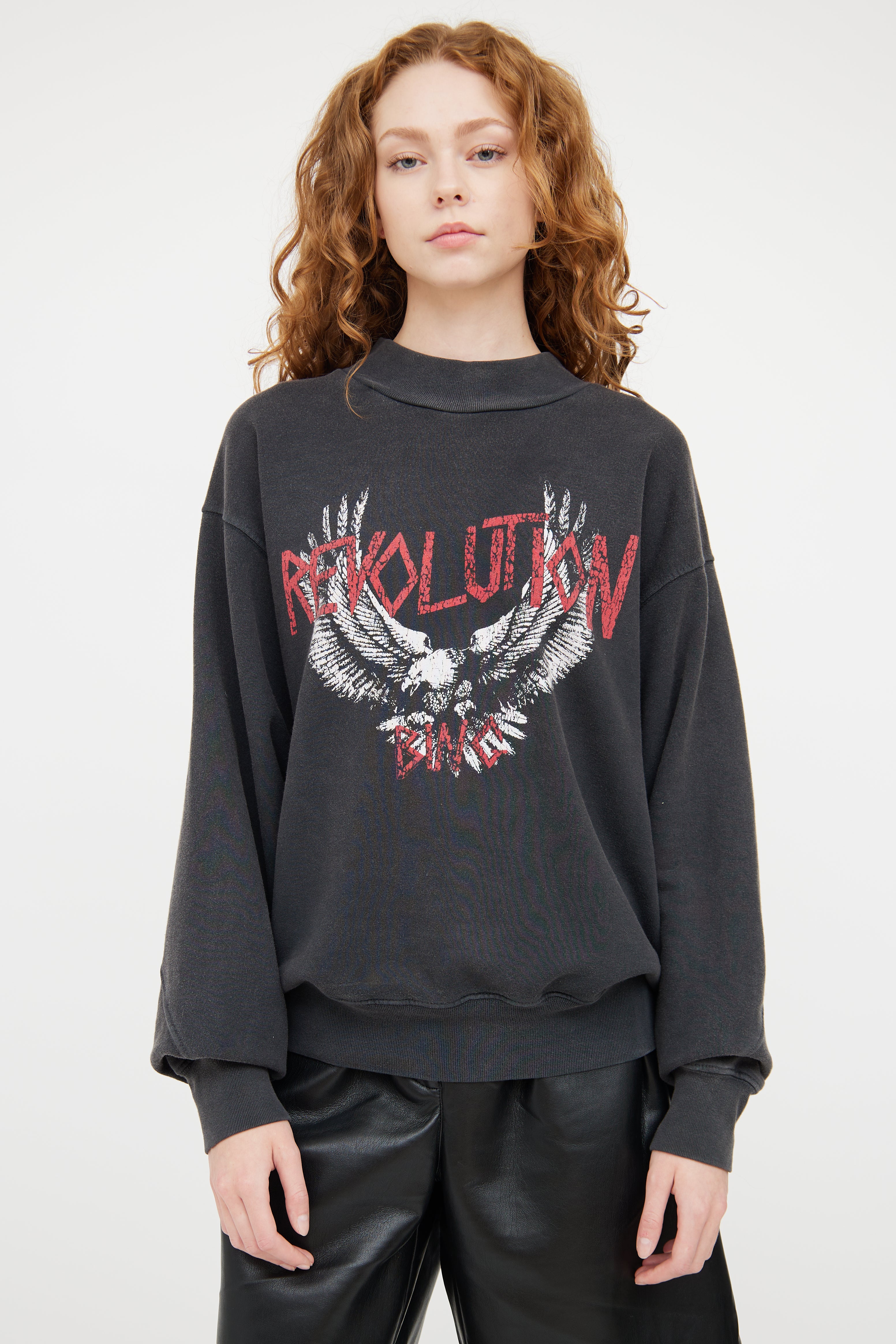 Pre-owned Anine Bing grey sweatshirt featuring a multicolour Revolution graphic print at chest, mock neck collar, long sleeves, embroidered logo at back, and ribbed hem.