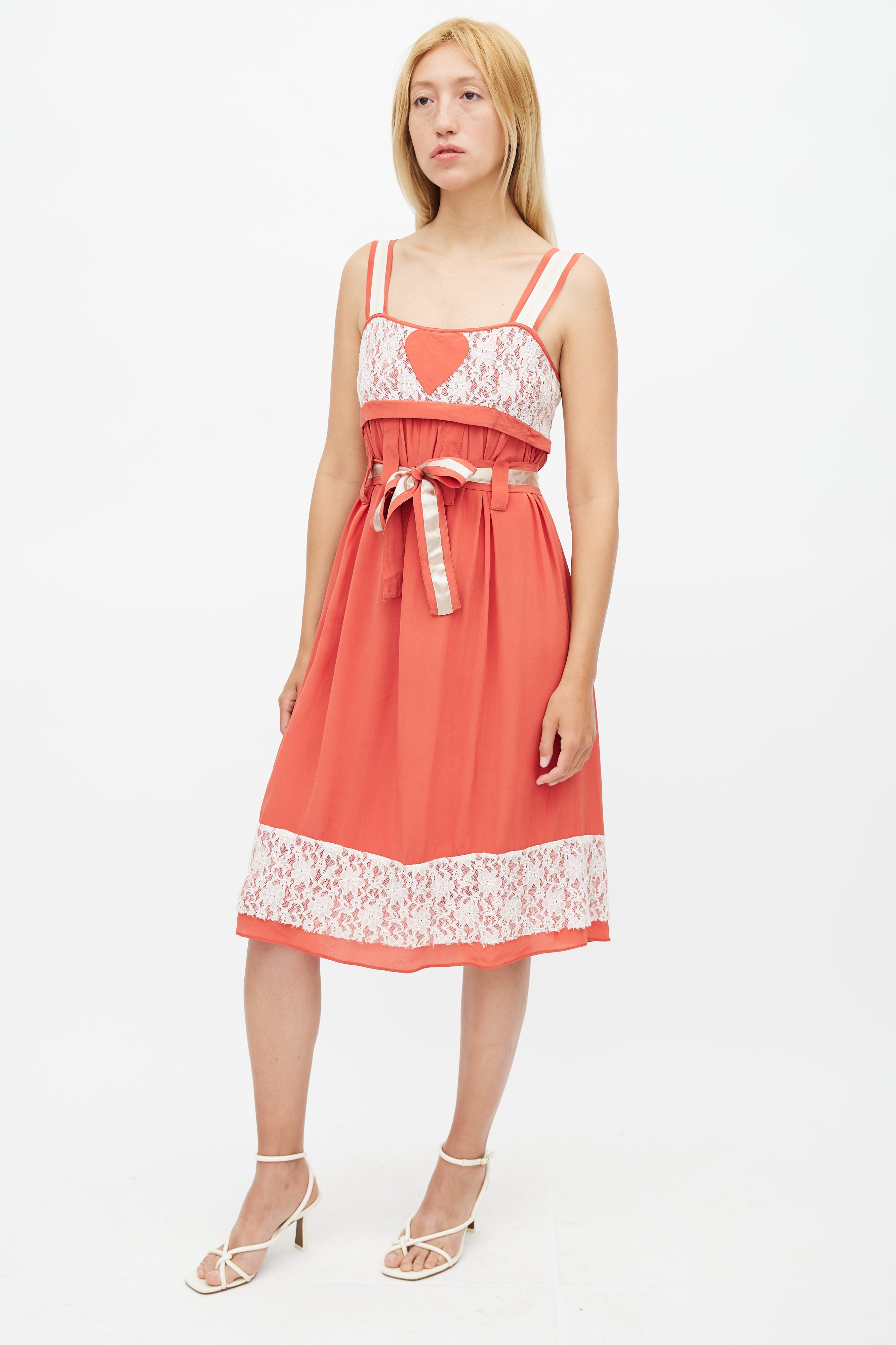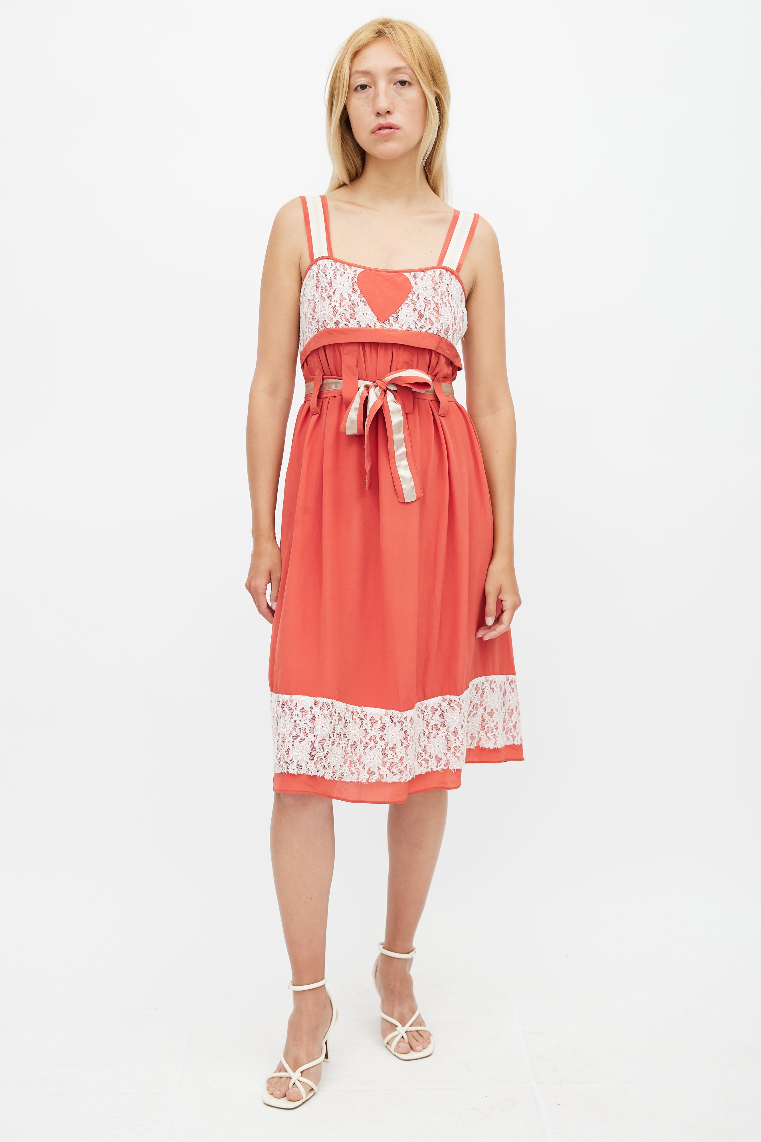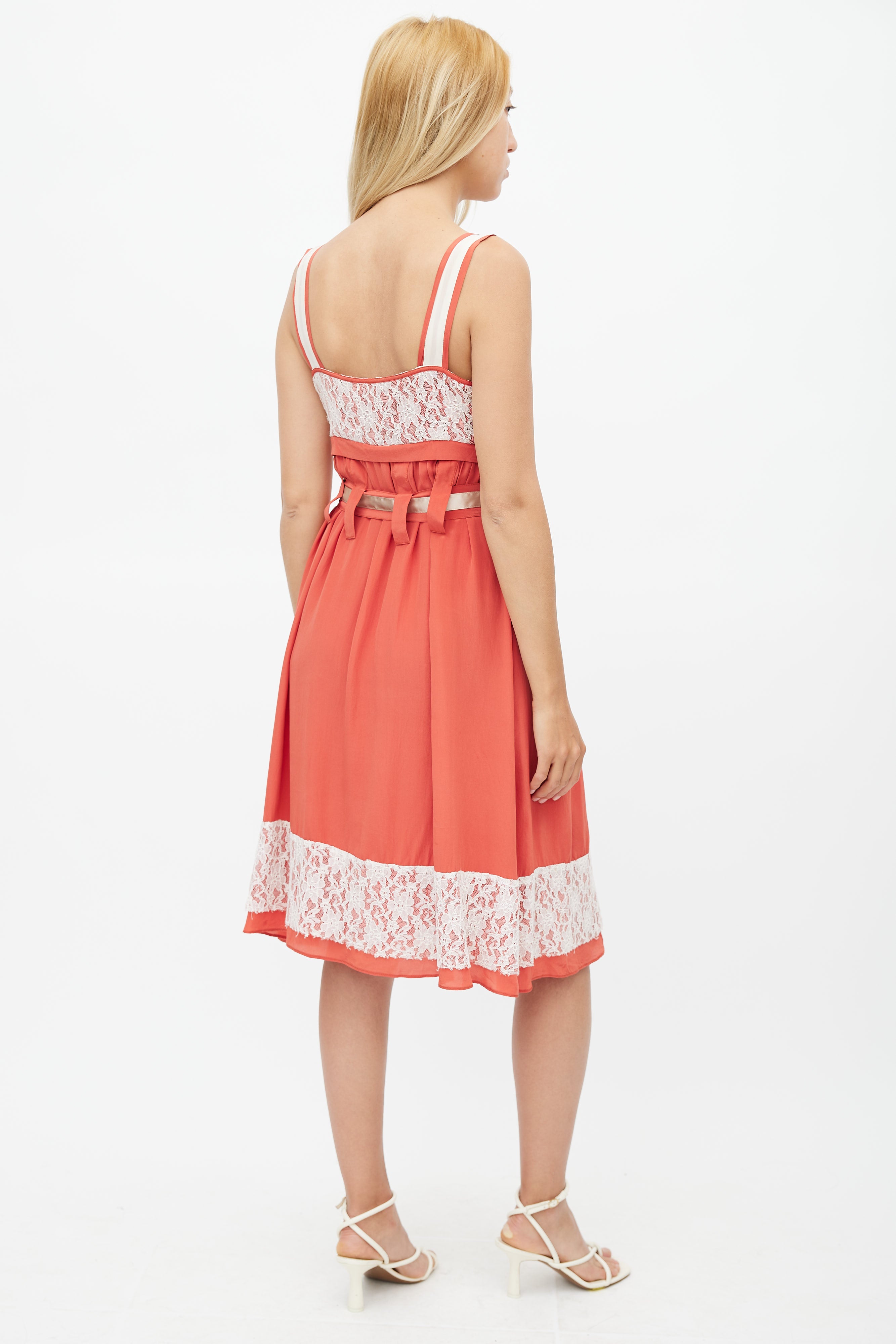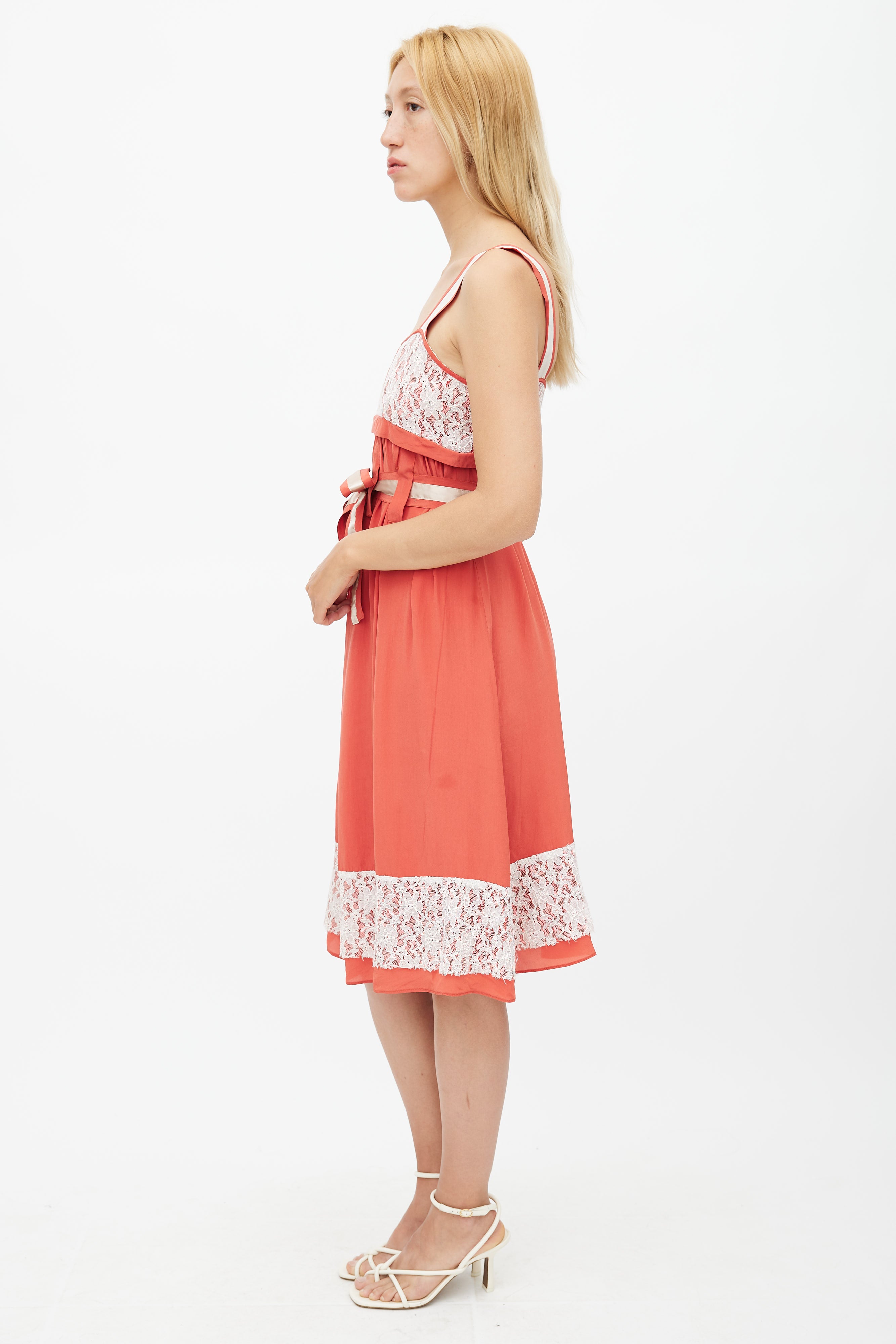 Red & White Belted Lace Dress Small Size Guide