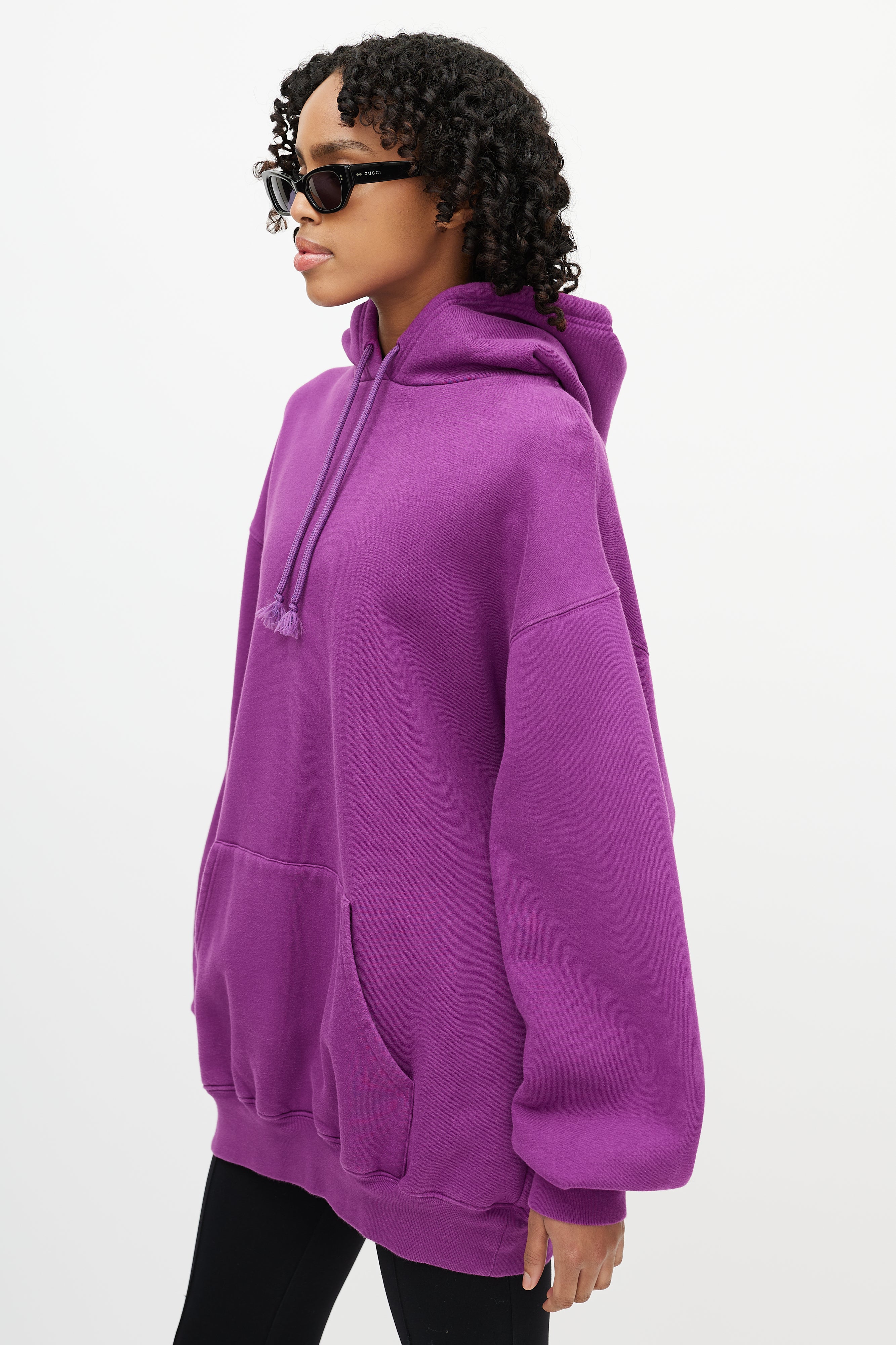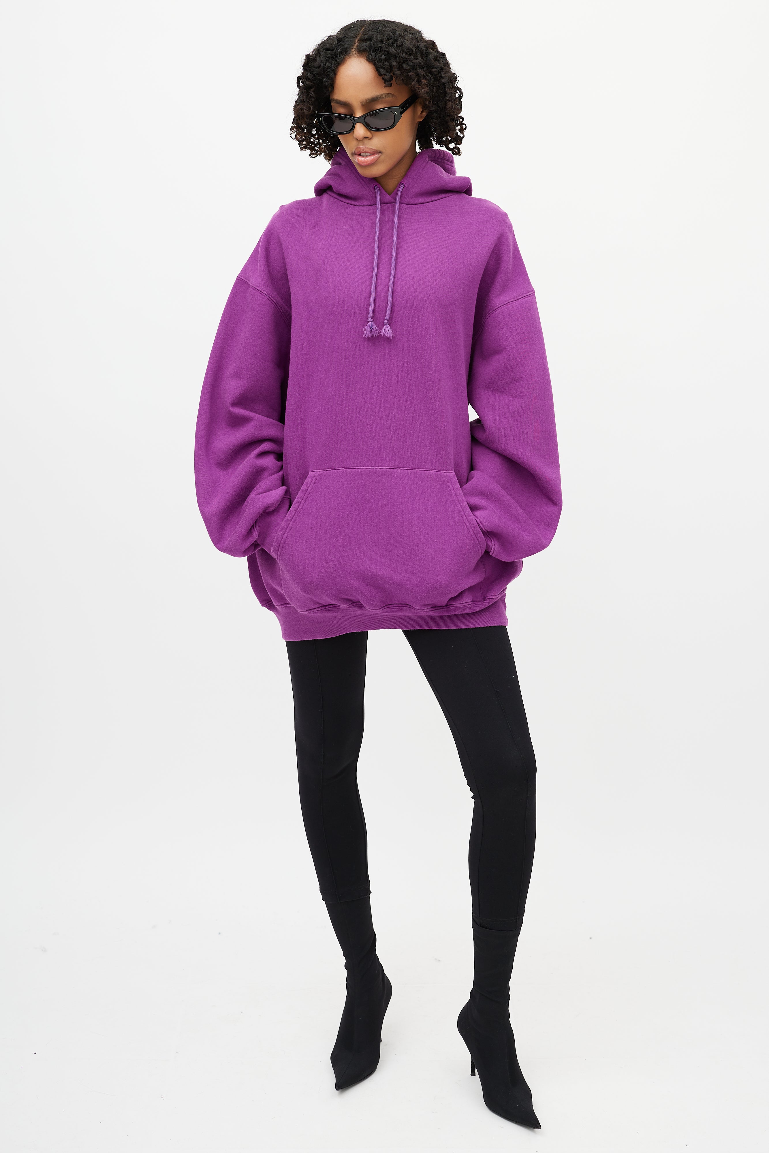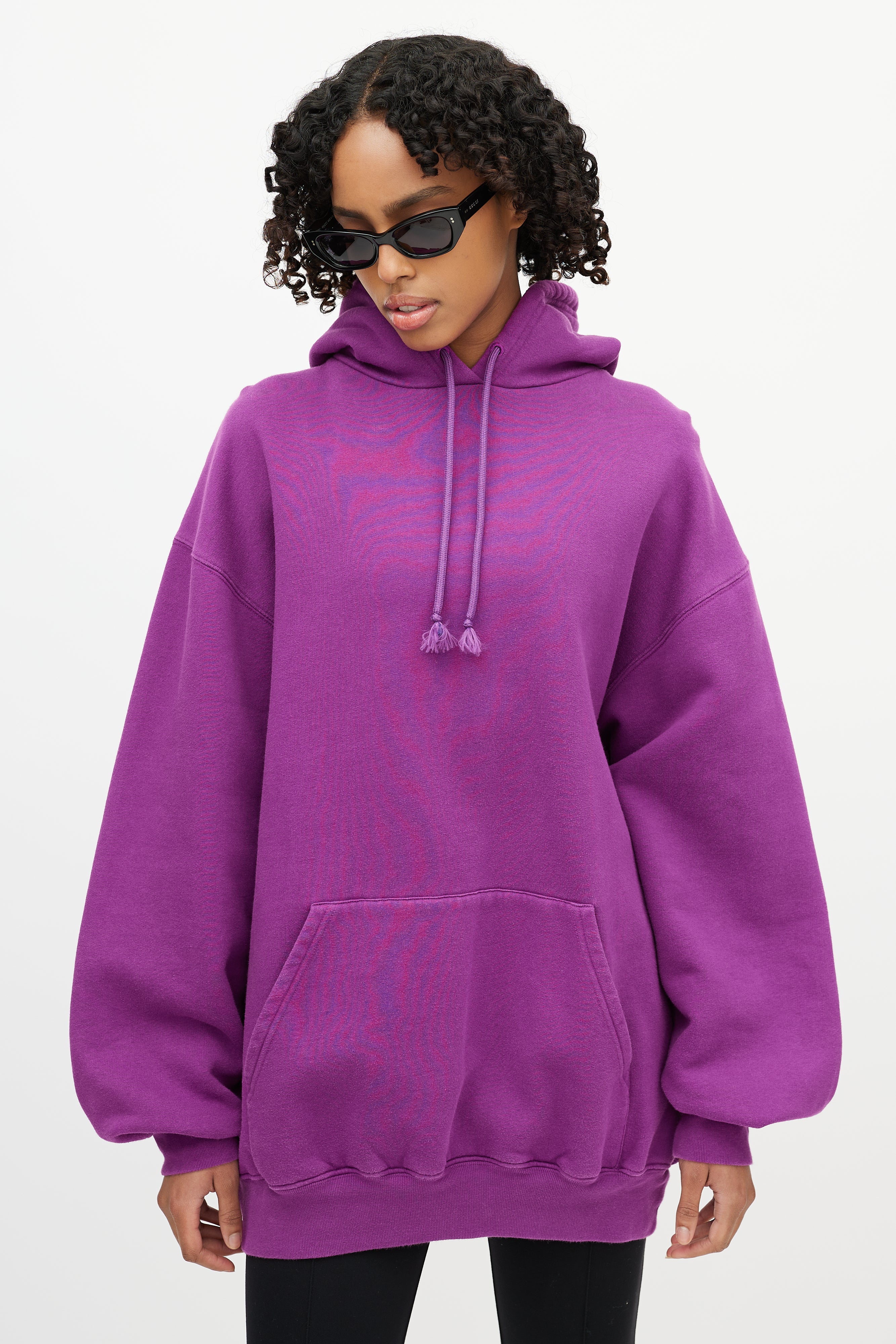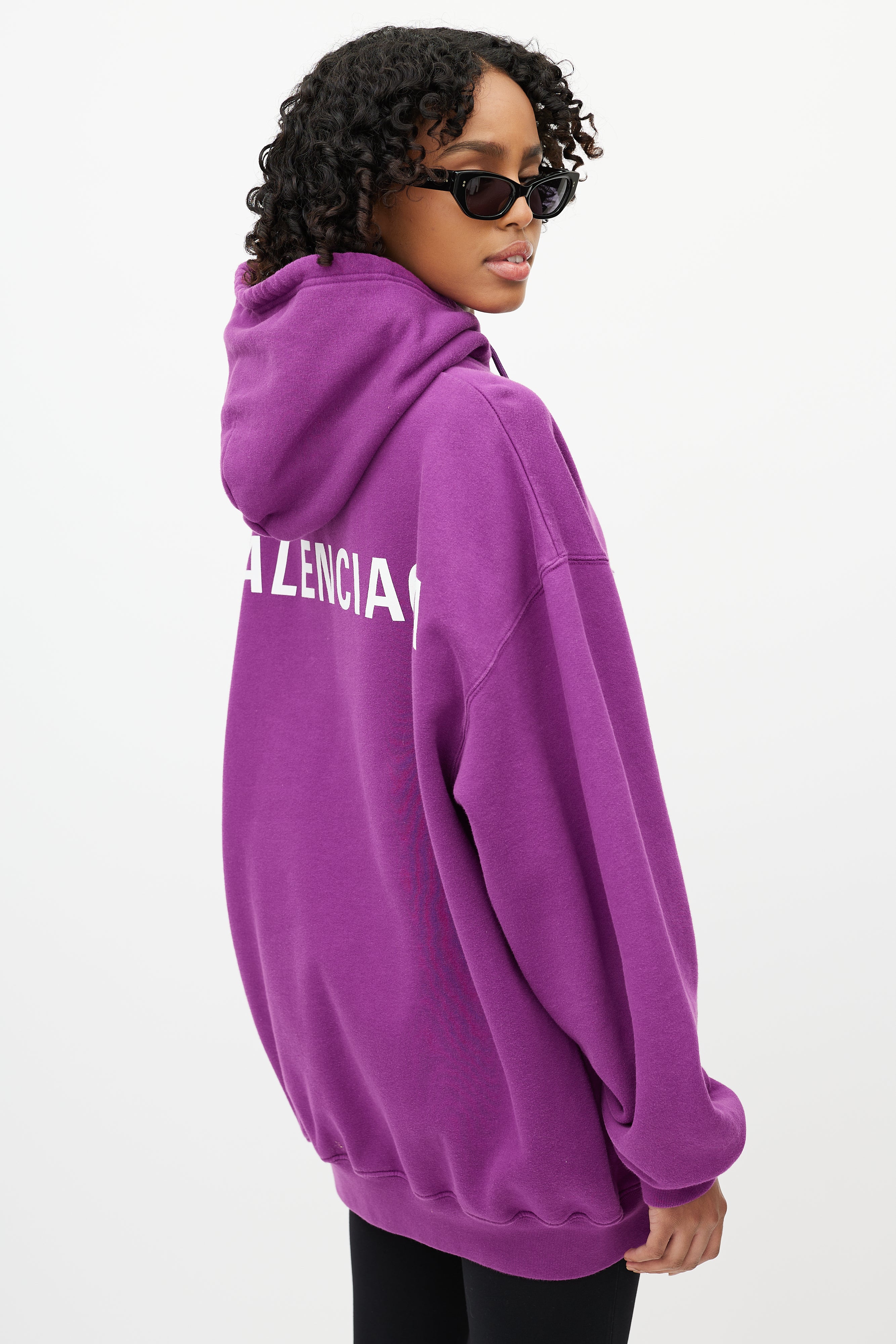 Pre-owned Balenciaga purple hoodie featuring woven drawstring at hood, logo text at upper back, ribbed cuffs and hem and kangaroo pocket at waist.