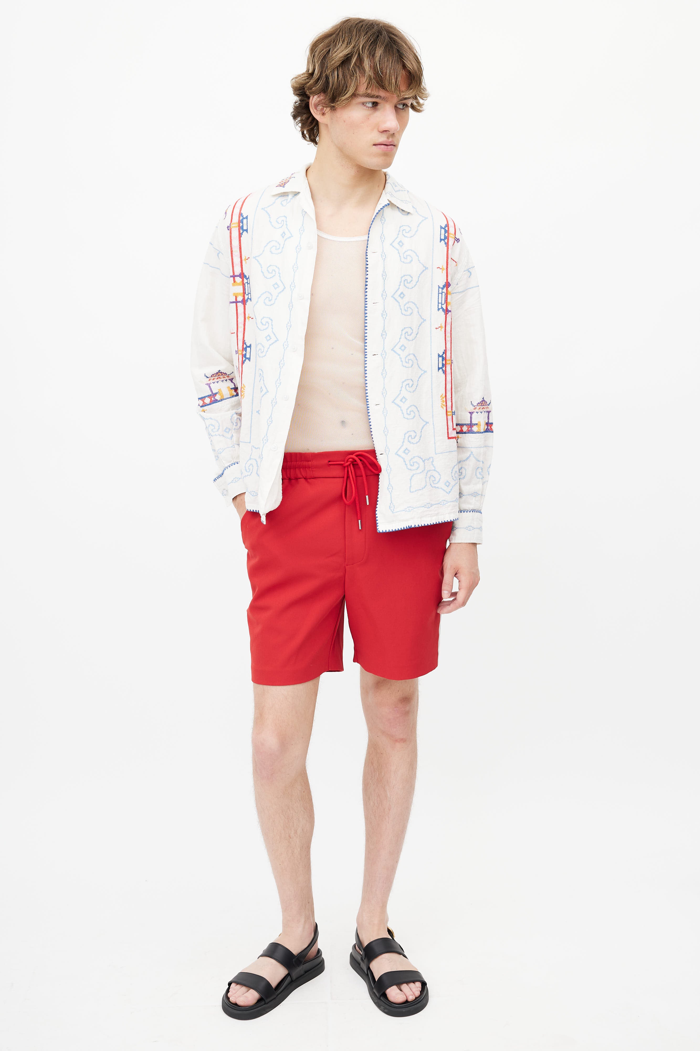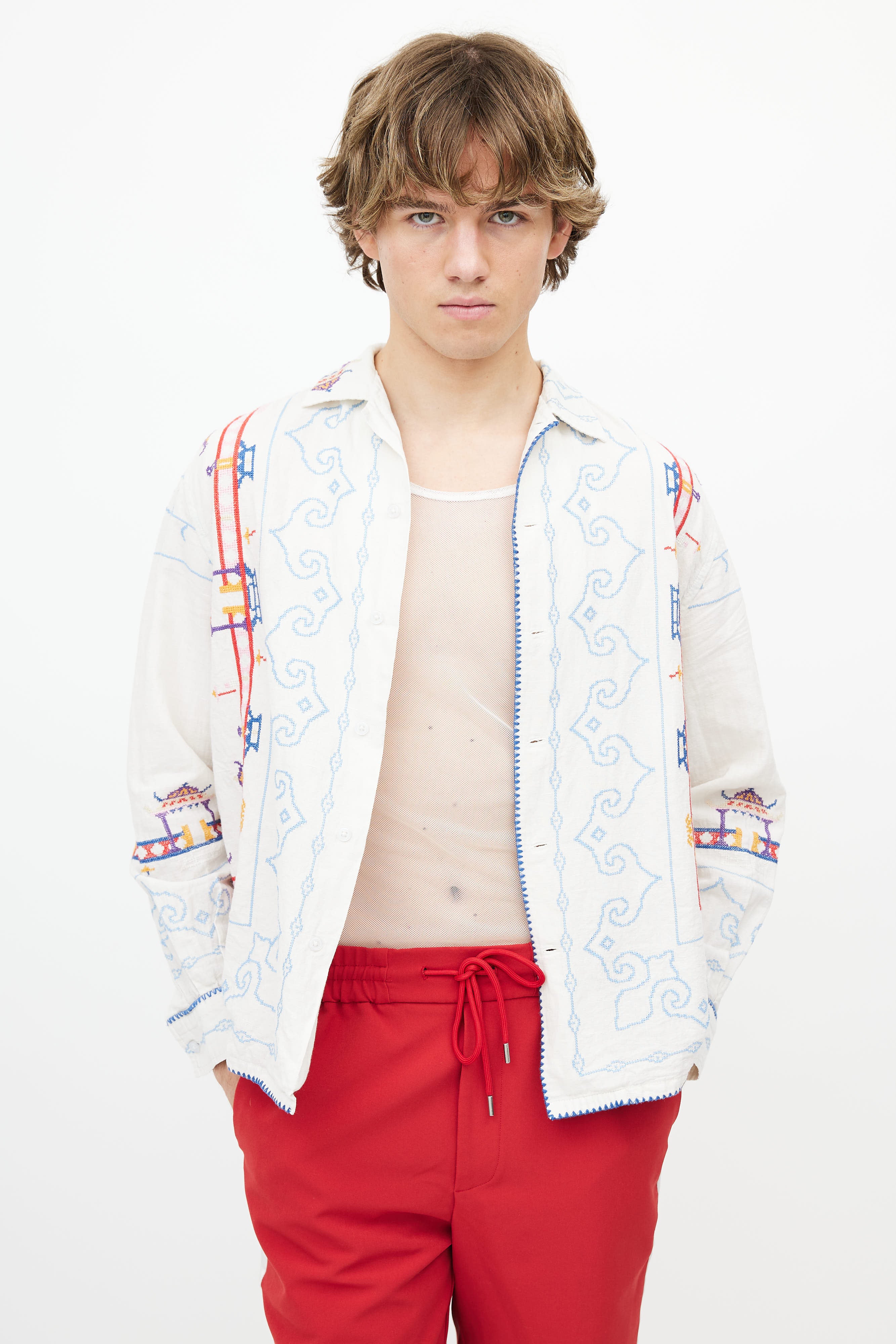 White & Multi Embroidered Shirt Small Size Guide