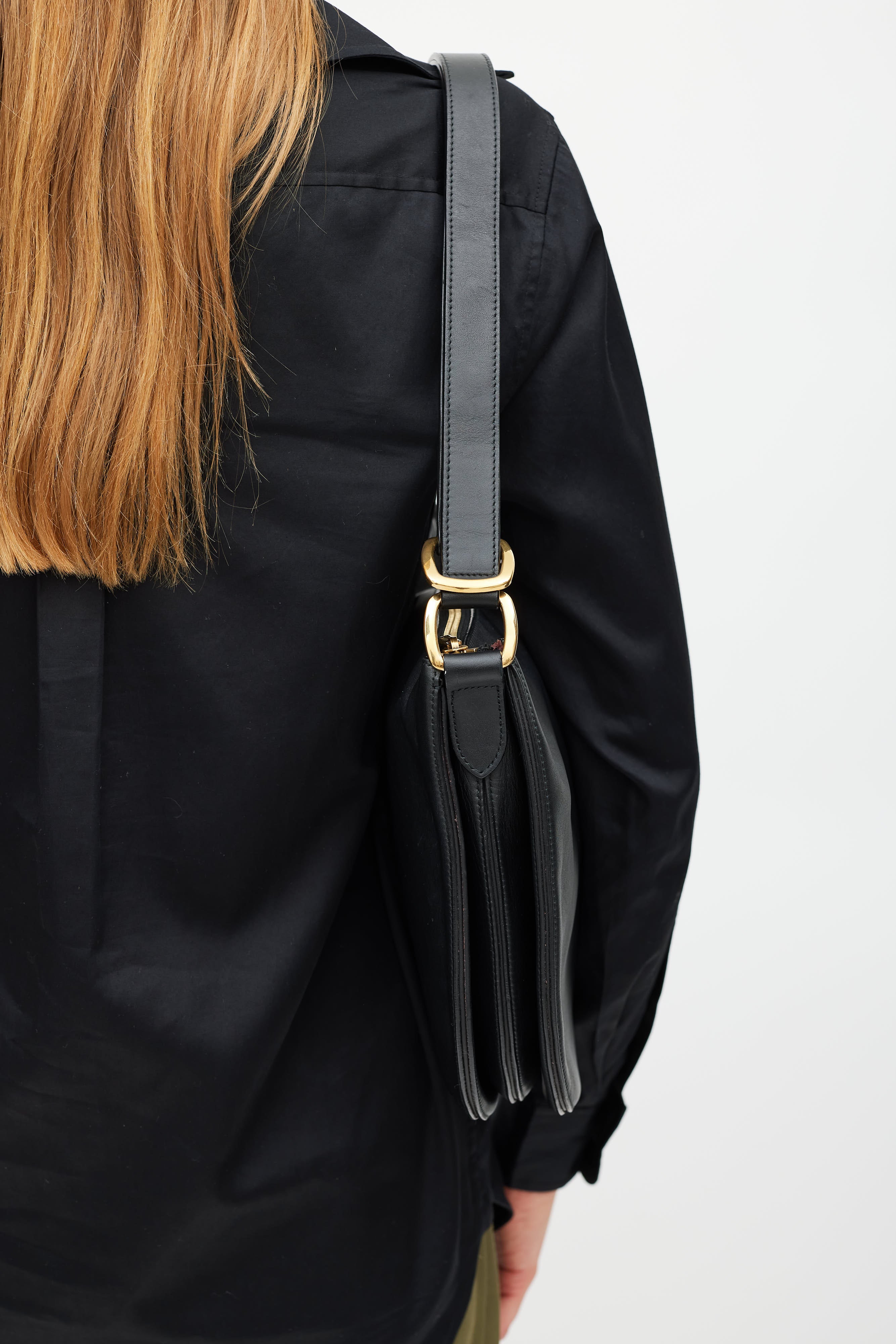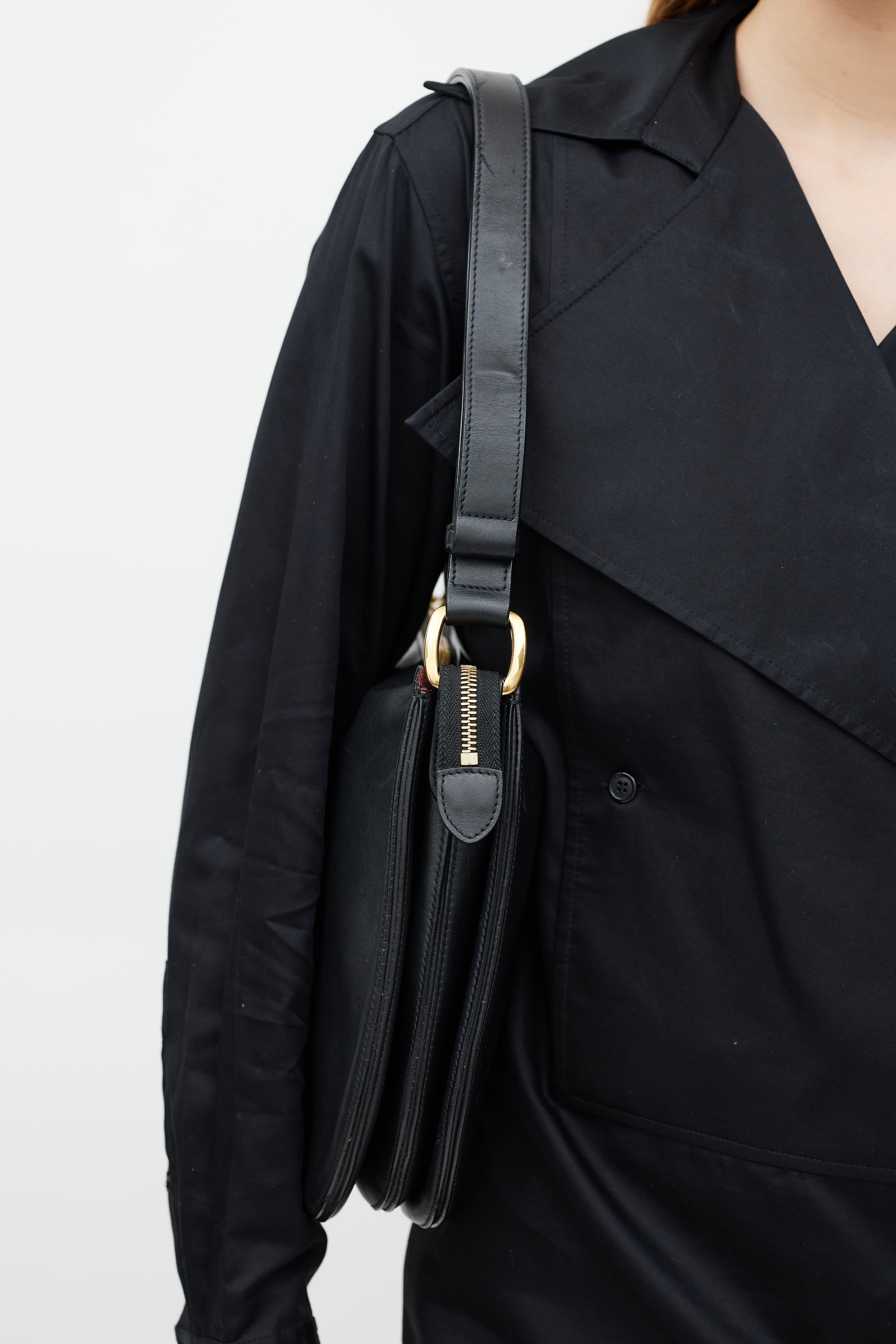 Black Accordian Leather Saddle Bag