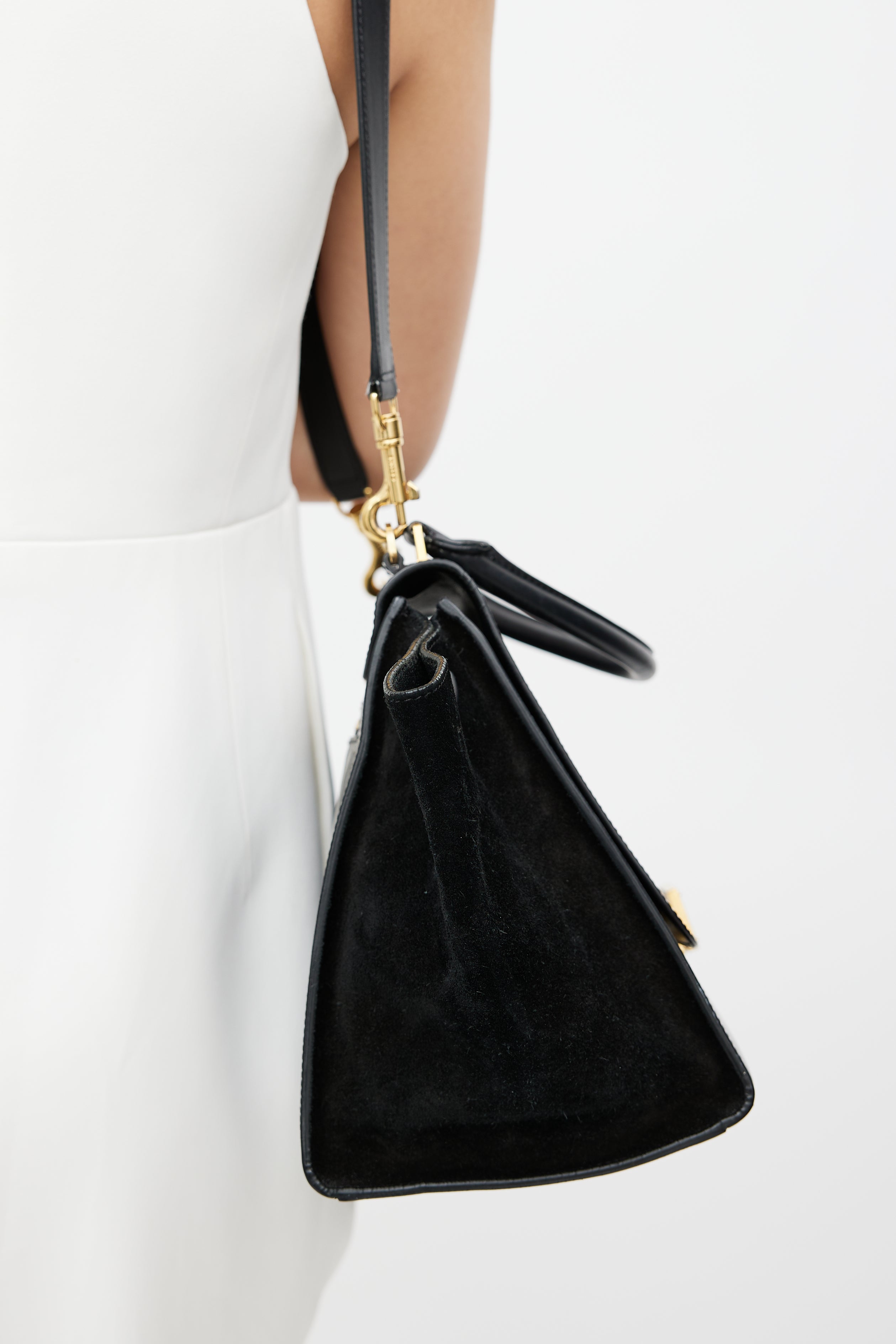 Black Patent & Suede Large Trapeze Shoulder Bag