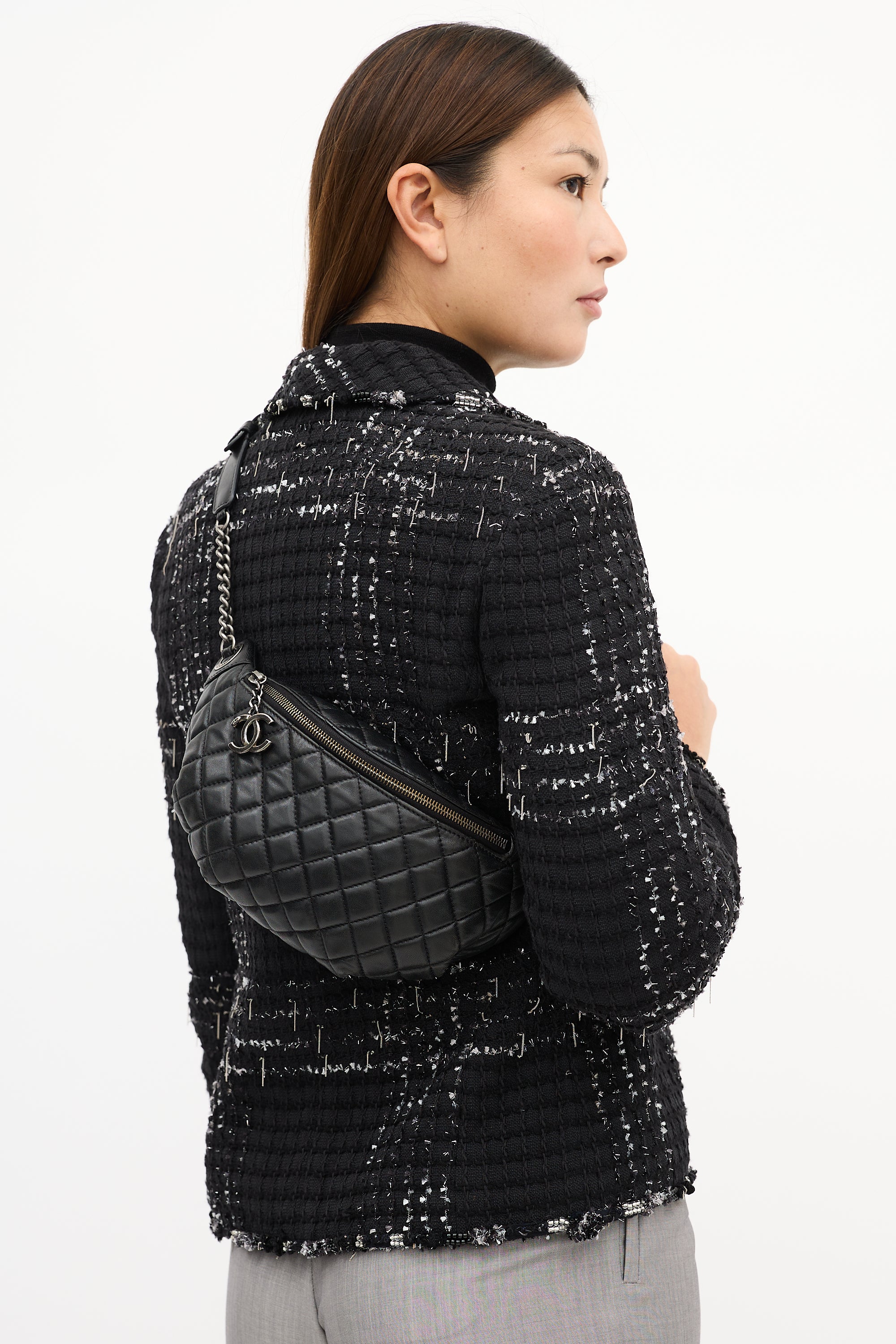 2014 Black Quilted Leather Banane Waist Bag