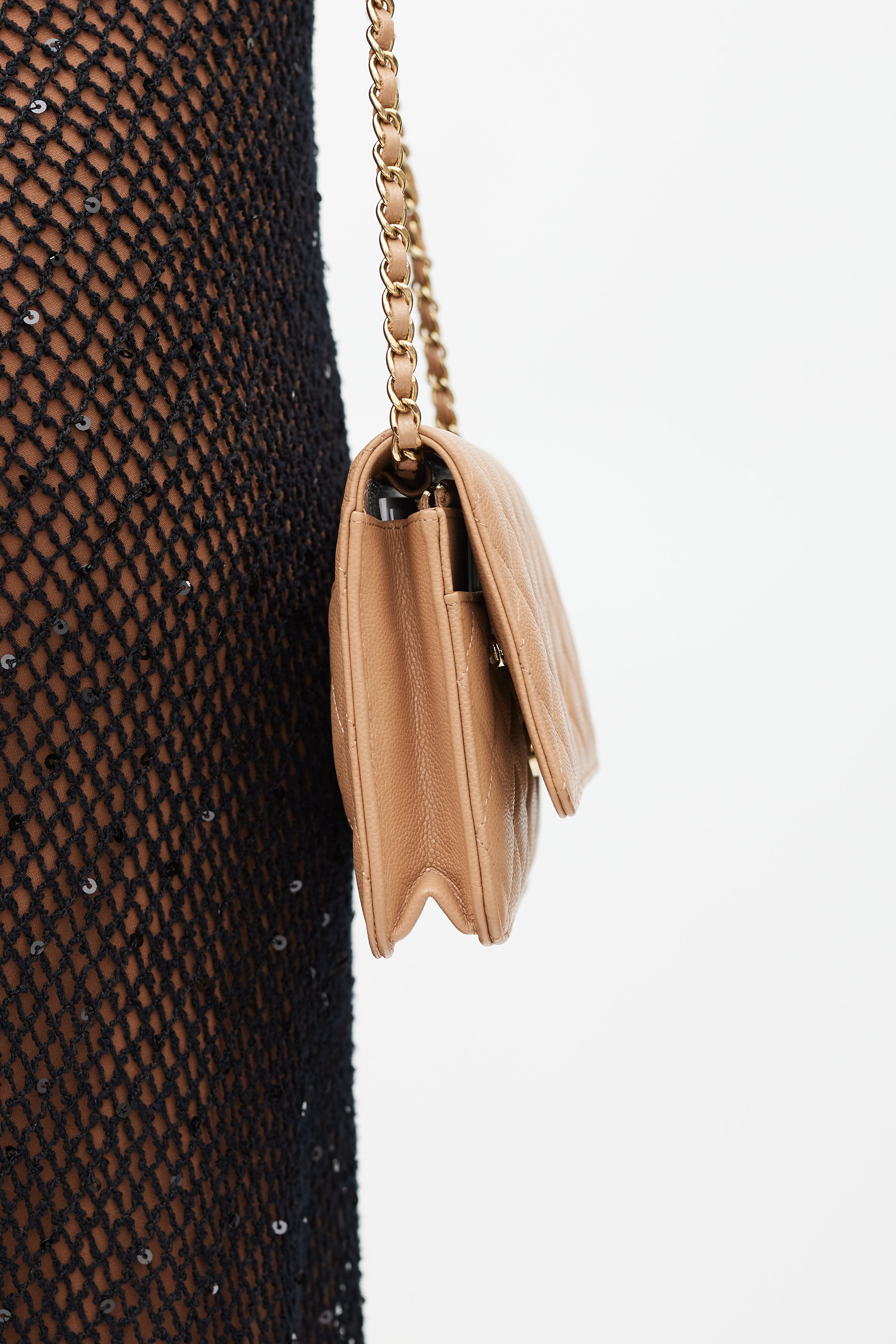 Beige Caviar Wallet On Chain Bag