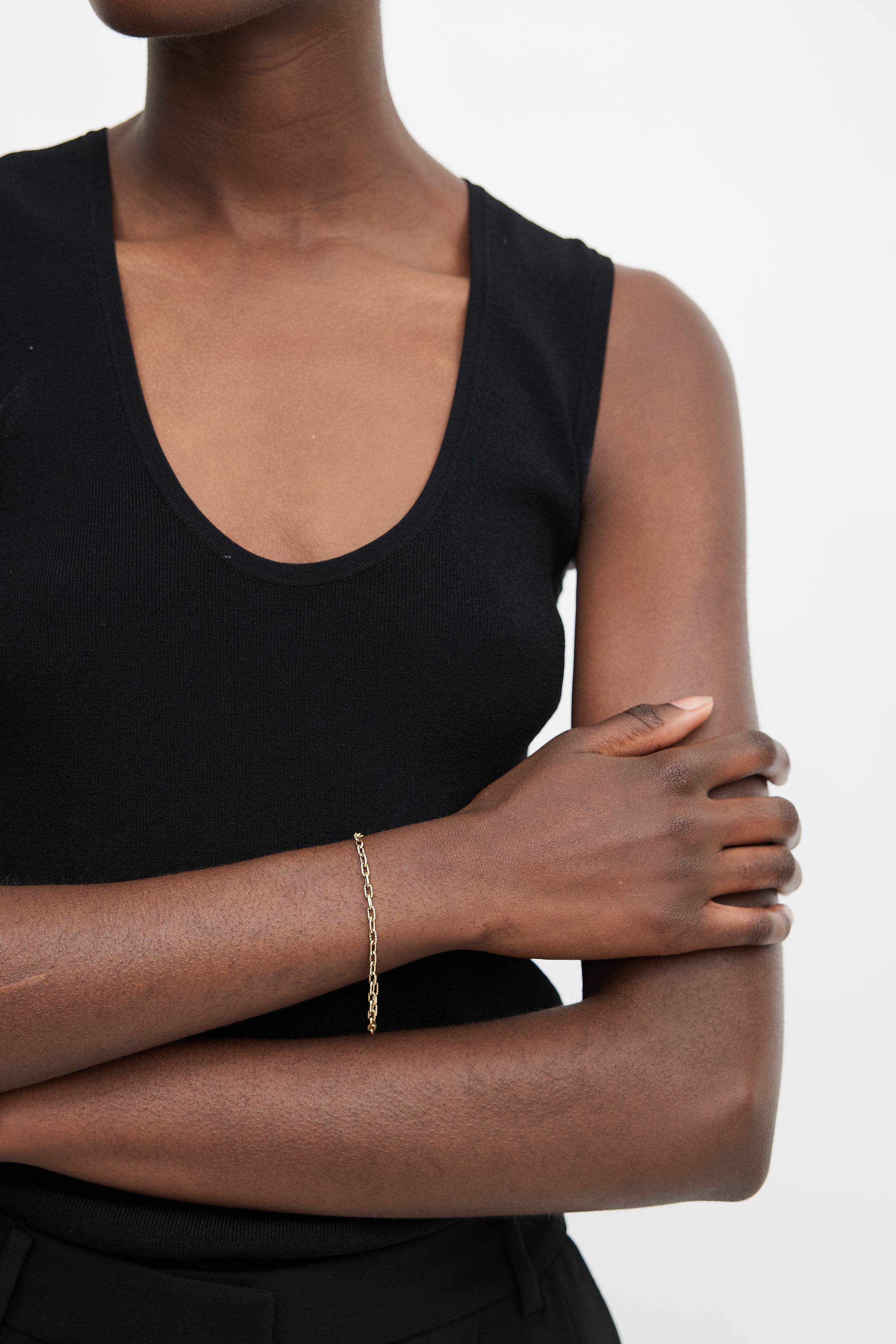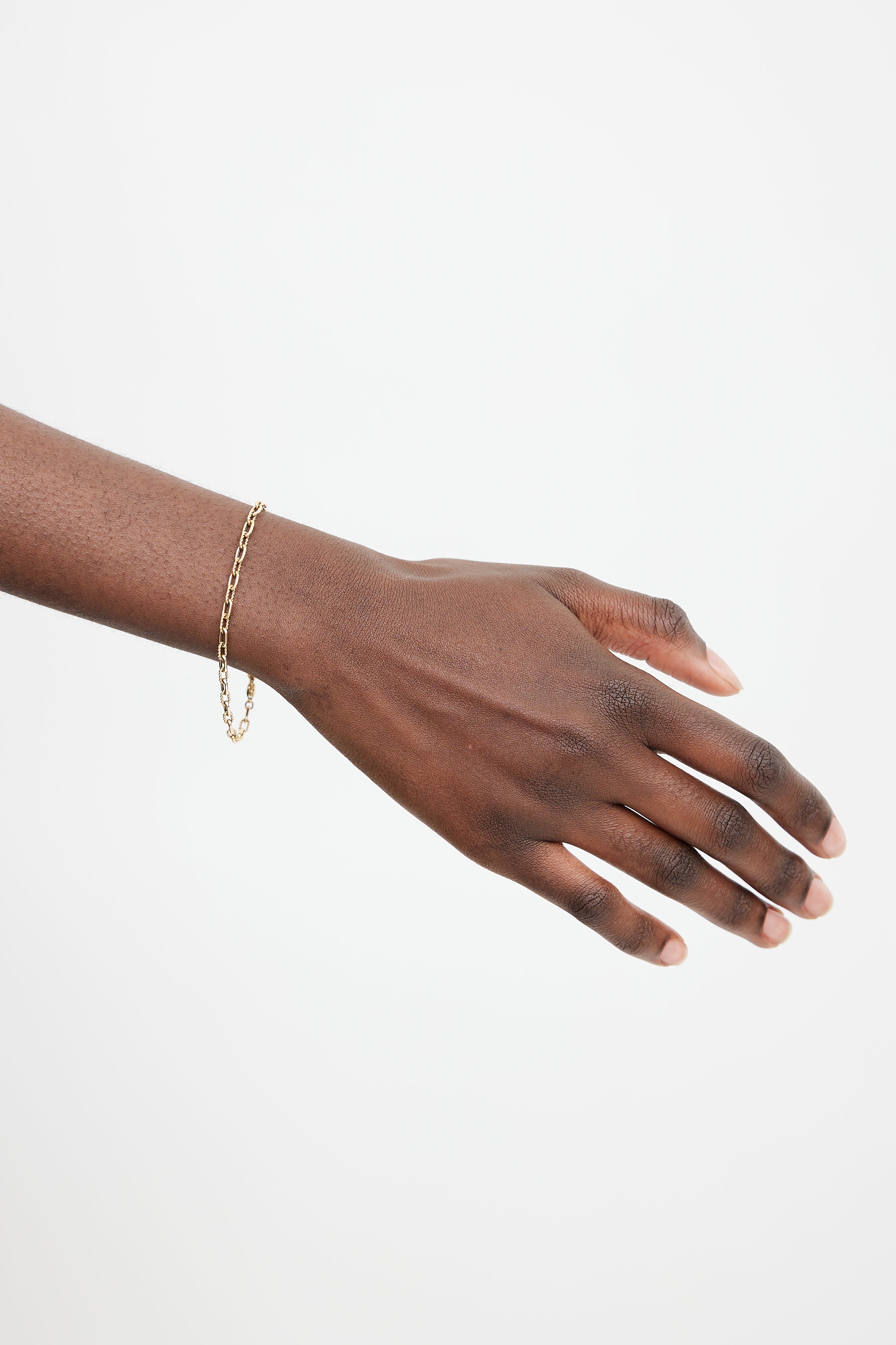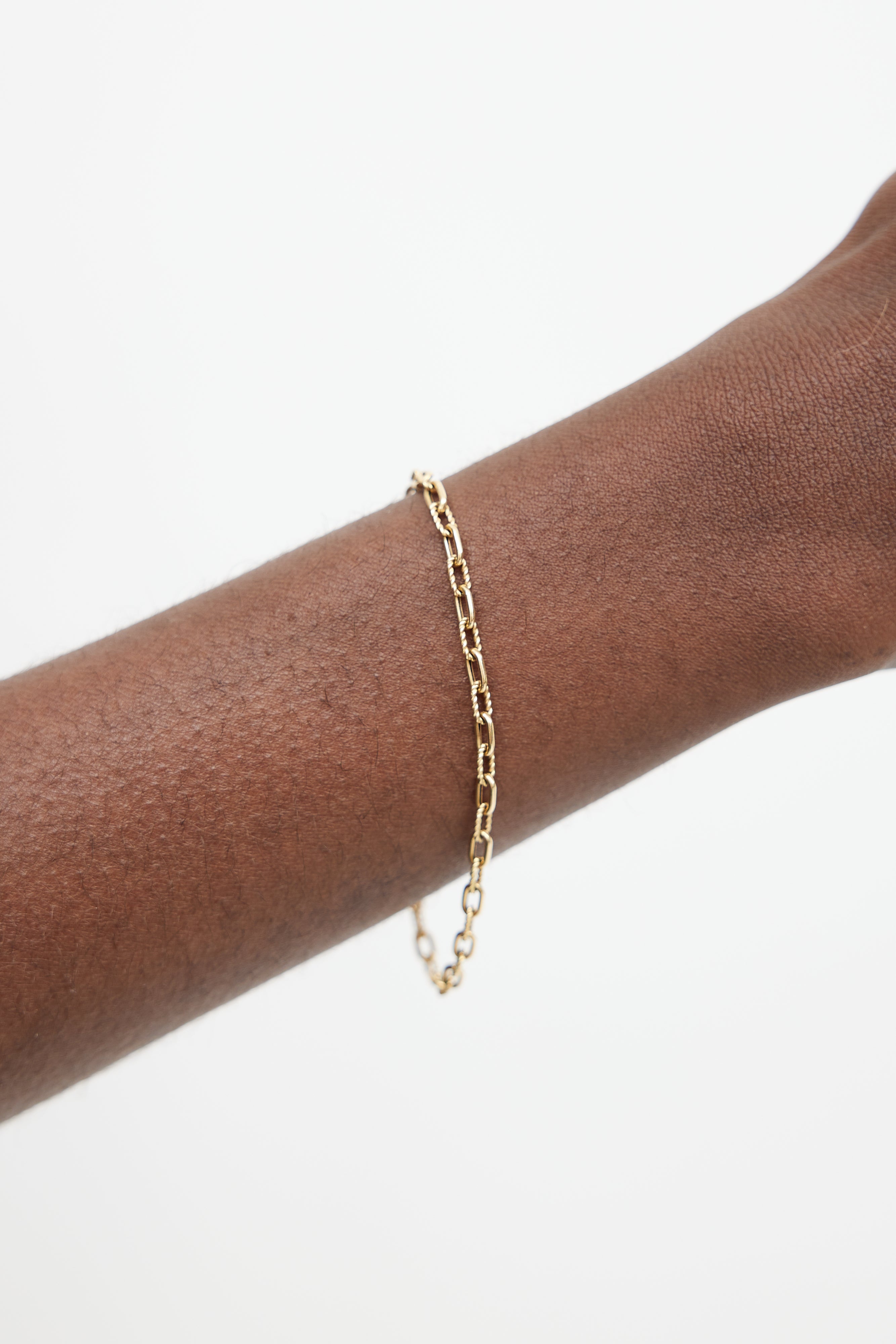 Pre-owned David Yurman gold Madison bracelet featuring chain link, clasp closure, and engraved logo at clasp.