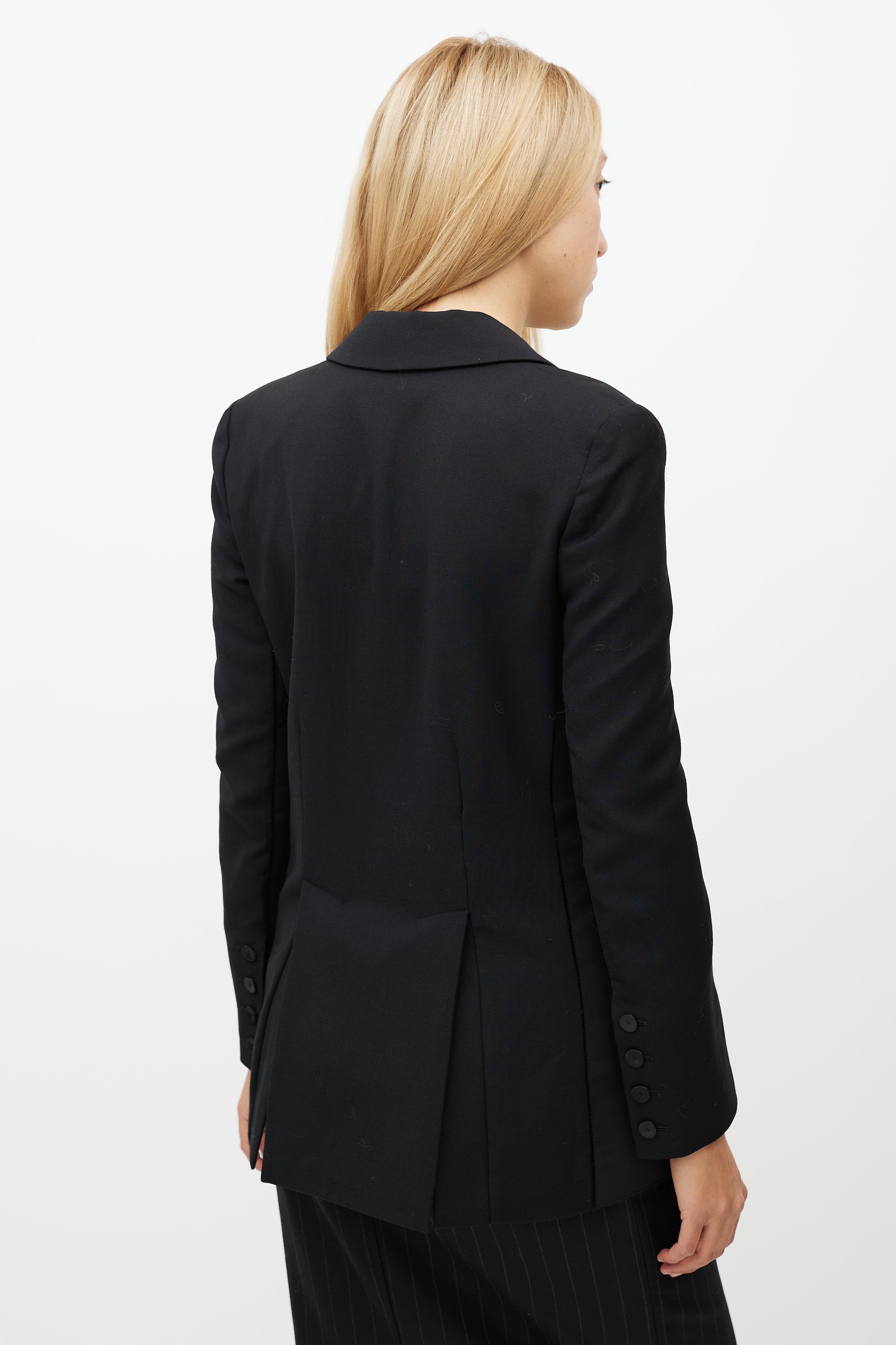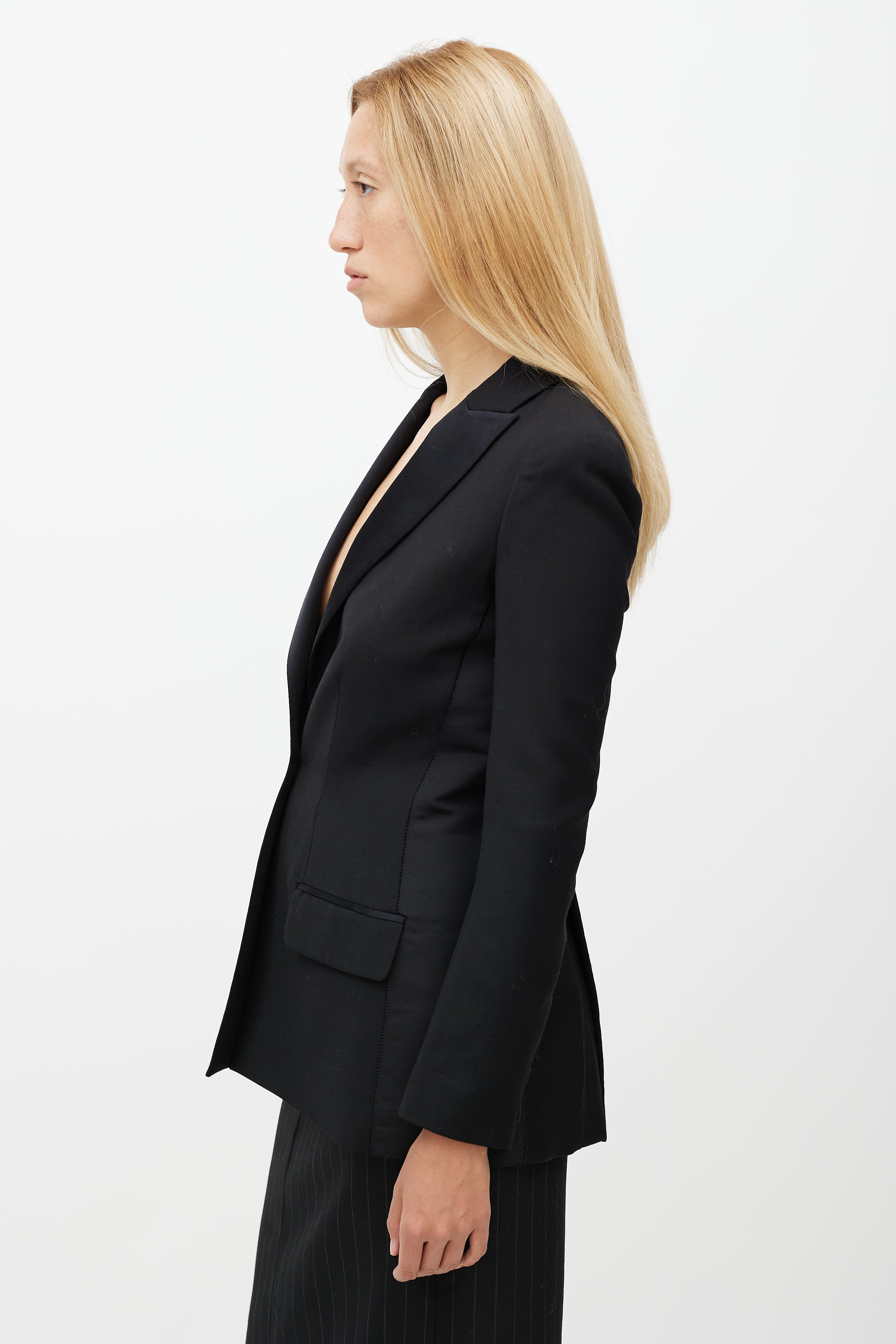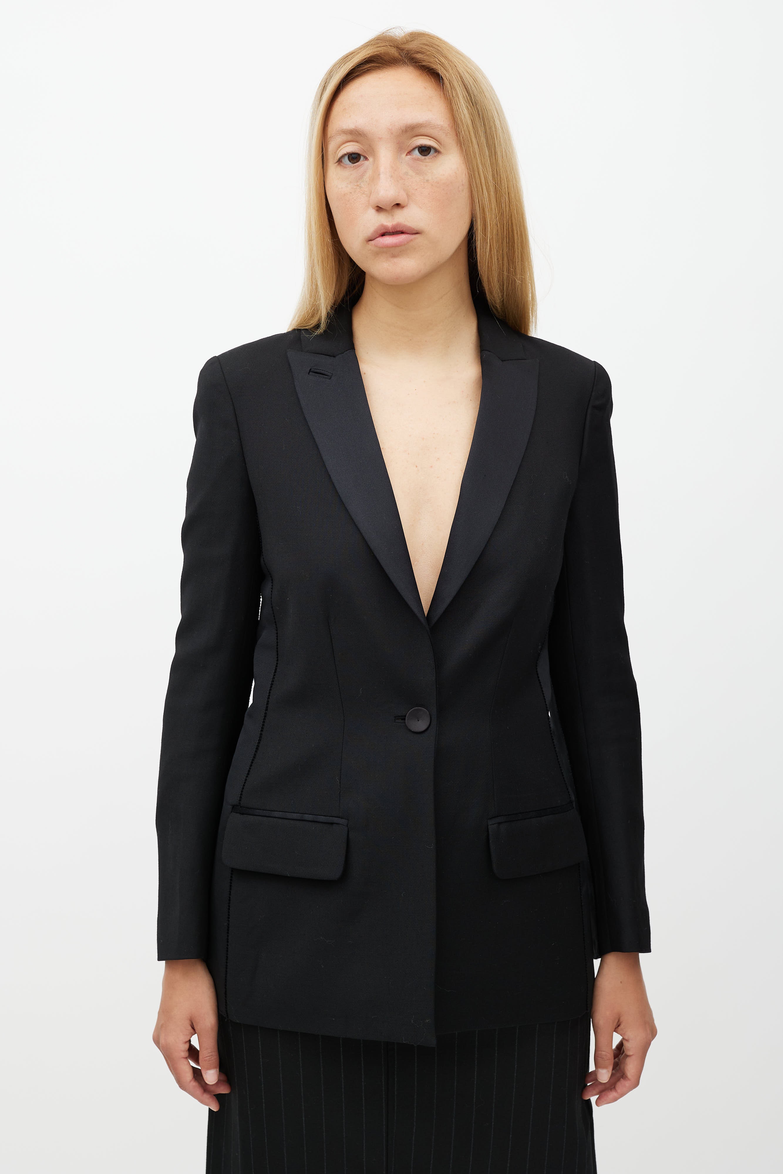 Black Wool Satin Lapel Blazer US 0 Size Guide