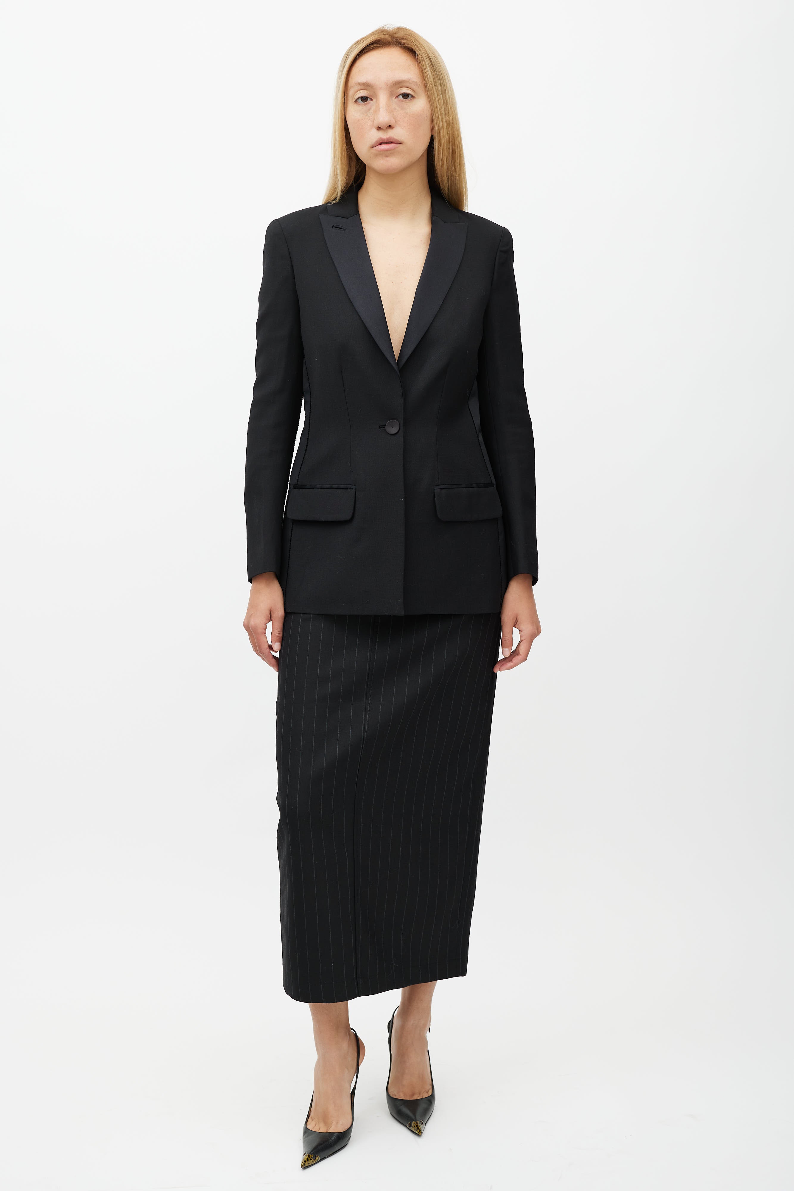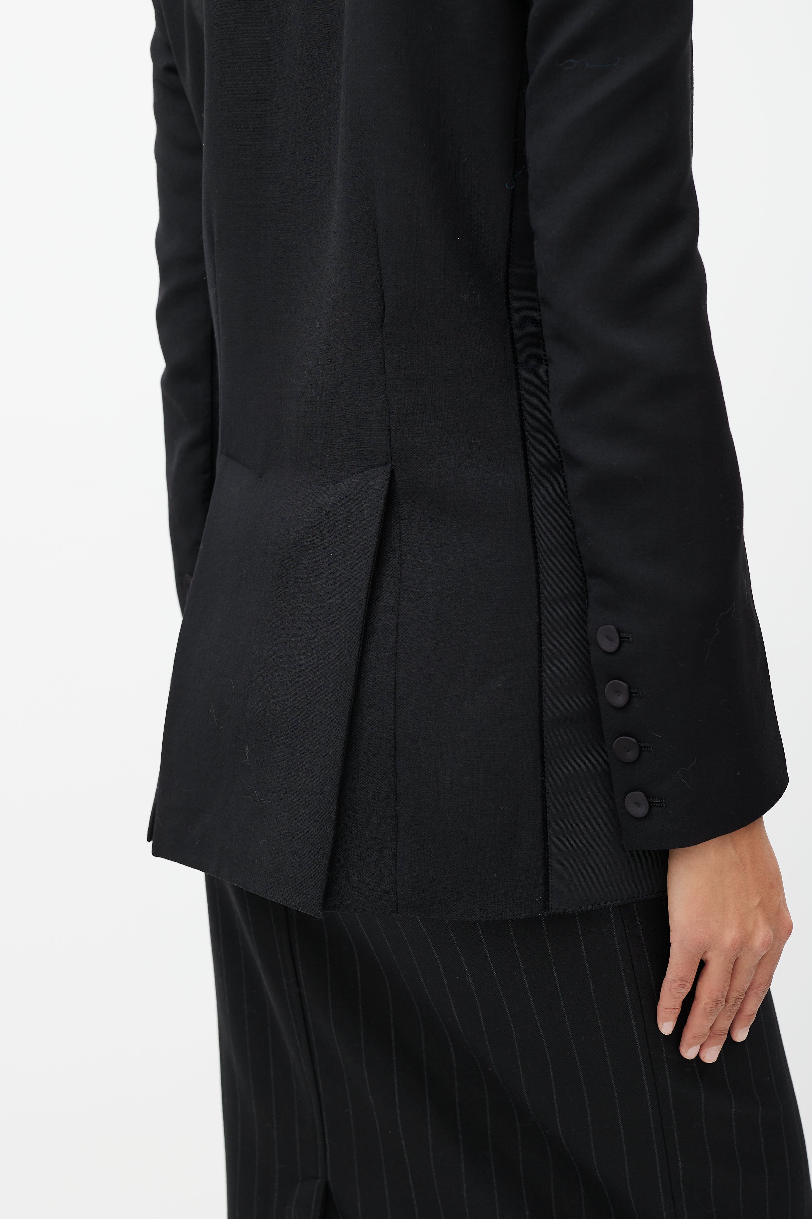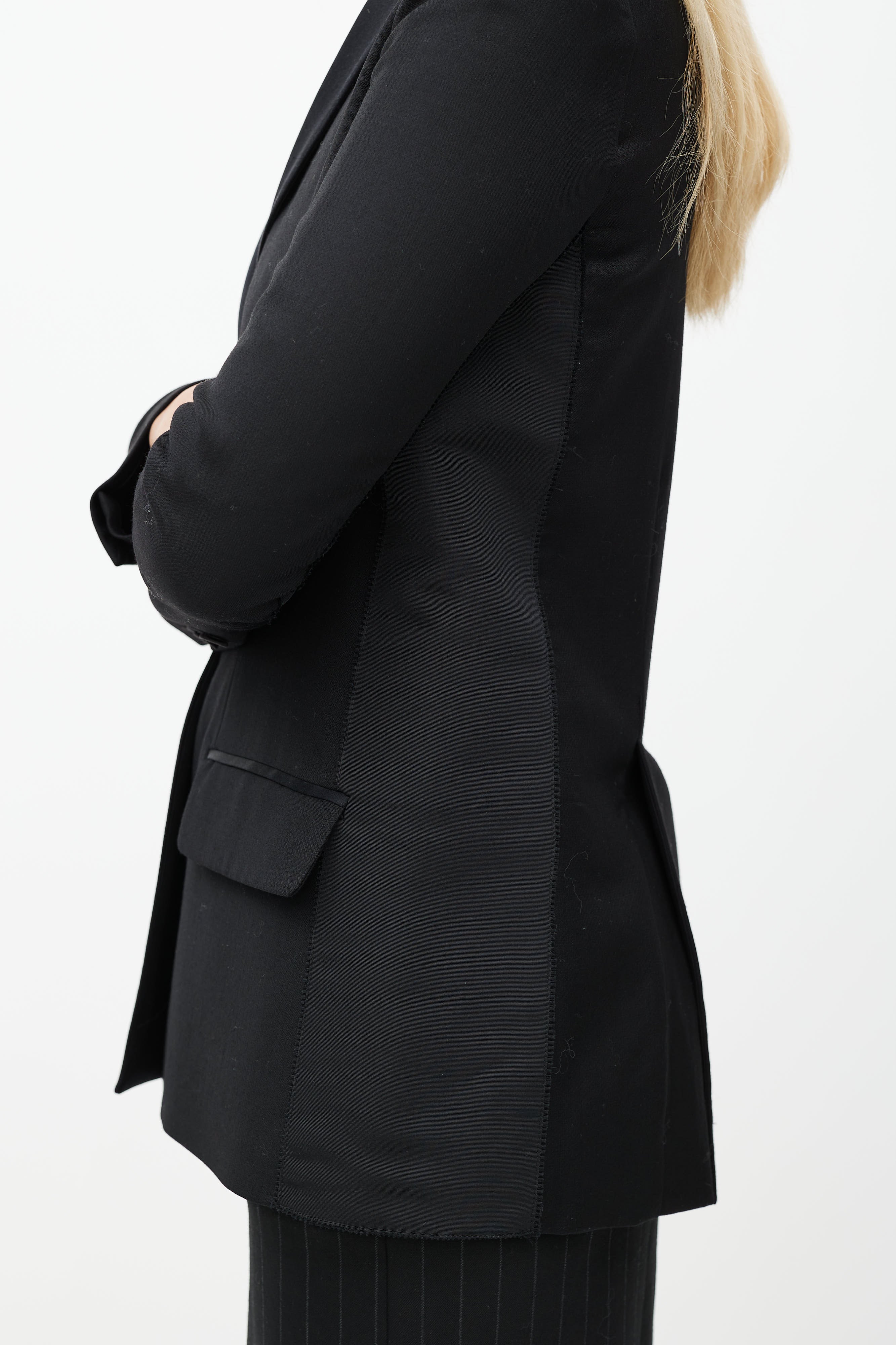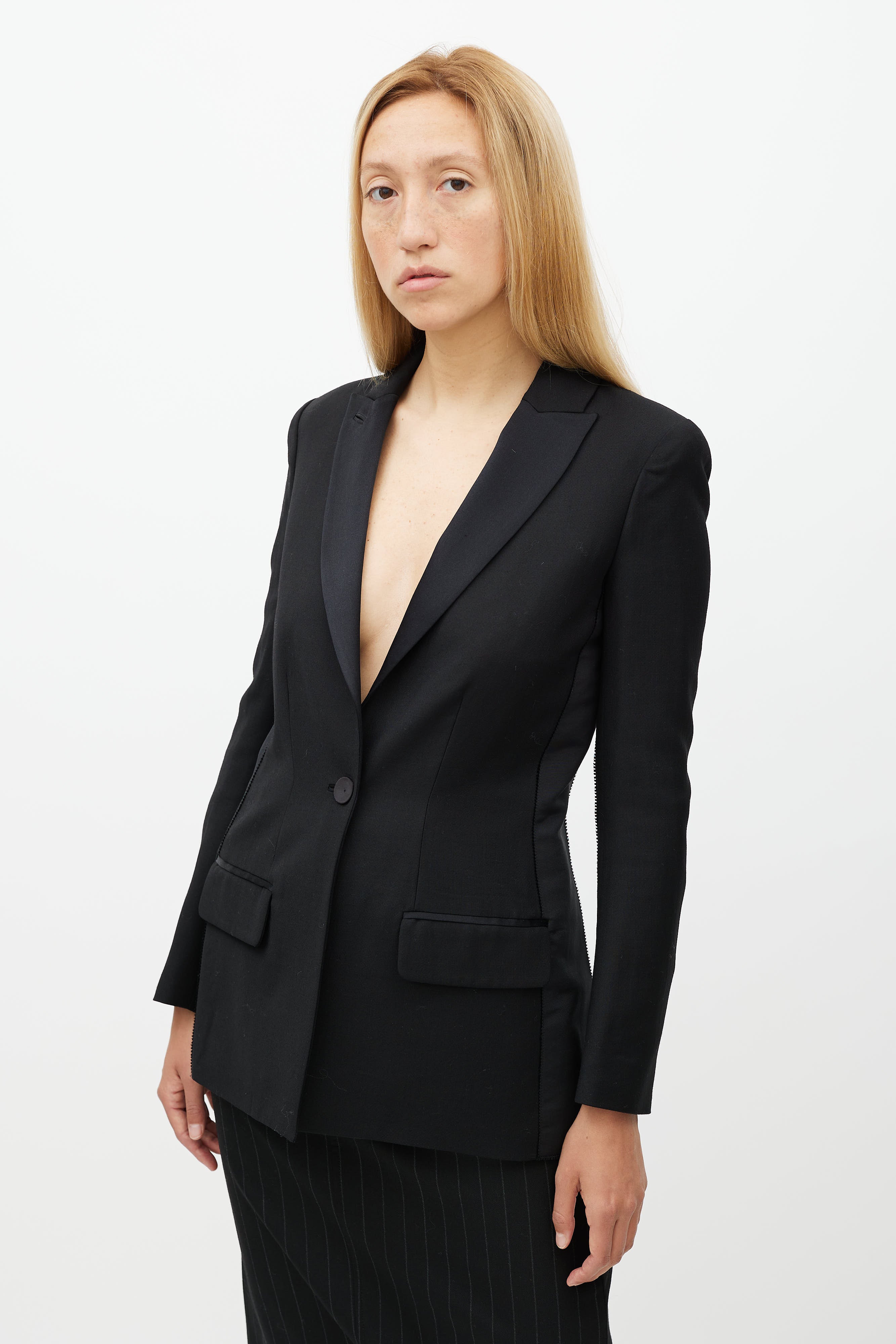 Black Wool Satin Lapel Blazer US 0 Size Guide