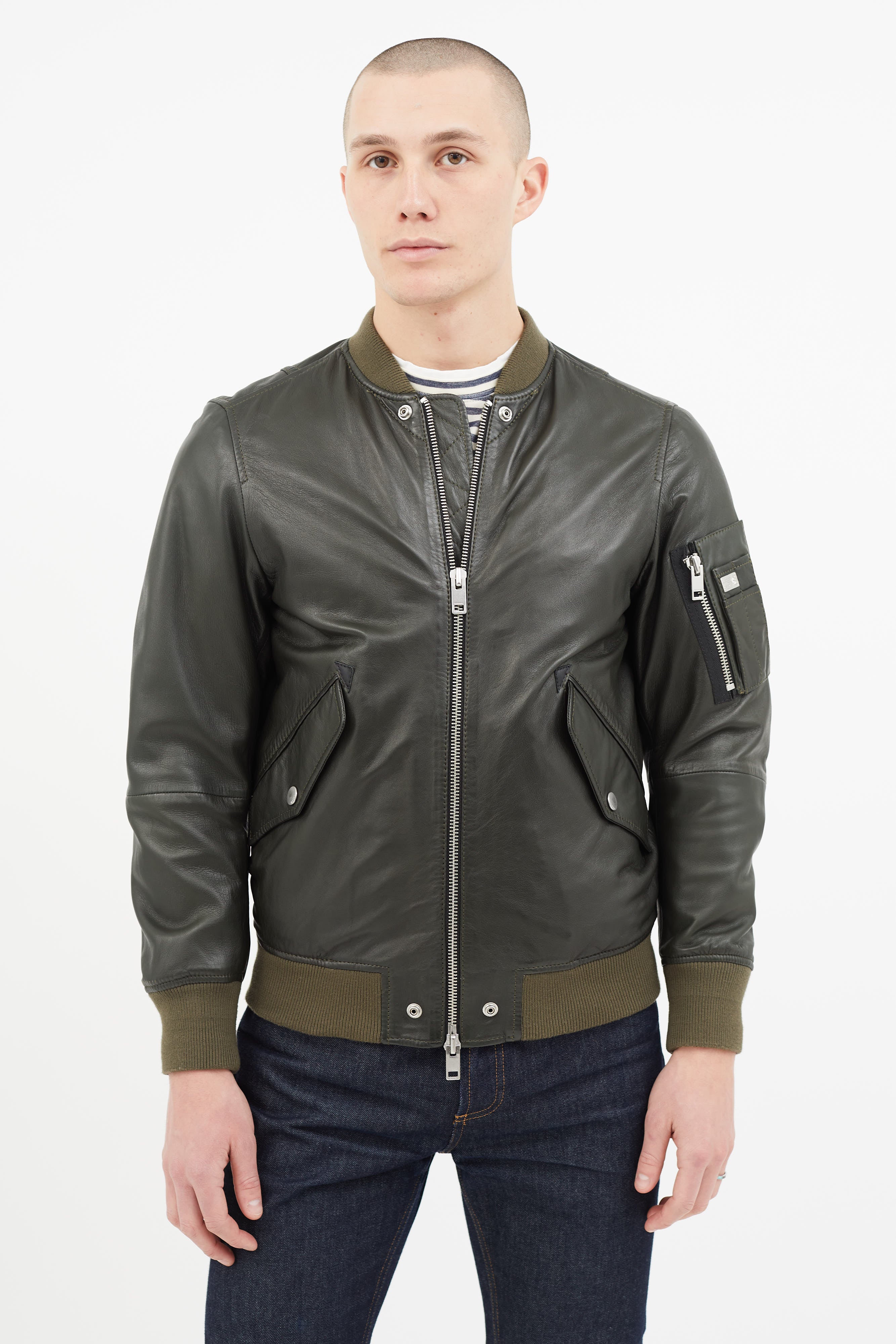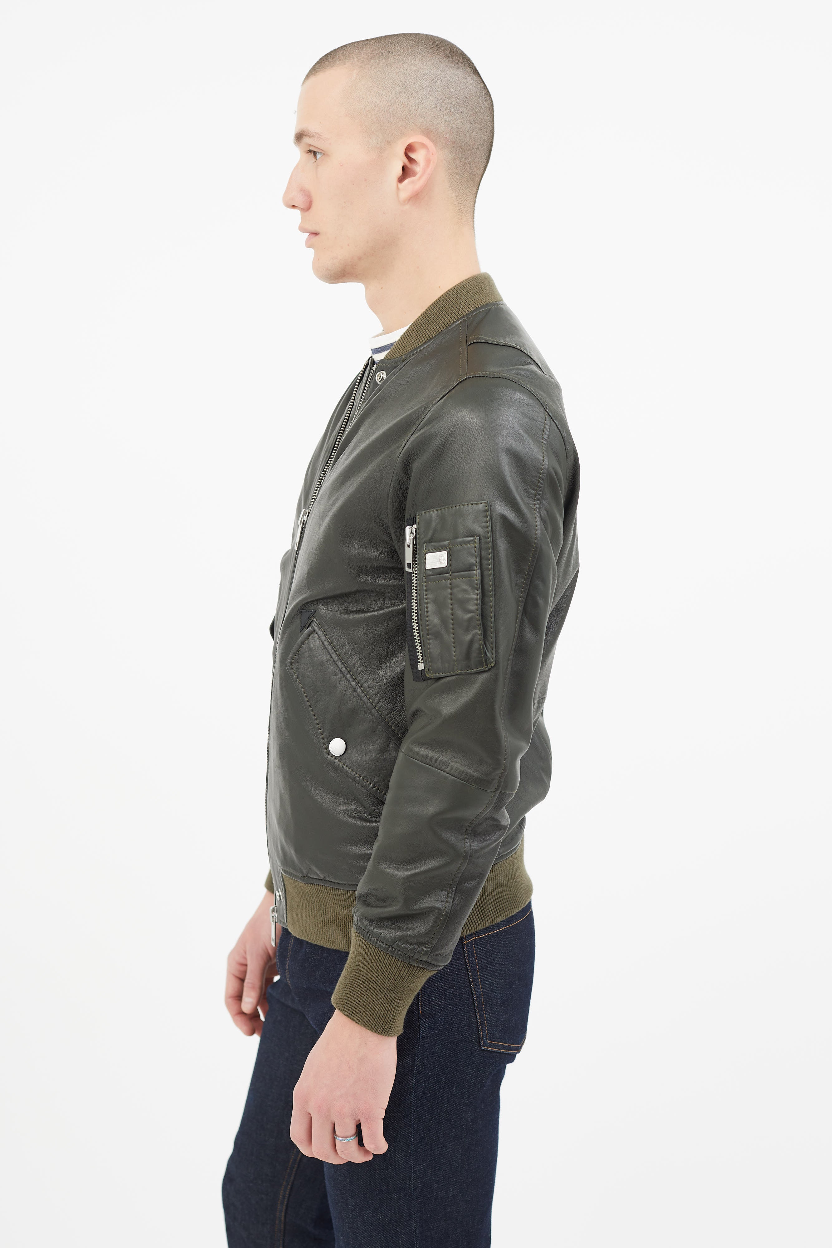 Green Leather Padded Bomber Jacket Small Size Guide