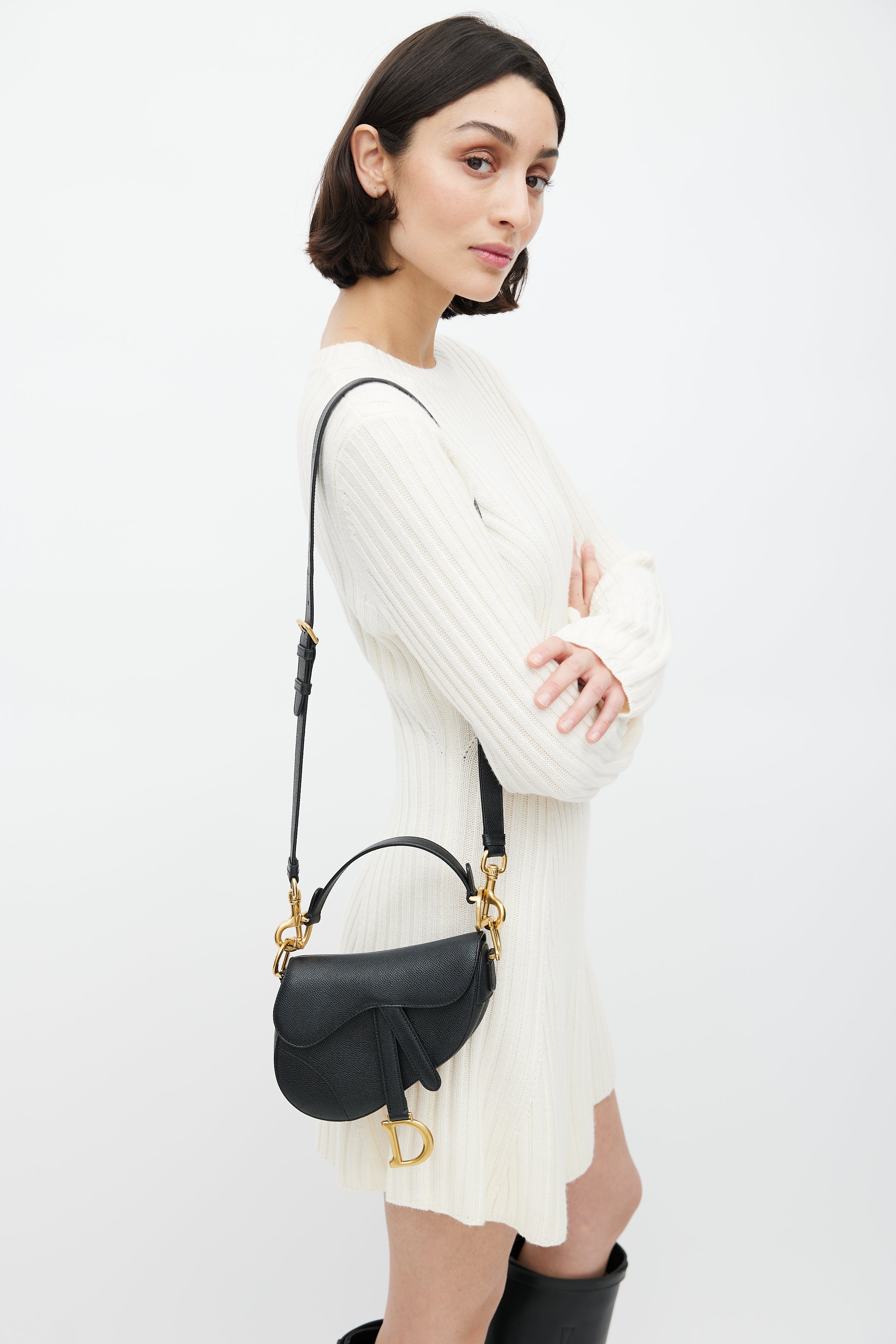 2022 Black Leather Mini Saddle Bag