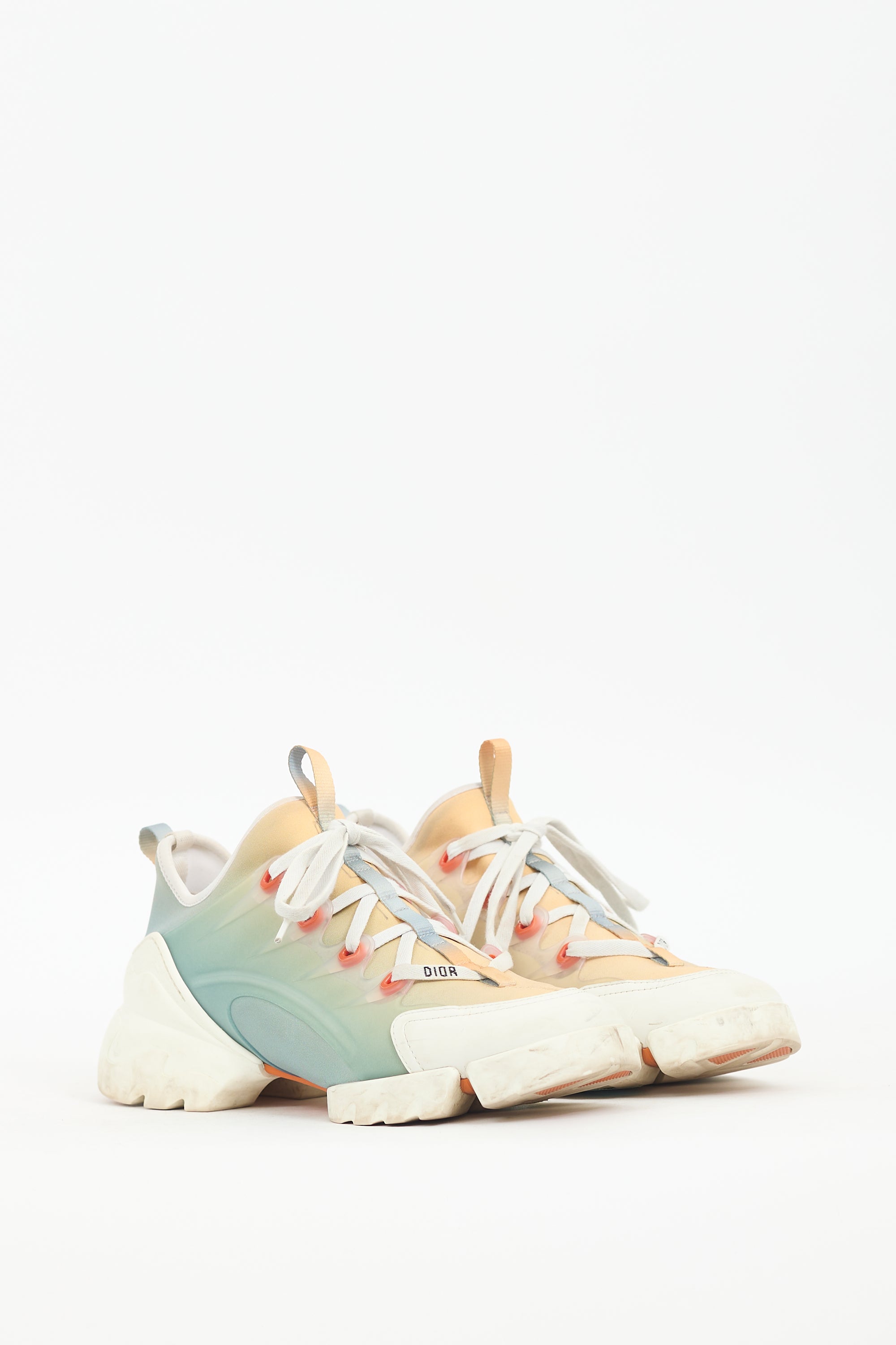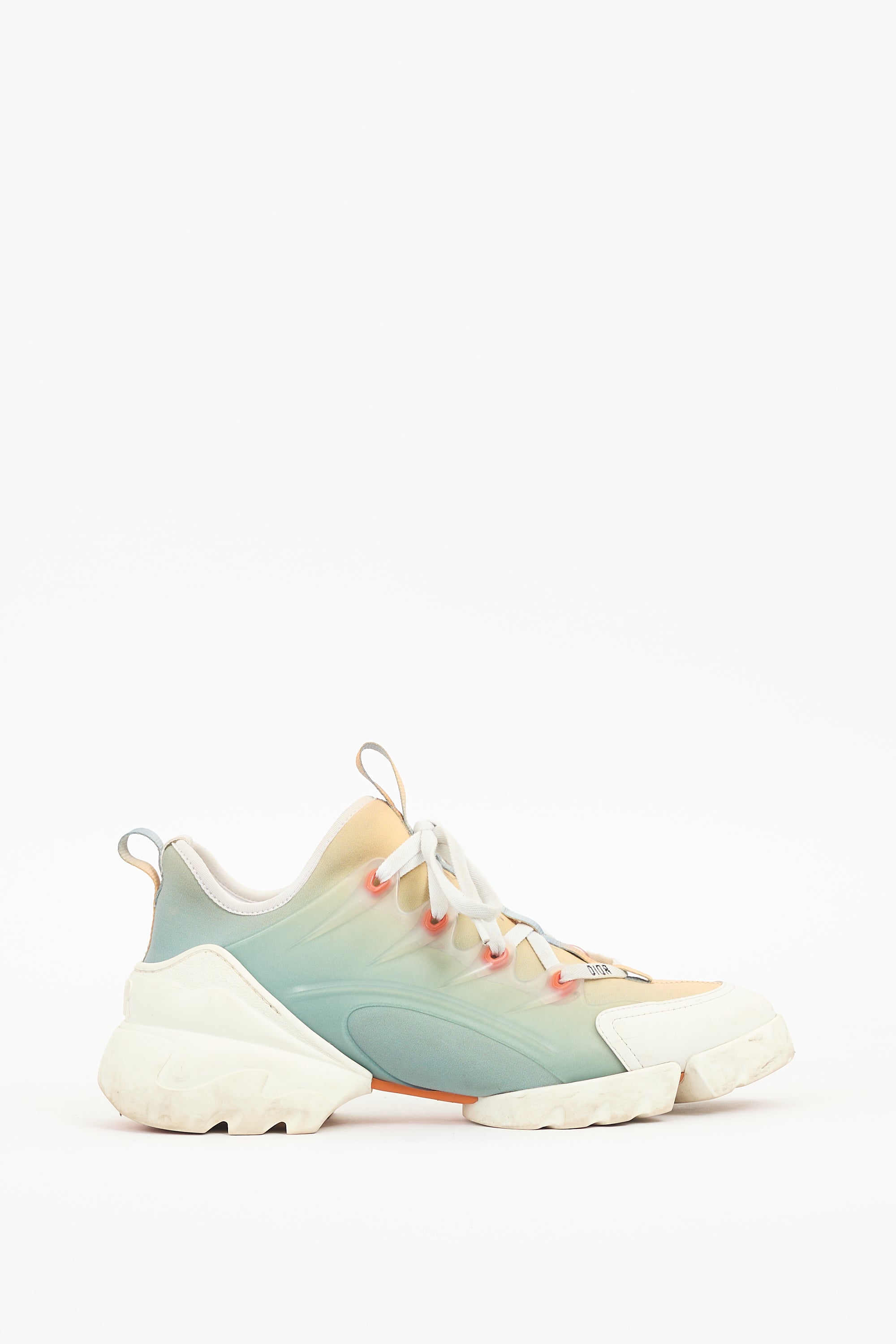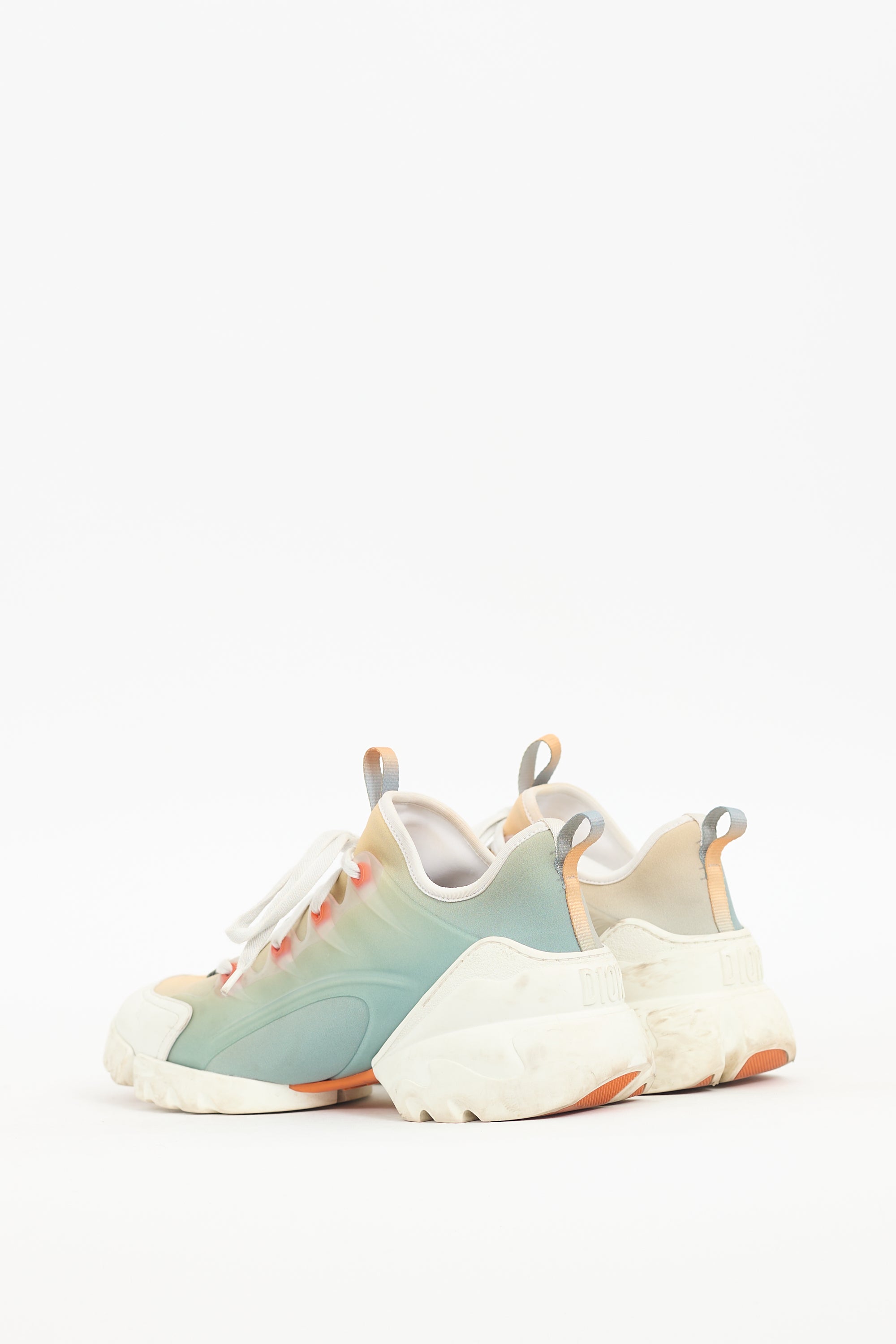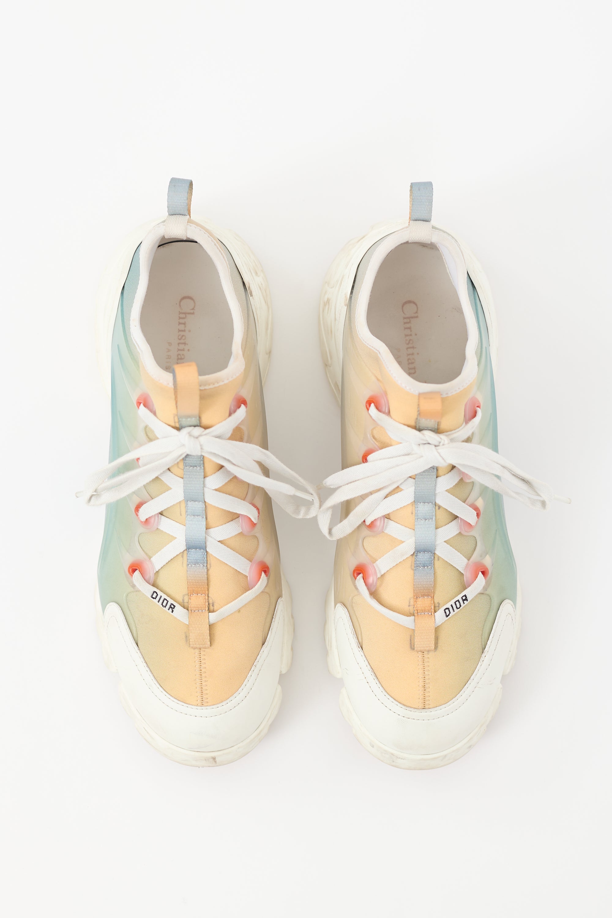 Pre-owned Dior multicolour neoprene D-Connect sneakers featuring rounded toe, leather to cap, lace up front, rubber side panels, pull tab at tongue and counter, and rubber outsole. Comes with original dust bags.