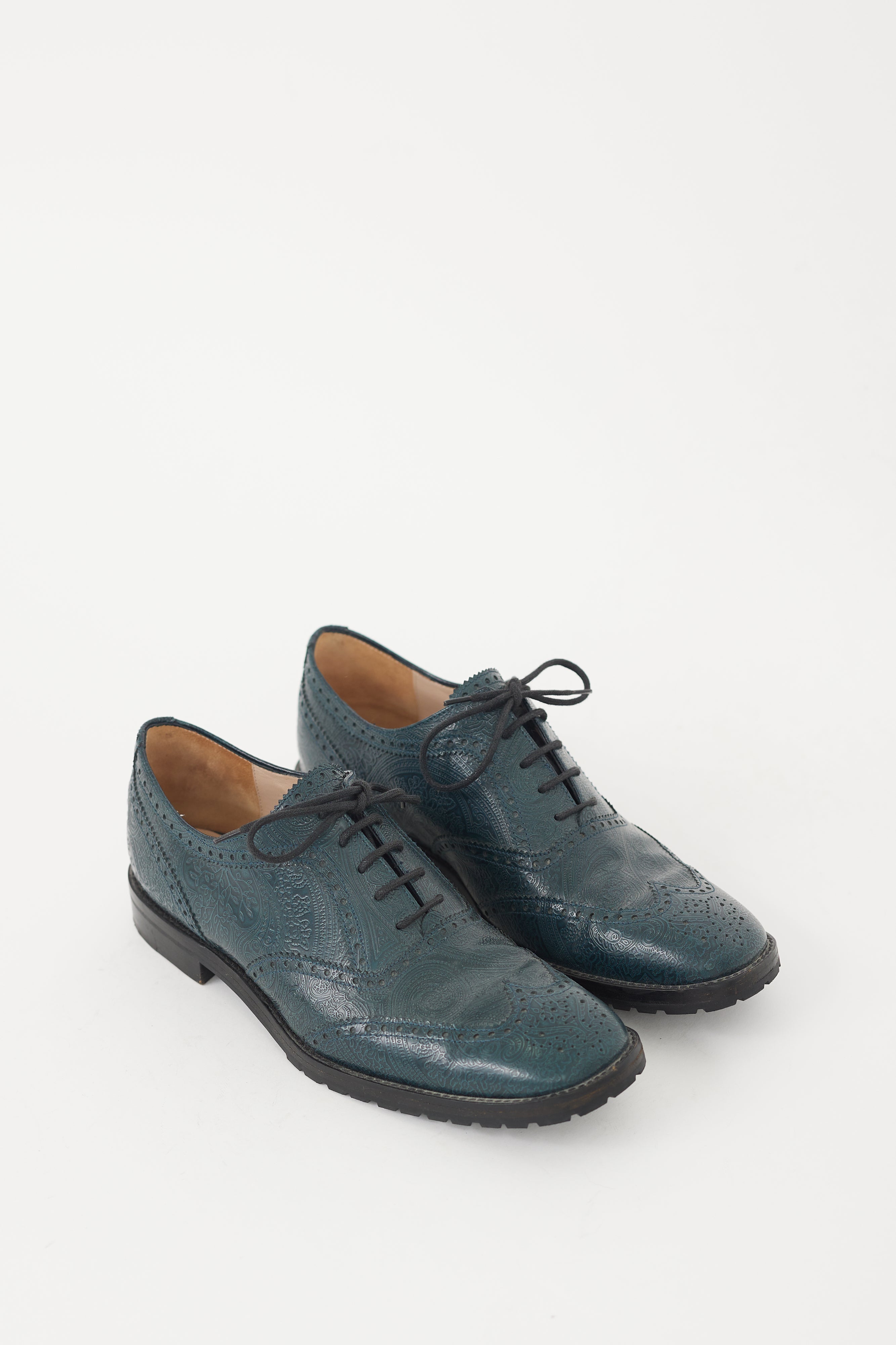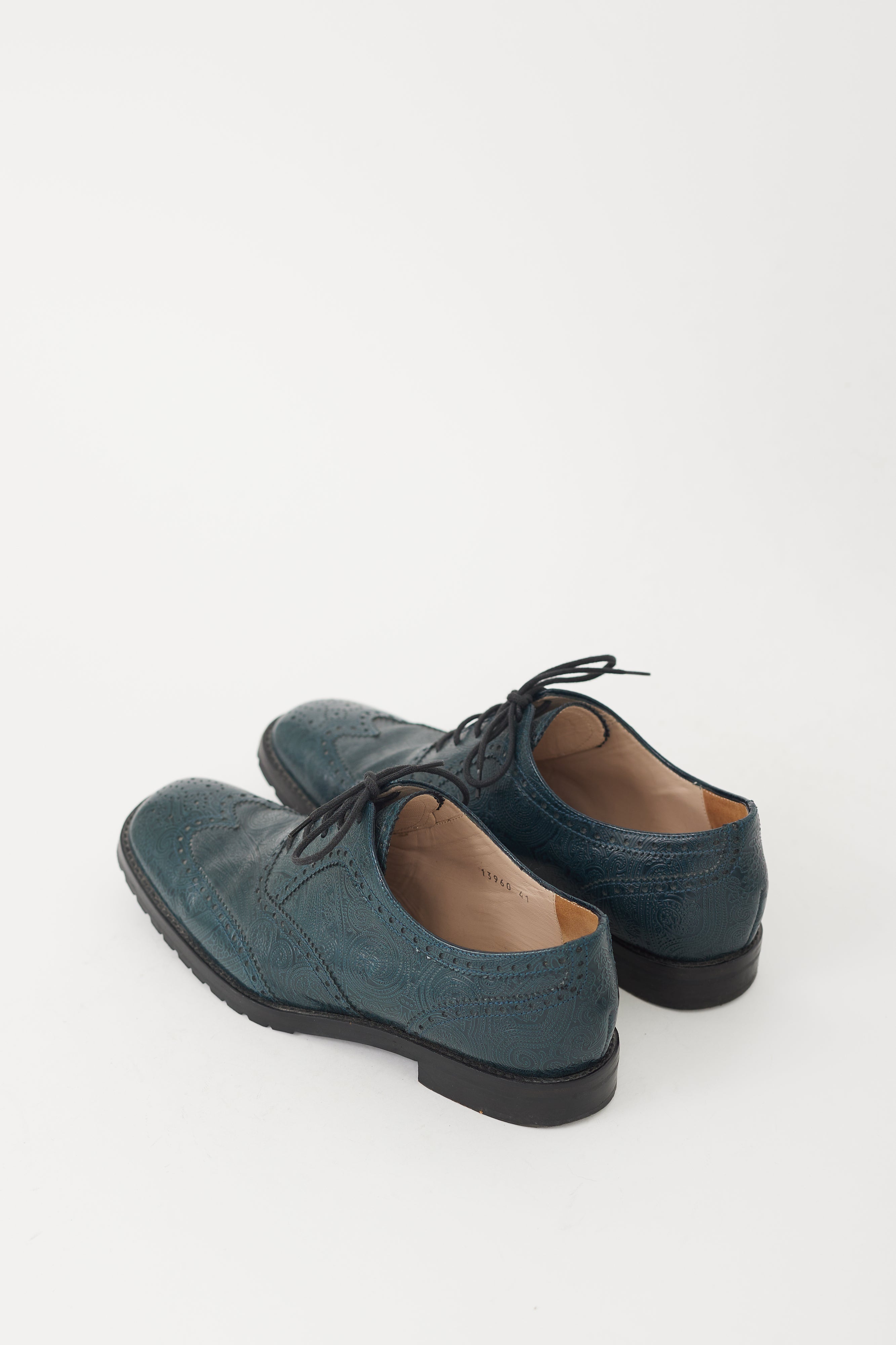 Blue Embossed Leather Brogue IT 41 Size Guide