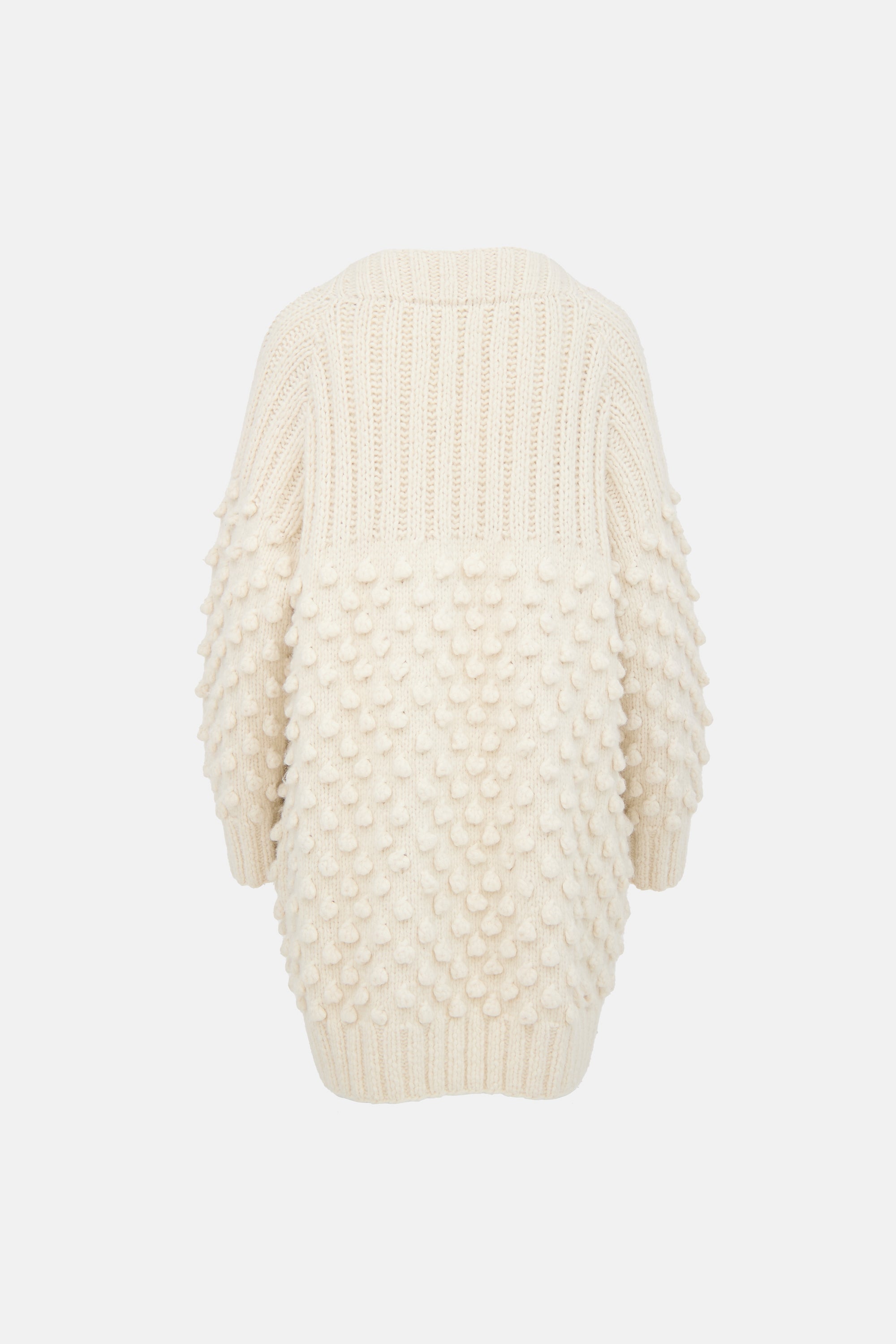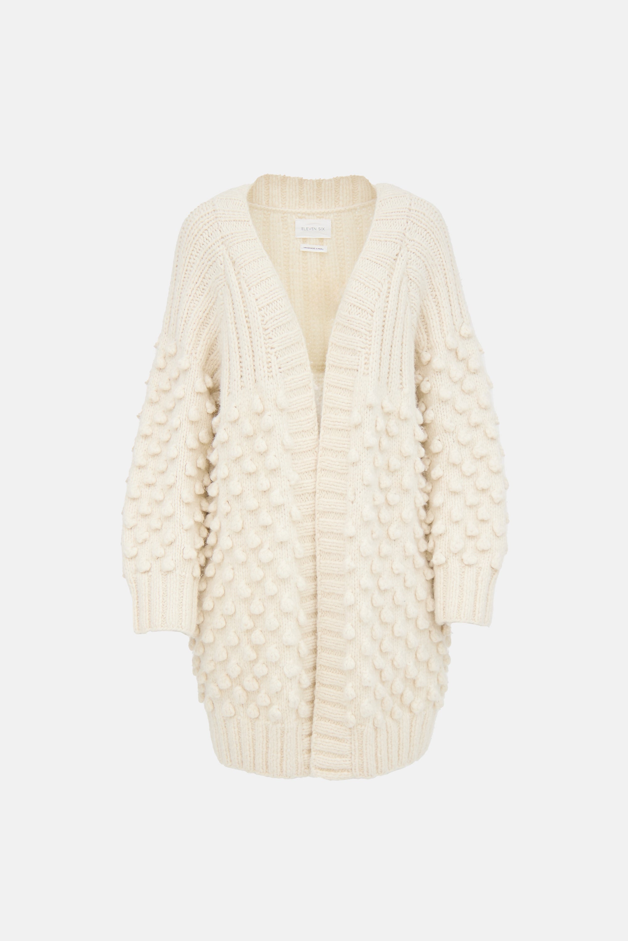 Pre-owned Eleven Six cream alpaca and wool blend Lian cardigan featuring ribbed trim, popcorn knit texture, open front, and in seam pockets.