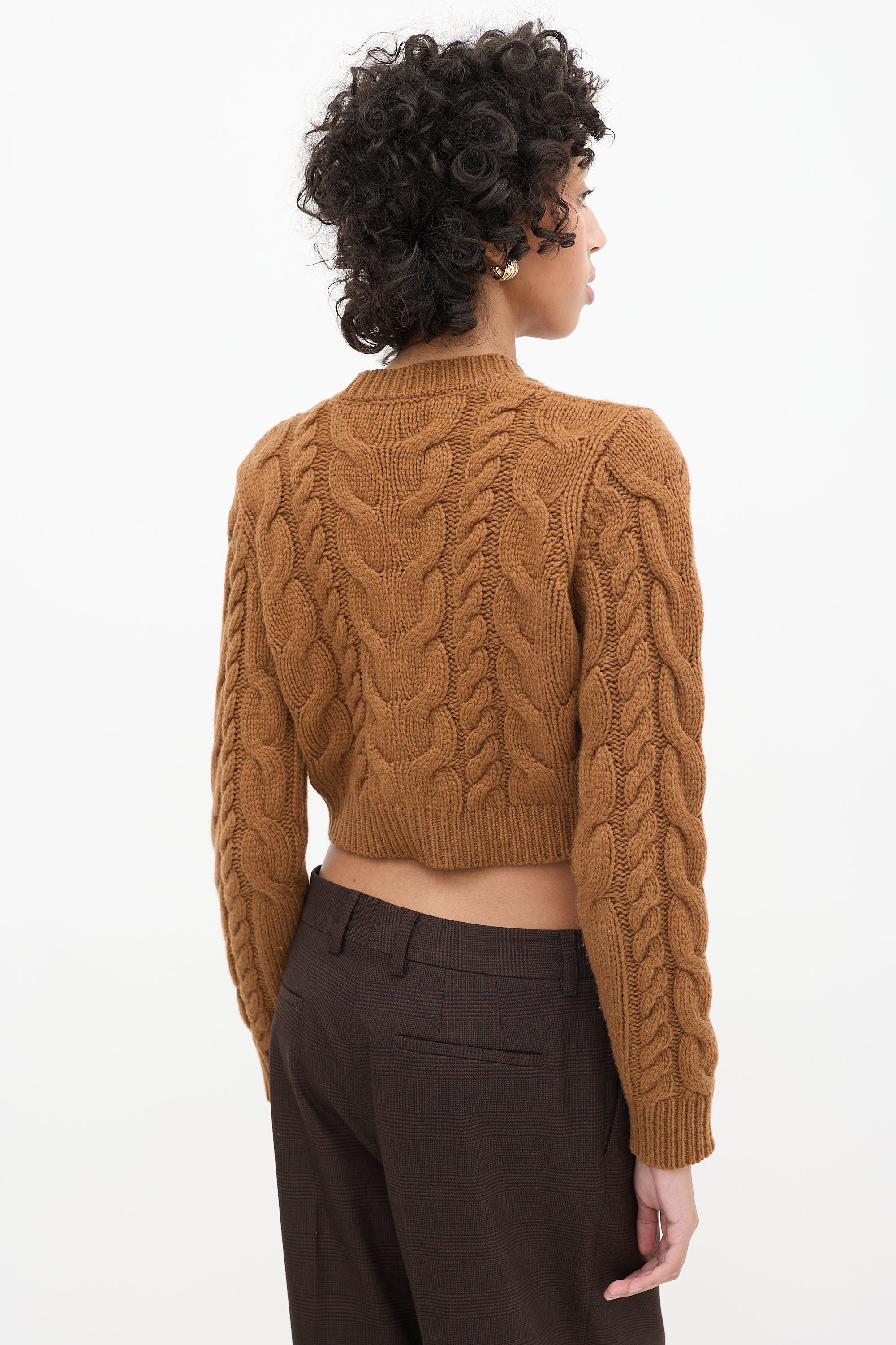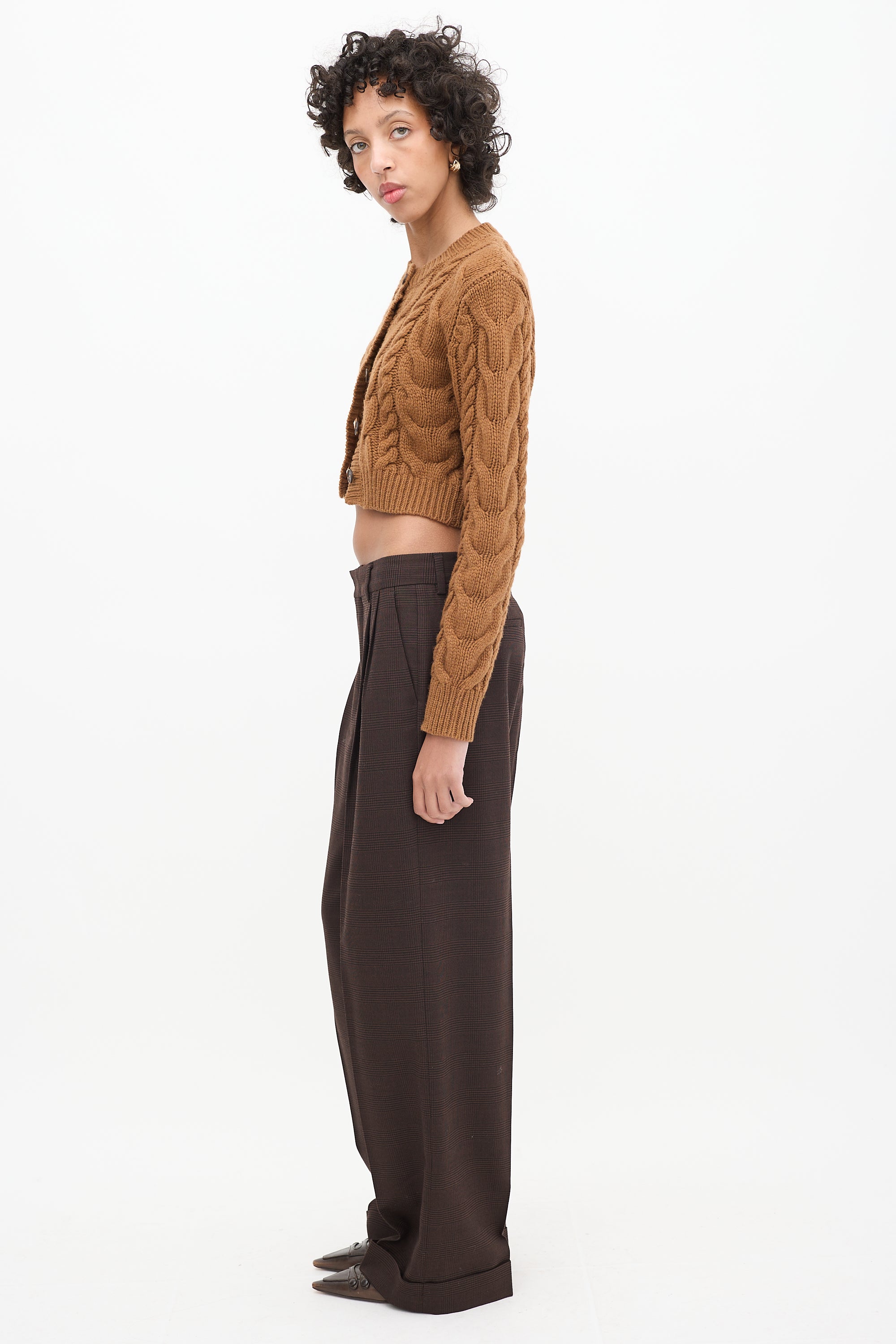 Brown Wool Cable Knit Cropped Cardigan X-Small Size Guide