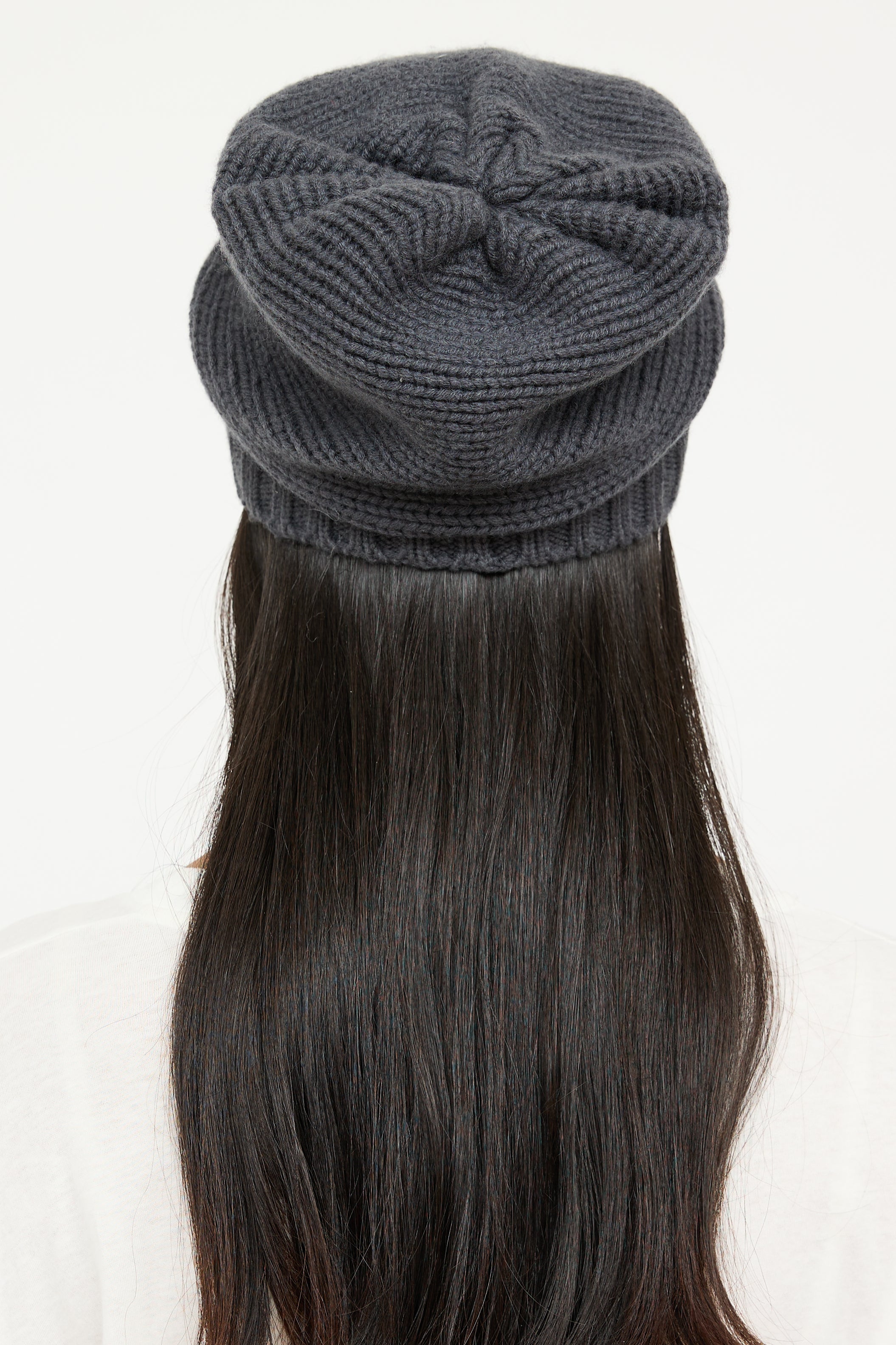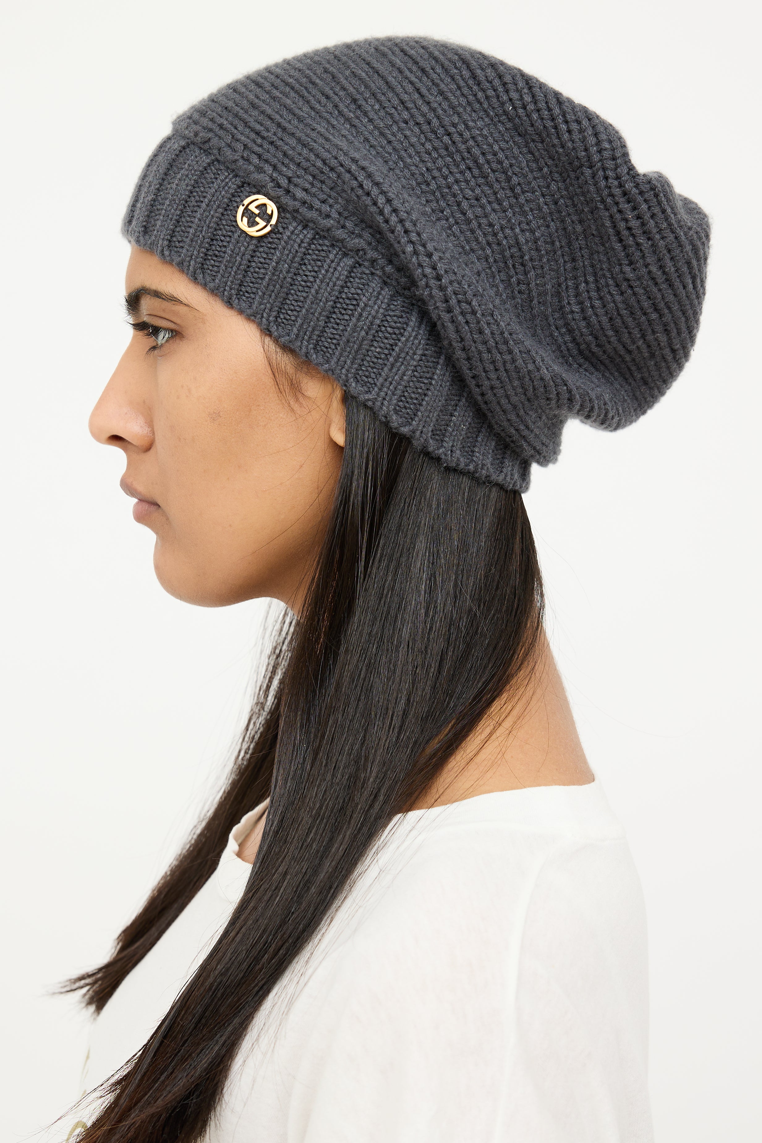 Pre-owned Gucci grey knit cashmere toque featuring ribbed rim with gold tone GG hardware.