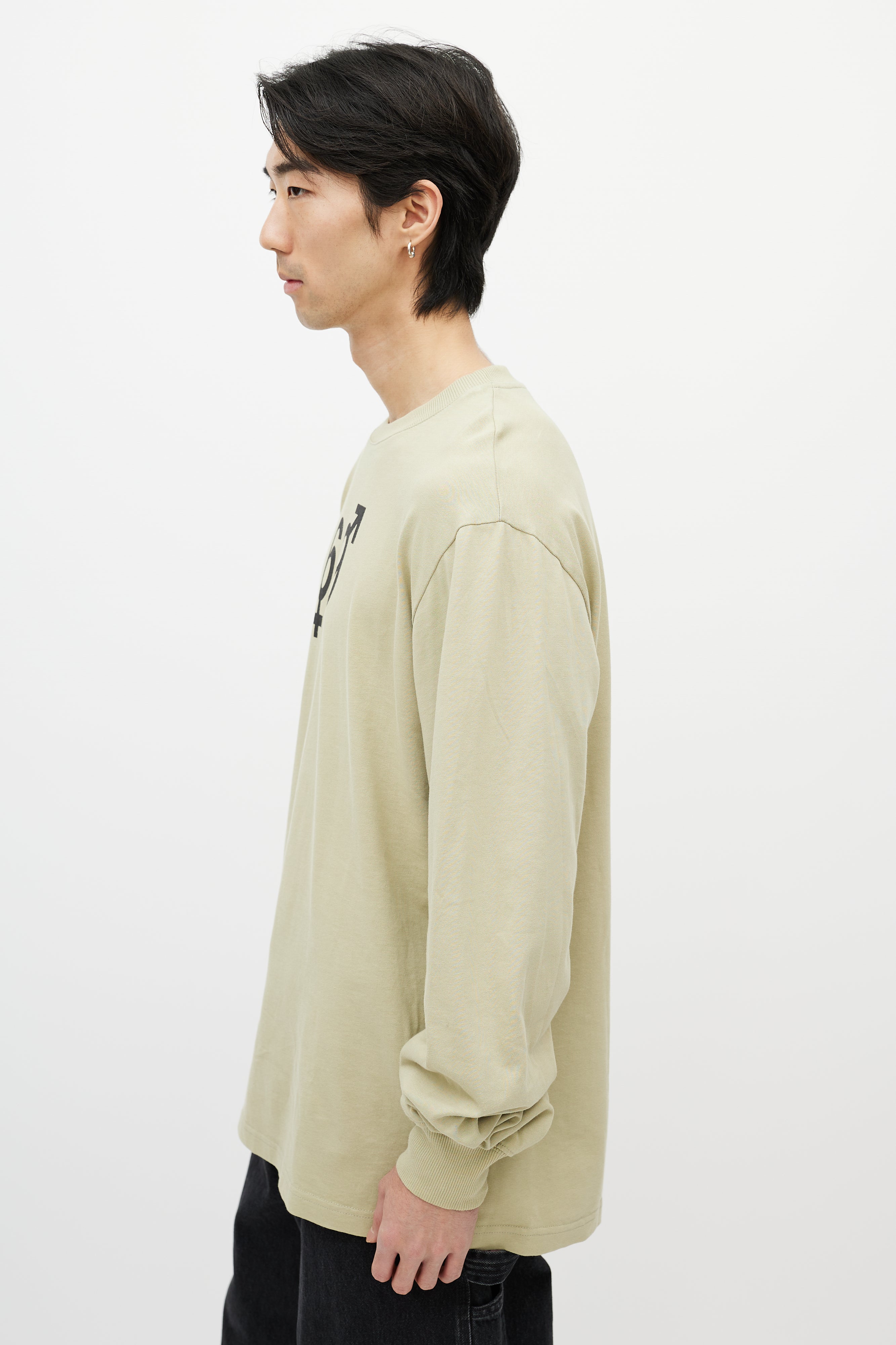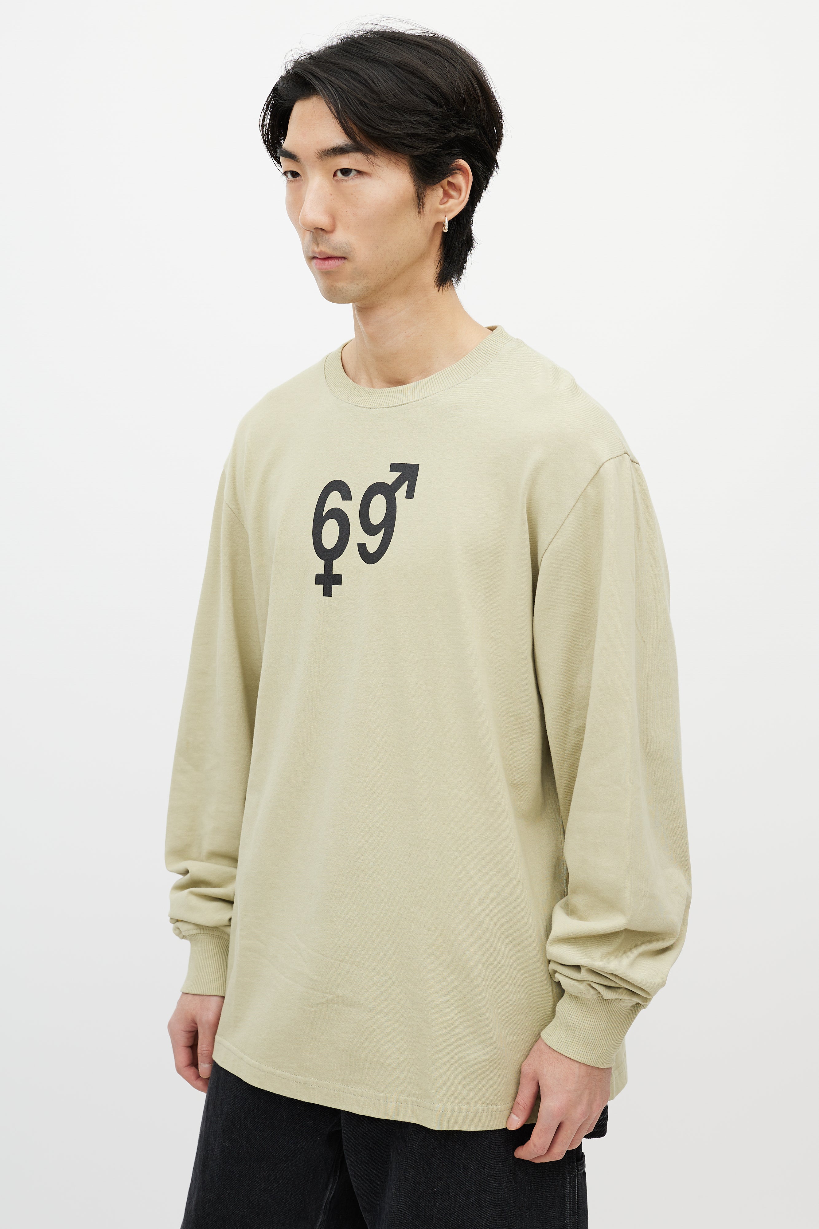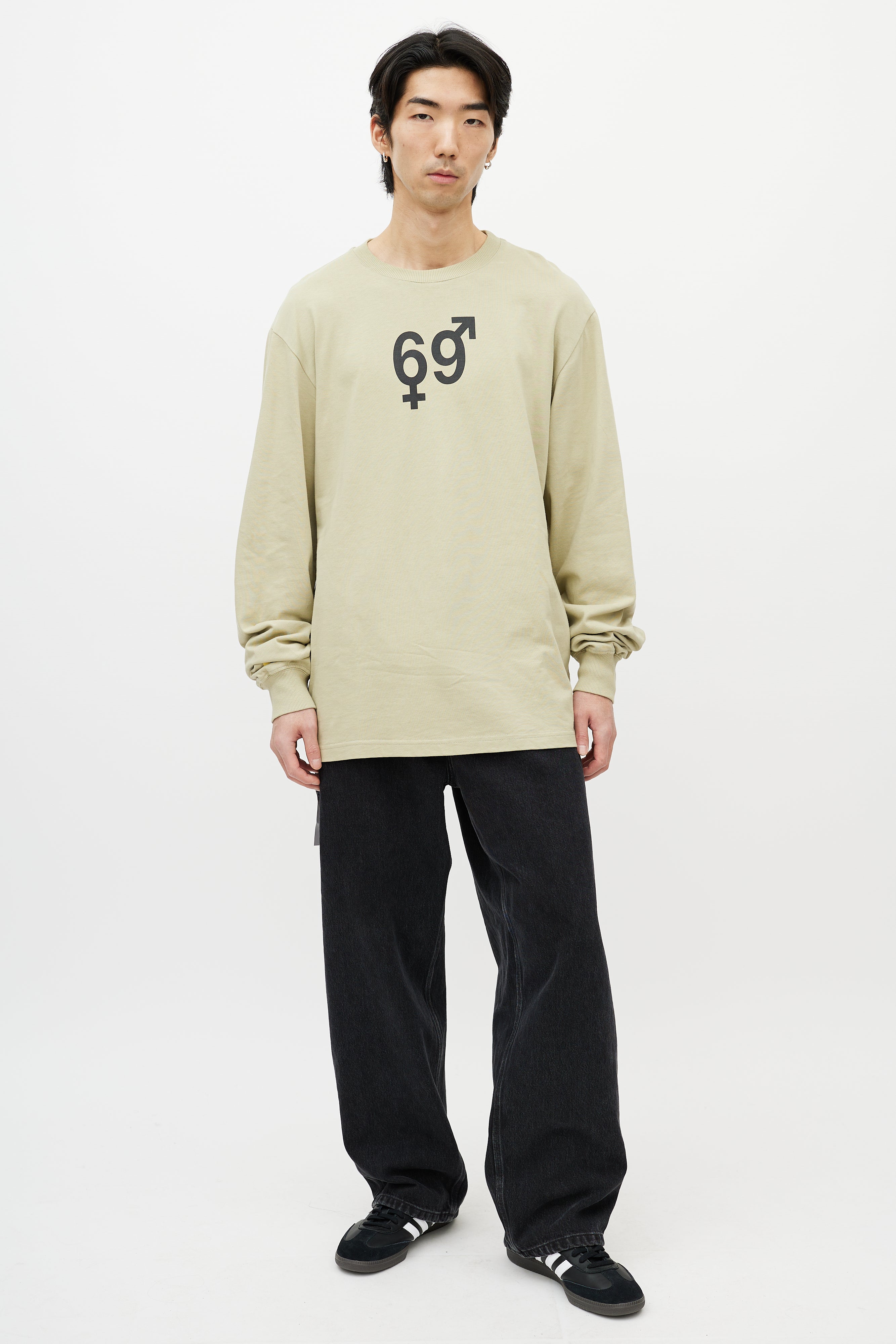 Pre-owned Hood By Air green top featuring a round neckline, multicolour 69 Security Camera print at front and back, long sleeves, and logo tab at side.