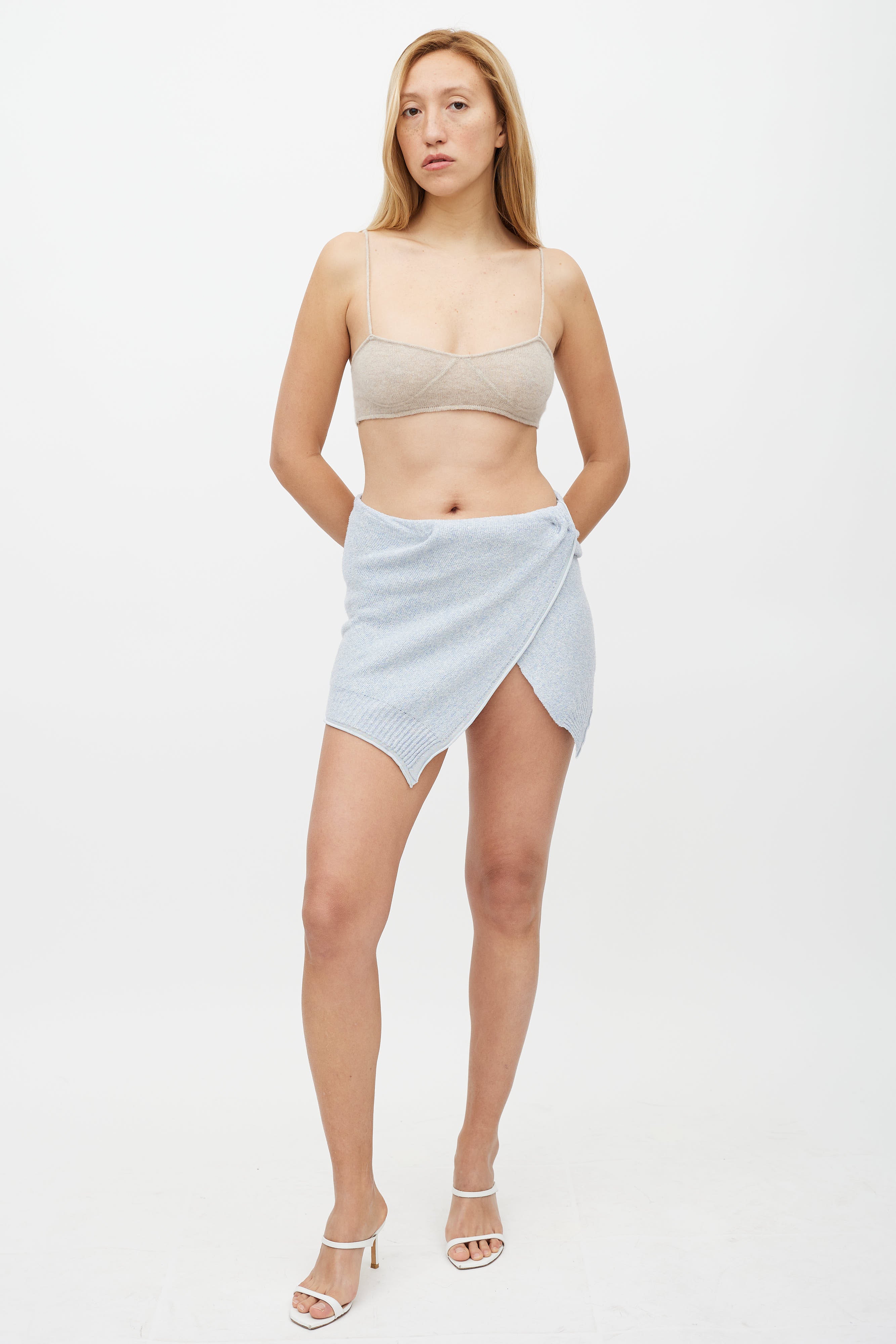 Pre-owned Jacquemus blue La Jupe Bagnu skirt featuring ribbed hem, and asymmetrical wrap button closure.