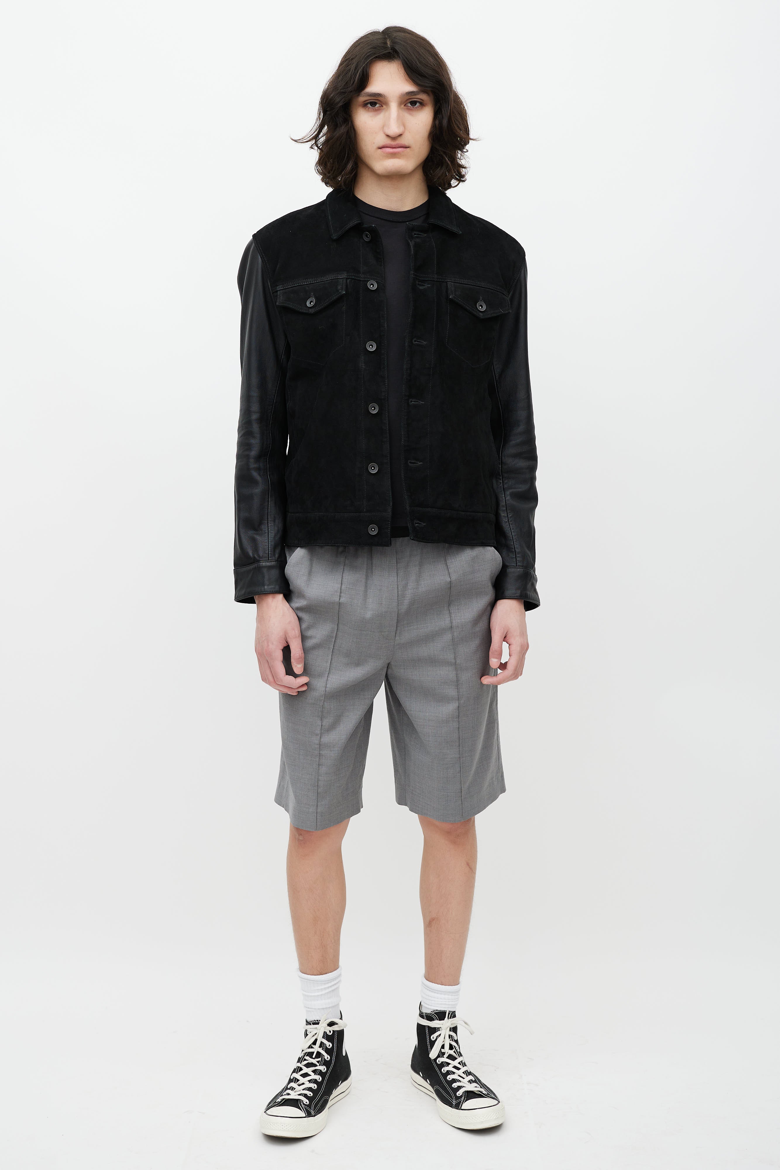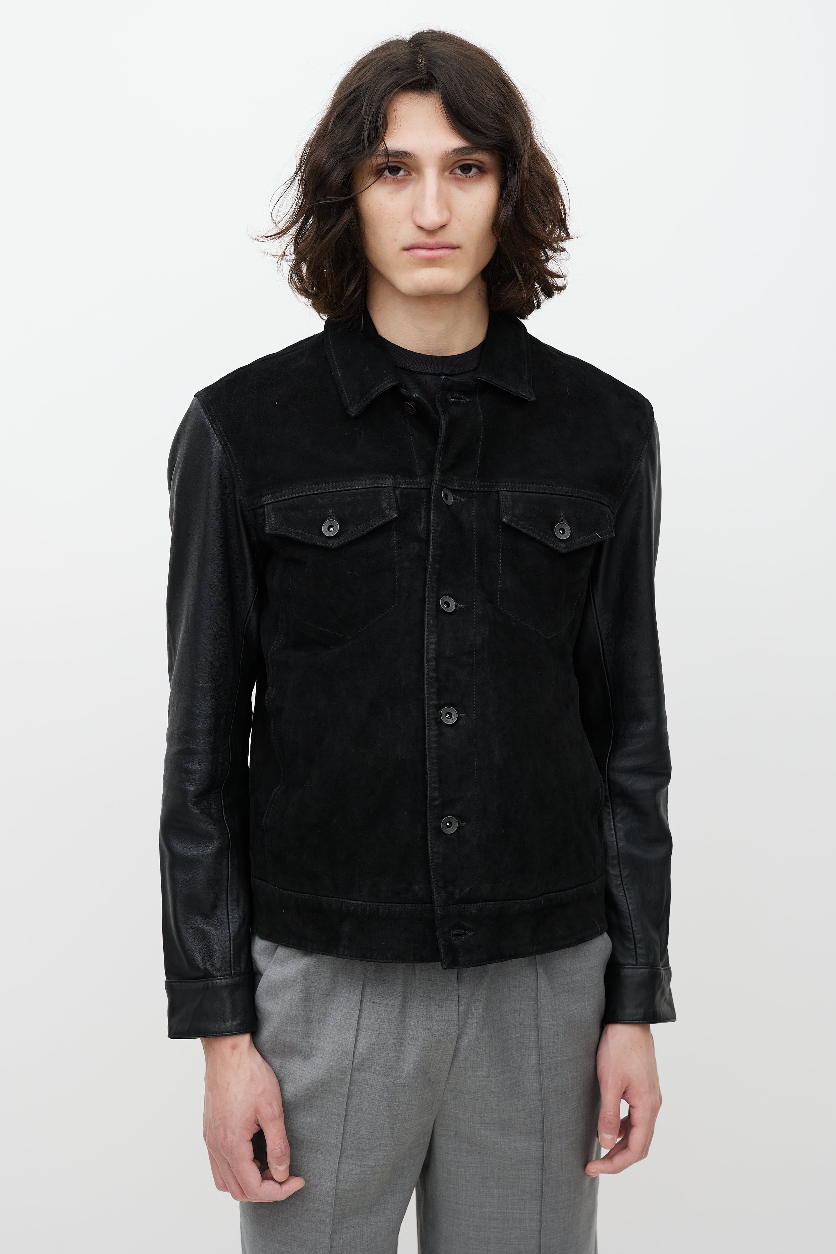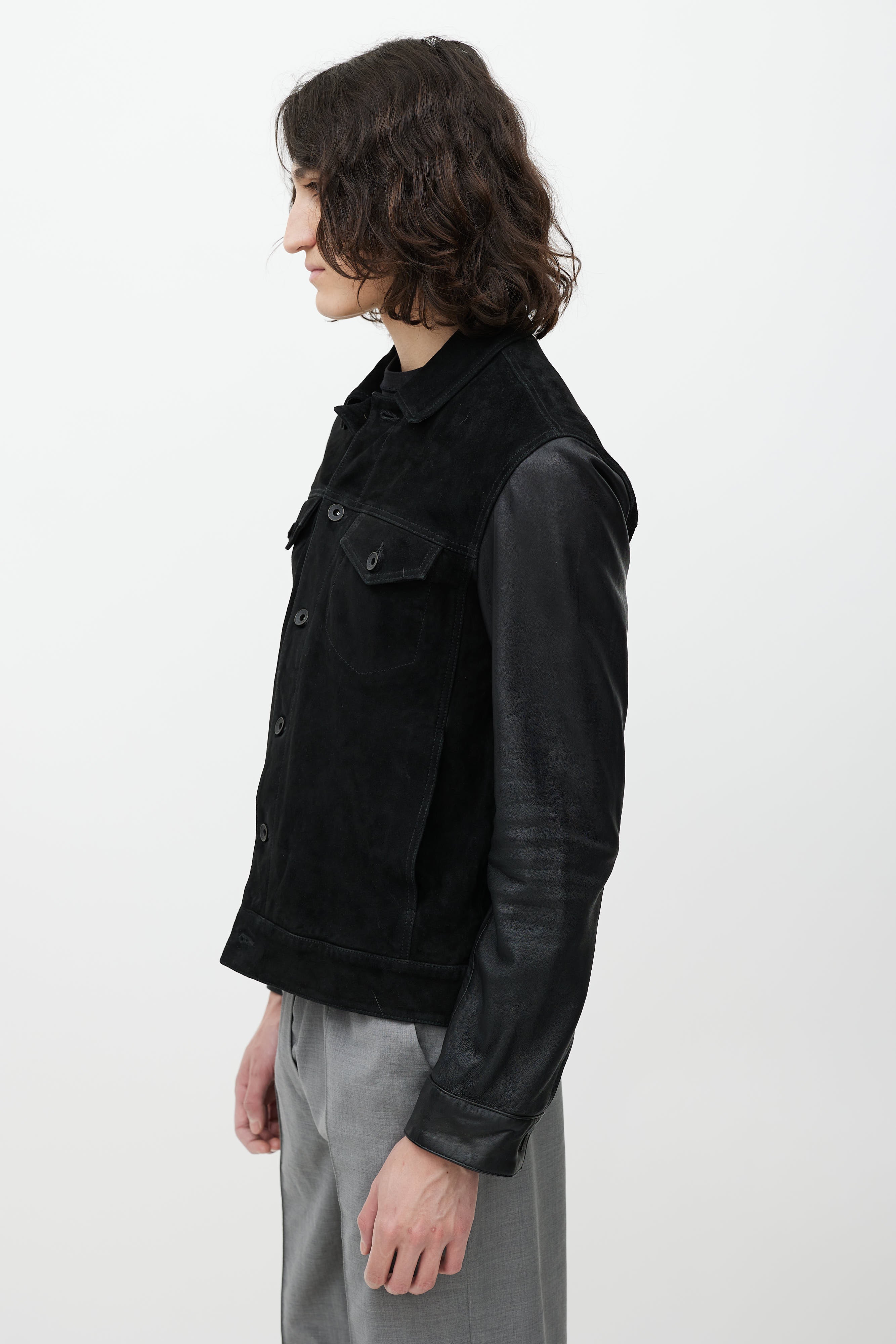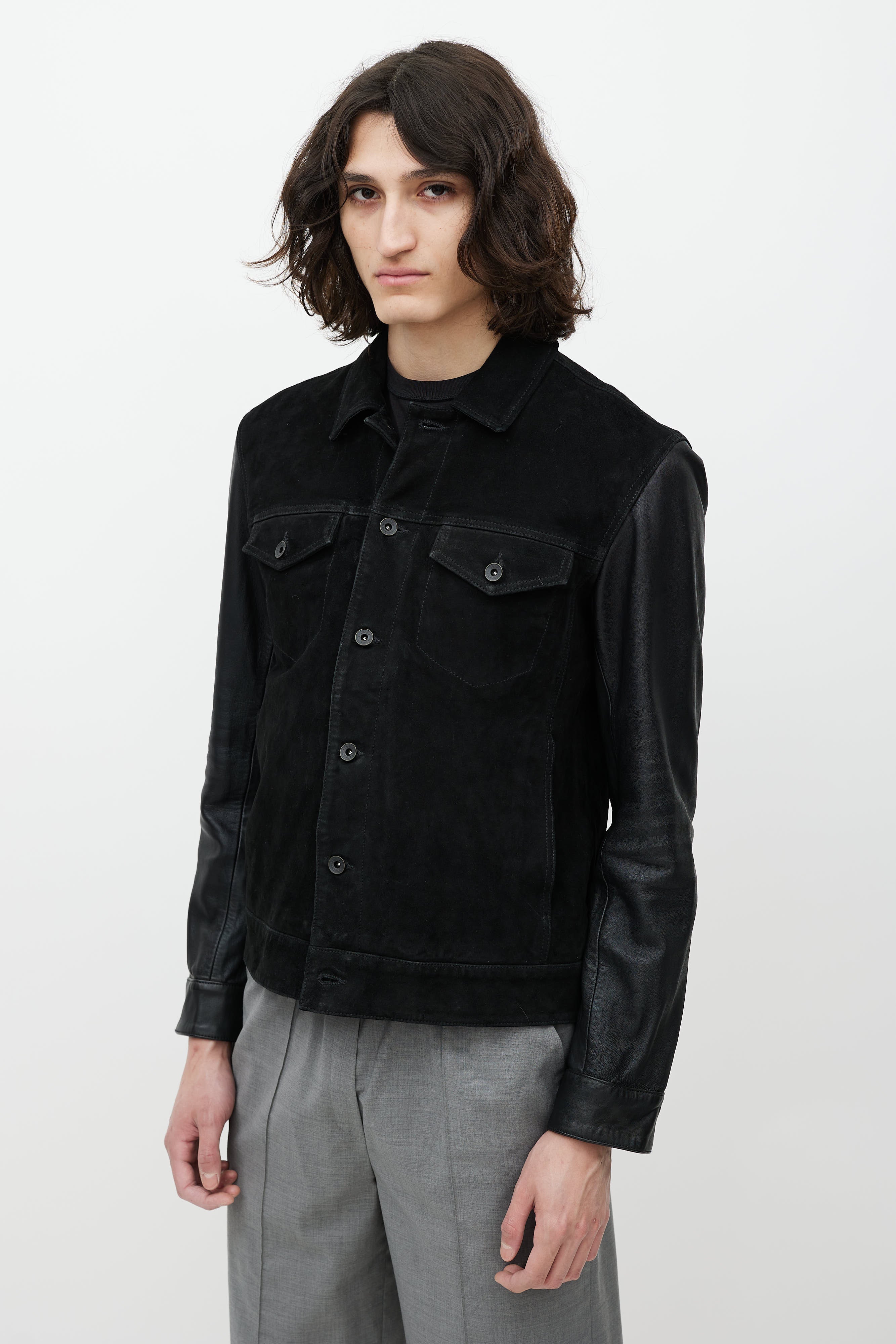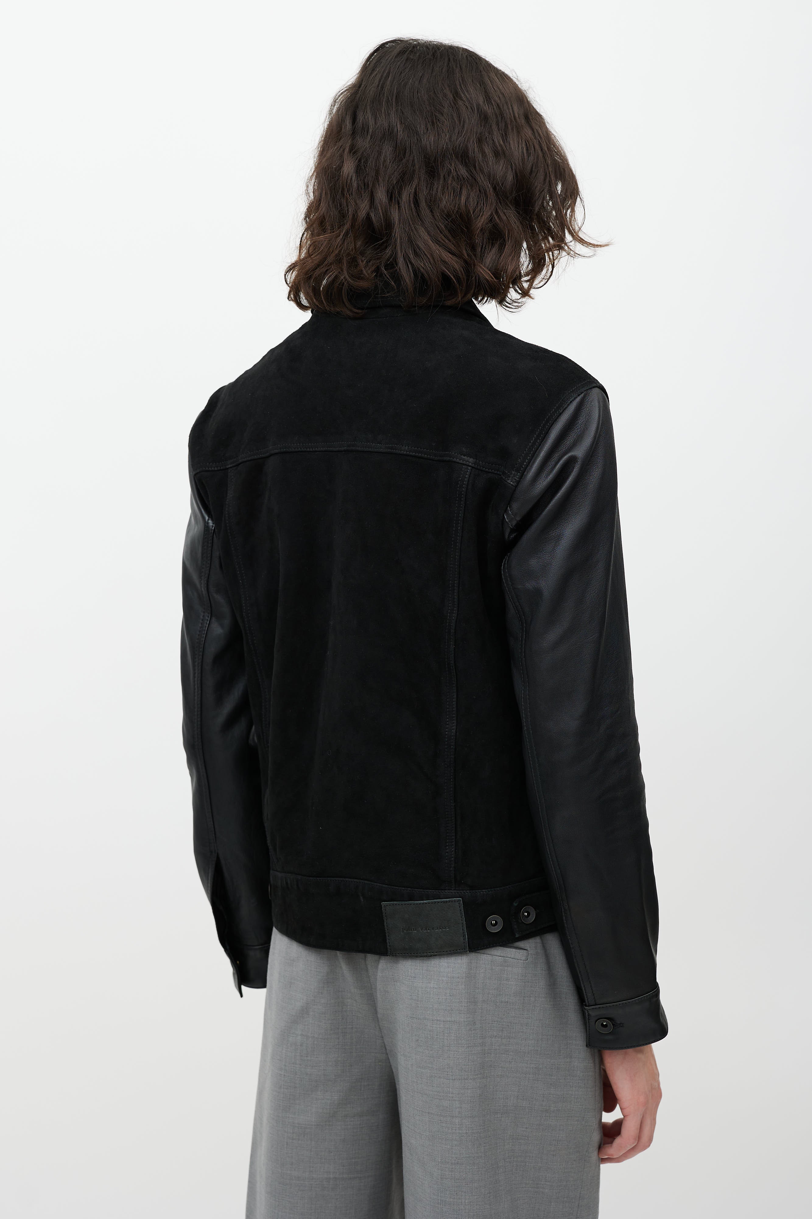 Black Leather Trucker Jacket EU 48 Size Guide