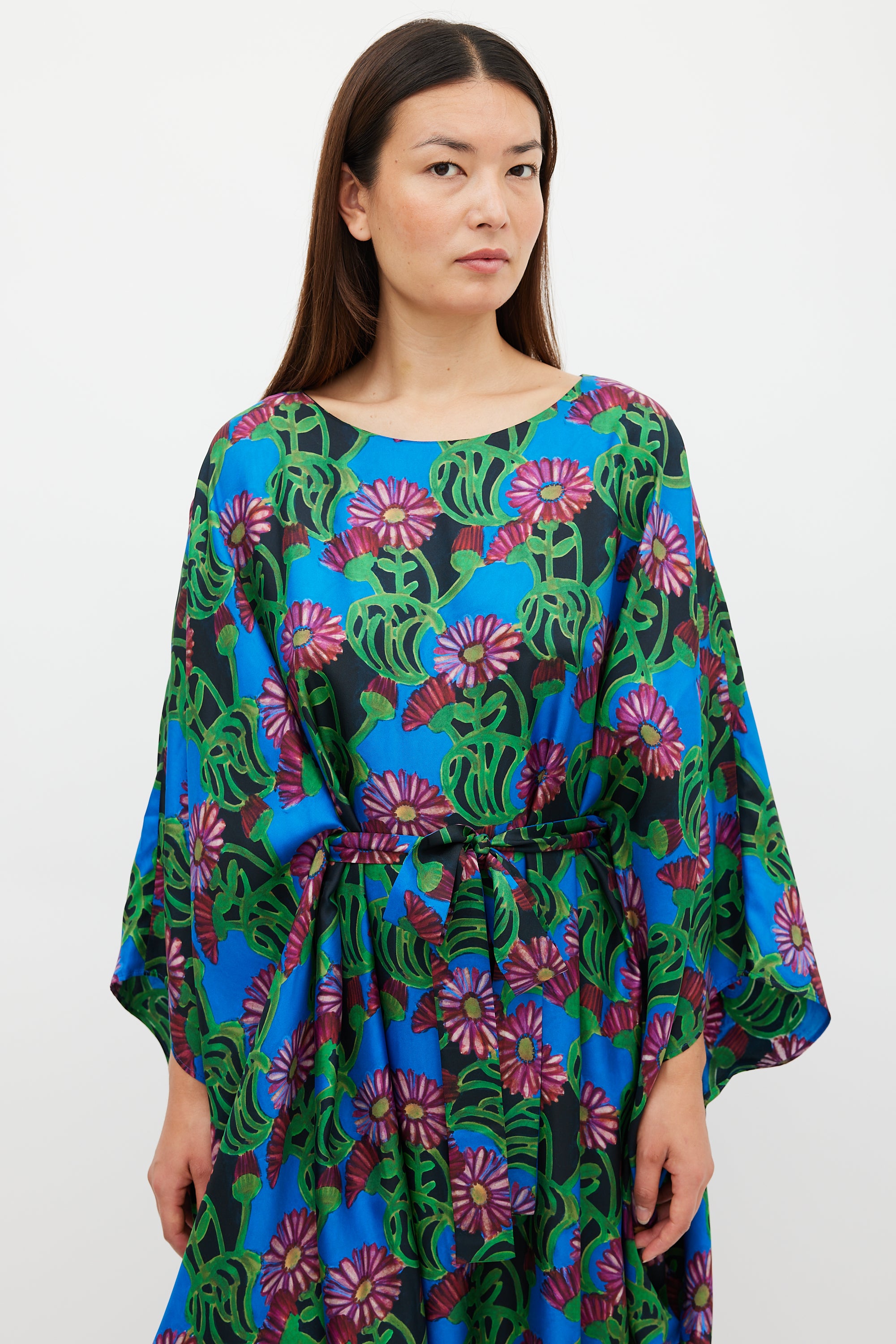 Blue & Multicolour Floral Belted Dress X-Large Size Guide