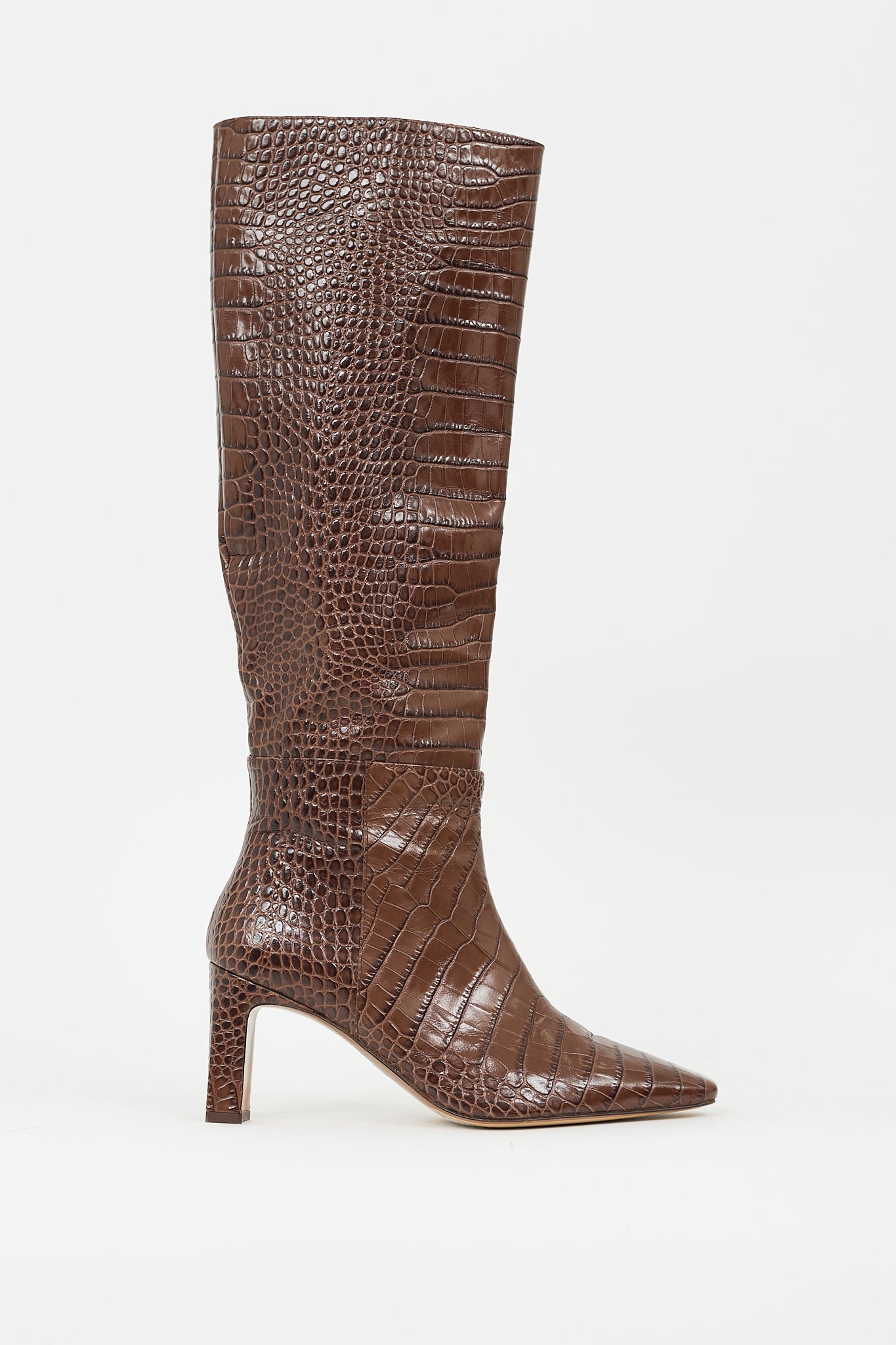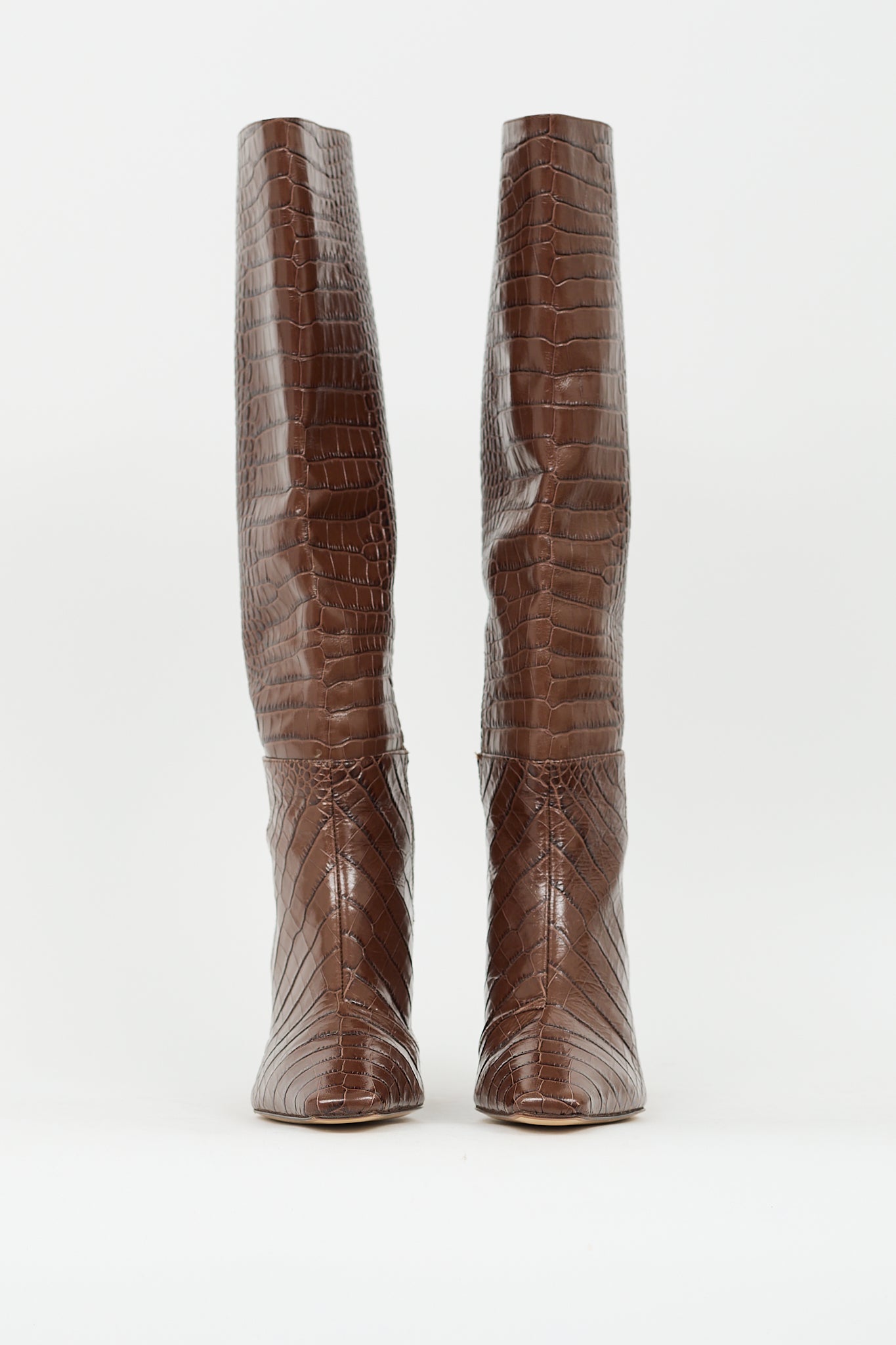 Brown Embossed Leather Knee High Boot EU 38 Size Guide