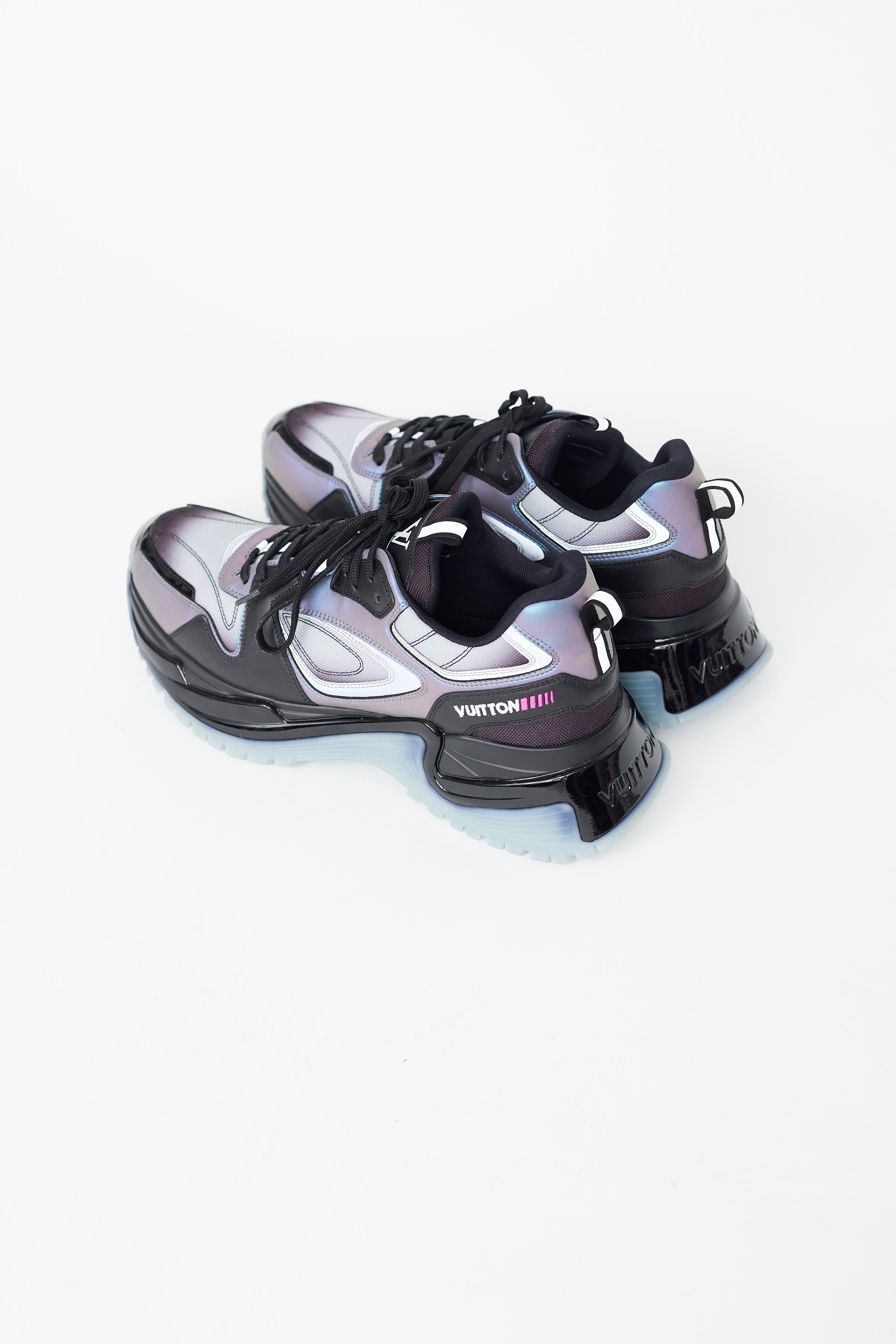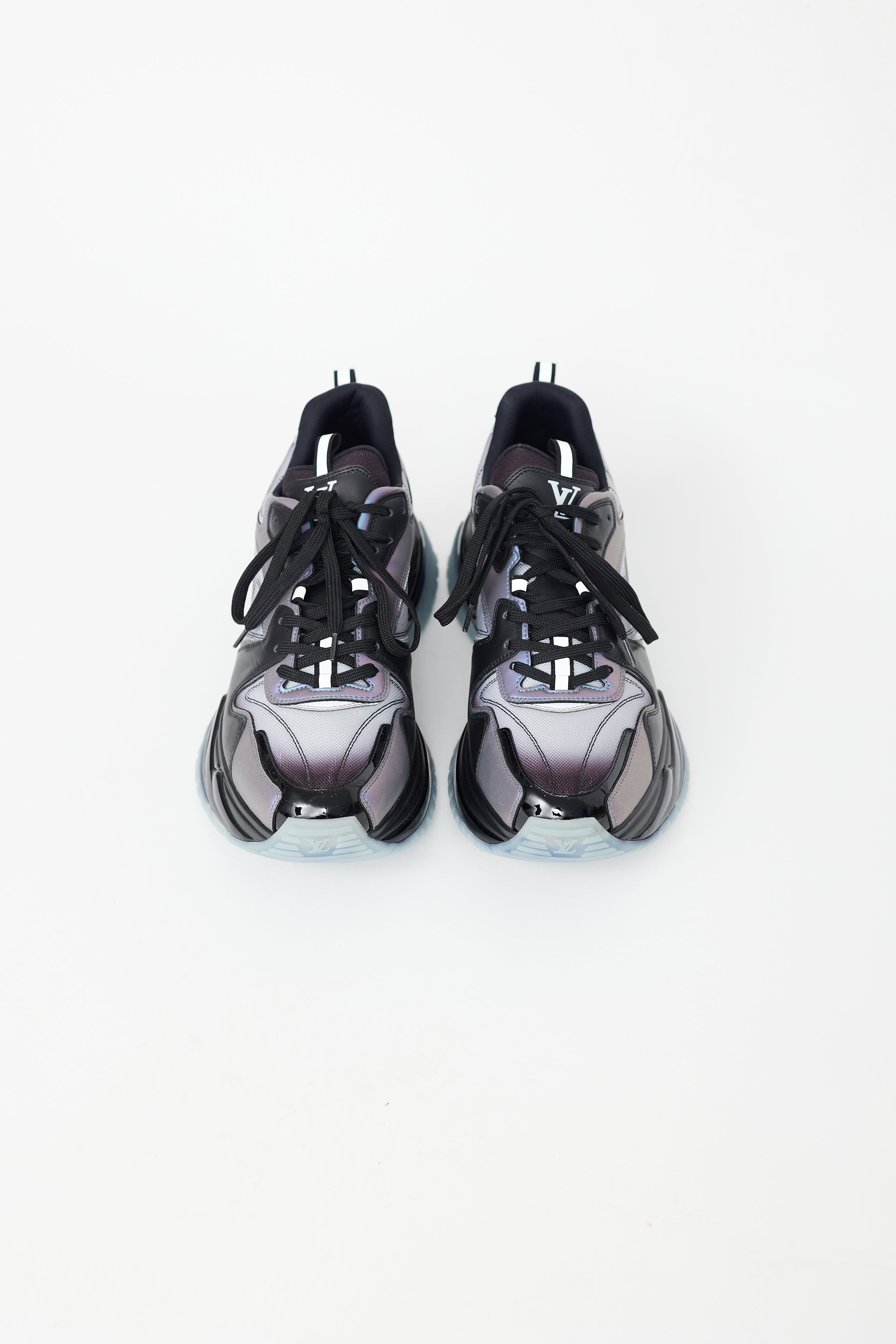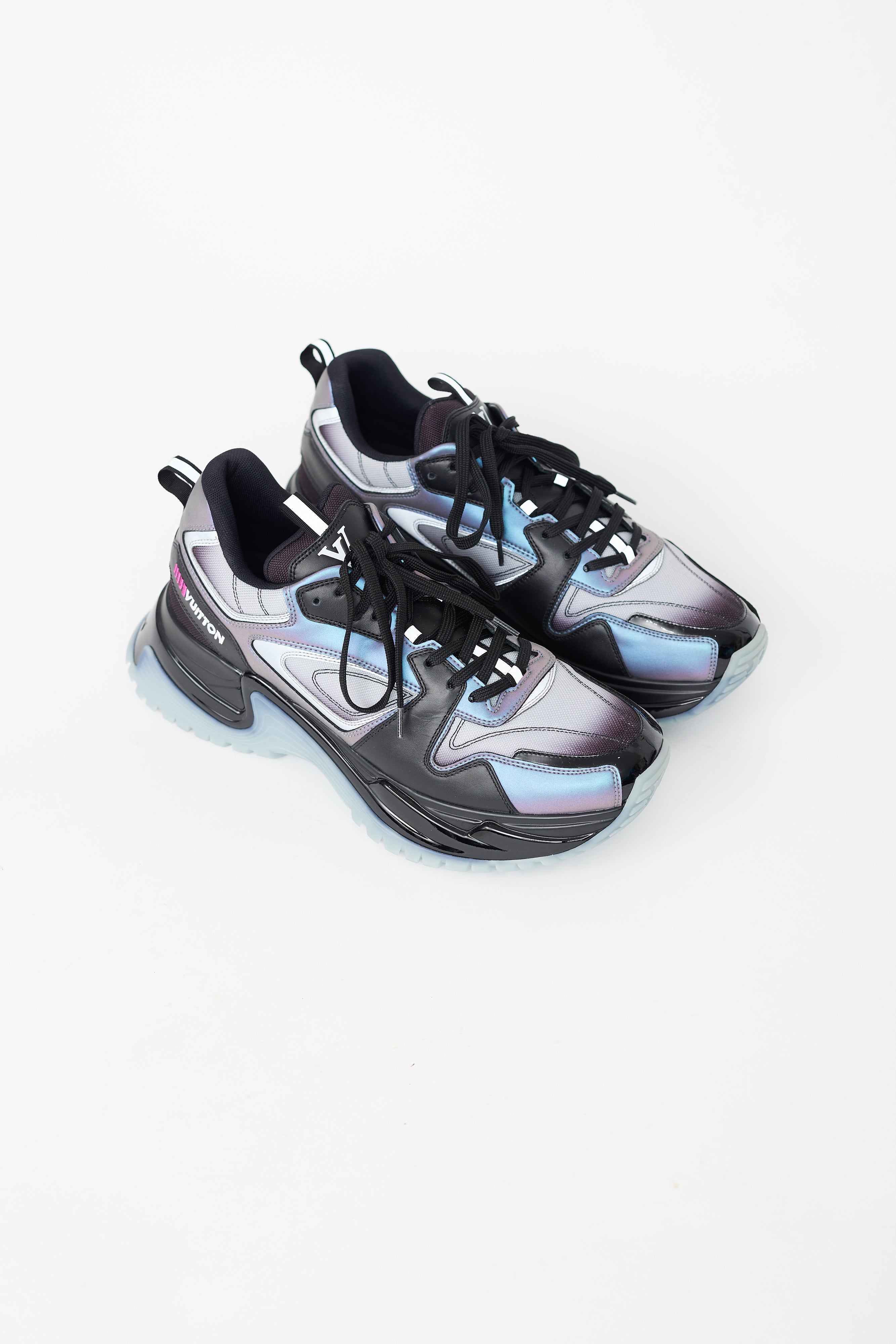 Pre-owned Louis Vuitton blue and black Run Away Pulse sneakers featuring round toe, lace up vamp, embroidered logo at outer side, leather and textile panelling throughout and leather pull tab at counter and tongue.