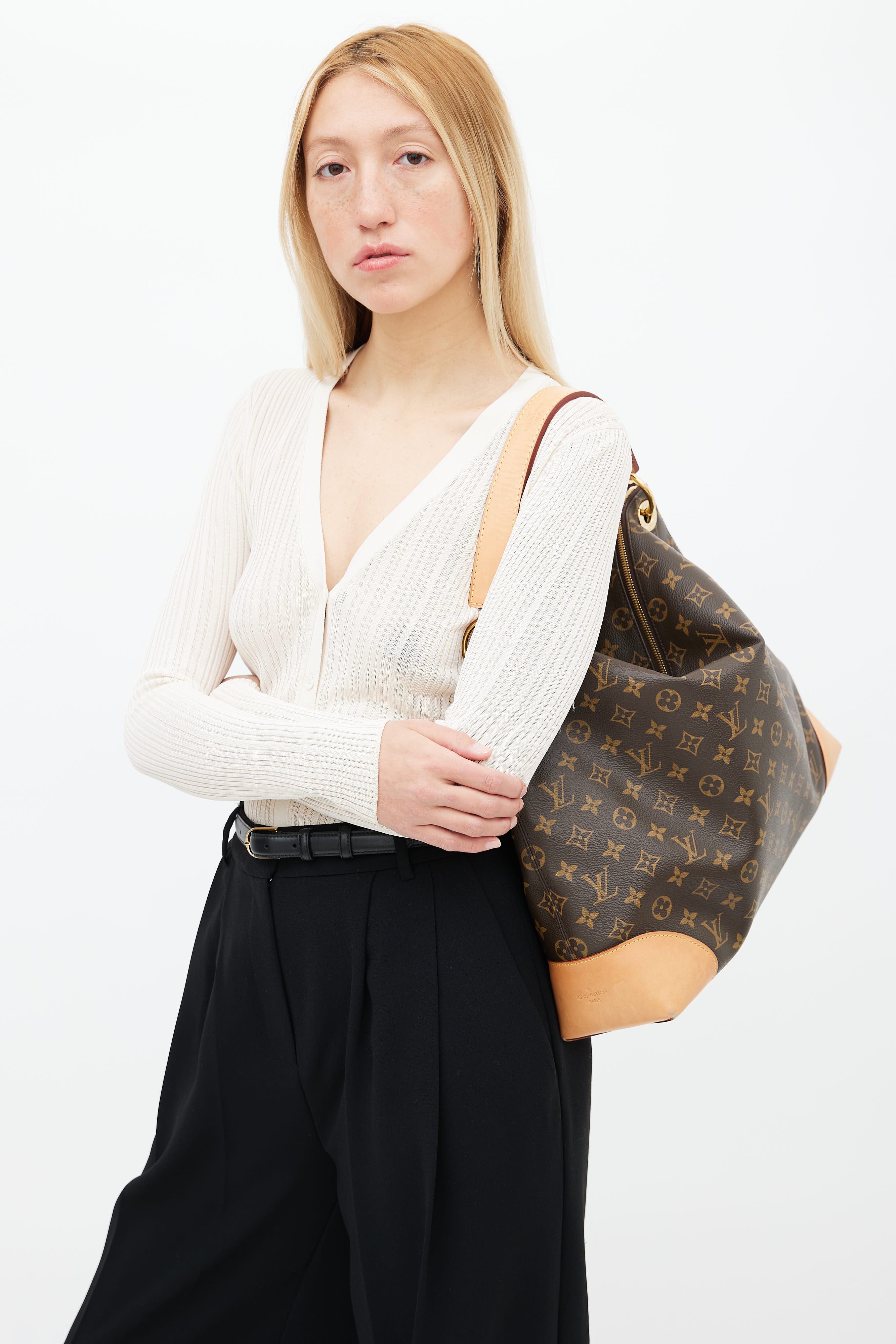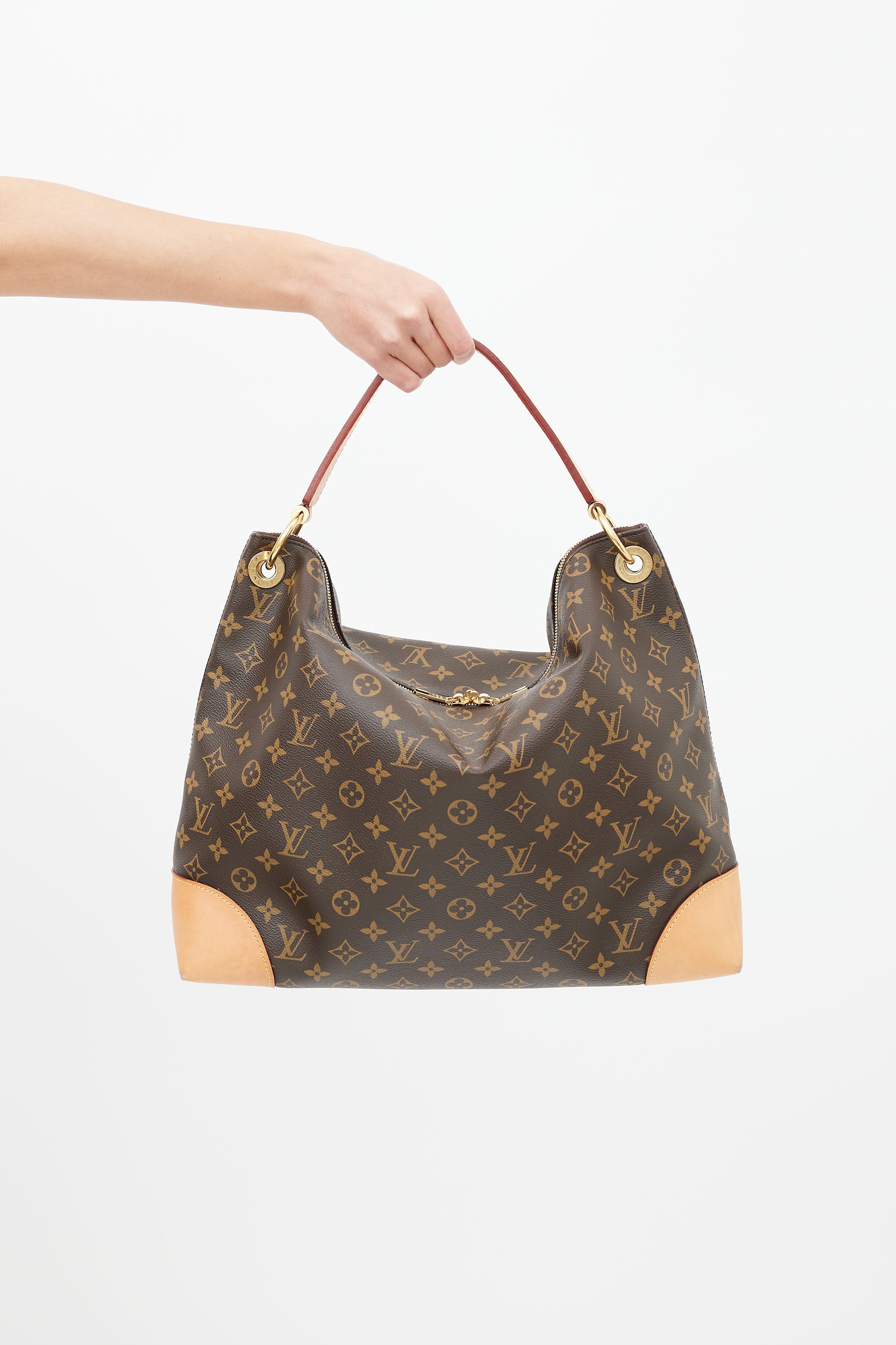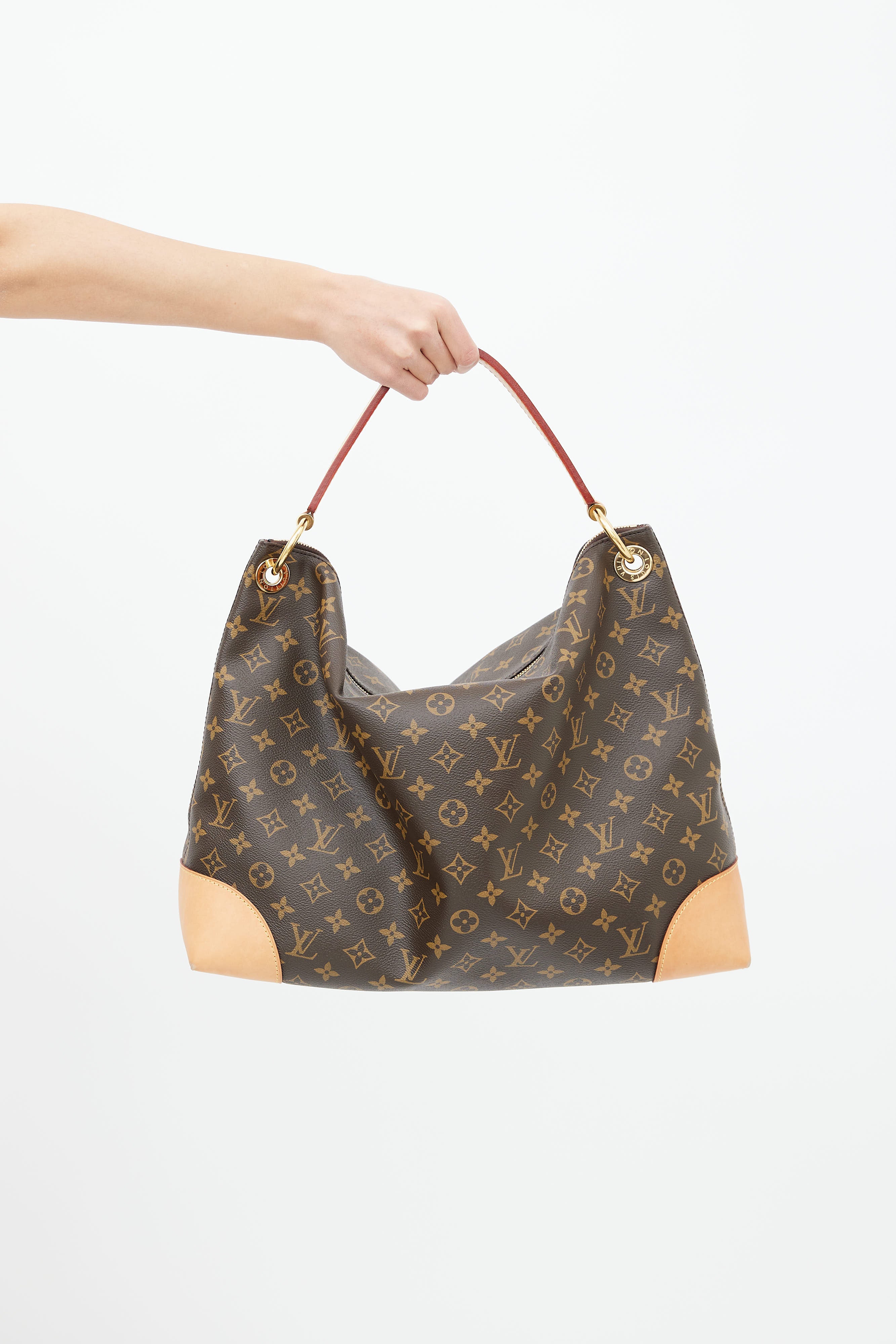 Pre-loved Louis Vuitton Berri MM bag in brown featuring monogram coated canvas, light brown leather trim, gold-tone hardware, top zip closure, flat top handle, single main compartment, three interior slip pockets, logo leather tab at inside, embossed logo at side and top handle, and gold-tone lock. Original receipt and dust bag included.