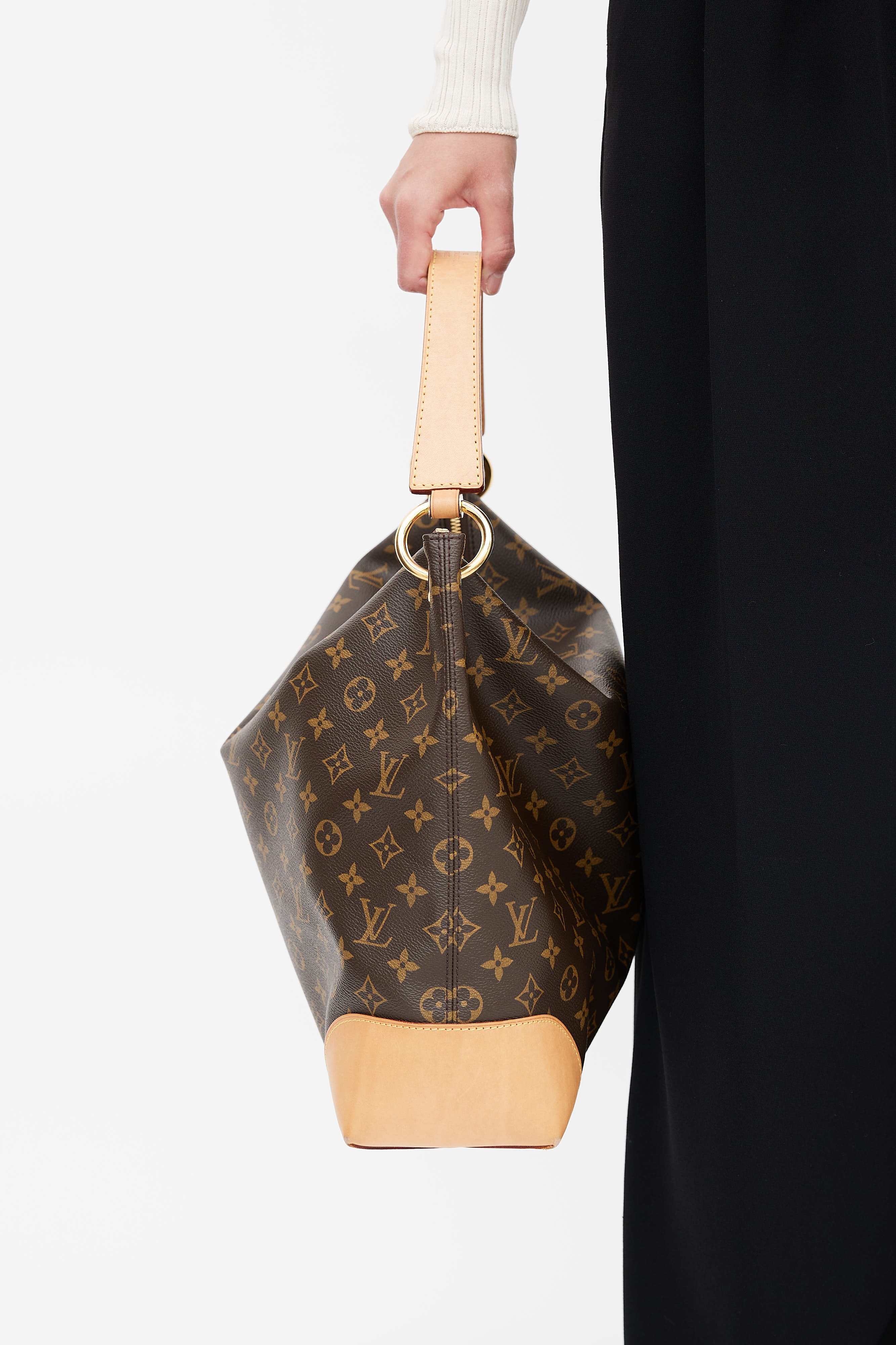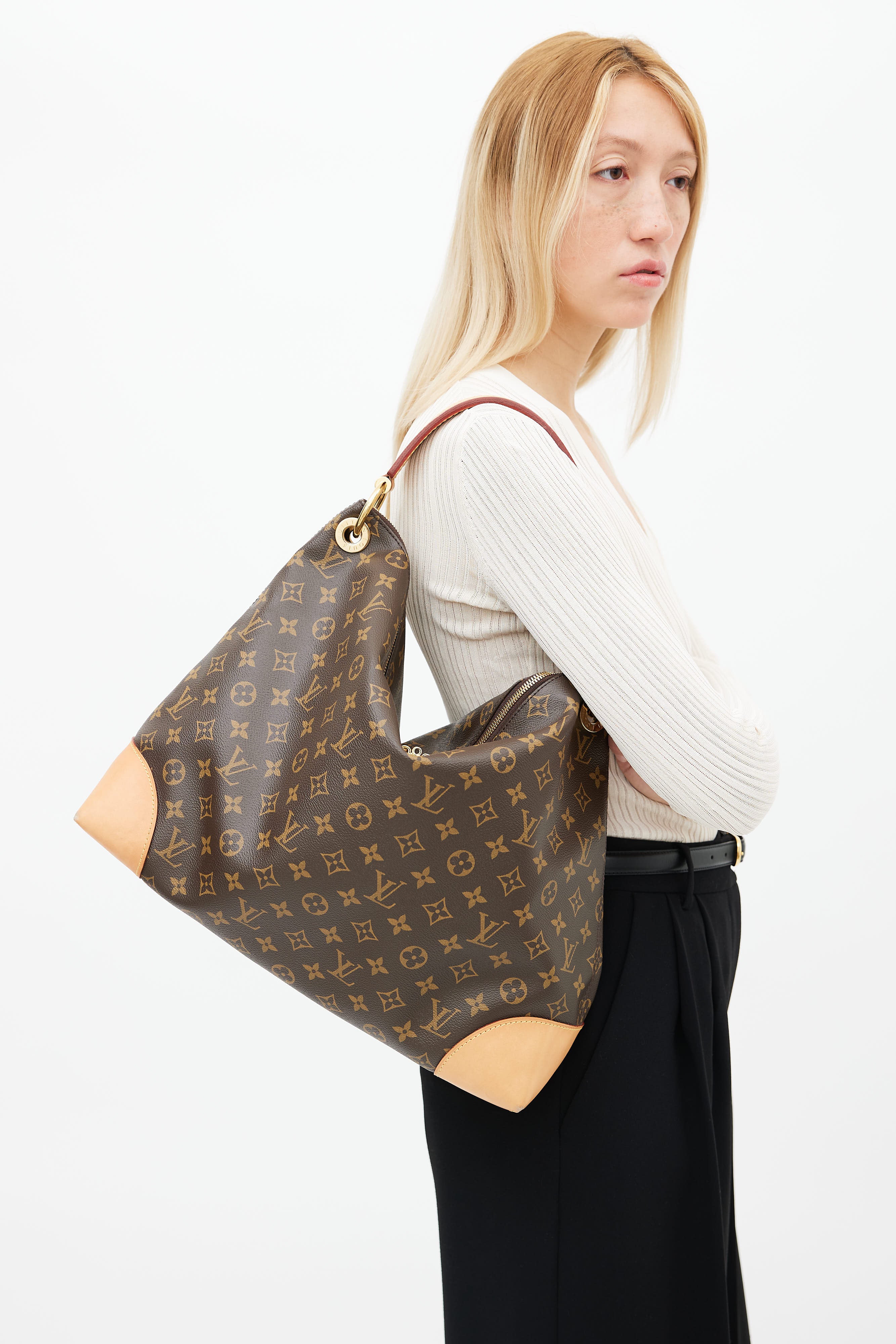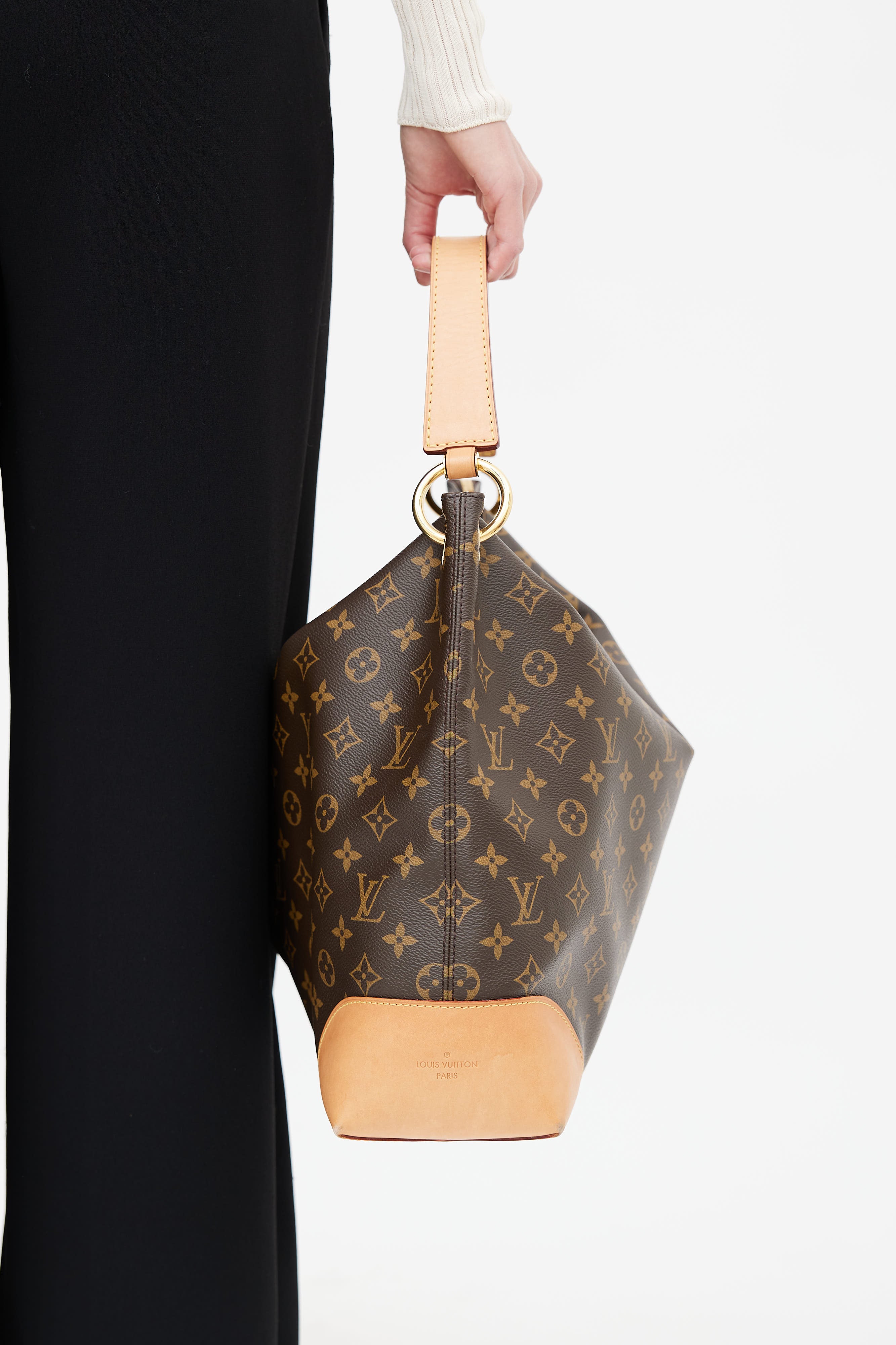 Pre-loved Louis Vuitton Berri MM bag in brown featuring monogram coated canvas, light brown leather trim, gold-tone hardware, top zip closure, flat top handle, single main compartment, three interior slip pockets, logo leather tab at inside, embossed logo at side and top handle, and gold-tone lock. Original receipt and dust bag included.