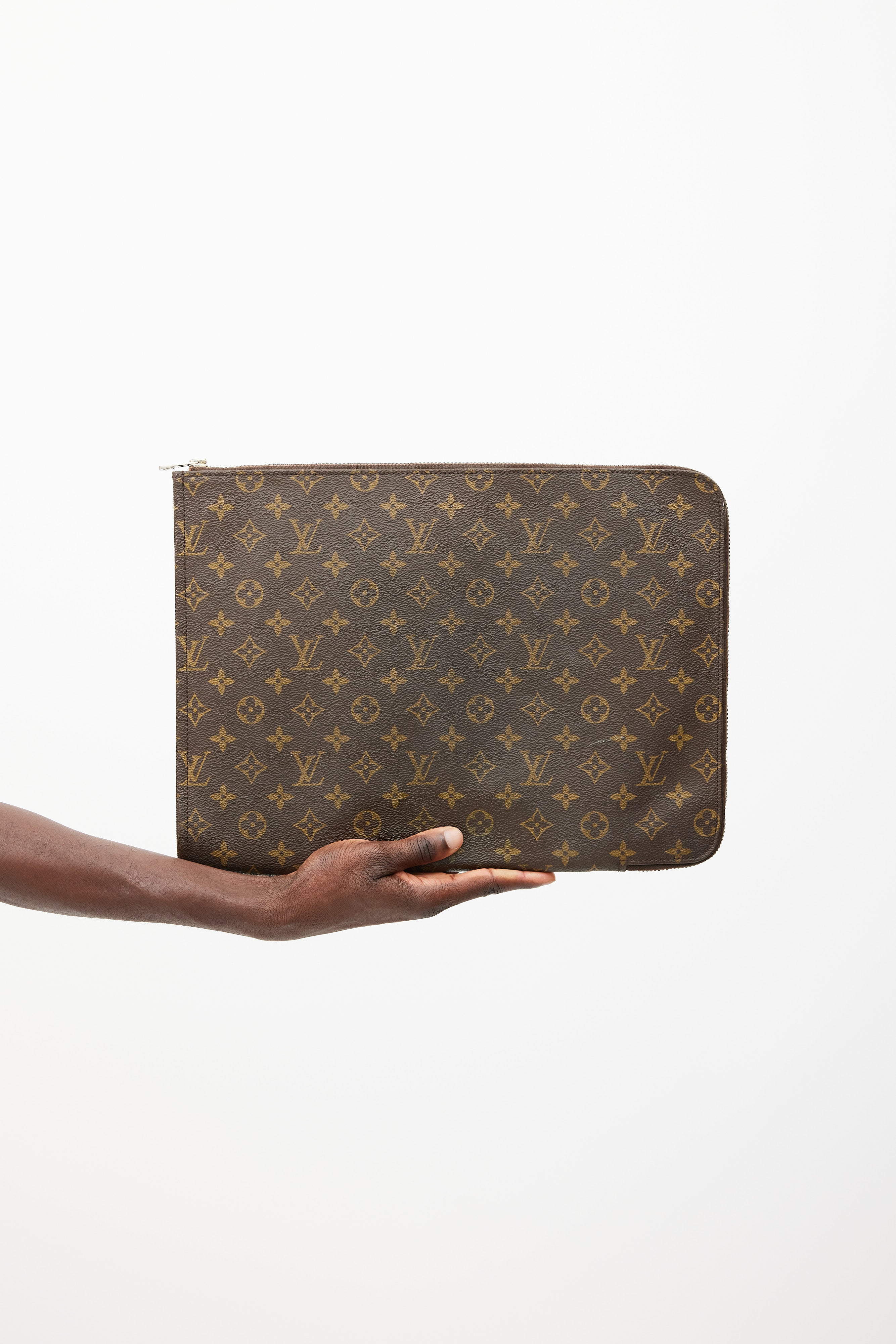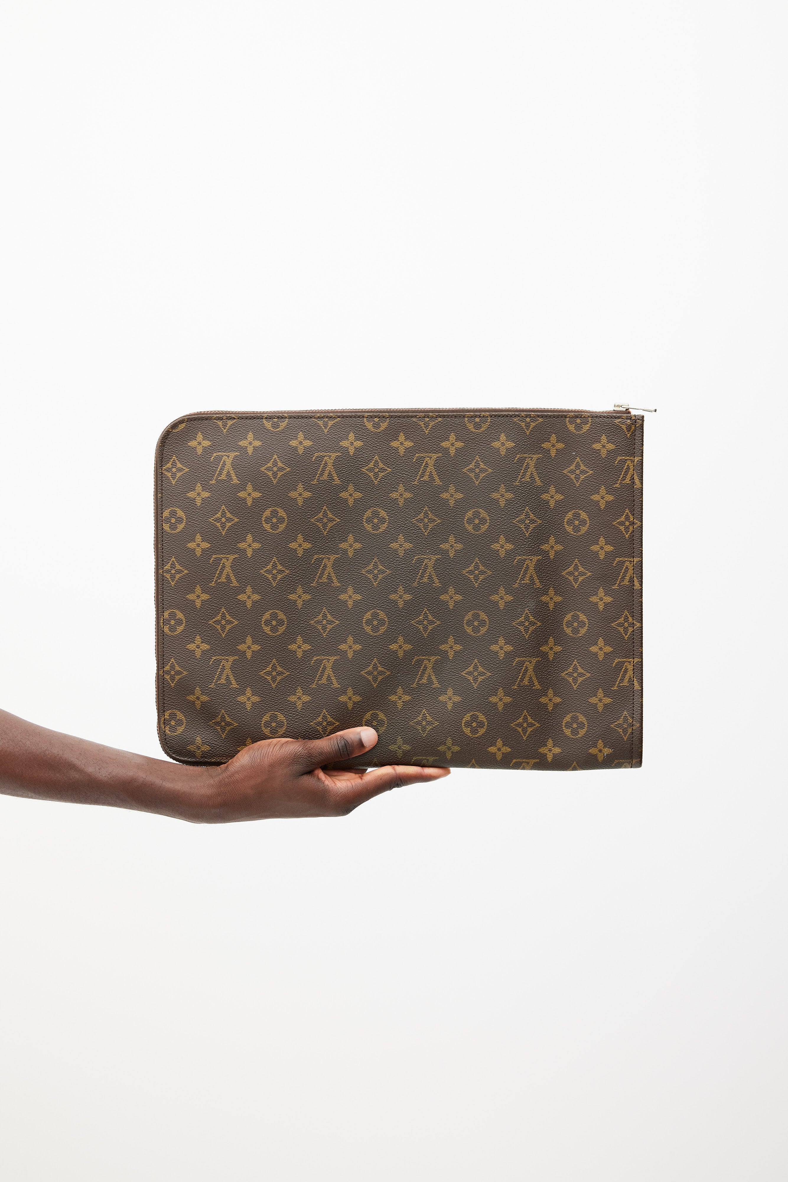 Pre-owned Louis Vuitton brown Pochette Documents clutch in monogram coated canvas featuring one main compartment, and top zip closure.